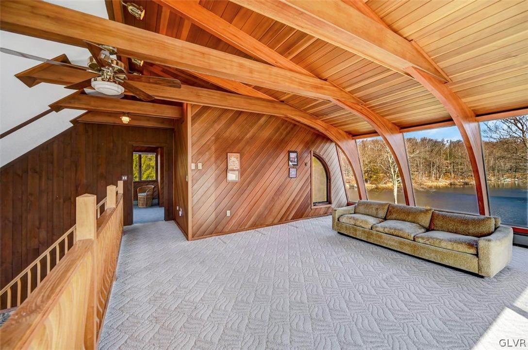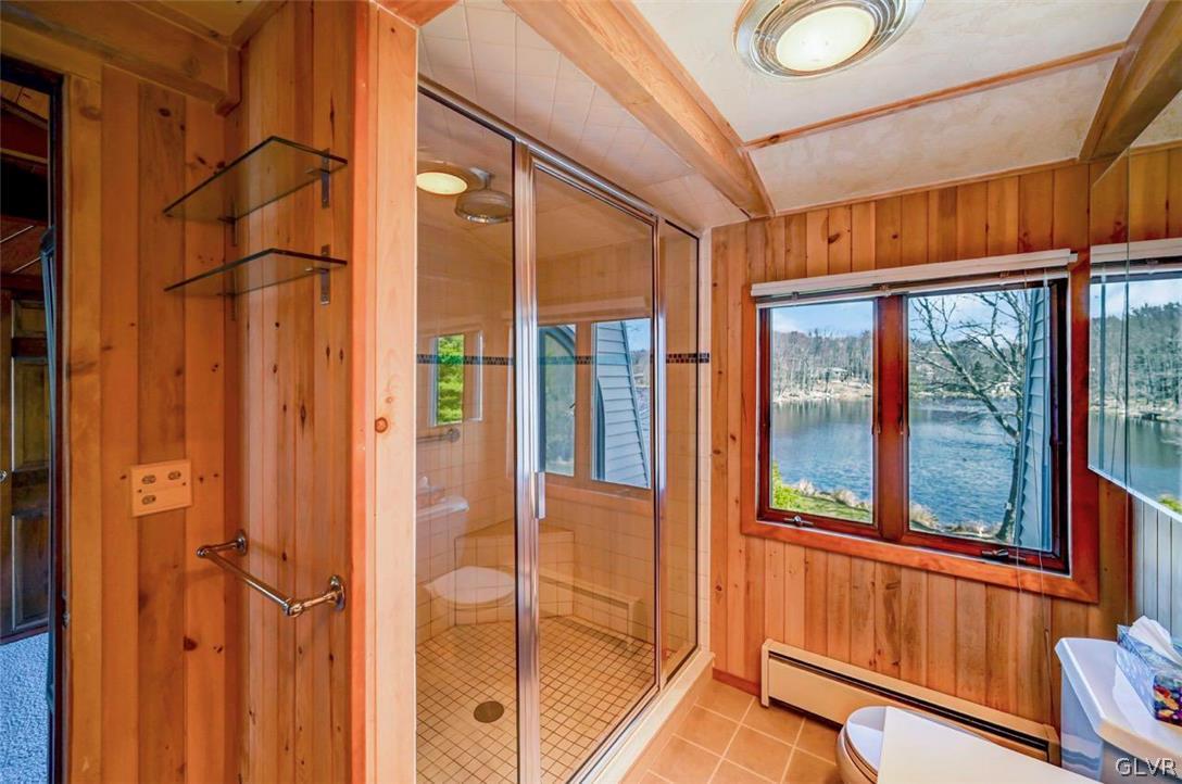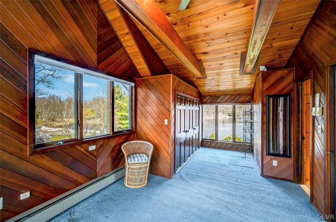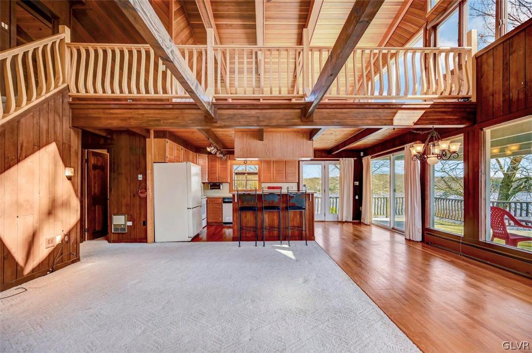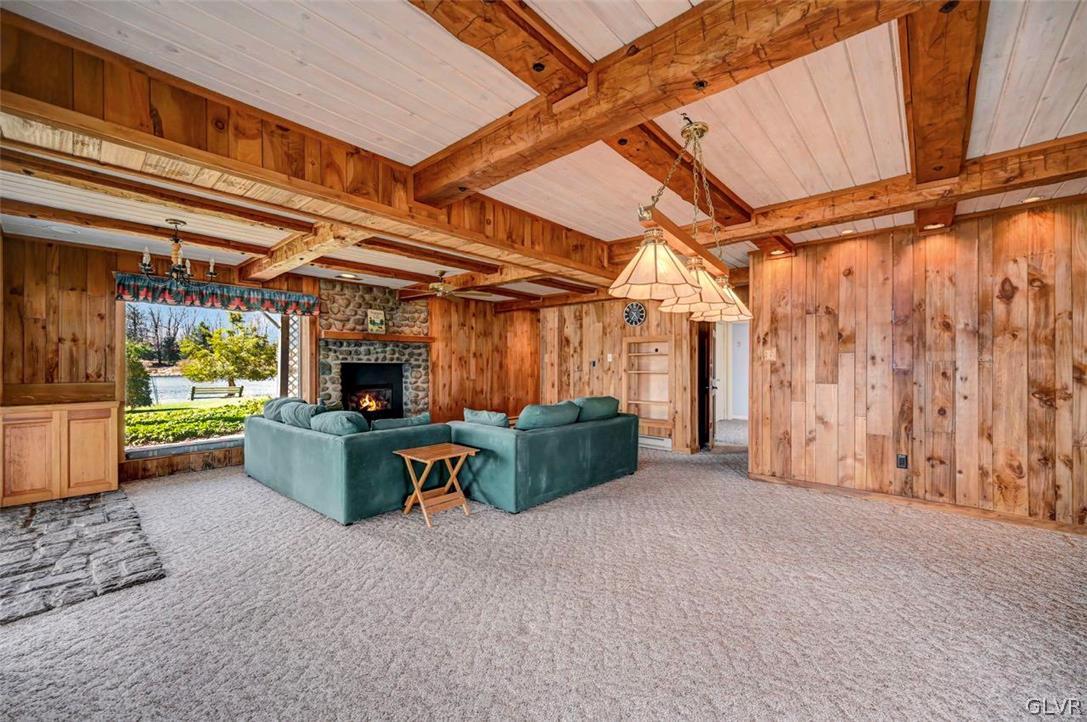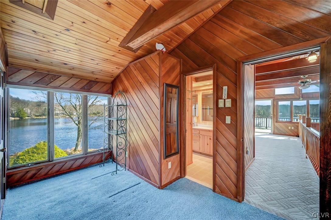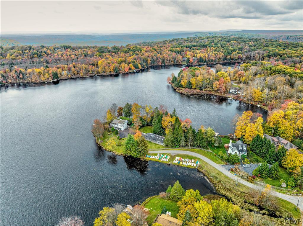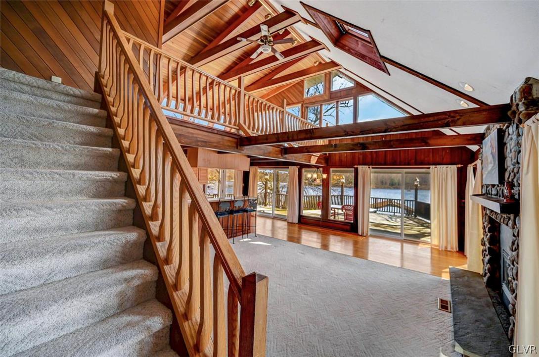 Welcome to 105 Buckhorn, where luxury meets tranquility on your very own private peninsula. This stunning three-story oasis offers over 700 feet of serene lake frontage, complete with a private covered dock, Amish Gazebo, and outdoor BBQ area, perfect for entertaining or simply soaking in the picturesque surroundings. Step inside this meticulously crafted lake-front home to discover three floors of spacious living, all above ground. Featuring a grand primary suite, complete with a private glass sunroom offering breathtaking views of the lake. With three additional bedrooms and two more baths, there's plenty of room for family and guests to unwind in comfort. Throughout the home, real cedar wood paneling adds warmth and character, creating a cozy ambiance that invites relaxation. Experience the ultimate in peace and serenity as you gaze out from every floor, taking in the tranquil beauty of the lake and surrounding grounds. Two stone fireplaces offer cozy warmth on cooler evenings, while a loft area reminiscent of a ship made of glass provides a unique retreat for quiet reflection or intimate gatherings.