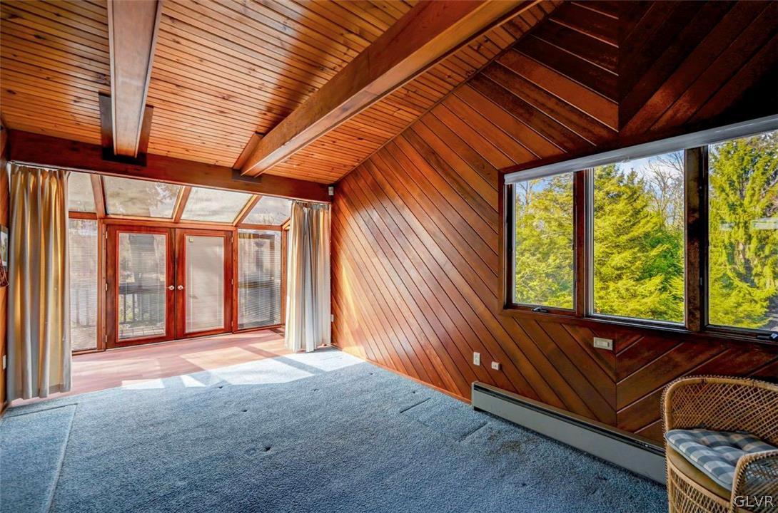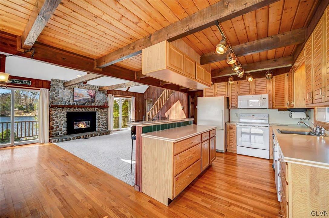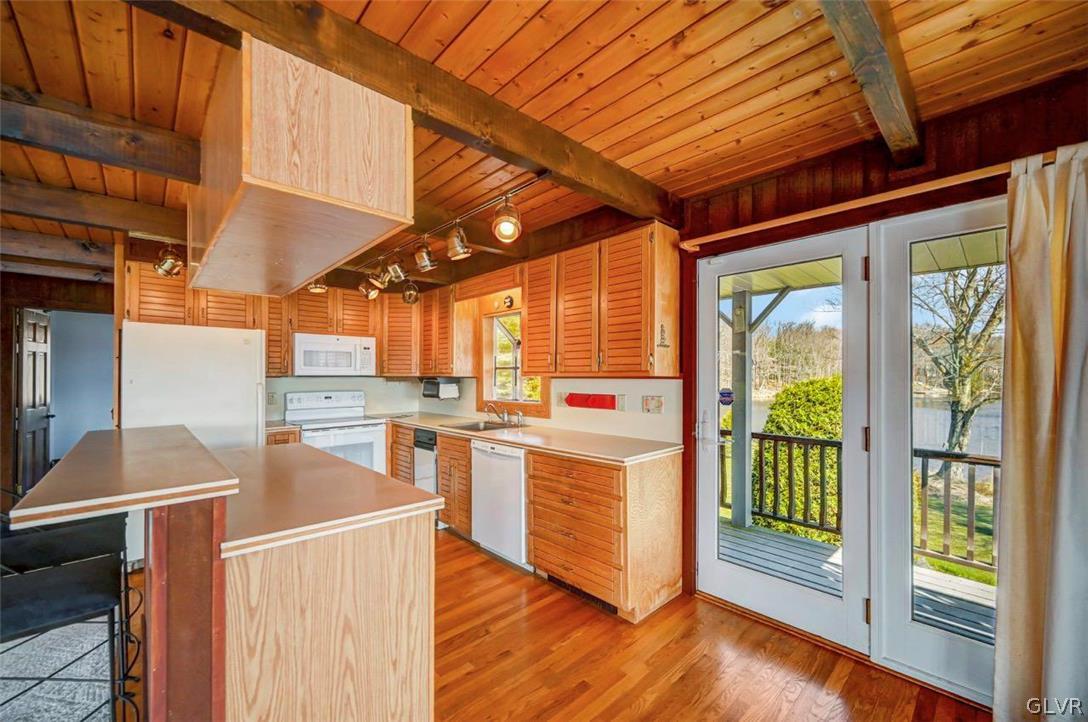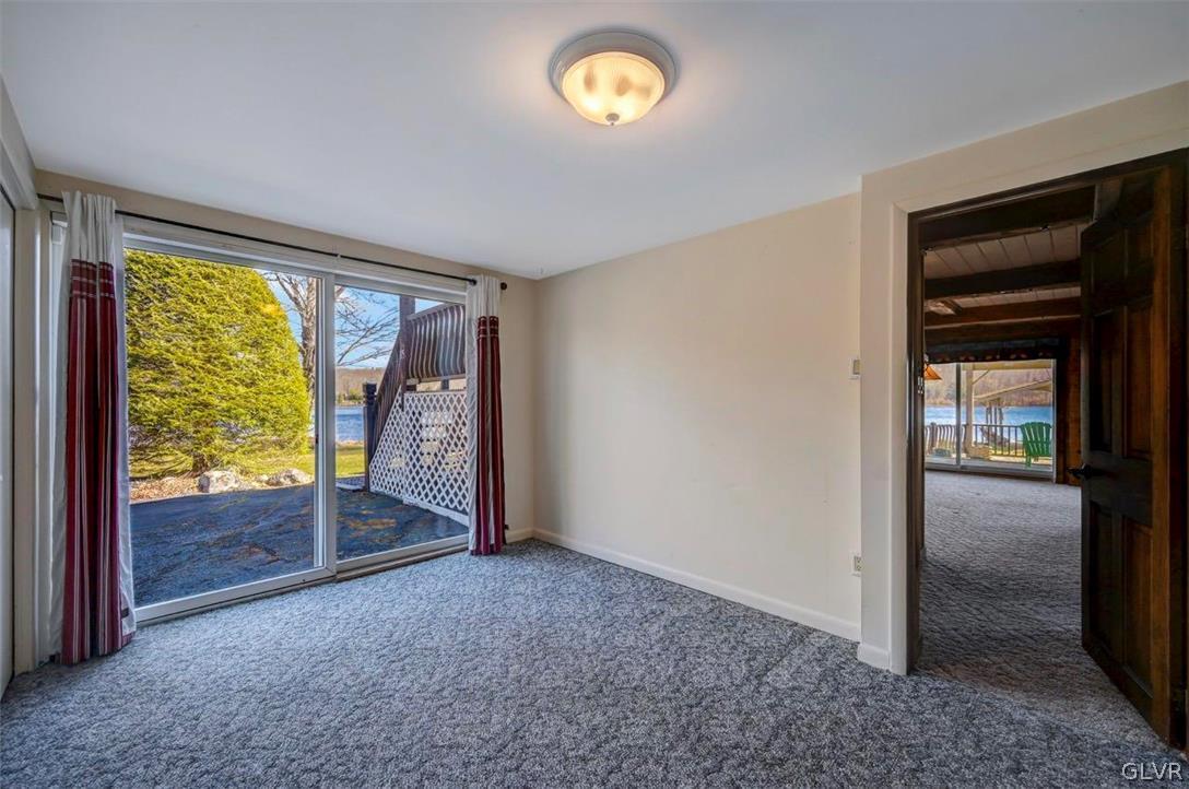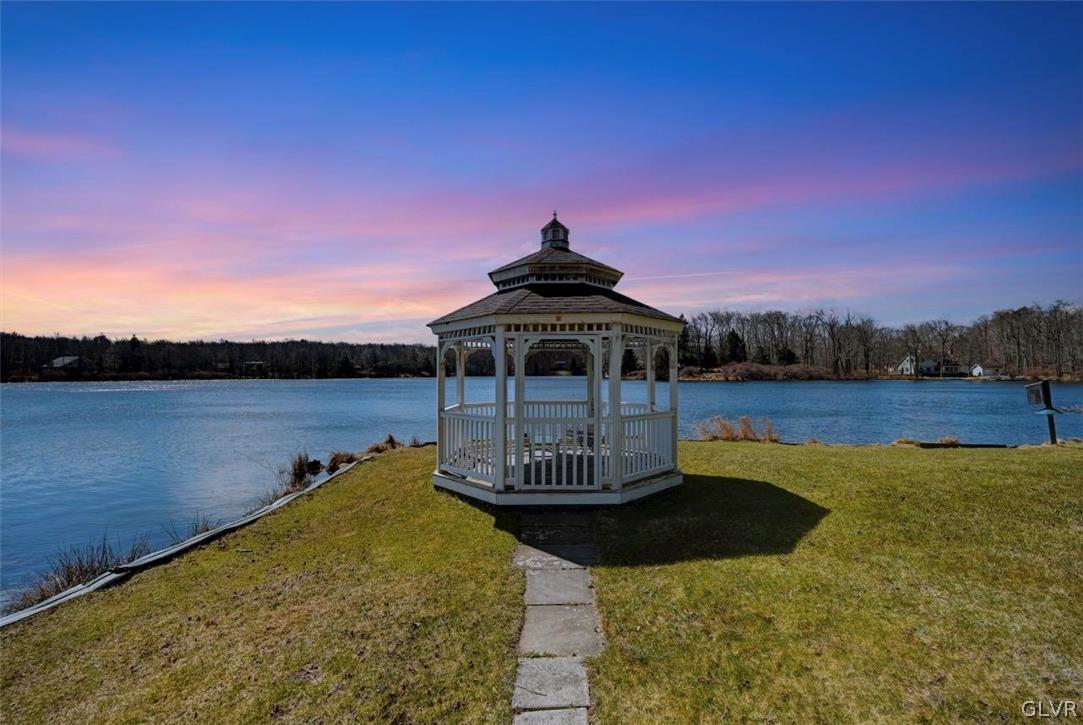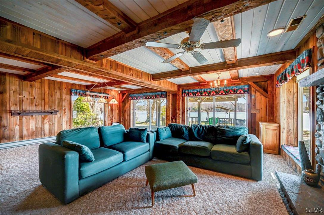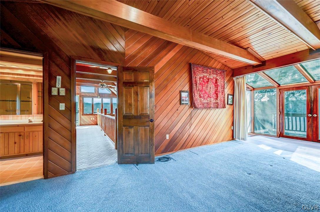 Welcome to 105 Buckhorn, where luxury meets tranquility on your very own private peninsula. This stunning three-story oasis offers over 700 feet of serene lake frontage, complete with a private covered dock, Amish Gazebo, and outdoor BBQ area, perfect for entertaining or simply soaking in the picturesque surroundings. Step inside this meticulously crafted lake-front home to discover three floors of spacious living, all above ground. Featuring a grand primary suite, complete with a private glass sunroom offering breathtaking views of the lake. With three additional bedrooms and two more baths, there's plenty of room for family and guests to unwind in comfort. Throughout the home, real cedar wood paneling adds warmth and character, creating a cozy ambiance that invites relaxation. Experience the ultimate in peace and serenity as you gaze out from every floor, taking in the tranquil beauty of the lake and surrounding grounds. Two stone fireplaces offer cozy warmth on cooler evenings, while a loft area reminiscent of a ship made of glass provides a unique retreat for quiet reflection or intimate gatherings.