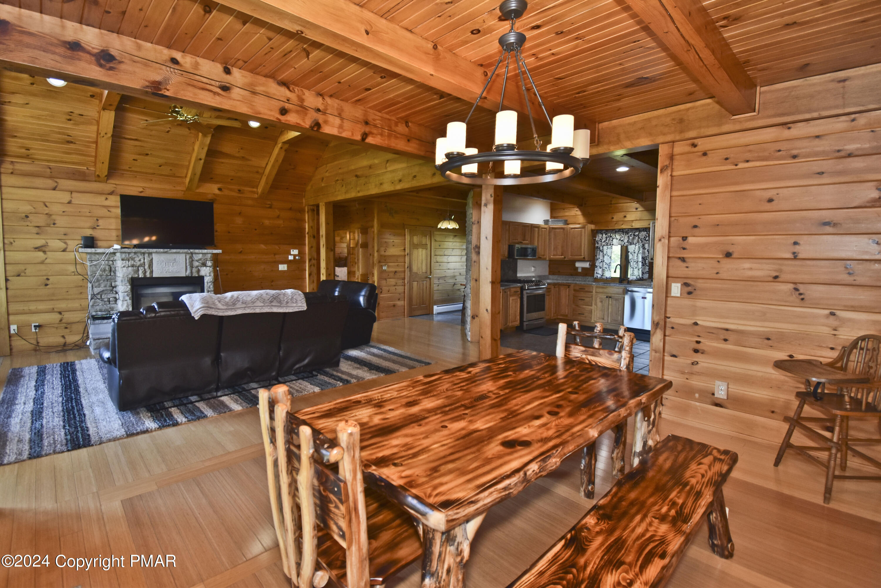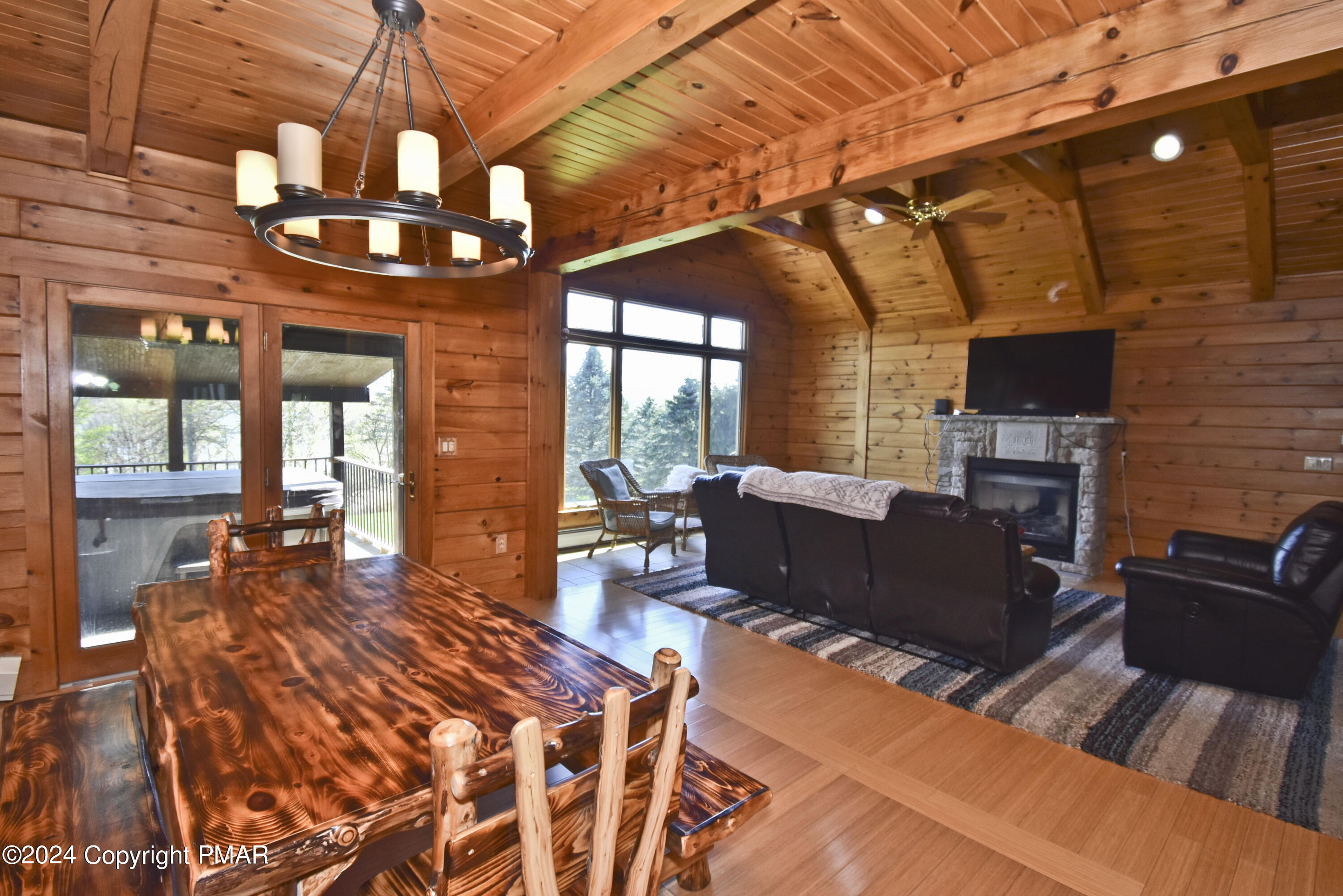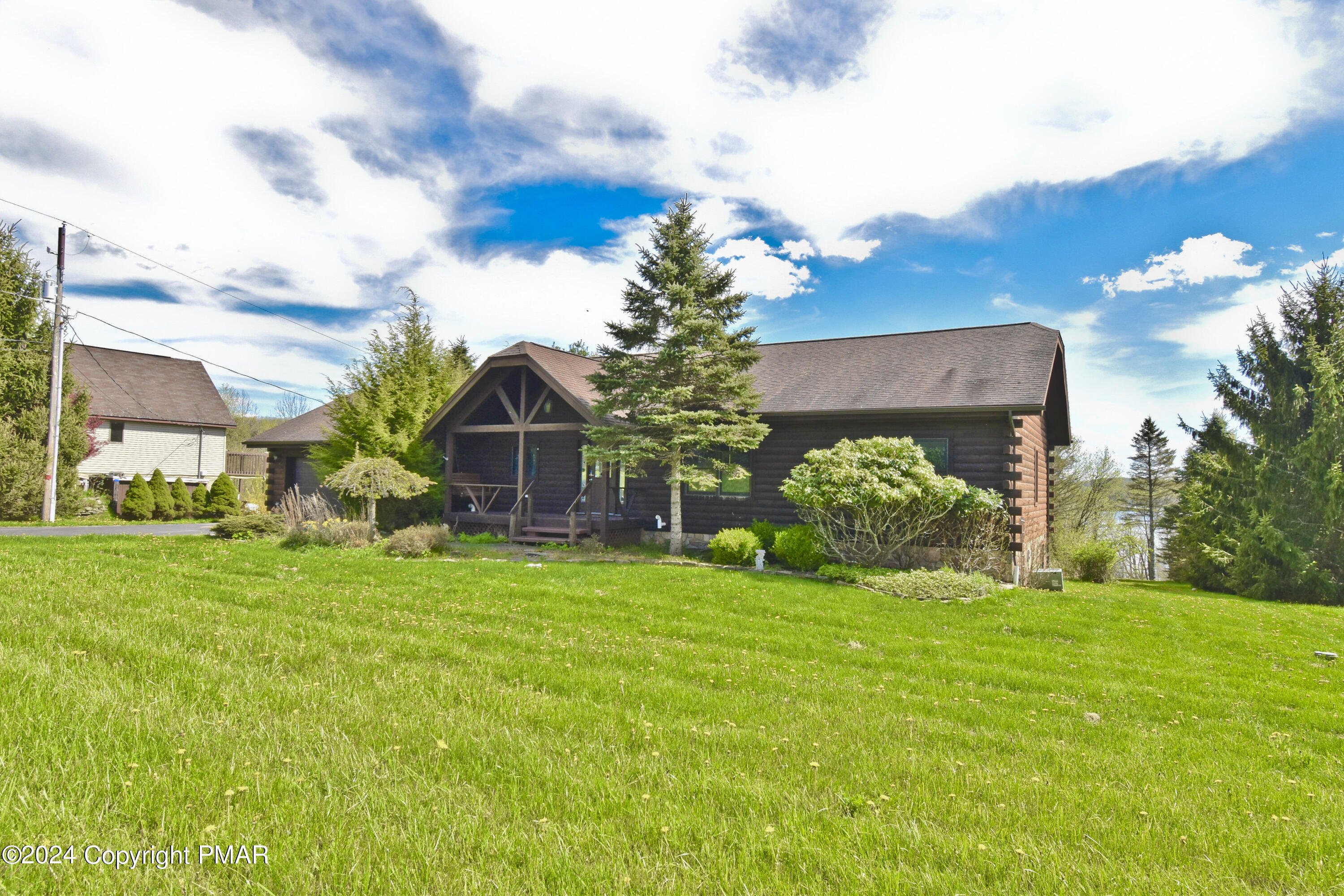 Escape to this stunning 3bd/2ba true log mountain retreat, perfectly perched on peaceful grounds w/ breathtaking views of Lake Henry. The ideal blend of rustic charm & modern comfort, this home welcomes you w/ a sun-filled Living Room featuring soaring ceilings, a cozy fireplace, & large windows that beautifully frame the lake. The open-concept Dining Area is perfect for entertaining & flows effortlessly onto the covered deck, where you'll find a private hot tub & sweeping panoramic views. The Kitchen is both warm & functional w/ hickory cabinetry, granite countertops, stainless steel appliances, & a convenient laundry room just steps away. There are 3 spacious bedrooms & 2 full baths, including a tranquil Primary Suite w/ a walk-in closet & its own private bath. Downstairs, the finished Family Room offers even more space to relax or play, w/ direct access to the backyard & firepit, ideal for gatherings & starry nights. A 1-car garage adds convenience, & w/ its desirable location & unforgettable lake views, this home also offers excellent potential as a short-term rental. Whether you're looking for a peaceful getaway, a family vacation retreat, or a smart investment opportunity, this mountain escape has it all.