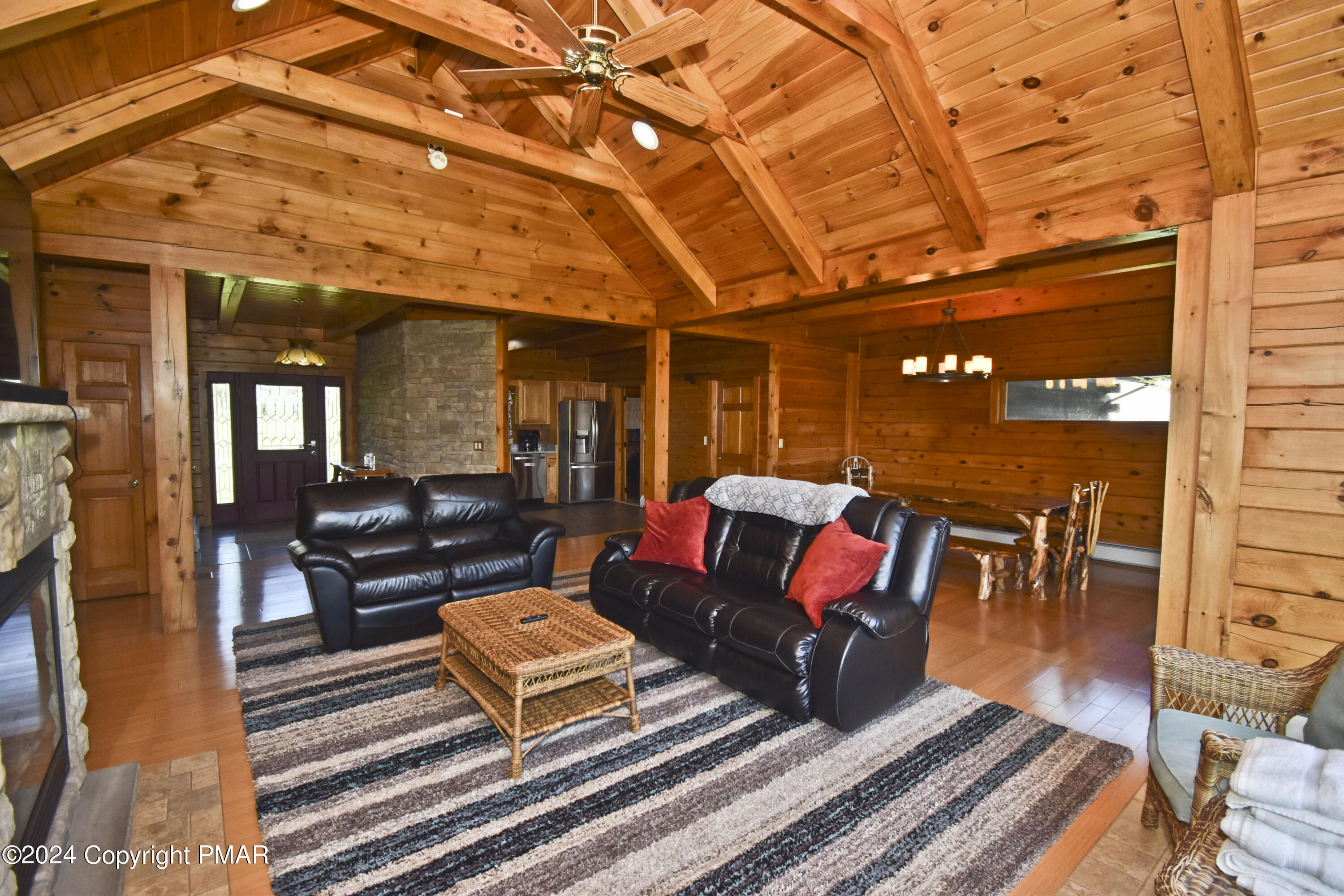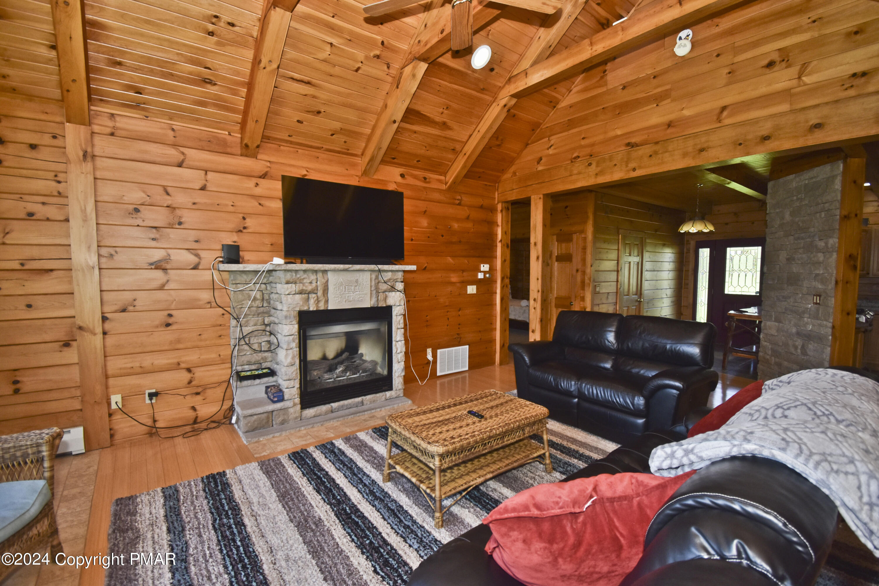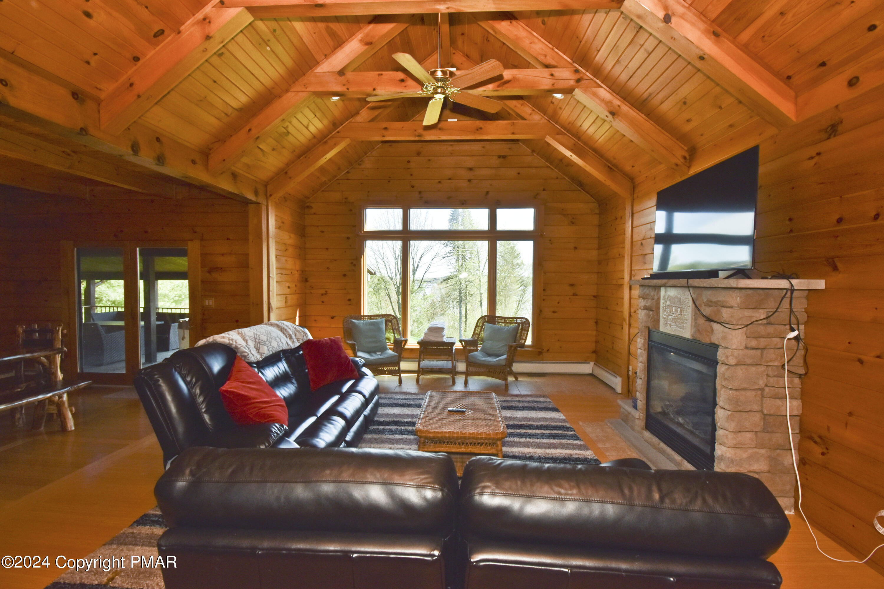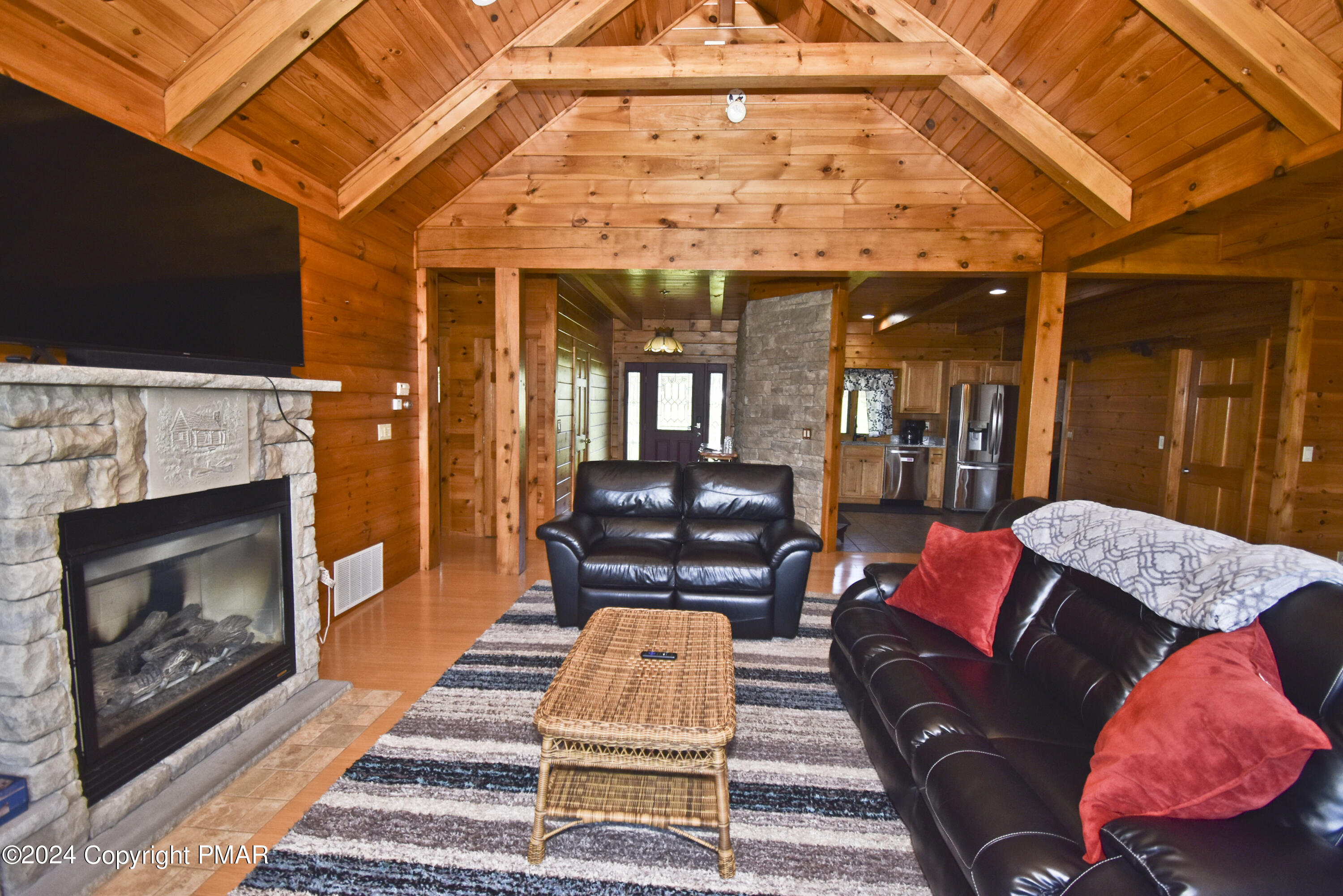 Escape to this stunning 3bd/2ba true log mountain retreat, perfectly perched on peaceful grounds w/ breathtaking views of Lake Henry. The ideal blend of rustic charm & modern comfort, this home welcomes you w/ a sun-filled Living Room featuring soaring ceilings, a cozy fireplace, & large windows that beautifully frame the lake. The open-concept Dining Area is perfect for entertaining & flows effortlessly onto the covered deck, where you'll find a private hot tub & sweeping panoramic views. The Kitchen is both warm & functional w/ hickory cabinetry, granite countertops, stainless steel appliances, & a convenient laundry room just steps away. There are 3 spacious bedrooms & 2 full baths, including a tranquil Primary Suite w/ a walk-in closet & its own private bath. Downstairs, the finished Family Room offers even more space to relax or play, w/ direct access to the backyard & firepit, ideal for gatherings & starry nights. A 1-car garage adds convenience, & w/ its desirable location & unforgettable lake views, this home also offers excellent potential as a short-term rental. Whether you're looking for a peaceful getaway, a family vacation retreat, or a smart investment opportunity, this mountain escape has it all.