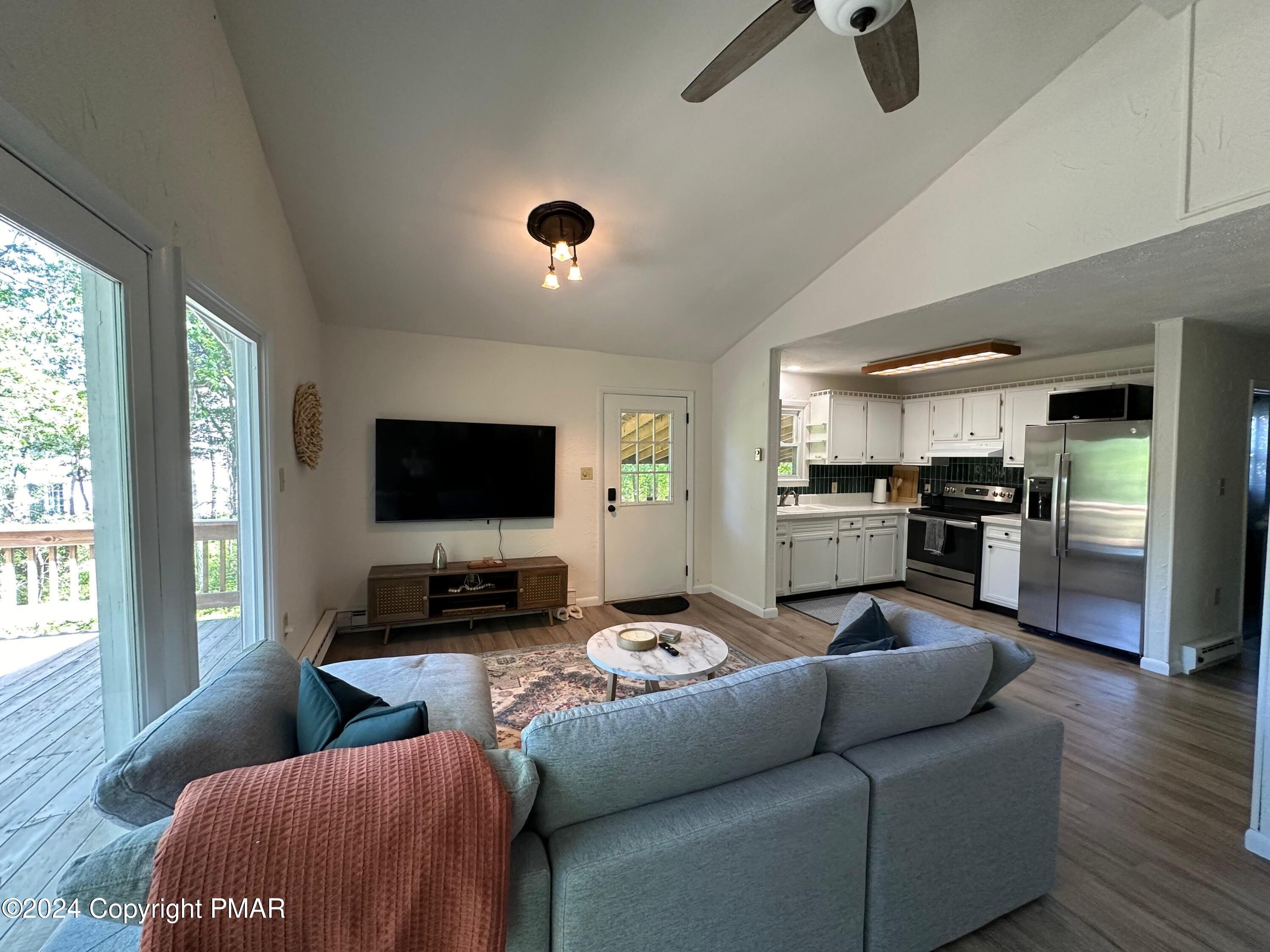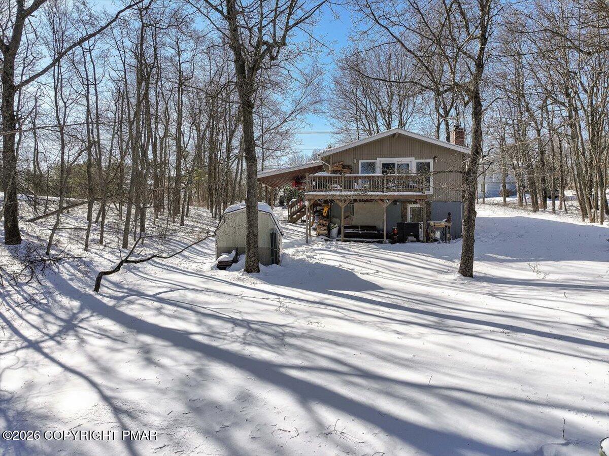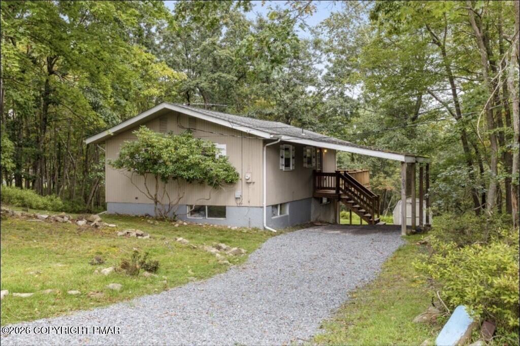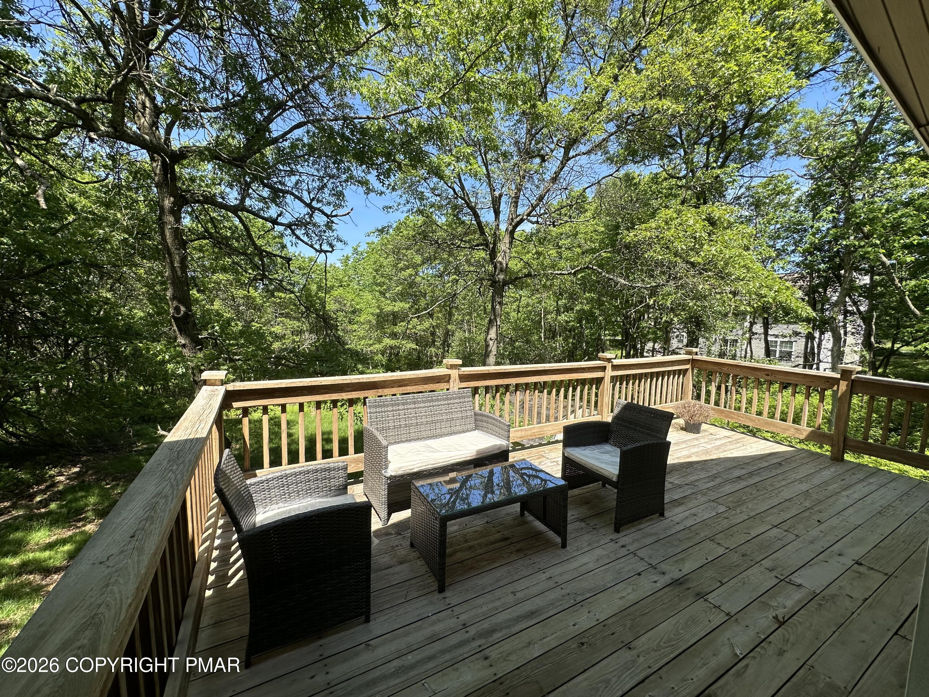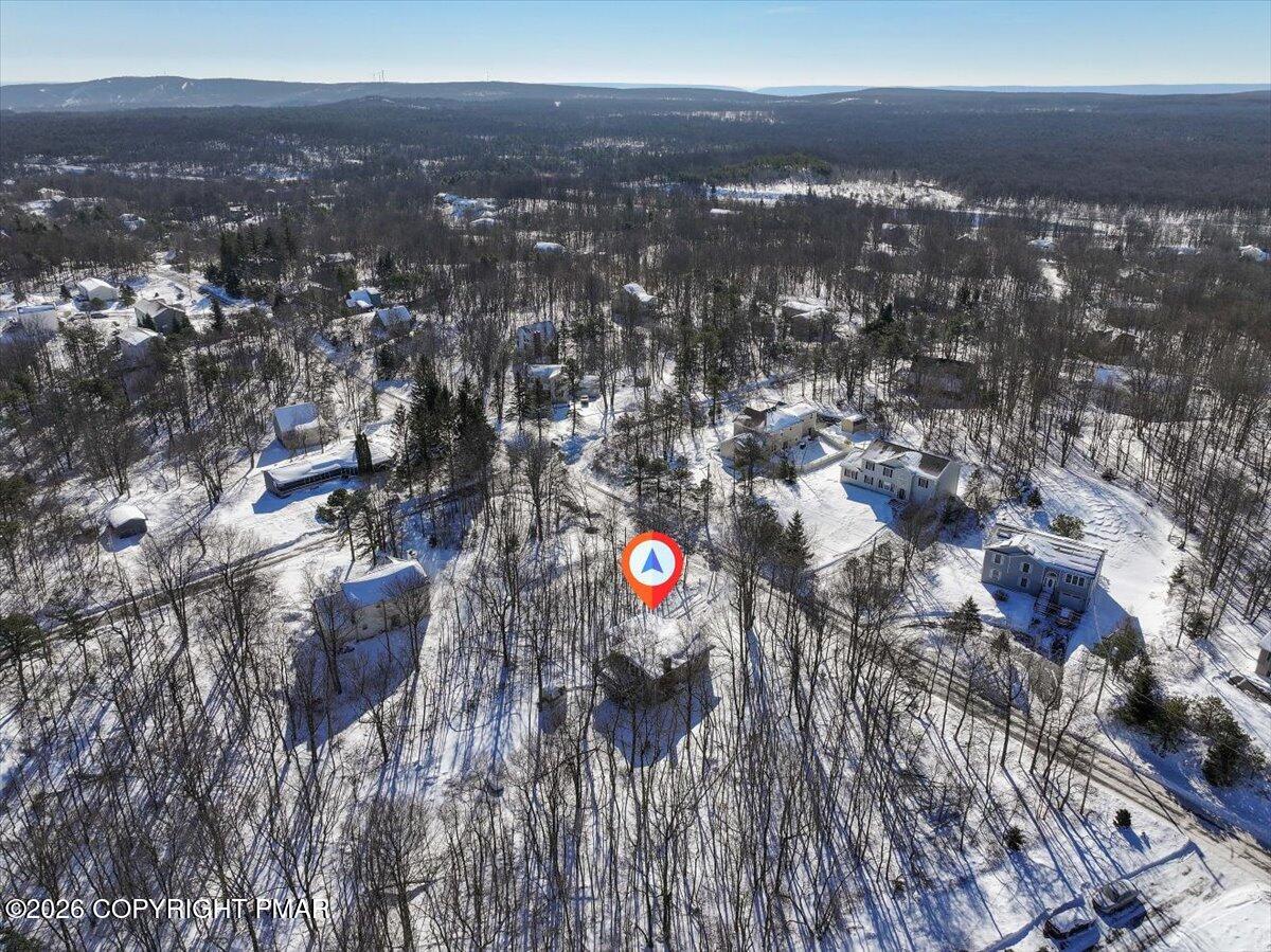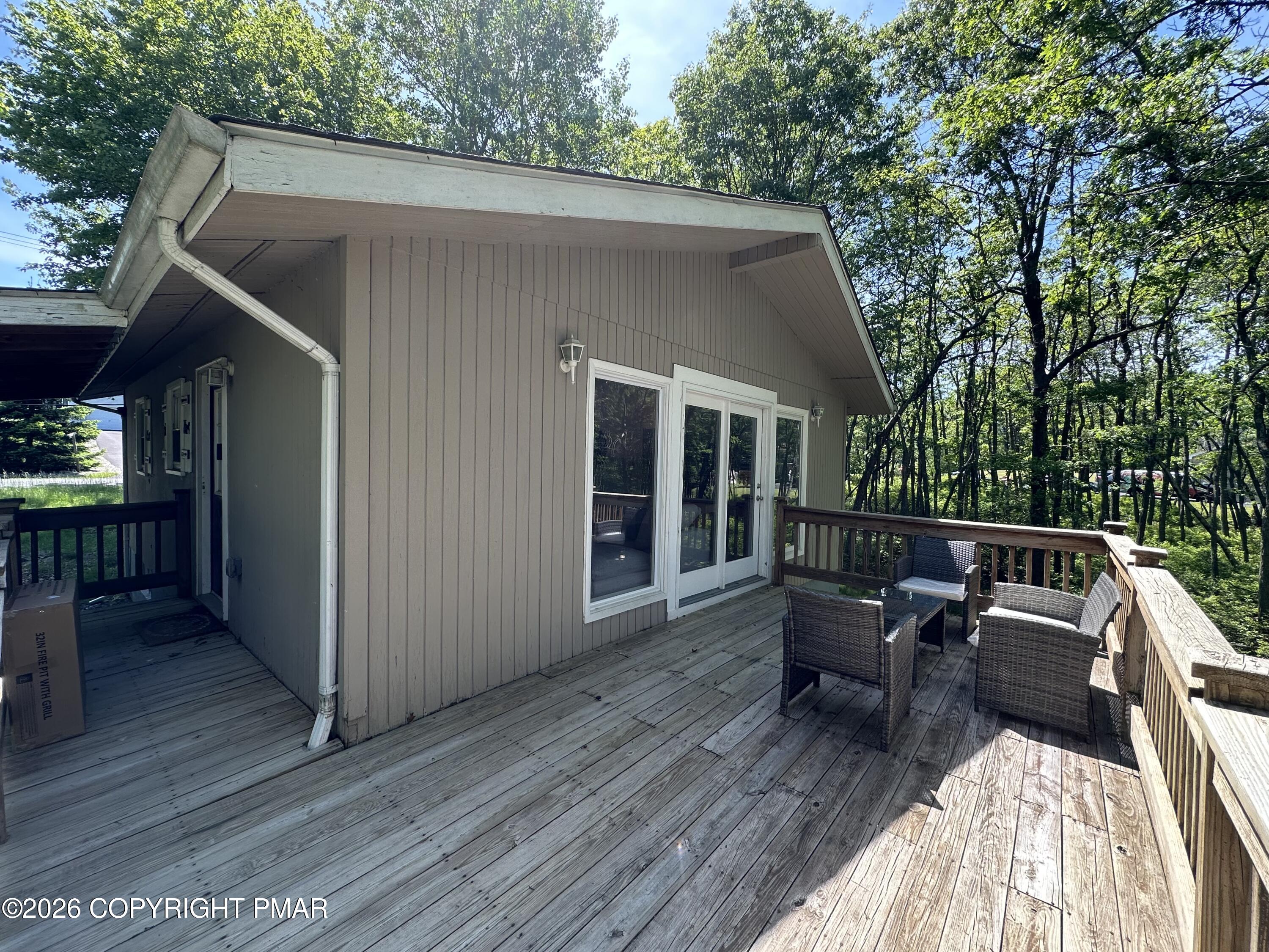 Discover the ultimate mountain sanctuary in this beautifully maintained 2-bedroom, 1.5-bath retreat located in the heart of the Pocono Mountains. Combining rustic charm with modern convenience, this home is perfectly designed for those seeking a peaceful permanent residence or a versatile seasonal getaway. The main living area is flooded with natural light, creating a warm and inviting atmosphere centered around a classic brick-faced fireplace. The kitchen's functional layout allows for an easy flow into the dining and living spaces, making it a dream for both everyday living and hosting gatherings. Thoughtfully designed for ease of use, the main level features two comfortable bedrooms and a full bath, providing the highly sought-after convenience of single-floor living. Step outside to the expansive deck, where you can take in the breathtaking, peaceful mountain views that make this region so special. Whether you are enjoying a quiet morning coffee or hosting a sunset dinner, this outdoor space offers a true escape into nature. The home's versatility extends to the fully finished lower level, which includes a dedicated laundry area and a convenient half-bath. This expansive space is ready to be transformed into a recreation room, home office, or guest quarters to suit your specific lifestyle needs. Impeccably cared for and ready for its next chapter, this home offers a rare combination of comfort and character. Schedule your private showing today.