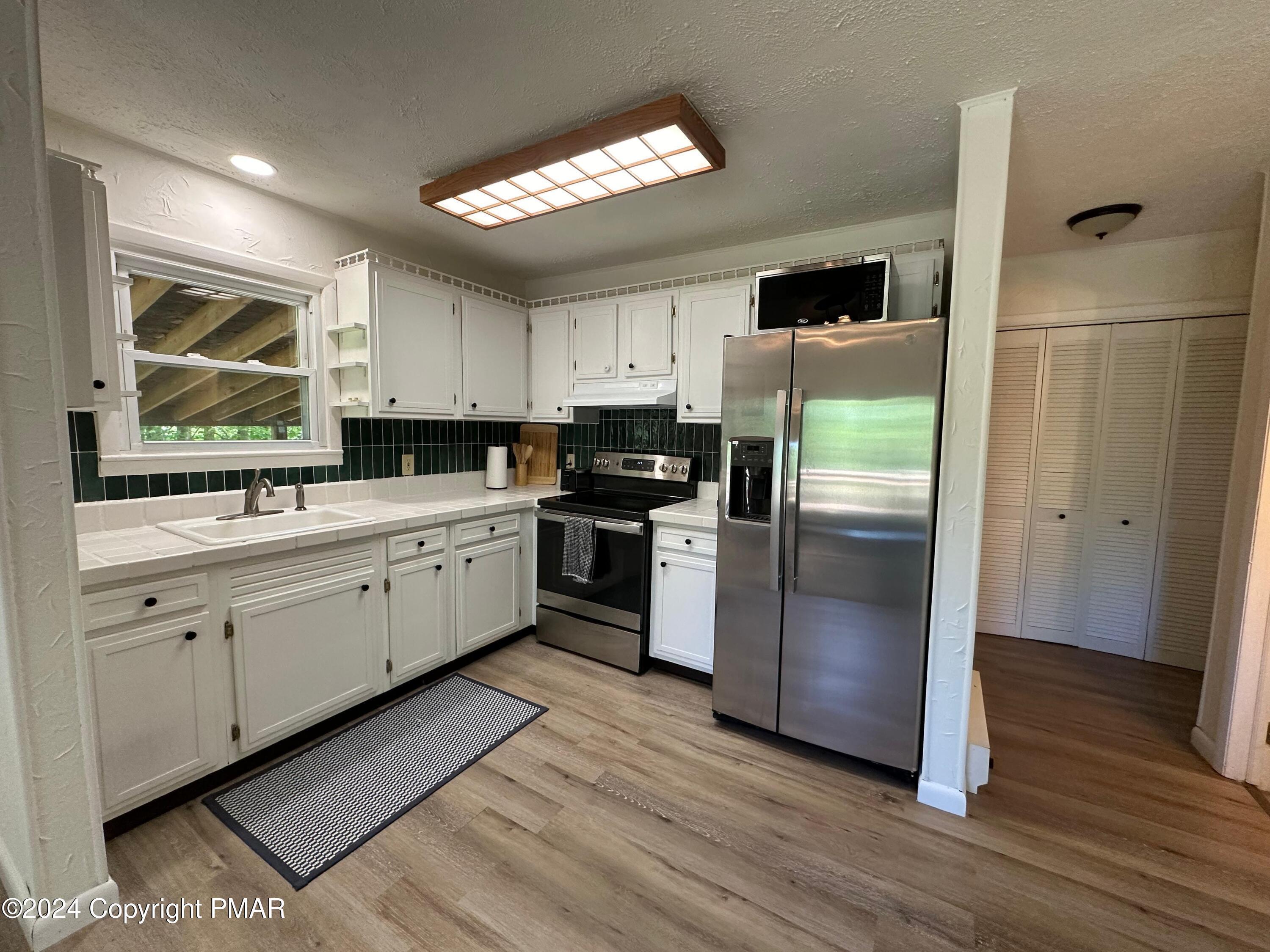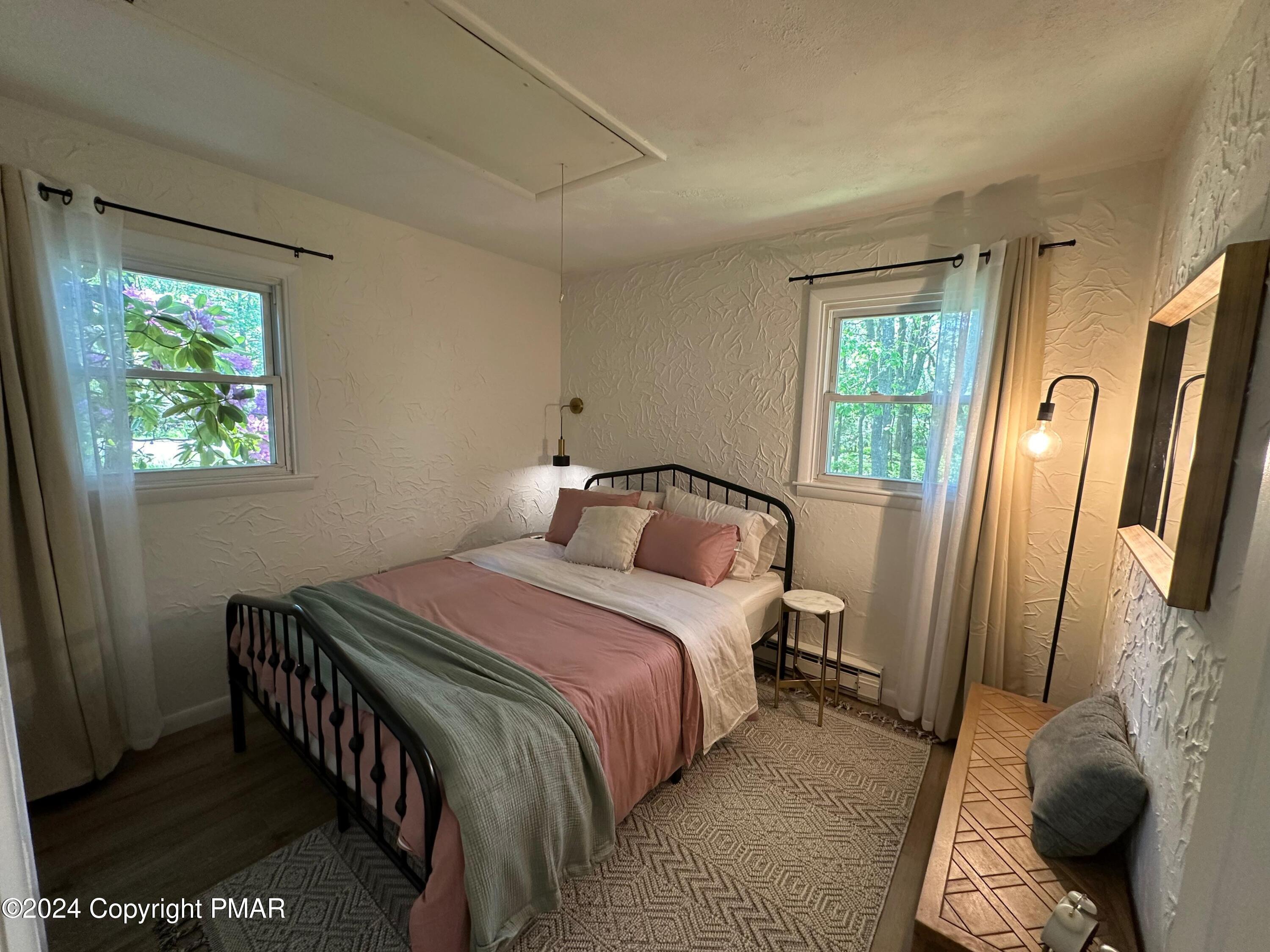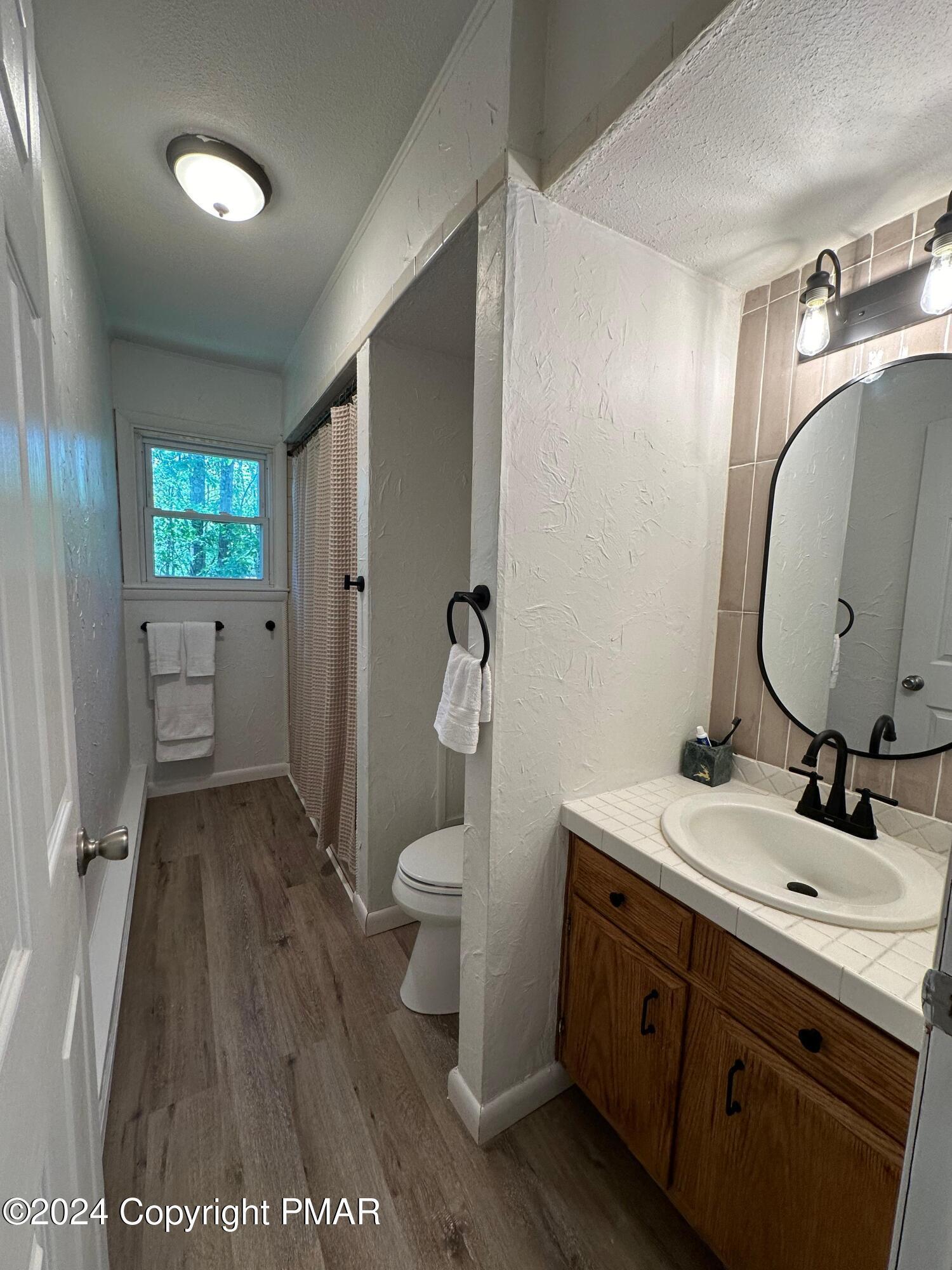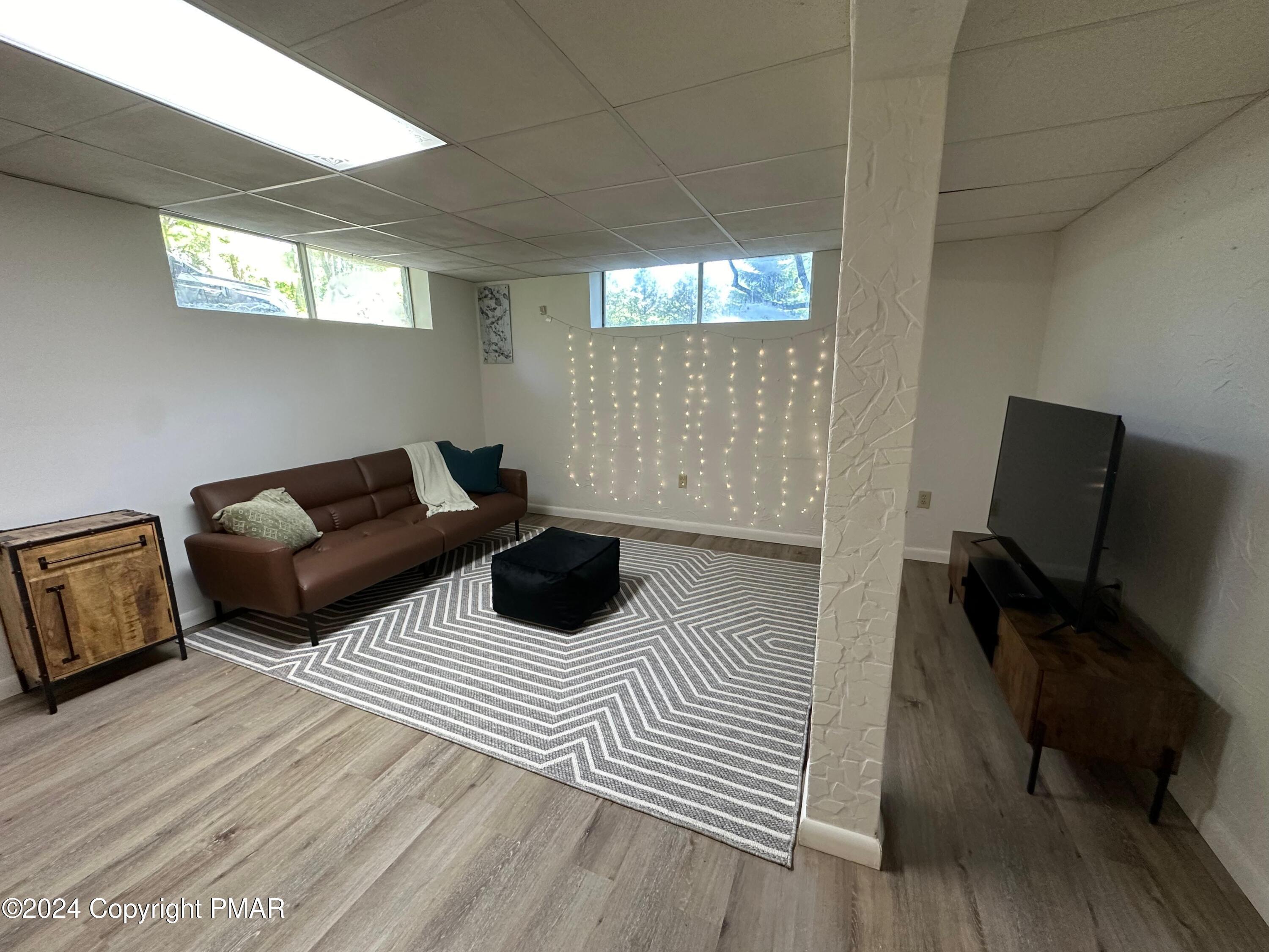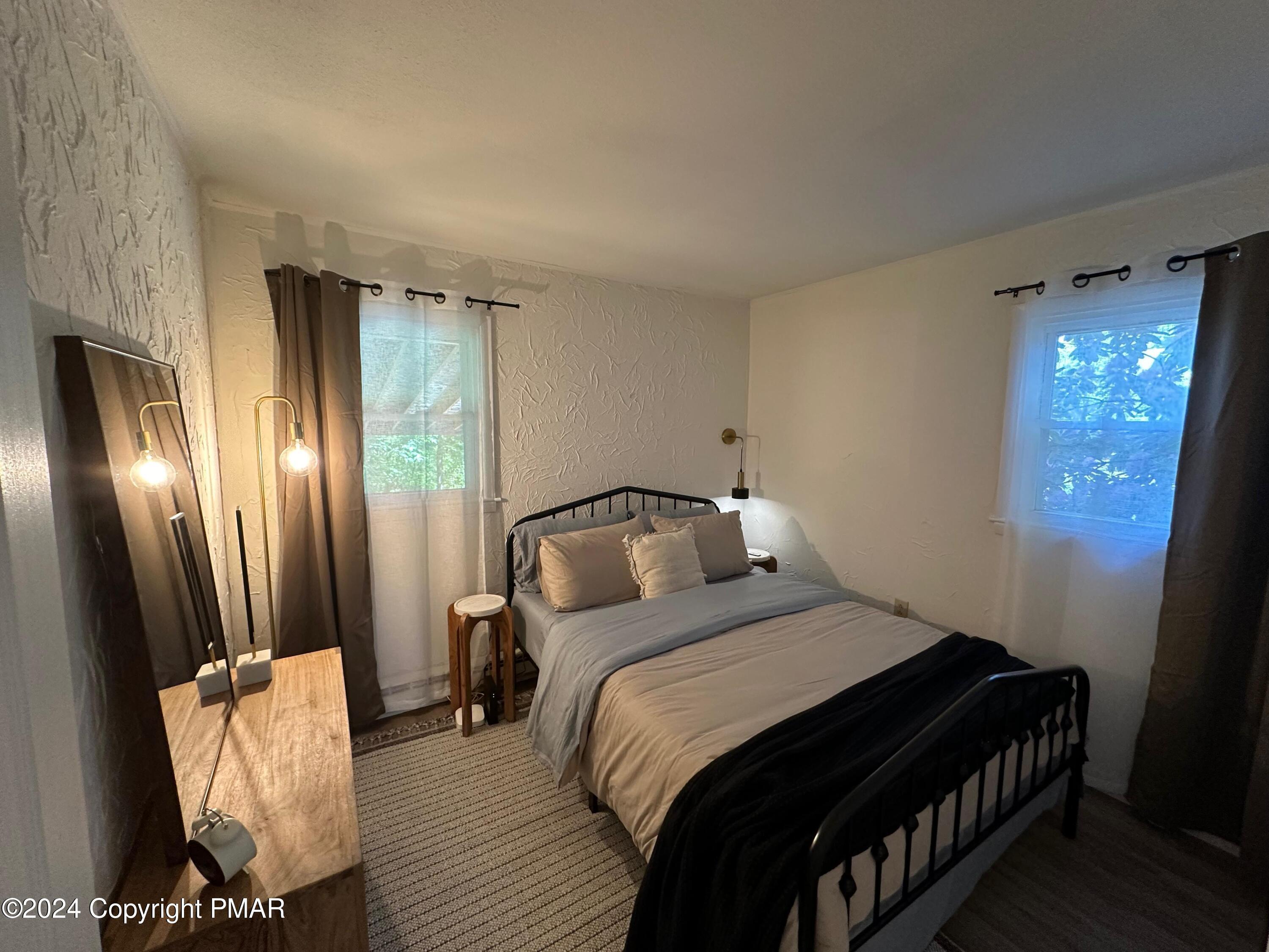 Discover the ultimate mountain sanctuary in this beautifully maintained 2-bedroom, 1.5-bath retreat located in the heart of the Pocono Mountains. Combining rustic charm with modern convenience, this home is perfectly designed for those seeking a peaceful permanent residence or a versatile seasonal getaway. The main living area is flooded with natural light, creating a warm and inviting atmosphere centered around a classic brick-faced fireplace. The kitchen's functional layout allows for an easy flow into the dining and living spaces, making it a dream for both everyday living and hosting gatherings. Thoughtfully designed for ease of use, the main level features two comfortable bedrooms and a full bath, providing the highly sought-after convenience of single-floor living. Step outside to the expansive deck, where you can take in the breathtaking, peaceful mountain views that make this region so special. Whether you are enjoying a quiet morning coffee or hosting a sunset dinner, this outdoor space offers a true escape into nature. The home's versatility extends to the fully finished lower level, which includes a dedicated laundry area and a convenient half-bath. This expansive space is ready to be transformed into a recreation room, home office, or guest quarters to suit your specific lifestyle needs. Impeccably cared for and ready for its next chapter, this home offers a rare combination of comfort and character. Schedule your private showing today.