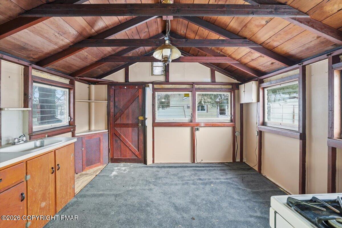 Just minutes from Promised Land State Park, this classic Pocono cabin offers an affordable entry point into recreational ownership--ideal as a hunting camp, weekend getaway, or simple off-grid-style retreat. Set on a quiet lane with a wooded backdrop, this property delivers the kind of simplicity and character that's getting harder to find at this price point. Inside, exposed wood beams, vaulted ceilings, and a wood-paneled interior create an authentic cabin feel. The open living area is anchored by a fireplace, perfect for warming up after a day outdoors or settling in for quiet winter nights. The layout is efficient and functional, with a kitchen area, living space, and sleeping quarters that make smart use of the footprint. Outside, the property includes a storage shed, ideal for firewood, hunting gear, or tools, along with space to relax and enjoy the surrounding nature. With hiking, fishing, boating, and state land nearby, this cabin works perfectly as a seasonal base camp or a low-cost Pocono escape. A rare opportunity to own a Pocono retreat under $80,000 - Schedule your showing today!