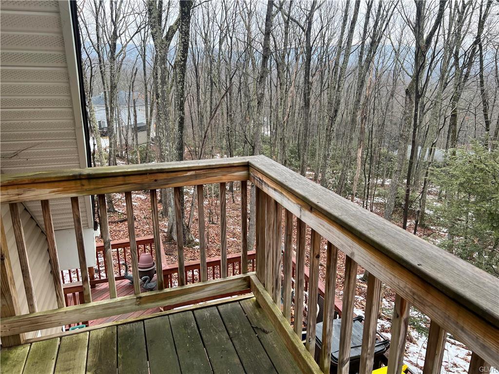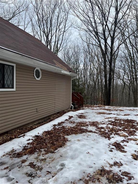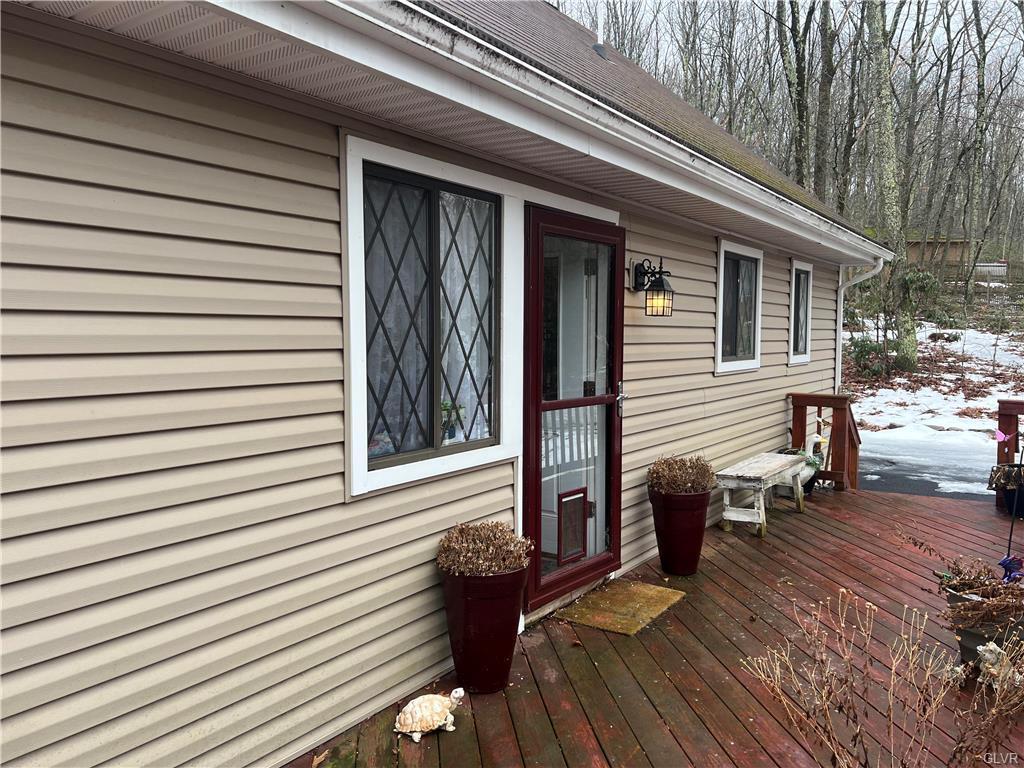Nestled within a serene cul-de-sac, this enchanting chalet home is set on an expansive 2.13-acre wooded lot, where nature's tranquility envelops the senses. A winding path leads to the entrance, revealing a dwelling that harmonizes modern comfort with rustic charm. All accommodations, thoughtfully situated on the first floor, cater to convenience and ease of living. The inviting living area, adorned with natural light filtering through sliding glass doors, opens to a gourmet kitchen, ideal for culinary endeavors.Adjacent, a dining area creates the perfect ambiance for gatherings with family and friends. Ascend to the second level, where a spacious bedroom awaits, offering a private deck with breathtaking views of the surrounding woodland, an ideal sanctuary for morning reflections or evening star-gazing. The essence of serene living awaits in this idyllic setting, where the harmony of nature and home converge, making this chalet not just a home but a retreat. Seize the chance to call this enchanting sanctuary your own. Convenient to NY,NJ and PA.