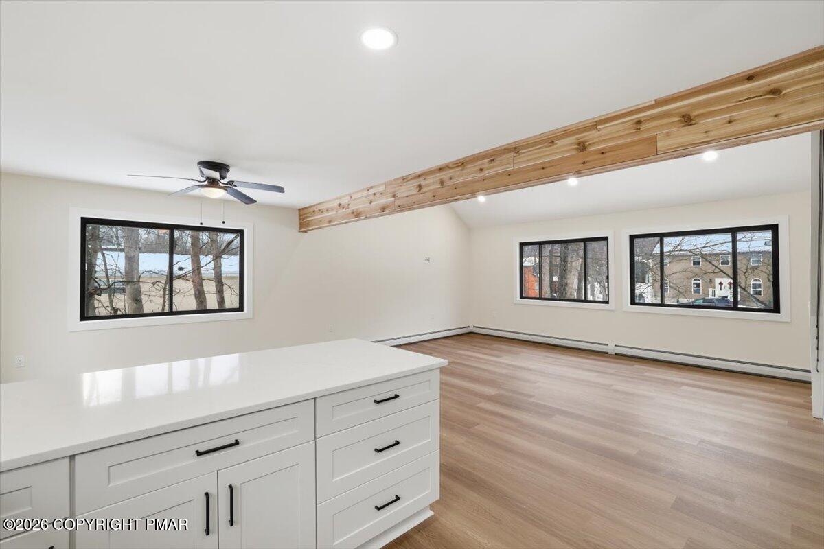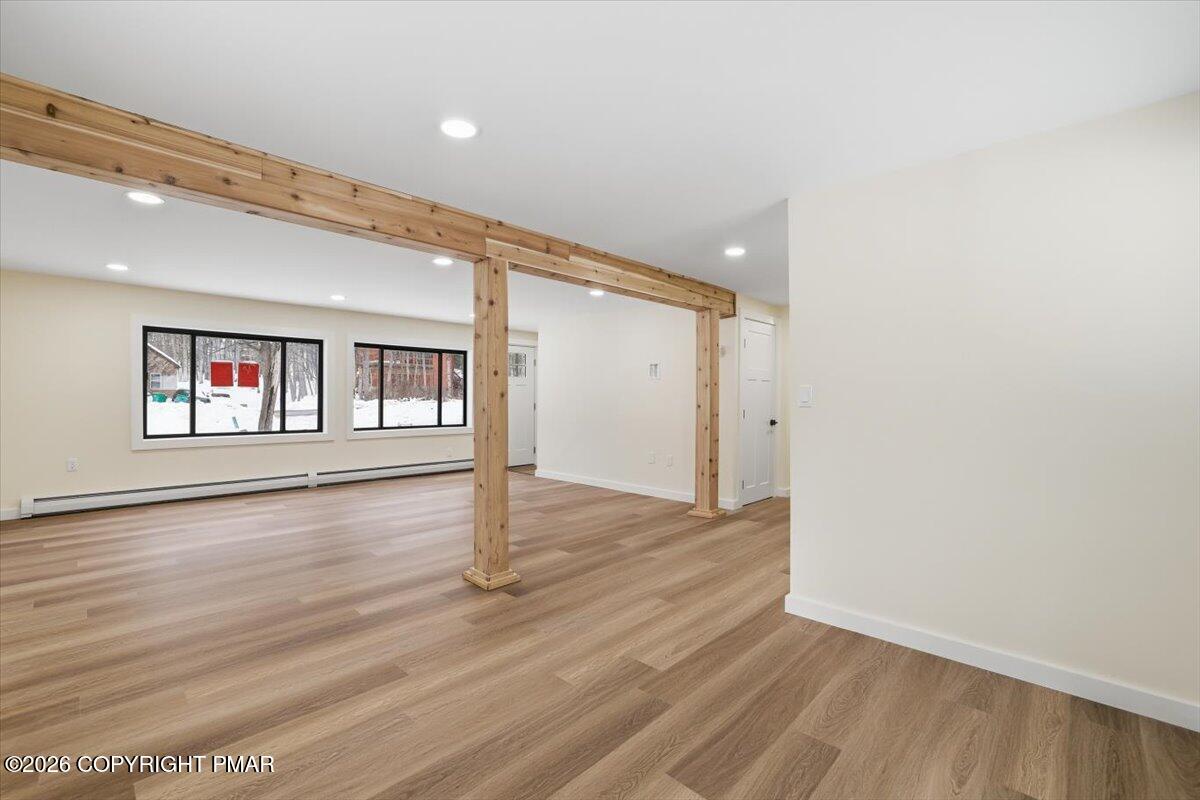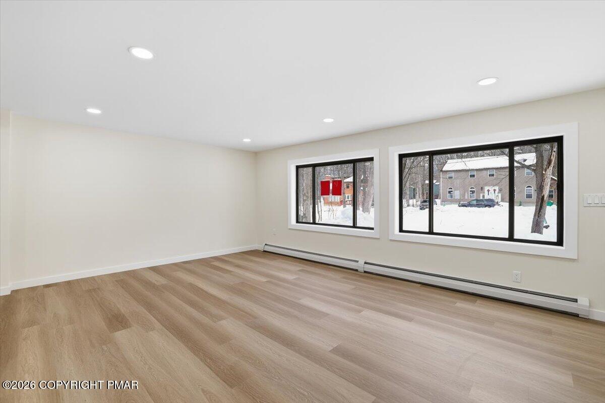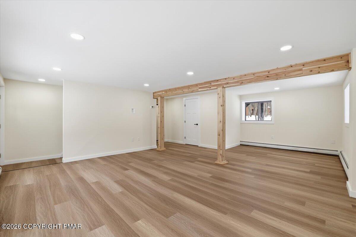 Enjoy peace of mind with EFFICIENT hot water baseboard heating system - no expensive electric baseboard heating bills! - and tasteful updates in each room. Main level features open concept living area with NEW kitchen, NEW flooring, and NEW full bath & primary bedroom. Upstairs, find three more bedrooms with another FULLY REMODELED bath. Lower level offers the perfect game room, a third UPDATED bath, and the 5th bedroom. This is a true five bed, three bath with game room.