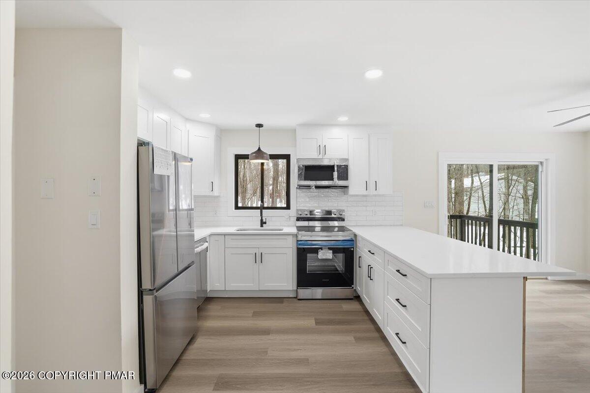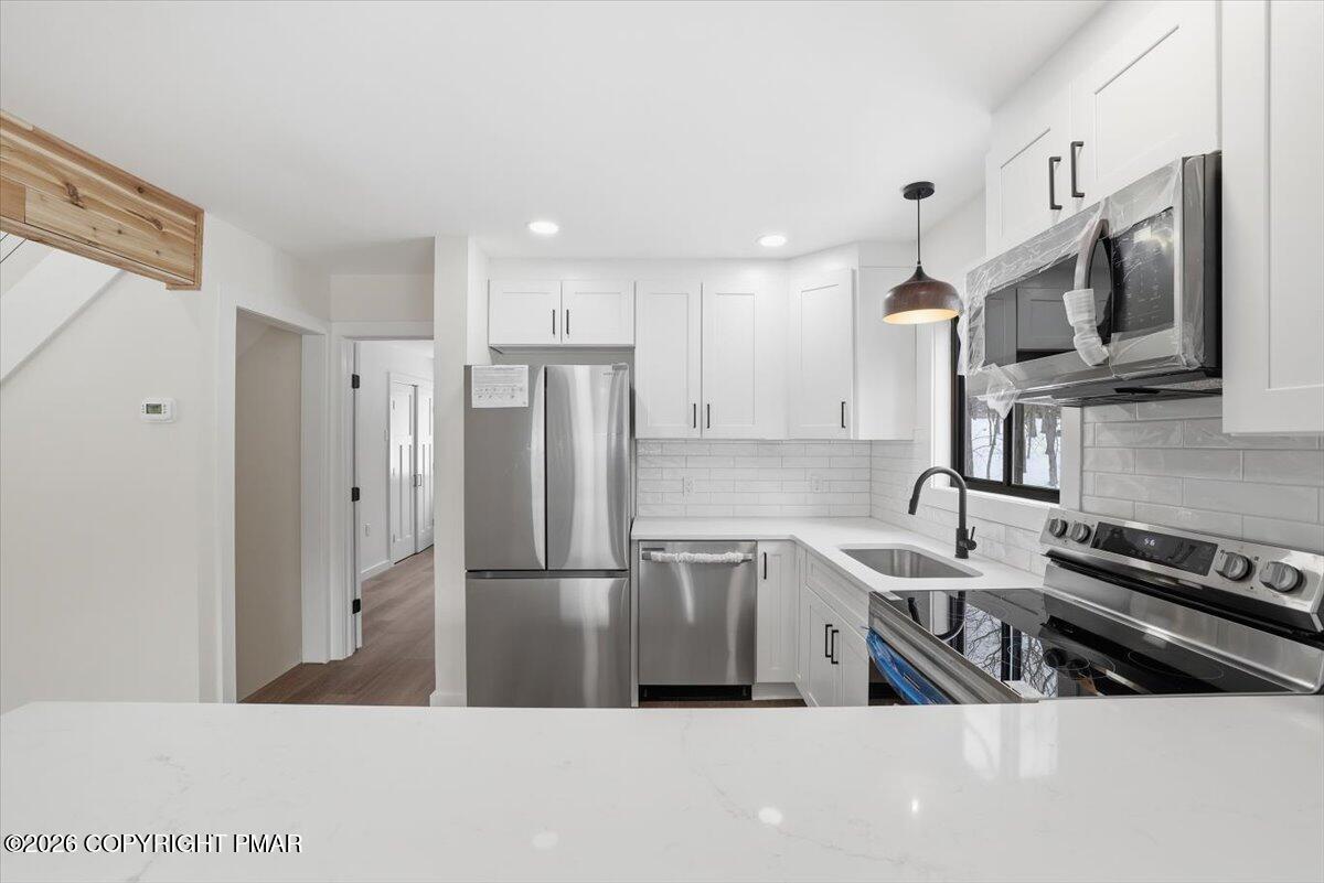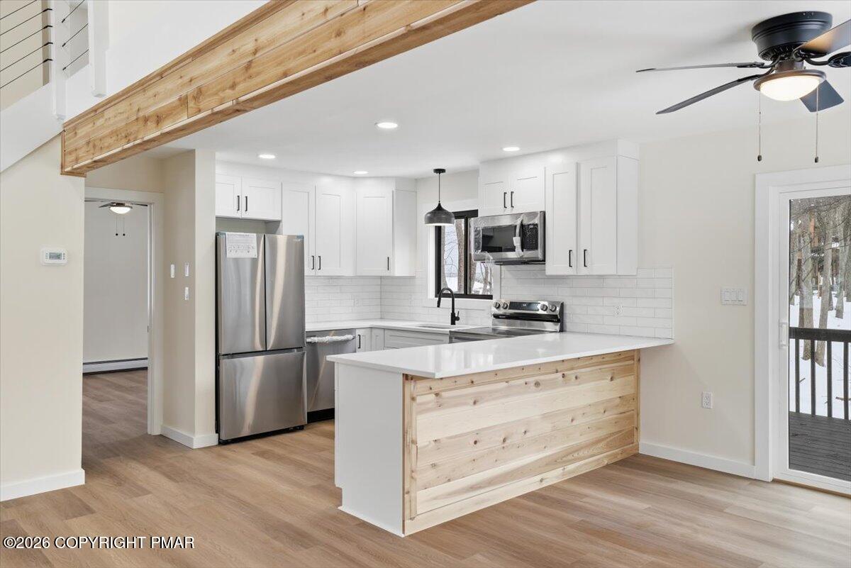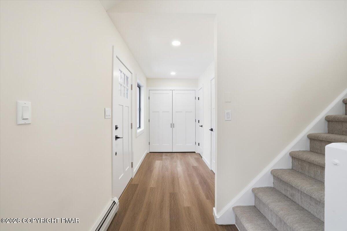Enjoy peace of mind with EFFICIENT hot water baseboard heating system - no expensive electric baseboard heating bills! - and tasteful updates in each room. Main level features open concept living area with NEW kitchen, NEW flooring, and NEW full bath & primary bedroom. Upstairs, find three more bedrooms with another FULLY REMODELED bath. Lower level offers the perfect game room, a third UPDATED bath, and the 5th bedroom. This is a true five bed, three bath with game room.