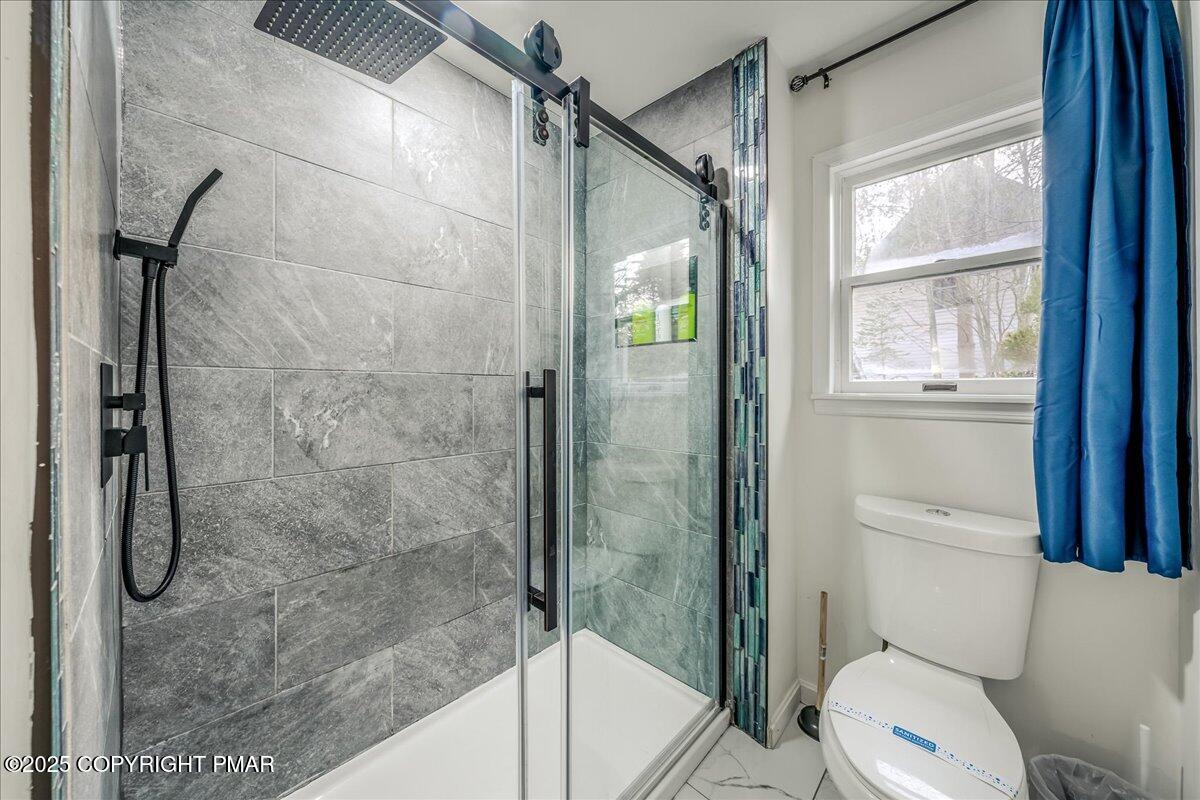Do not miss this turnkey, fully furnished, and STR-ready in Pocono Farms Country Club priced under $300,000! This beautifully remodeled home delivers the ideal blend of modern comfort, eye-catching style, and unbeatable amenity access. Featuring vaulted ceilings, a stone fireplace, and an open-concept living area, the home feels bright, spacious, and perfect for hosting. The upgraded kitchen offers a large center island, granite counters, stainless appliances, and direct access to the deck and screened-in porch for seamless indoor/outdoor entertaining. The layout truly shines with a convenient first-floor bedroom suite, two additional bedrooms, updated baths, and a spacious bonus room perfect for a game room, lounge, or extra sleeping space. Step outside to a private backyard, oversized driveway, and a brand-new hot tub your guests will love. Added perks include a Tesla charger and RV hookup to boost rental appeal. Located in Pocono Farms Country Club, you'll enjoy access to a lakeside beach, championship golf course, fitness center, pool, restaurant, bar, and more. Minutes to Kalahari, Camelback skiing and waterparks, Mt. Airy Casino, state parks, shopping, and I-80, this property offers year-round demand and effortless rental potential. A fully furnished, move-in-ready opportunity like this is rare - don't wait to schedule your showing!