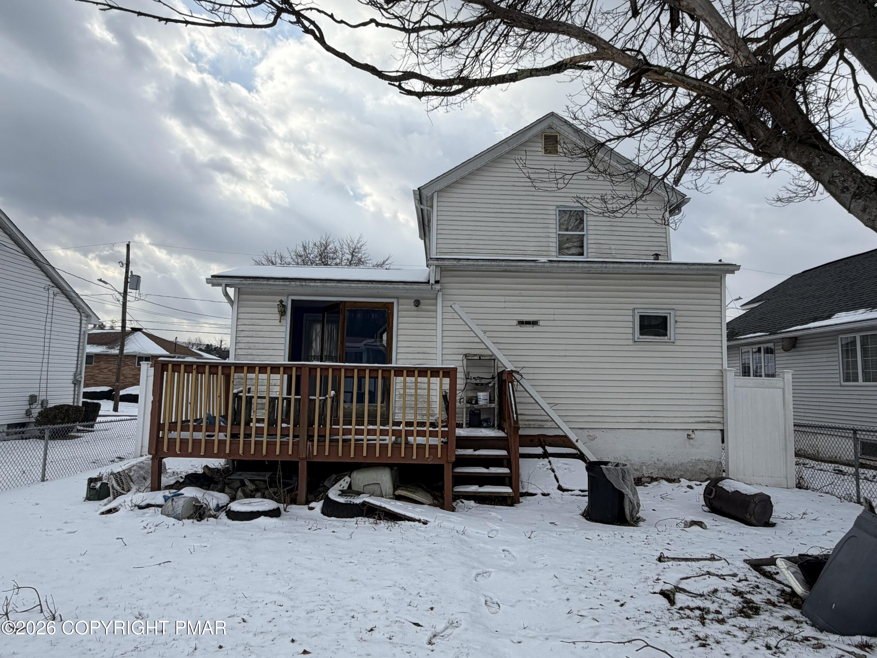 Rare investor opportunity at an increasingly hard-to-find price point in Jessup Borough. This 2-bedroom, 1-bath two-story home offers a strong, functional layout with multiple value-add paths for renovation, rental, or resale. The main level features a spacious living room, separate dining area, eat-in kitchen, and full bath, creating a solid foundation for modern updates and improved flow. The second floor includes two well-proportioned bedrooms with a central hall, offering separation of living and sleeping space that appeals to both end buyers and long-term tenants. A covered front porch and rear deck add usable outdoor space and enhance overall marketability. Conveniently located just minutes from Downtown Jessup, Scranton, and Interstate 81, with easy access to shopping, dining, healthcare, schools, and major employment corridors throughout Lackawanna County. Priced under $90,000, this property represents a high-leverage opportunity for investors seeking renovation upside, rental positioning, or resale potential in a proven location. Don't miss out - schedule your tour today!