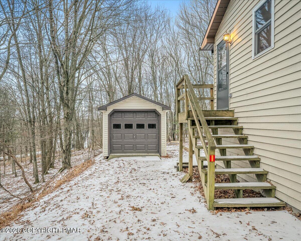 Tucked away on a quiet, wooded lot in the Back Mountain, this spacious Dallas home offers a flexible layout, solid bones, and an excellent opportunity to personalize. The main level features a large living room filled with natural light, flowing into an open dining area with sliding doors to a rear deck overlooking the trees. The kitchen offers generous cabinet space, a functional layout, and room to update over time while remaining fully usable today. Upstairs, you'll find three bedrooms including a generously sized primary bedroom, along with a full hall bath. A full basement provides ample storage, workshop space, and mechanicals, while the attached garage adds everyday convenience. Outside, enjoy a peaceful, private setting with mature trees, a side deck with ramp access, perfect for entertaining, and additional outbuildings offering storage or hobby potential. Located just minutes from schools, shopping, and dining in the Back Mountain, with easy access to Wilkes Barre and surrounding areas. A well-maintained home with strong potential, generous square footage, and a setting that's hard to replicate. This is an excellent option for buyers seeking space, privacy, and the ability to add value over time. Schedule your tour today!