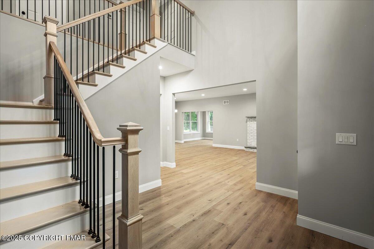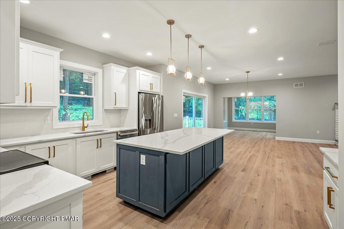 **Brand New Construction** This stunning 4-bedroom, 3 full-bath home combines modern comfort with smart design. As you step through the front door, high ceilings and a stunning chandelier welcome you into the open-concept main level, complete with wide plank luxury vinyl flooring, a cozy wood-burning fireplace, a bright sunroom off the living room, a bedroom, a separate office/bonus room, and a full bath, perfectly rounding out the main level.