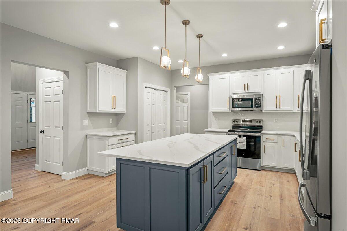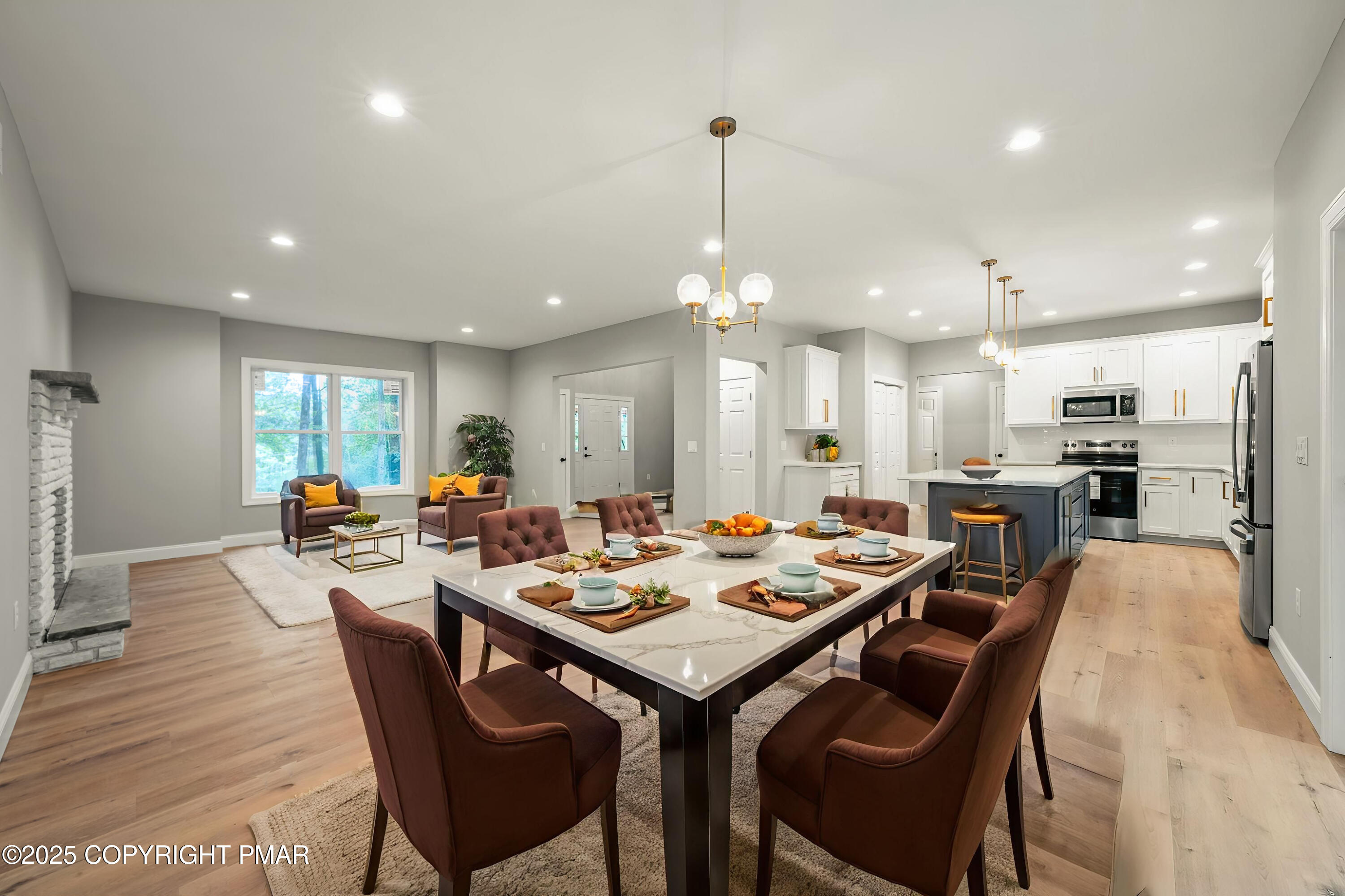 The chef's kitchen shines with custom cabinetry, quartz countertops, stainless steel appliances, and a spacious center island perfect for entertaining. Upstairs, you'll find 3 bedrooms, 2 full baths, including the primary suite, and the second-floor laundry.