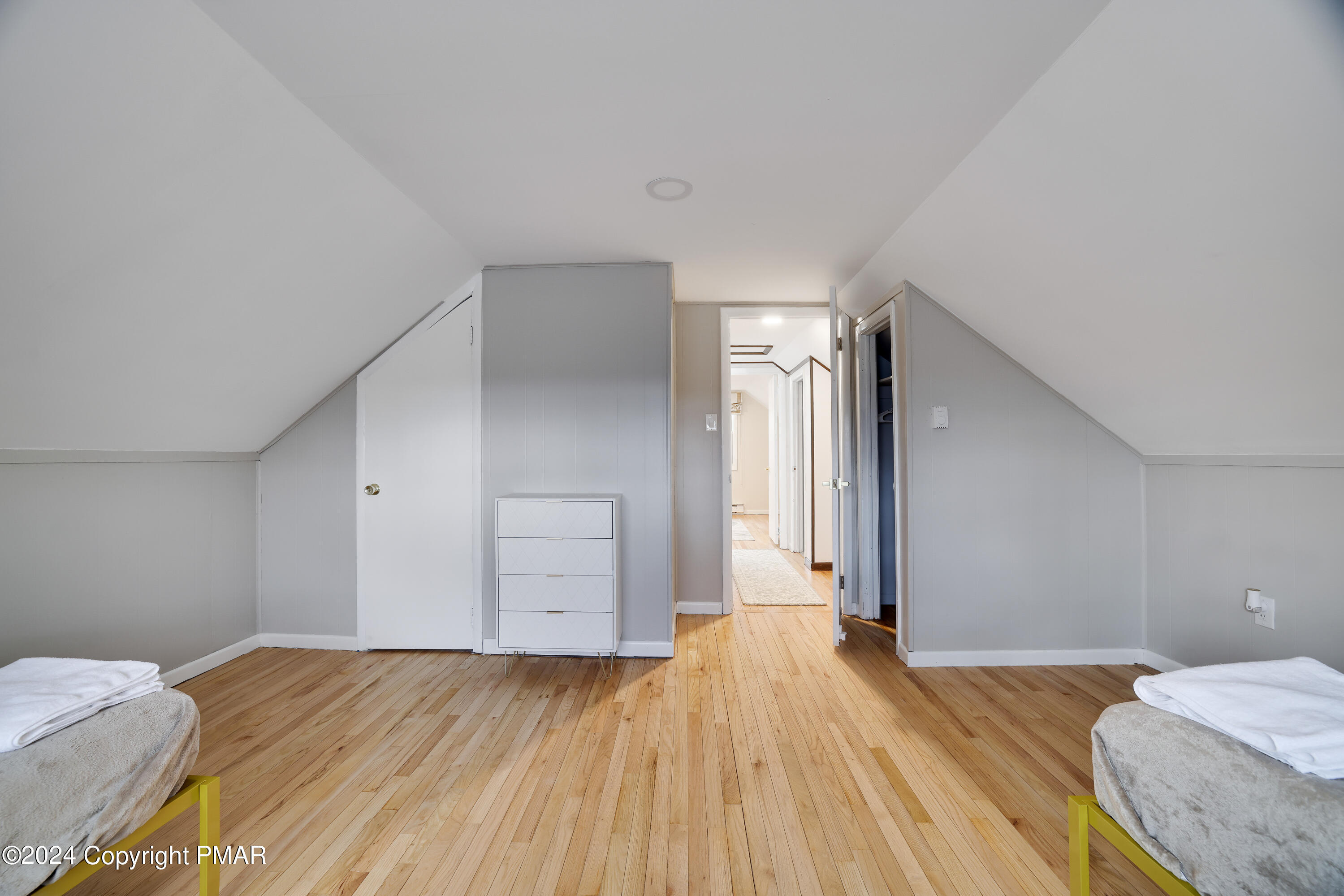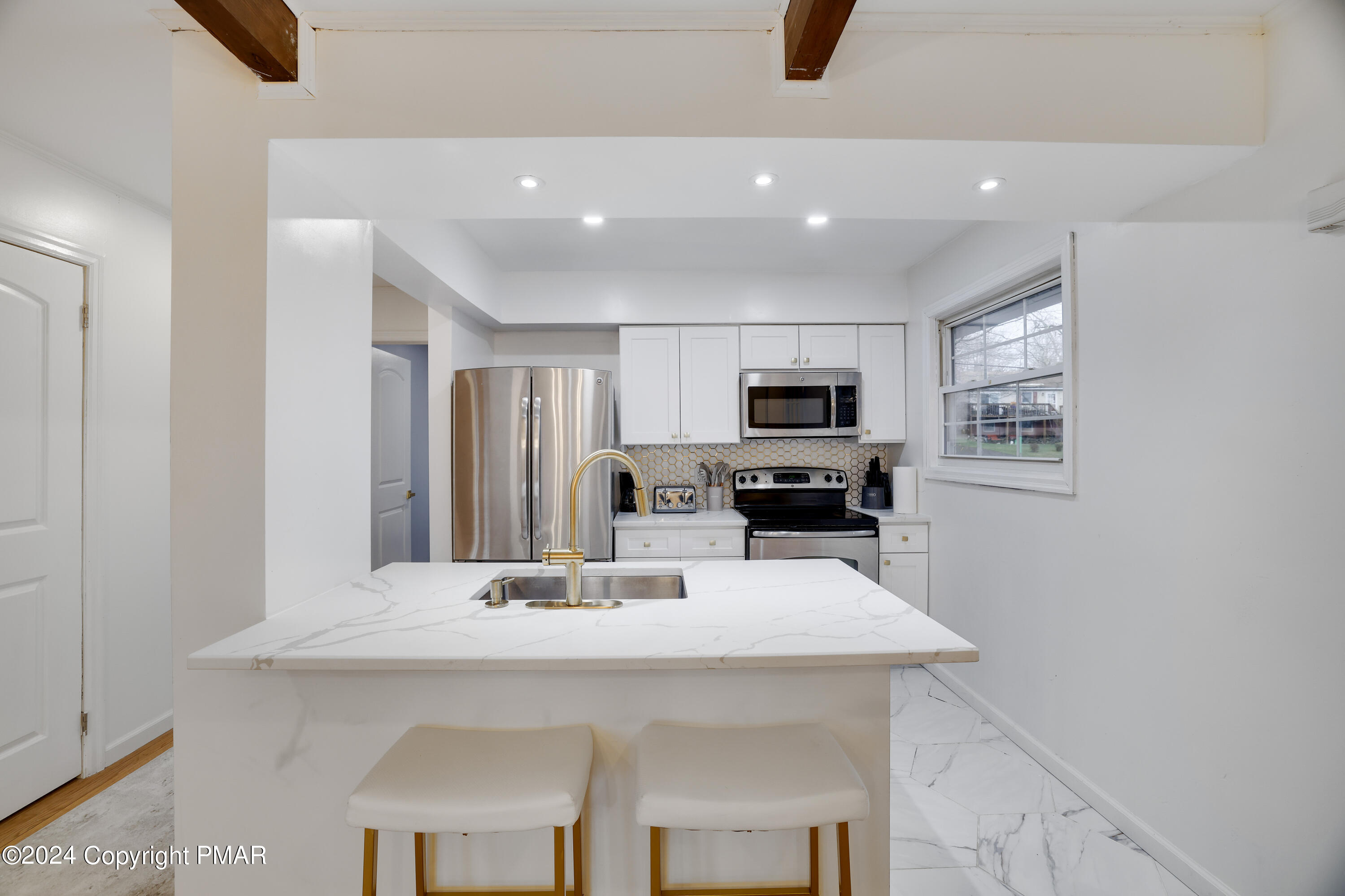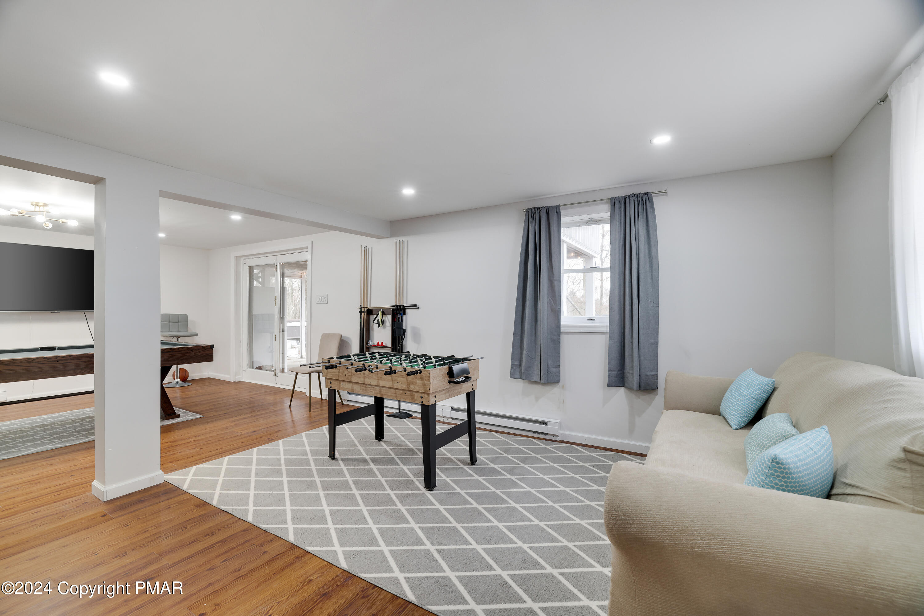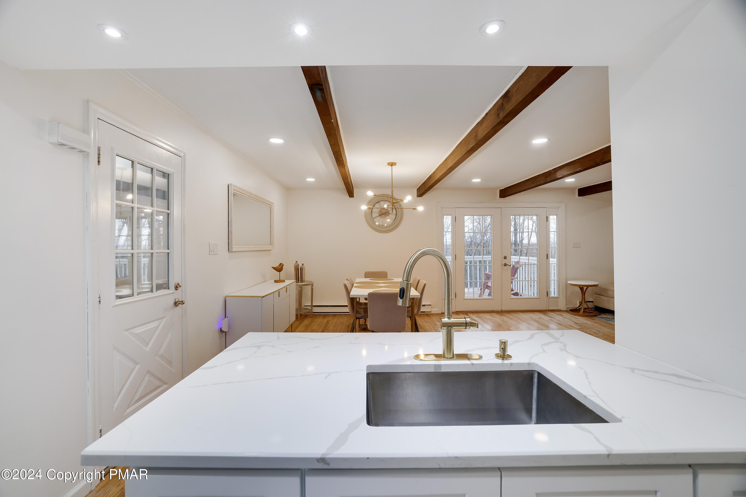 Newly renovated 6 bedroom, 3 full bath contemporary on a private 1/2 acre setting in the 5 lake community of Emerald Lakes within walking distance to the beaches of Emerald and Pine Tree Lakes. Entertain in the spacious open concept great room with exposed wood beams, a beautiful oversized impressive floor to ceiling stone fireplace, hardwood floors, recess lighting and french doors that open to the rear deck for outdoor gatherings and barbecues. There is a large entry foyer and sitting room, 2 bedrooms and a full bath on the main level. The upper level has 2 additional generous sized bedrooms and a full bath. The LL has a family/rec room with a 2nd stone FP, an amazing bar/2nd kitchen with a sliding door to a large patio with a hot tub and a fenced in private back yard. There are 2 more bedrooms and a 3rd full bath. Use the oversized built-in garage for all of your beach, boating, and ski gear. Enjoy all of the amenities Emerald Lakes has to offer, indoor and outdoor pools, swimming and boating, a clubhouse with a bar and grill, tennis and a fitness center. Or spend the day at a near by water park or ski area.