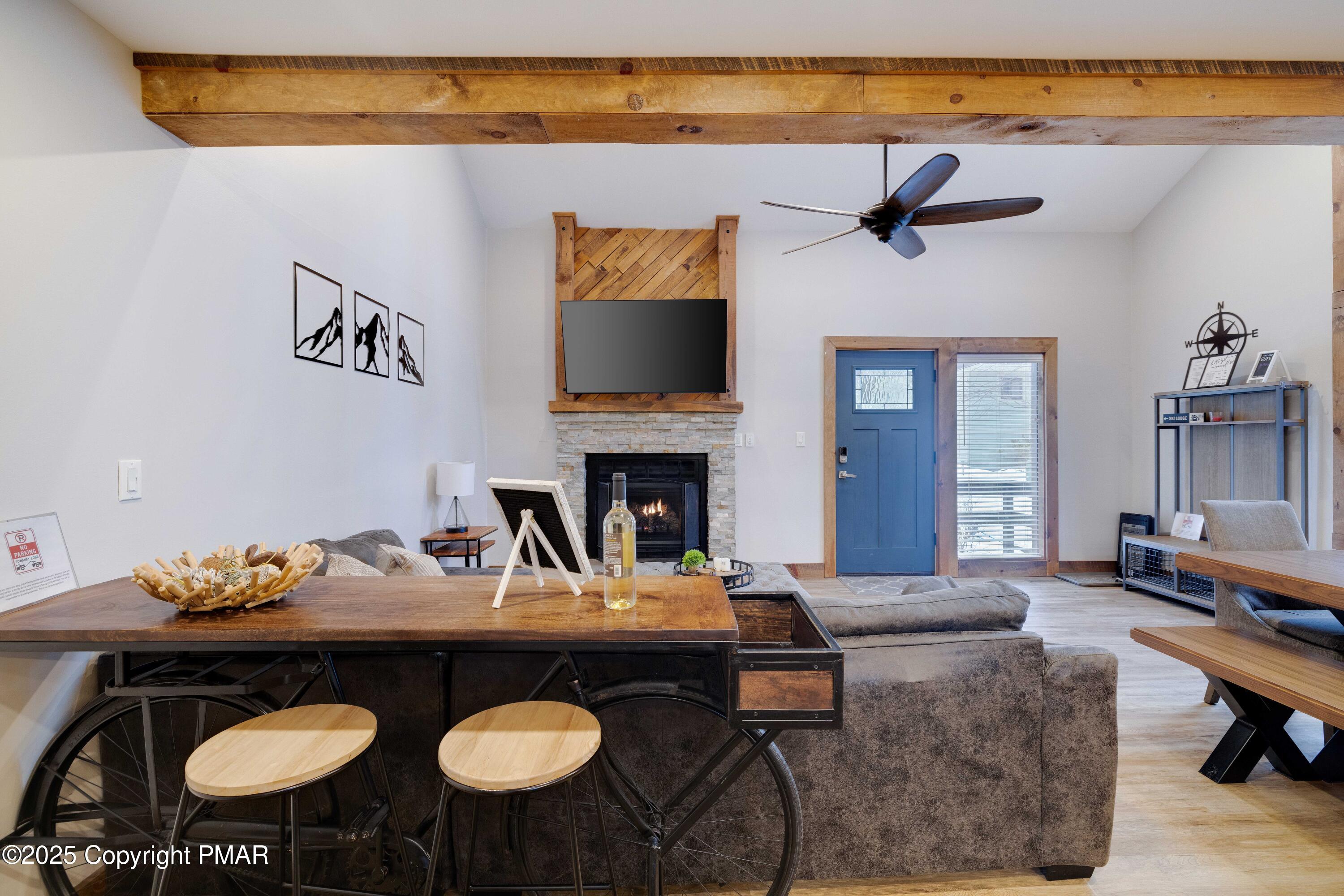 Welcome to Ski Side Dr. in Mountains Edge Village, the perfect year round mountain getaway or as a turnkey STR investment generating $72k revenue last year. Just steps away from Camelback Mountain Ski Resort and the Camelbeach Water Park. This three level mountain home comes fully furnished, with 4 bedrooms and 2.5 baths, beautiful tiled showers, and central AC. Enjoy the gas fireplace in the open concept great room with vaulted ceilings after a day on the slopes skiing or snowtubing. There is plenty of space for family and friends. Located near Big Pocono State Park, Pocono Premium Outlets, Kalahari Water Park Resort, Great Bear Lodge, Mt Airy Casino, breweries, and restaurants. Escape the city and come to the mountains!