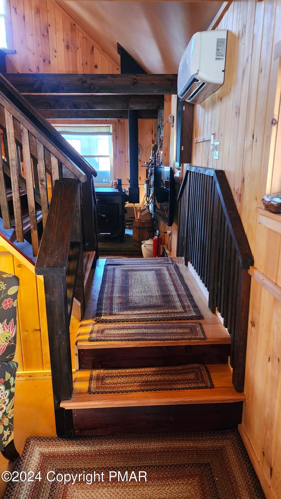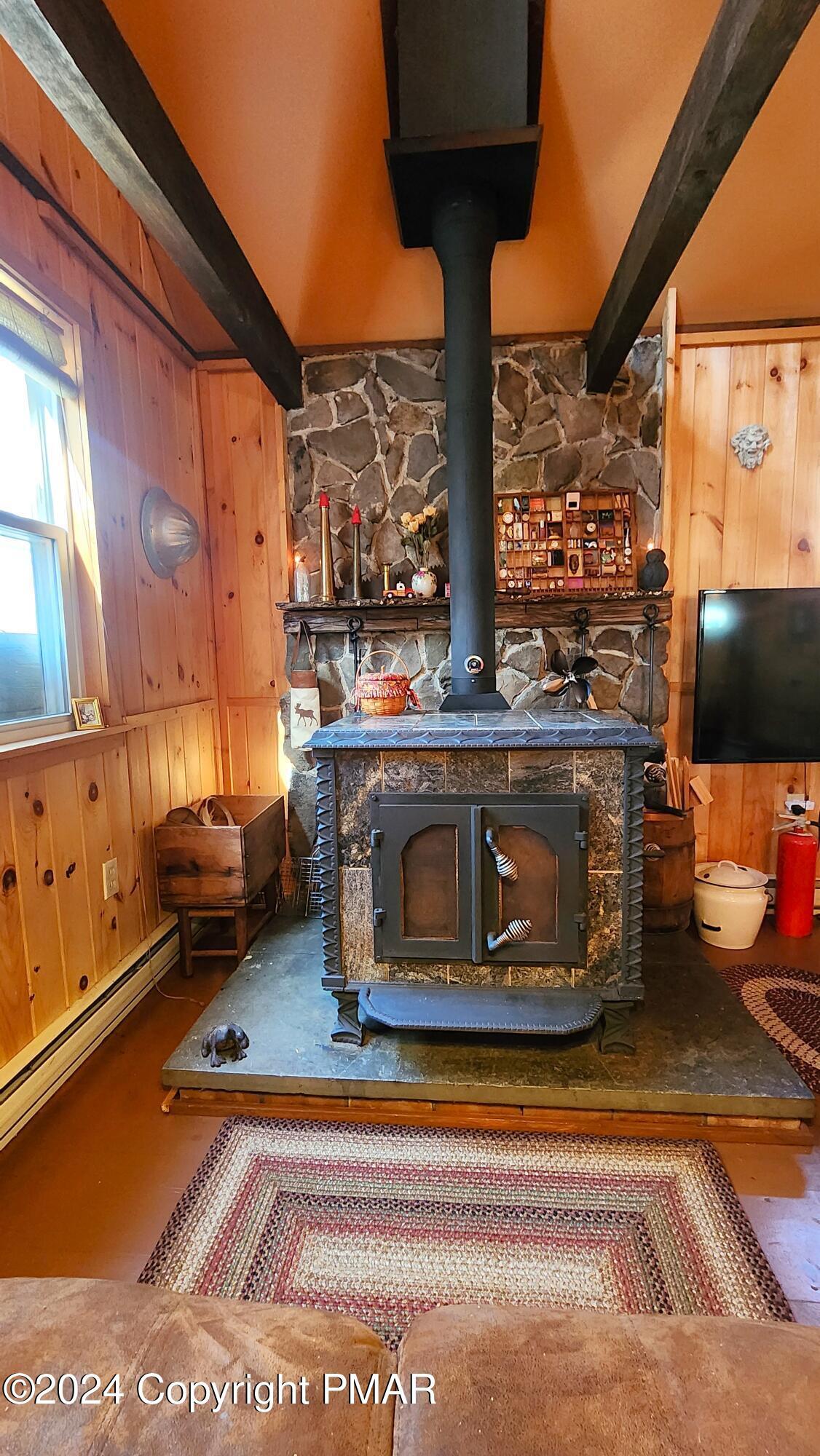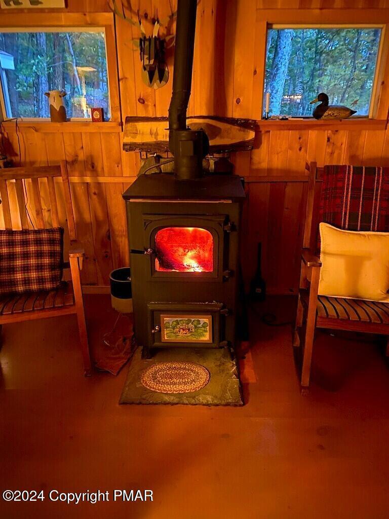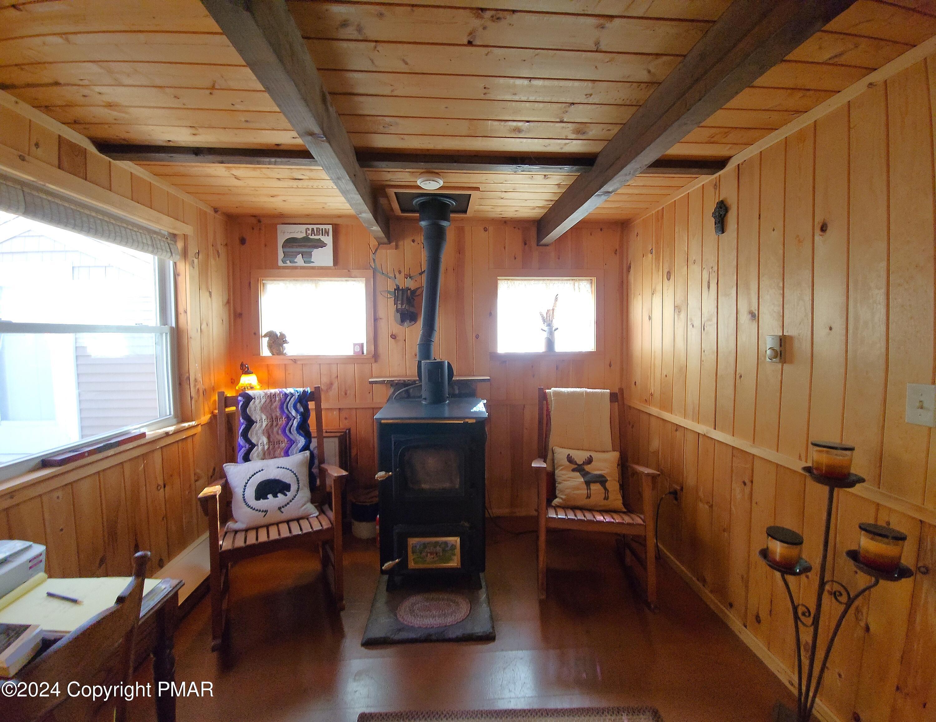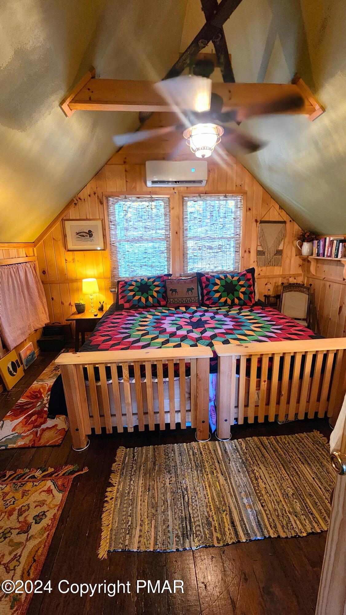 Inside the main cabin, the warm and inviting living room features a cozy coal-burning stove, while the kitchen and dining area open into a family room with a classic wood-burning stove. The main level also includes a full bathroom with a clawfoot tub and solid brass fixtures, plus a convenient laundry room. Step outside to take in the mountain air from the deck or unwind in your private outdoor shower!