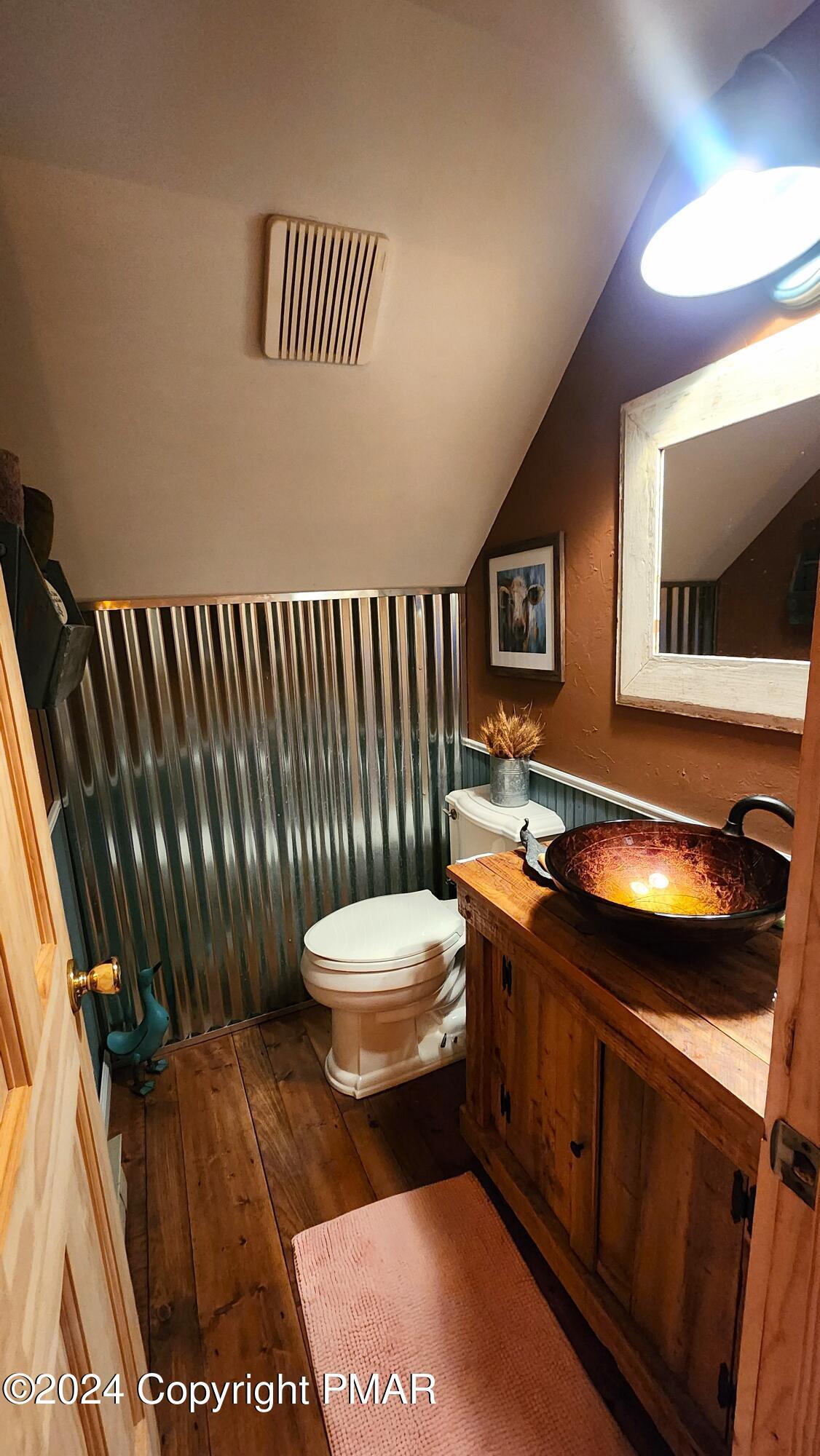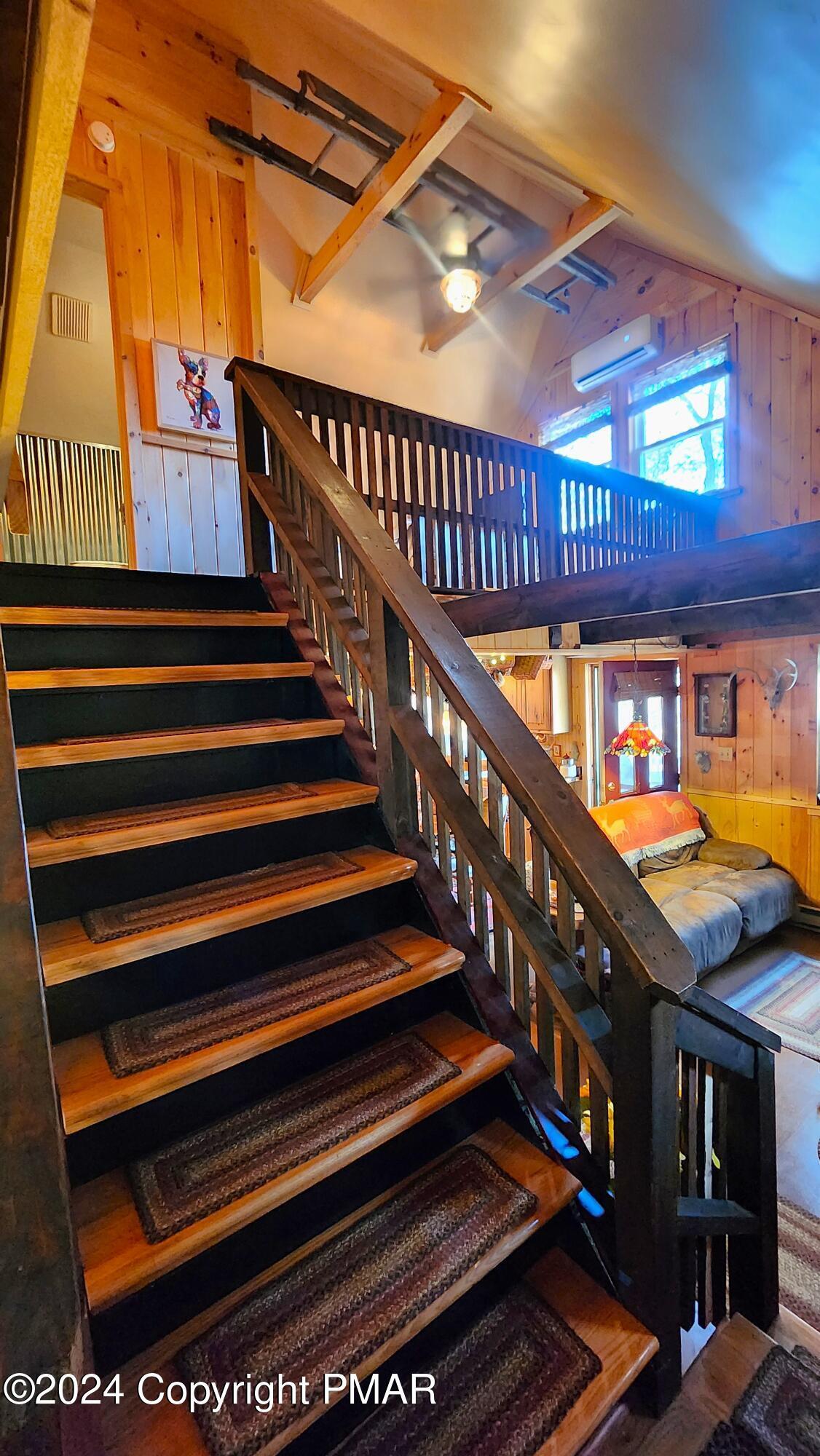 Upstairs, you'll find a loft, a primary bedroom, and a half bath.