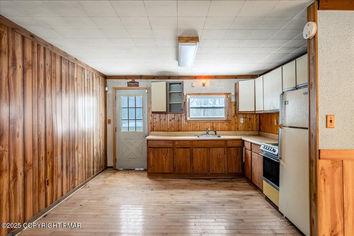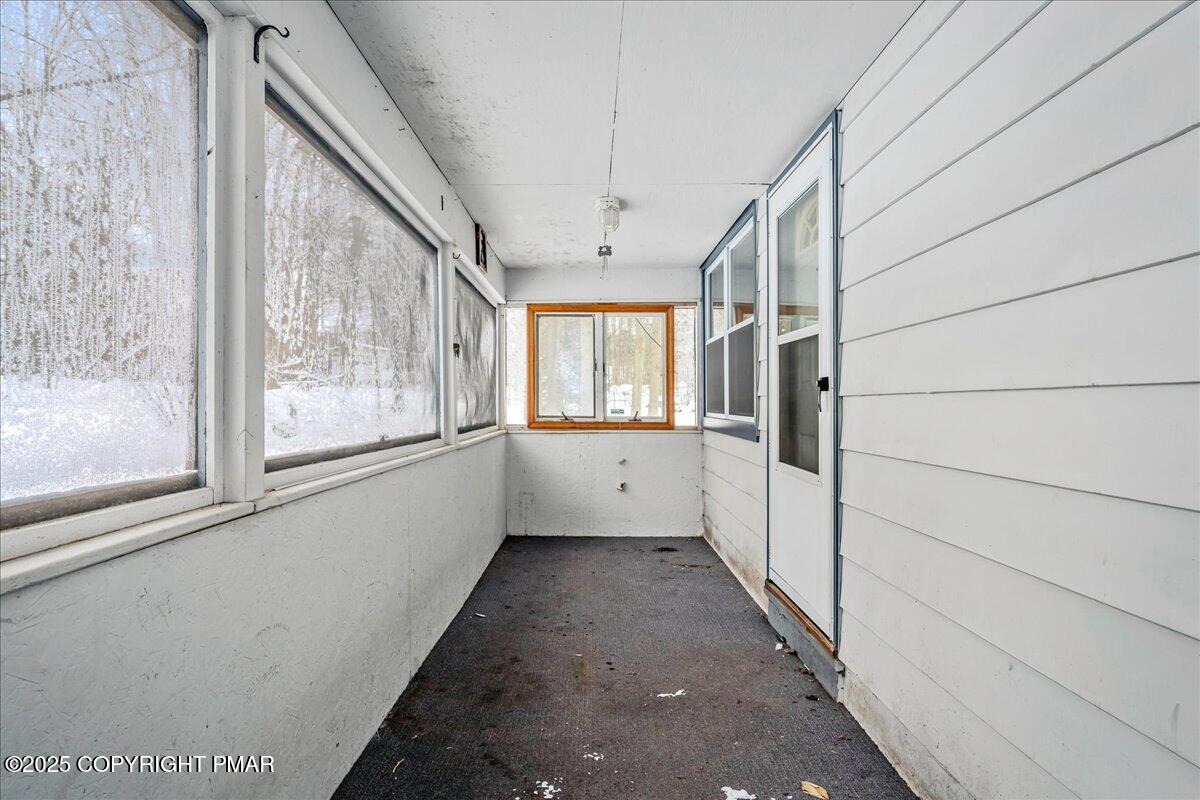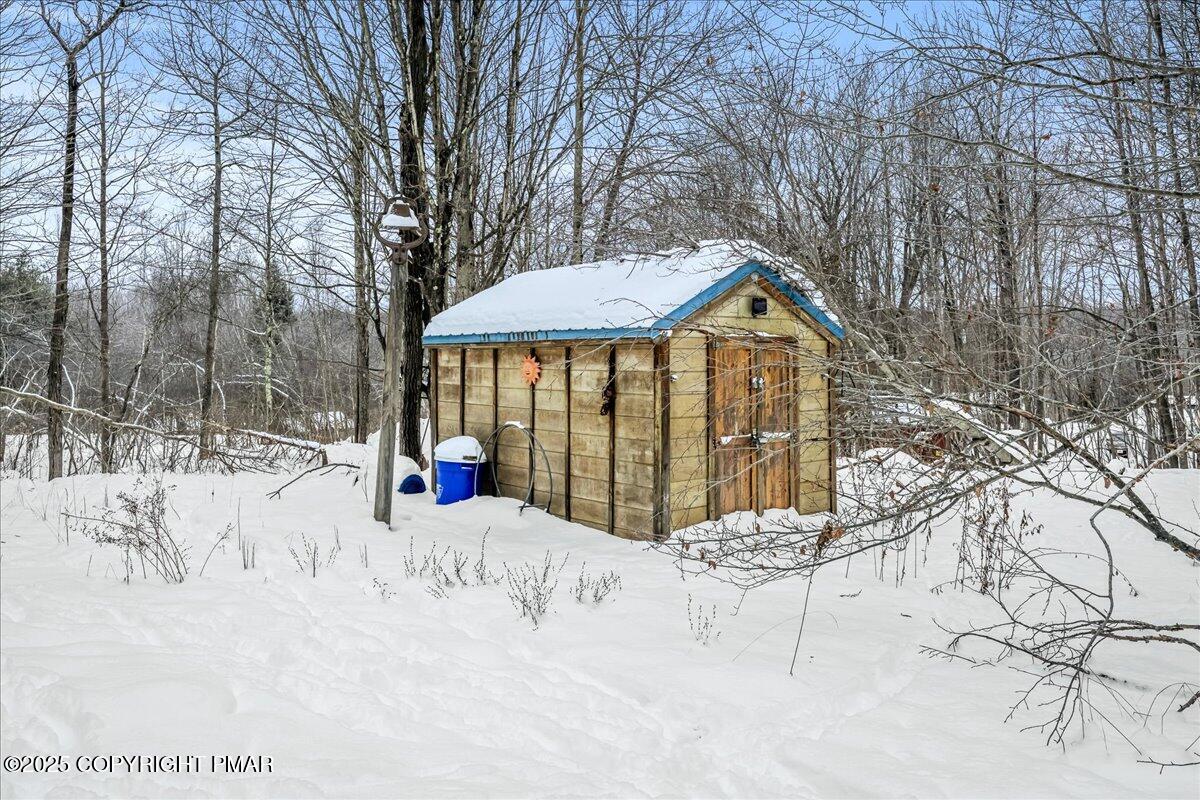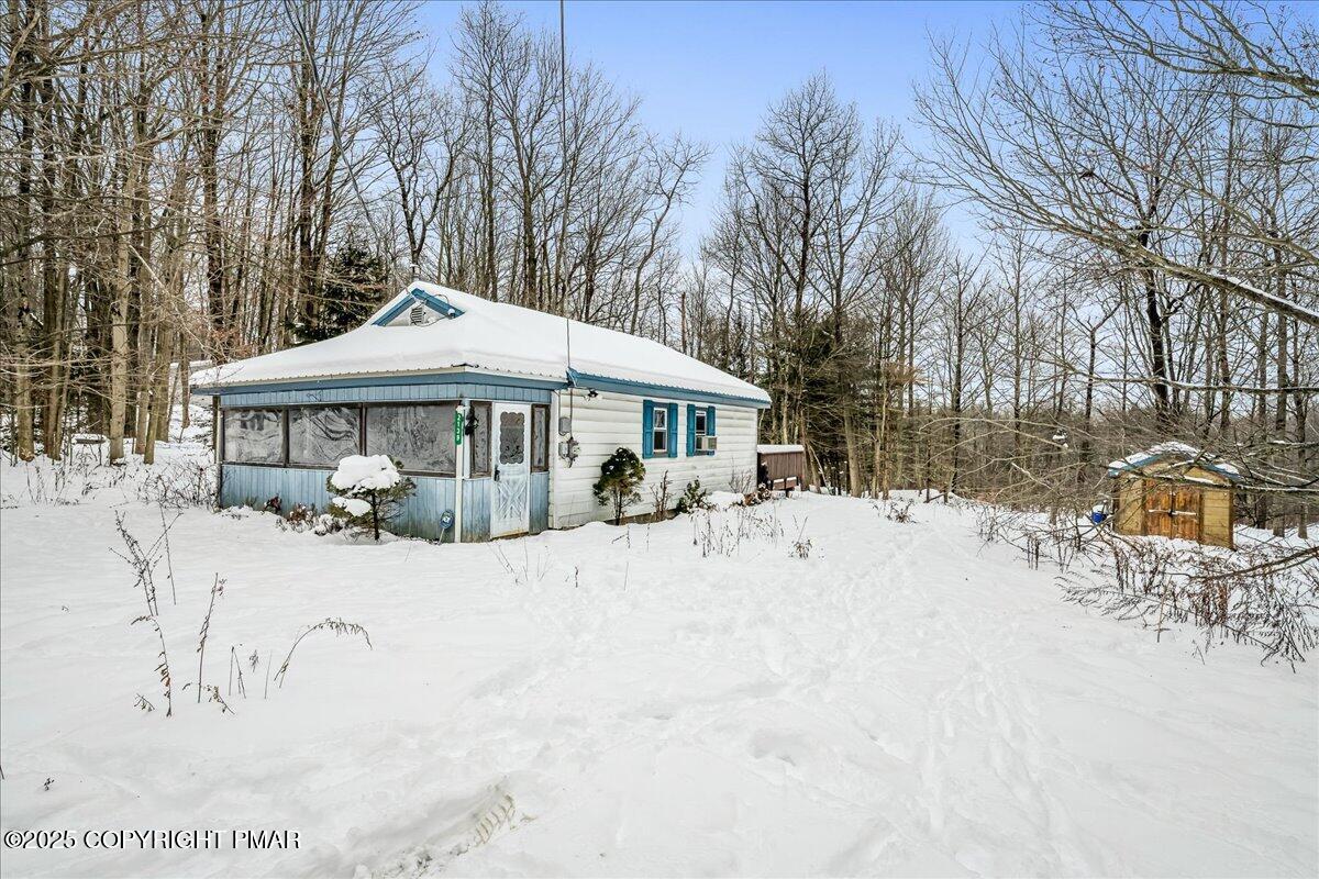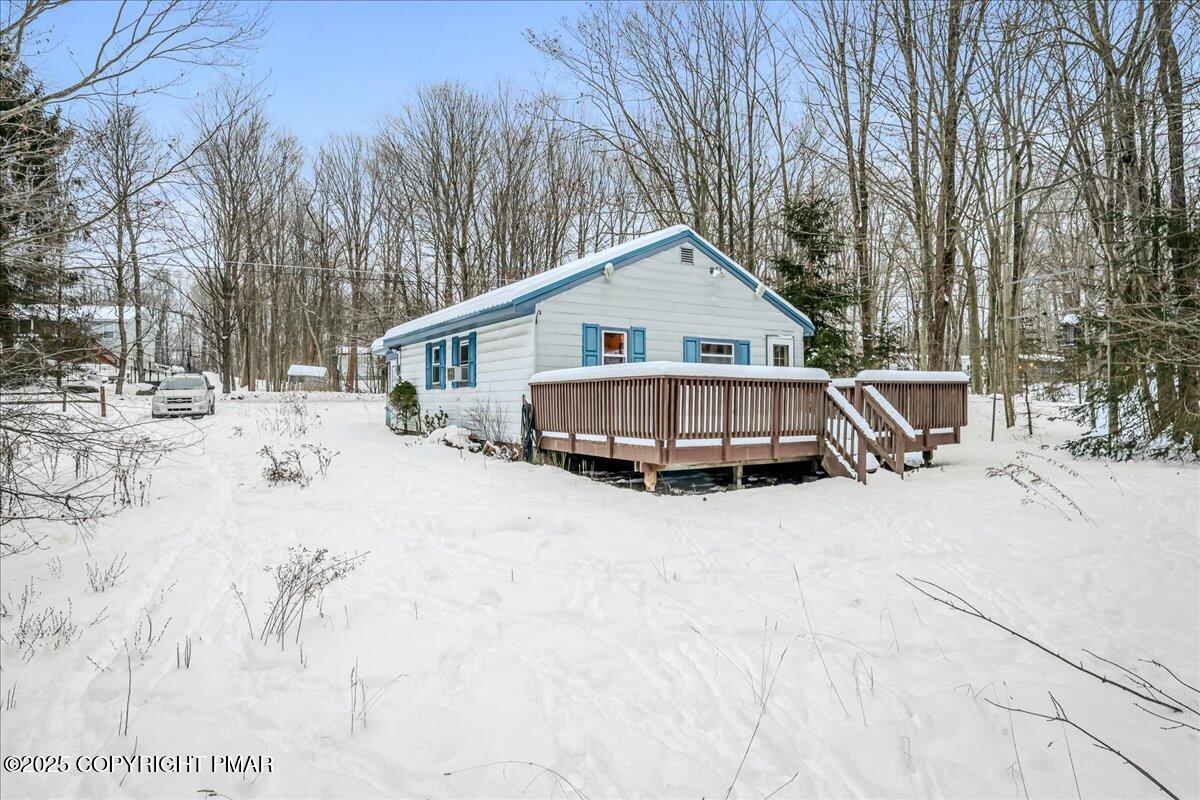 Tucked among the trees in the heart of the Pocono Mountains, this affordable and easy to maintain cabin offers a private, wooded setting with strong potential for the right buyer. The home features two bedrooms and one bathroom with a practical layout, complemented by a massive rear deck and screened porch that creates exceptional outdoor living space and makes the most of the natural surroundings. The deck is a true highlight, offering ample room for entertaining, relaxing, or simply enjoying the quiet mountain environment. Inside, the living area includes a brick-faced fireplace and an open, flexible flow into the kitchen and dining space, providing a solid base for renovation and customization. An enclosed front porch adds additional utility and works well as a mudroom, storage area, or bonus sitting space. Located near Gouldsboro State Park and Tobyhanna State Park, with easy access to the Lehigh River for kayaking, canoeing, and fishing, this area is well suited for outdoor enthusiasts. Additional nearby destinations include Lake Wallenpaupack, Camelback, Kalahari, and access to I 380. Priced under $80,000, this is a rare low-cost opportunity with meaningful upside in today's market. Schedule your tour today!