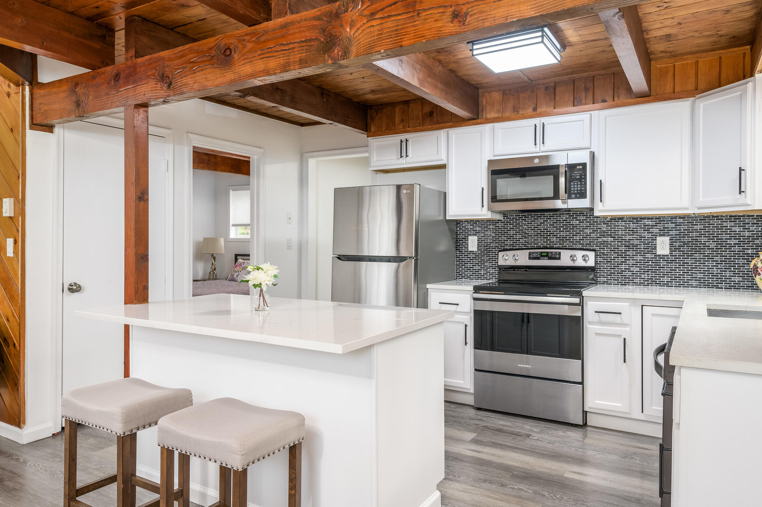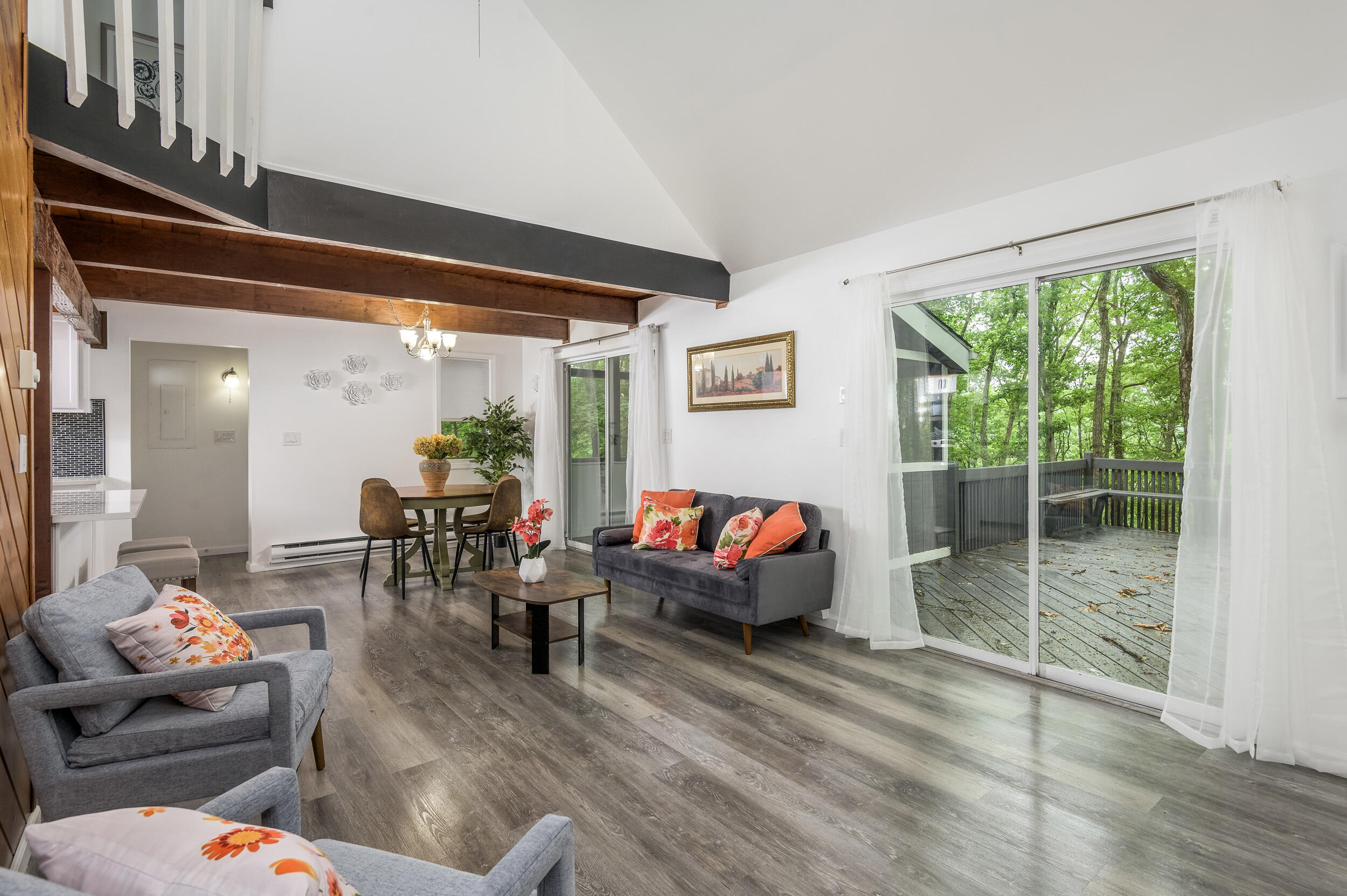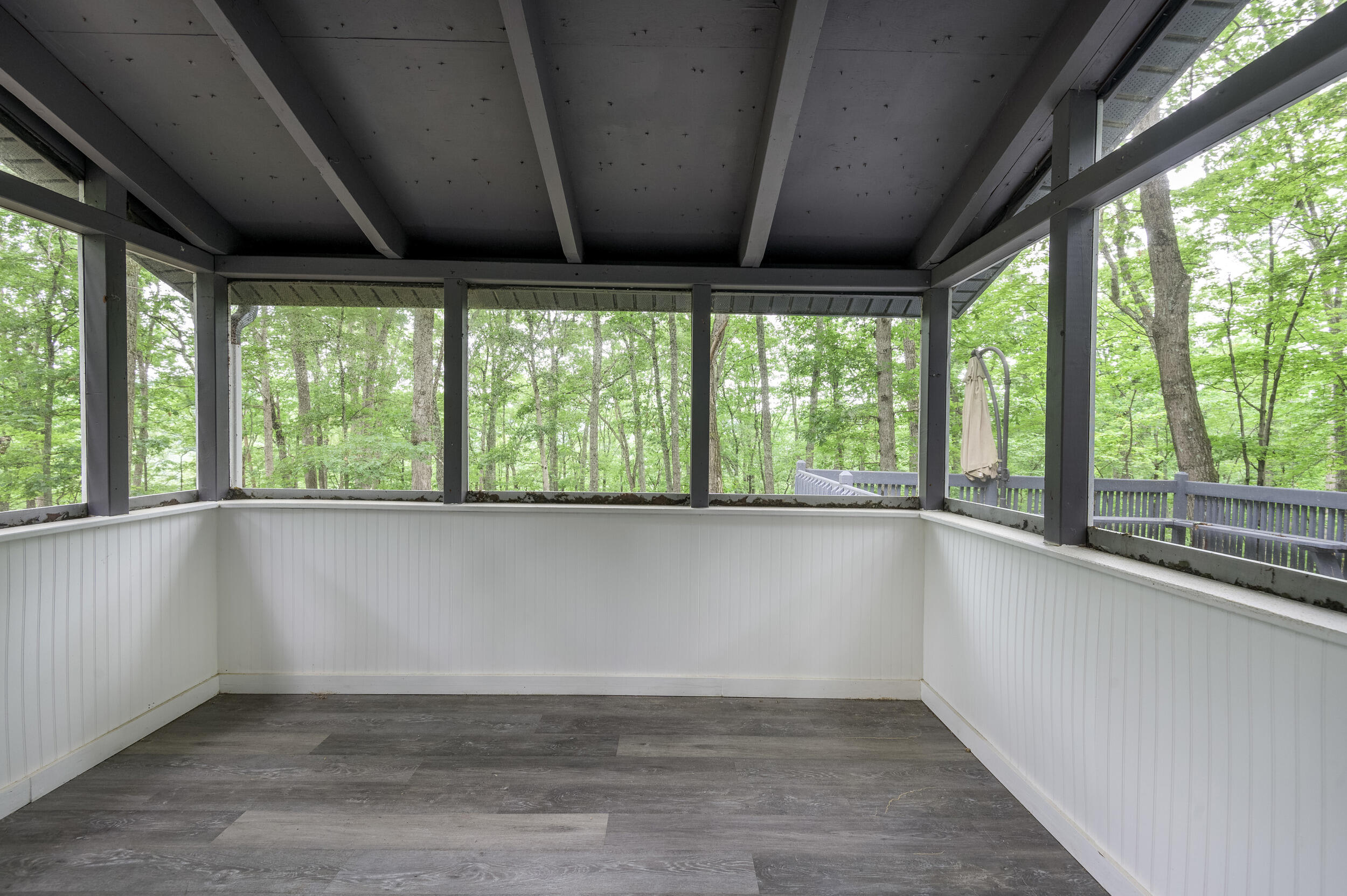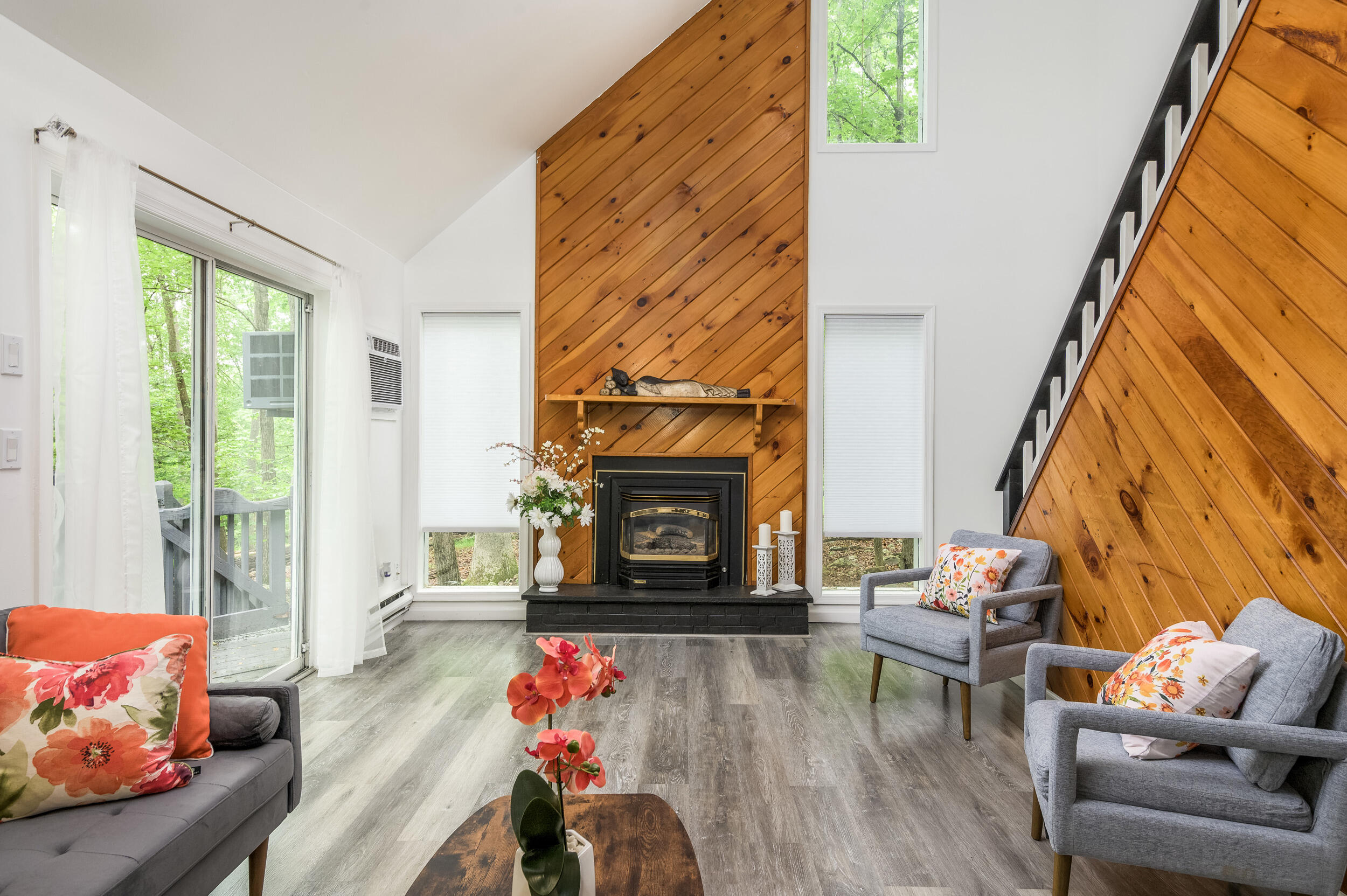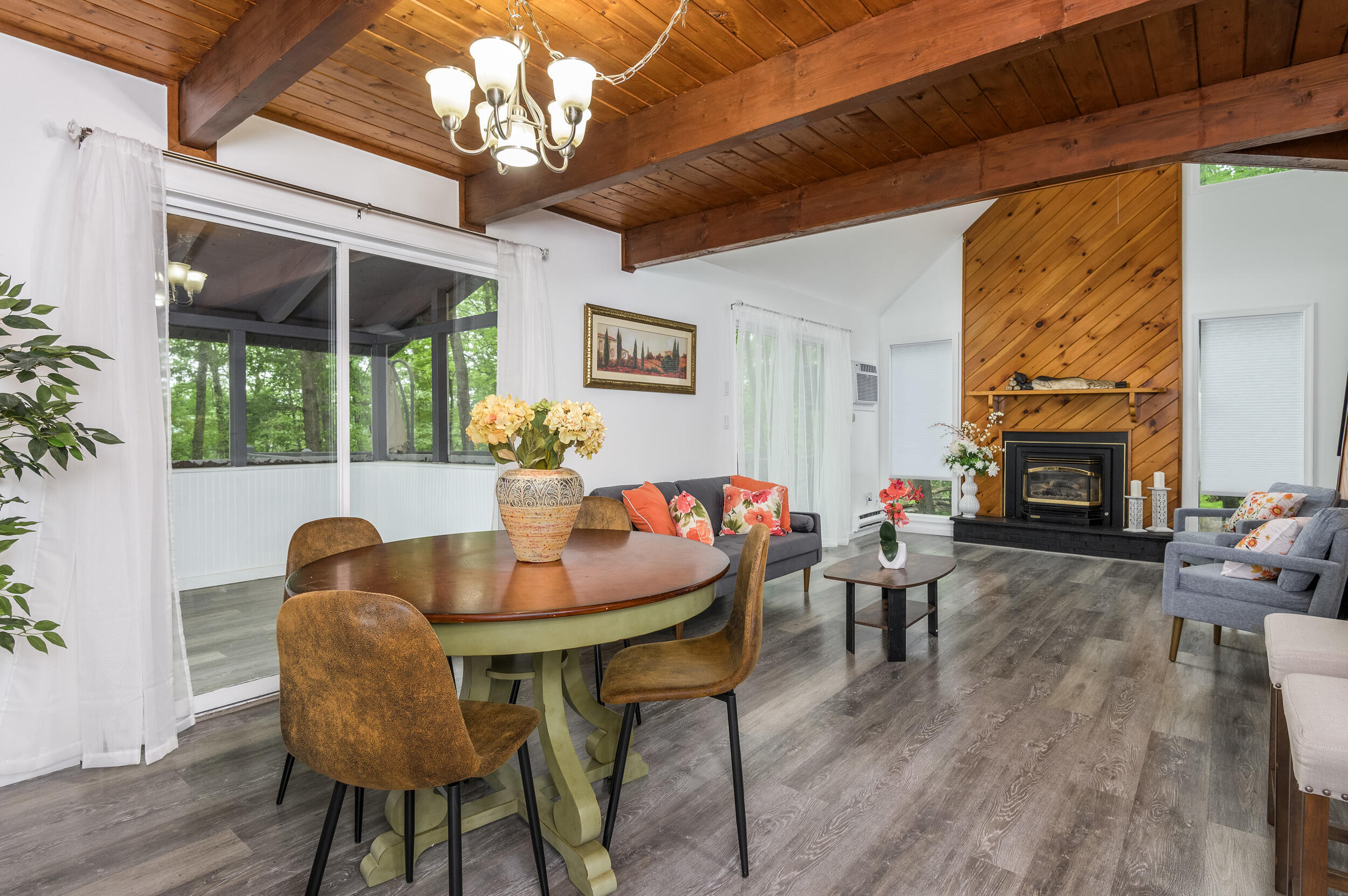 Move right into this completely renovated 4 bed 2 bath contemporary home in amenity filled Saw Creek Estates. This beautifully redone home boasts a bright open floor plan. New roof recently installed. Home was freshly painted inside & out. Kitchen has new appliances, cabinets & Corian counter tops. Large kitchen island adds extra counter space. All new light fixtures & recessed lighting throughout the home. Cathedral ceiling in living room & stone-faced fireplace with gas insert. Knotty pine ceilings in kitchen/dining really give the home a modern country feeling. Gorgeous, remodeled bathrooms with tiled floors. Large, screened porch & deck with a fabulous view. Property is located in a cul-de-sac & backs up to green belt. Call today for a showing! This beauty won't last!