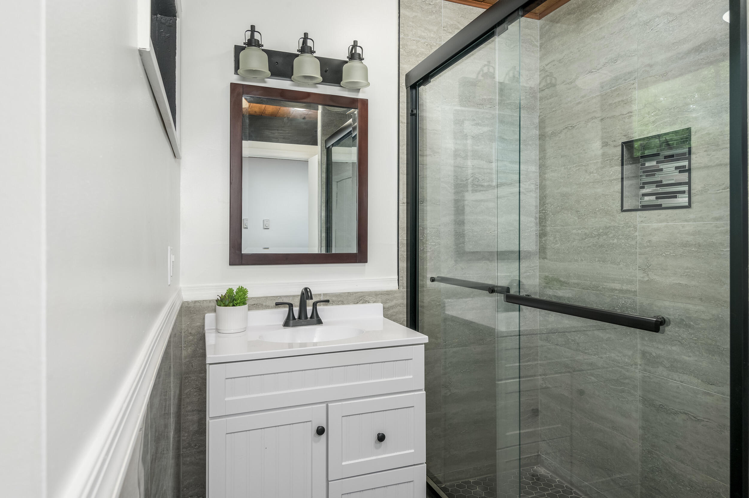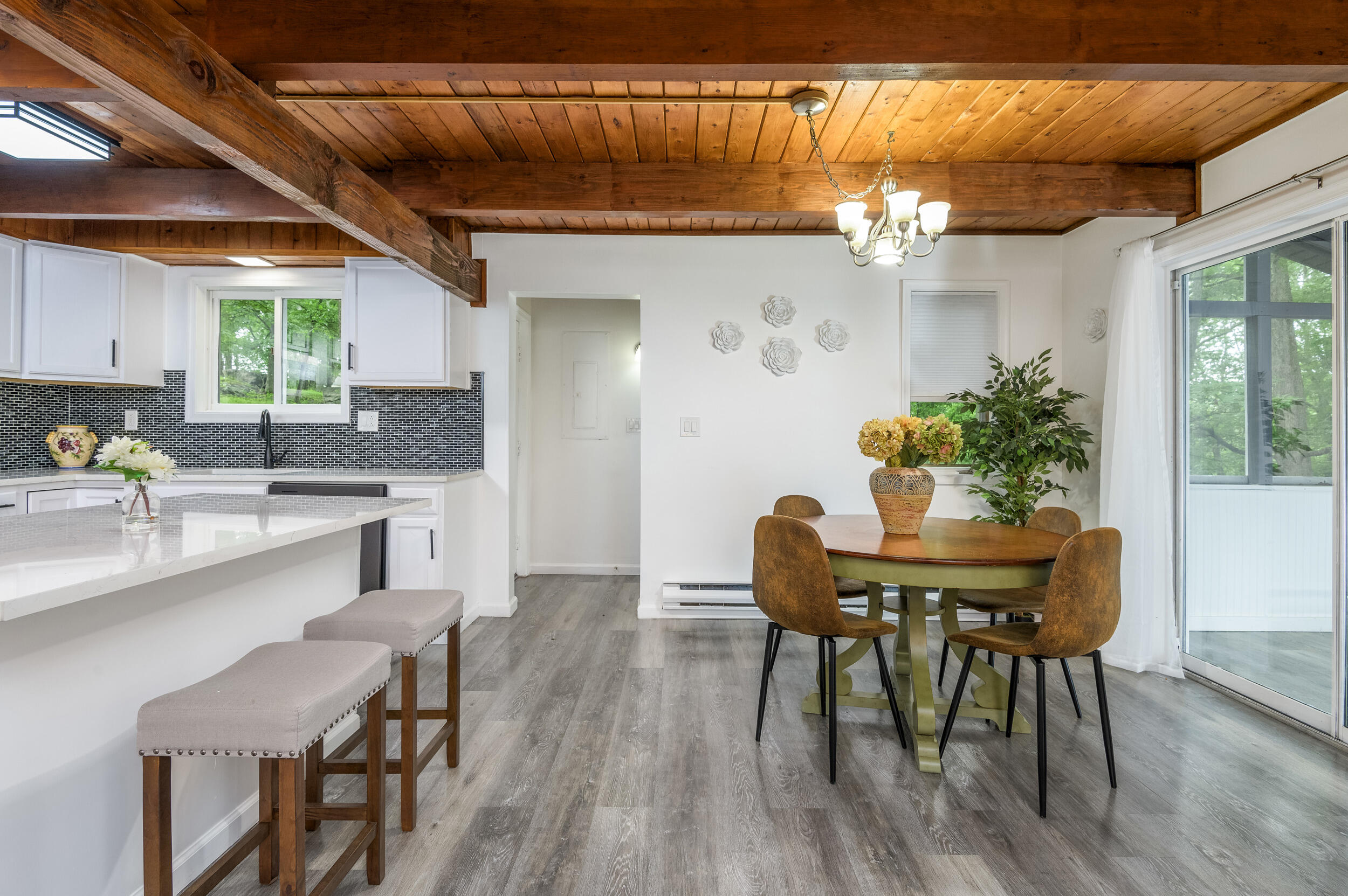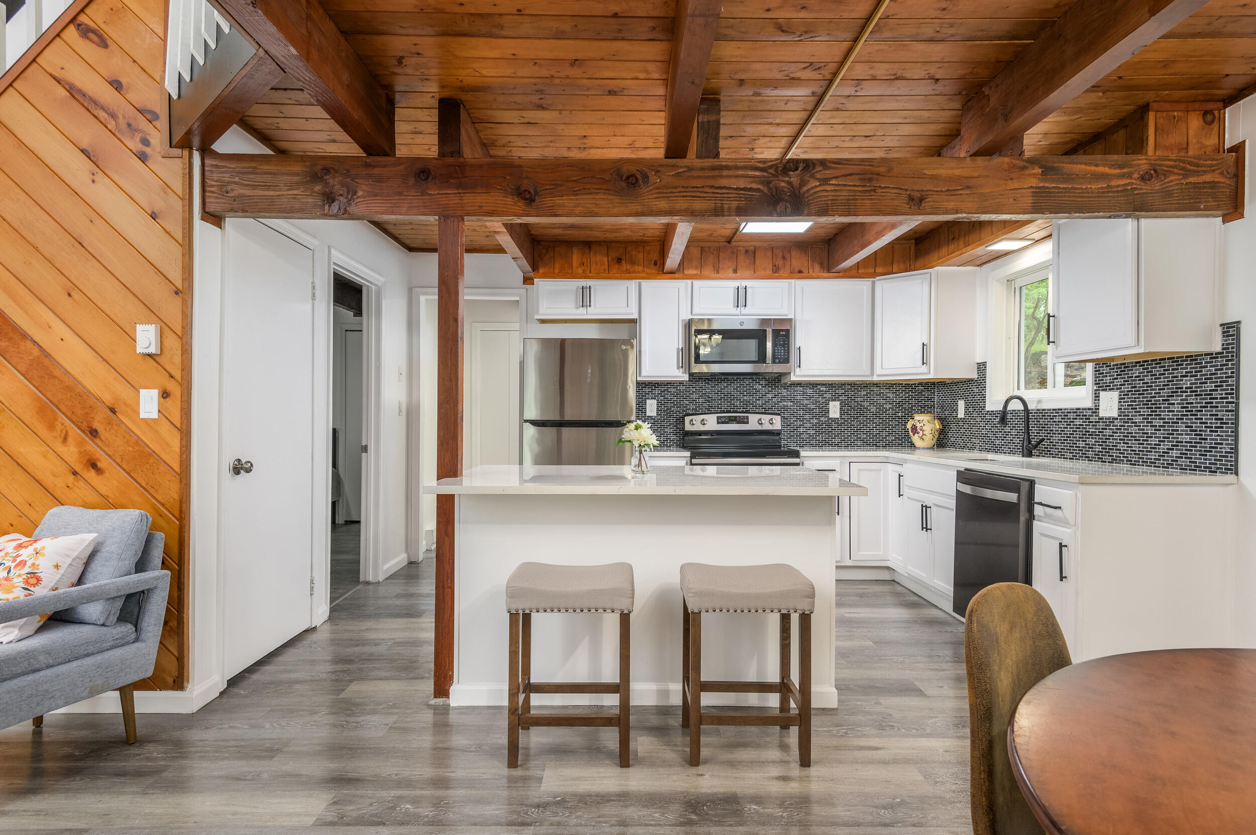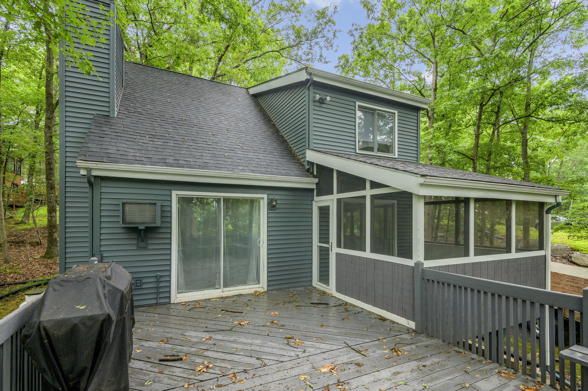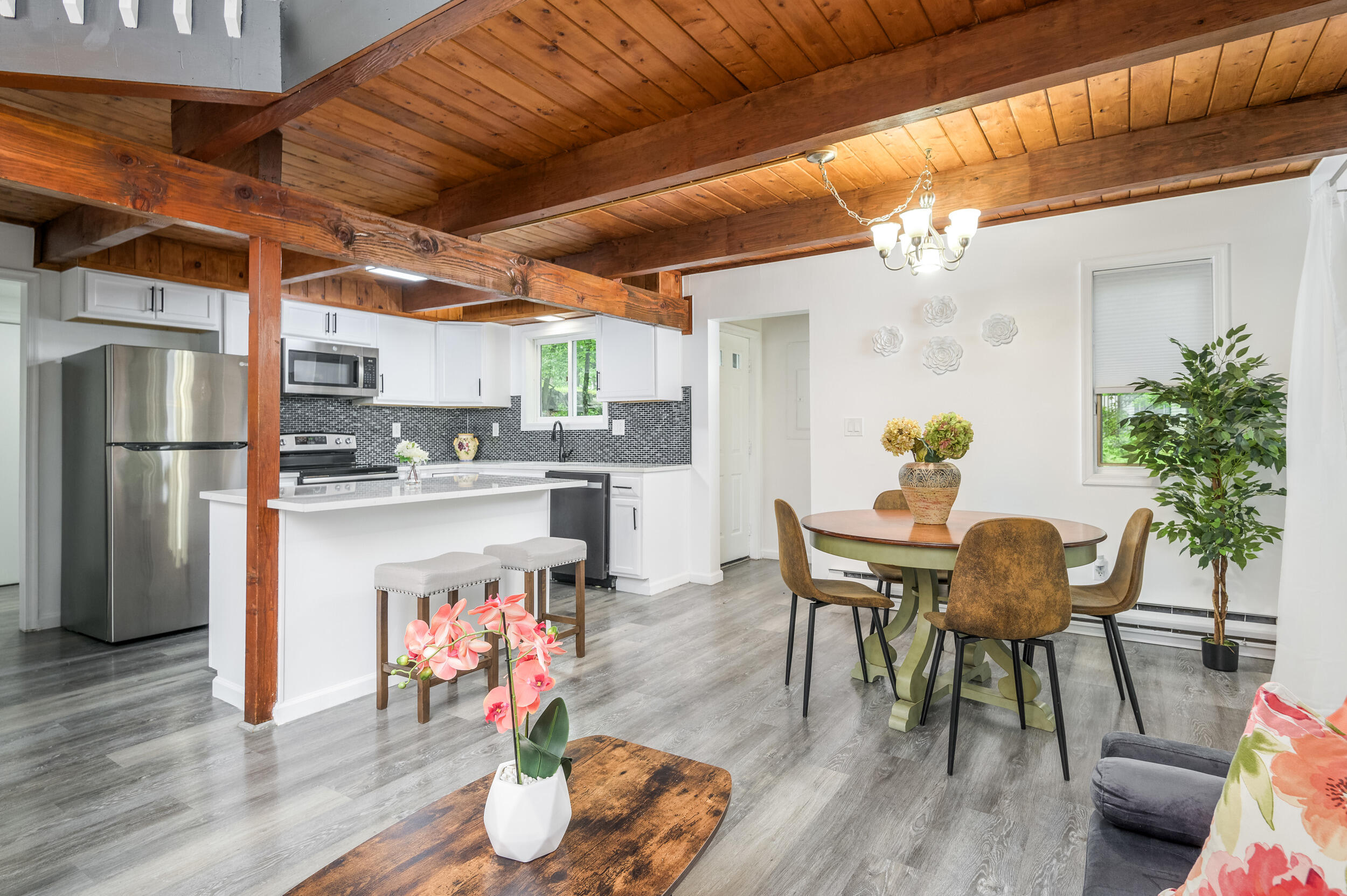 Move right into this completely renovated 4 bed 2 bath contemporary home in amenity filled Saw Creek Estates. This beautifully redone home boasts a bright open floor plan. New roof recently installed. Home was freshly painted inside & out. Kitchen has new appliances, cabinets & Corian counter tops. Large kitchen island adds extra counter space. All new light fixtures & recessed lighting throughout the home. Cathedral ceiling in living room & stone-faced fireplace with gas insert. Knotty pine ceilings in kitchen/dining really give the home a modern country feeling. Gorgeous, remodeled bathrooms with tiled floors. Large, screened porch & deck with a fabulous view. Property is located in a cul-de-sac & backs up to green belt. Call today for a showing! This beauty won't last!