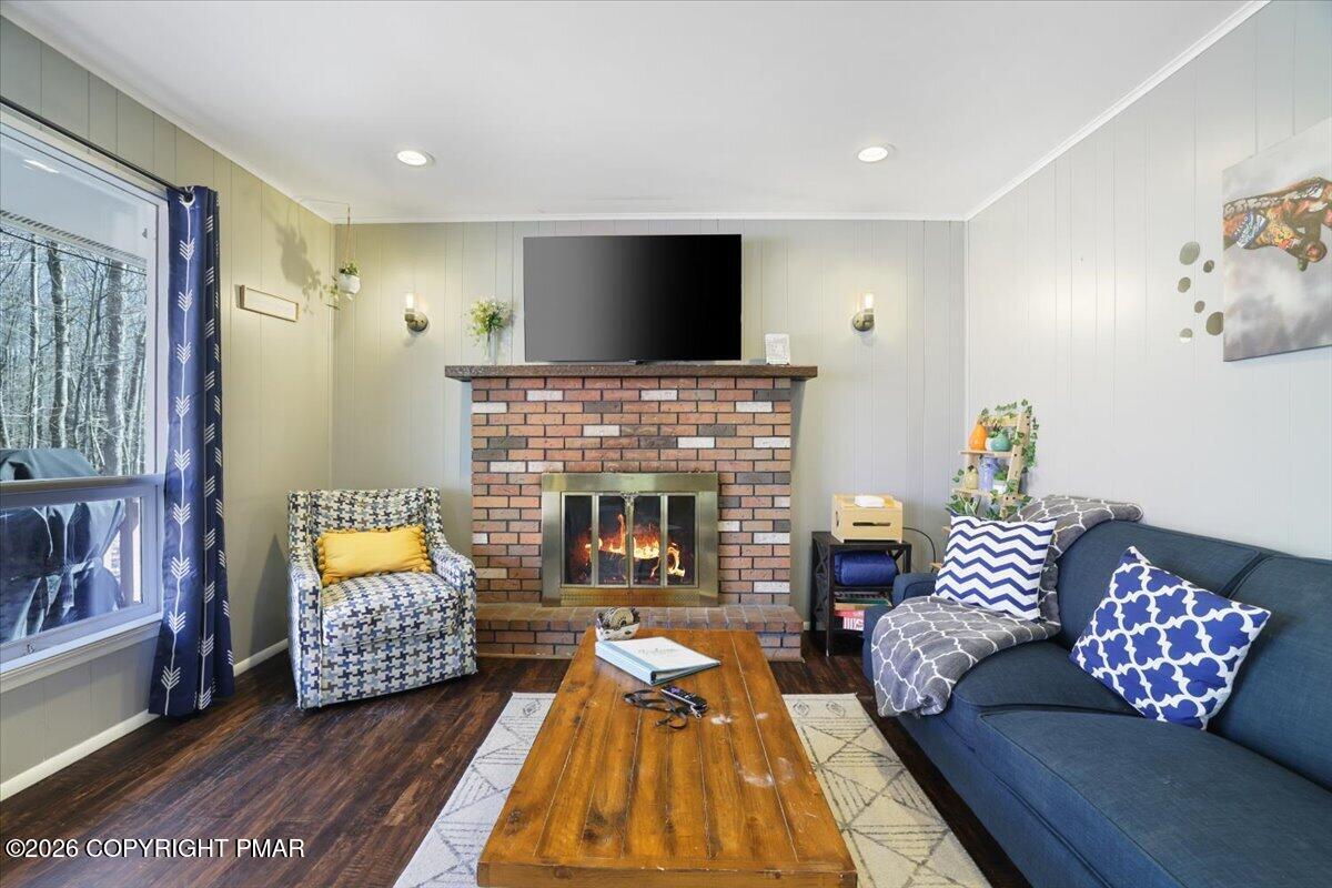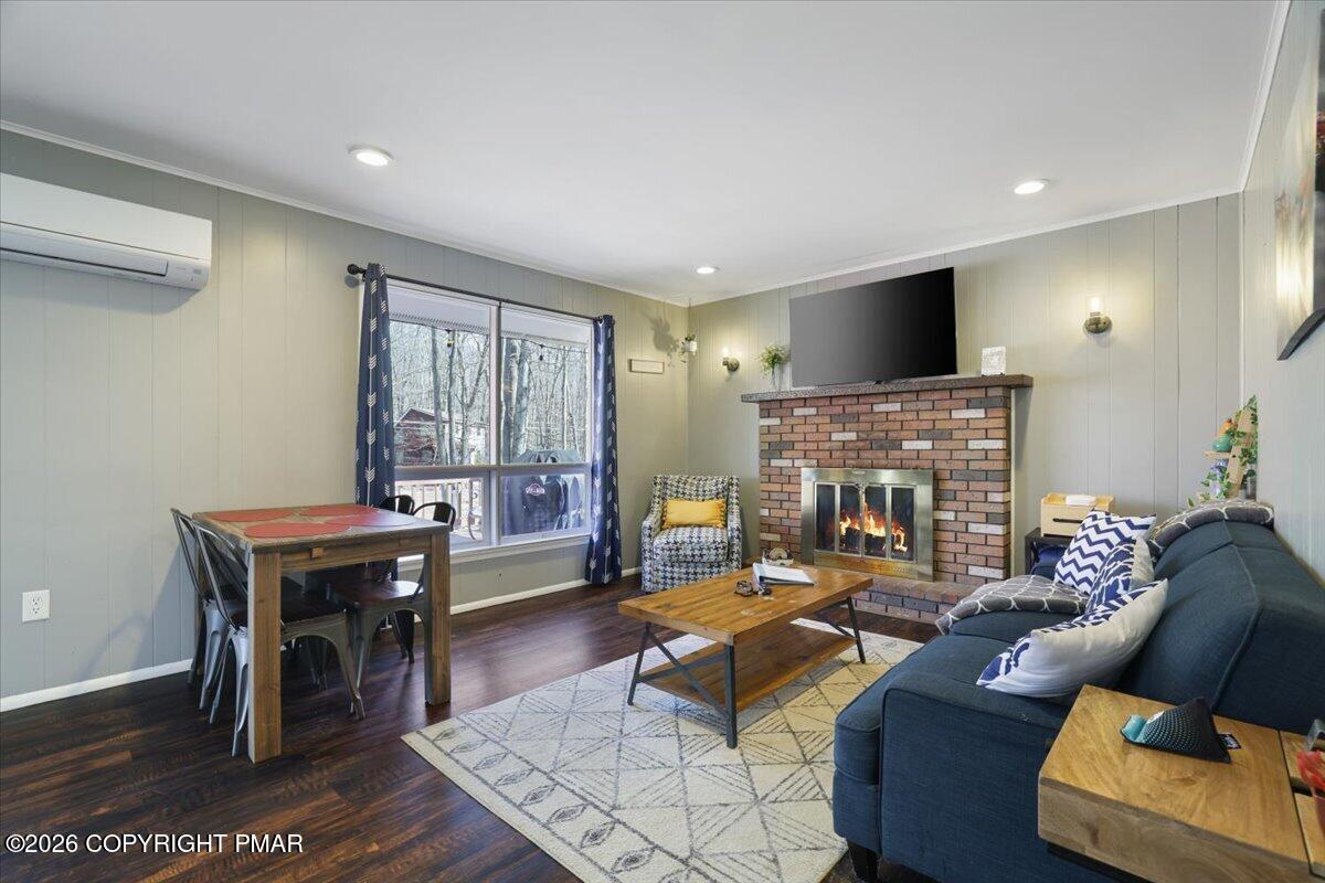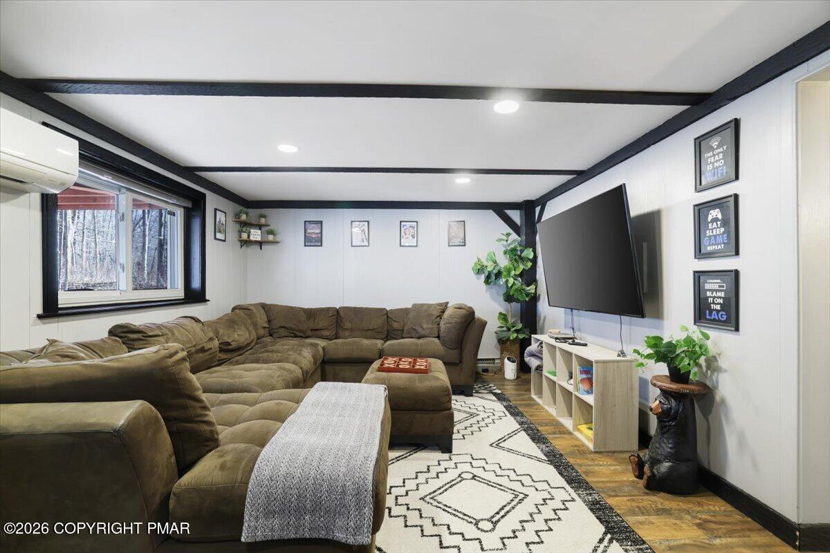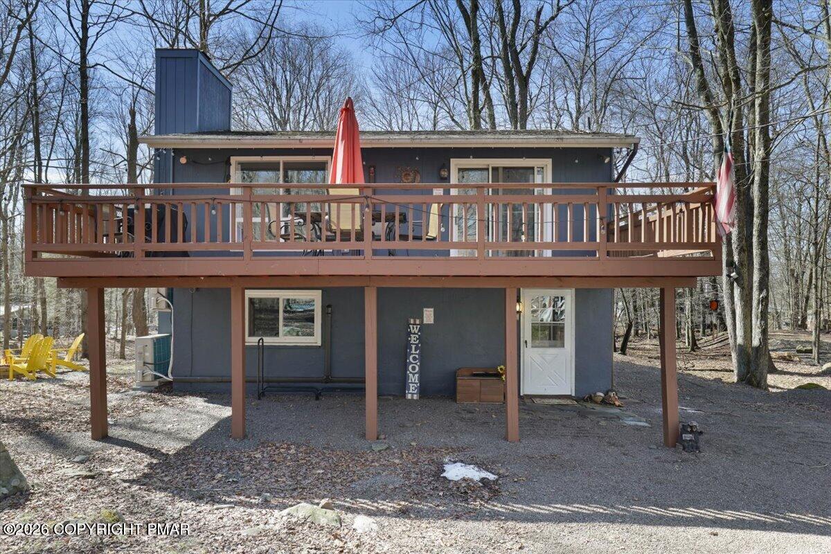 Available for rent, this beautifully maintained and fully furnished Pocono home offers comfortable mountain living with a flexible two level layout and a peaceful wooded setting. Move right in and enjoy a turnkey rental that combines charm, functionality, and inviting indoor and outdoor spaces. The main level features a bright and welcoming living room anchored by a classic brick fireplace, creating the perfect place to relax after a long day. The living area flows into a dining space and functional kitchen, while sliding doors lead directly to a large elevated deck overlooking the surrounding trees. Two comfortable bedrooms and a full bathroom are located on this level, along with a convenient laundry room and an additional half bathroom that adds everyday practicality. The lower level offers even more living space with a spacious family room ideal for movie nights or entertaining, along with a third bedroom and another full bathroom providing great flexibility for guests or additional living arrangements. Outside, enjoy the quiet Pocono setting from the oversized deck or gather around the fire pit area surrounded by mature trees. Ideally located just a short drive from Lake Harmony, Jack Frost and Big Boulder ski areas, golf courses, hiking trails, and many of the region's most popular attractions. A great opportunity to enjoy Pocono living in a peaceful natural setting. Schedule your tour today!