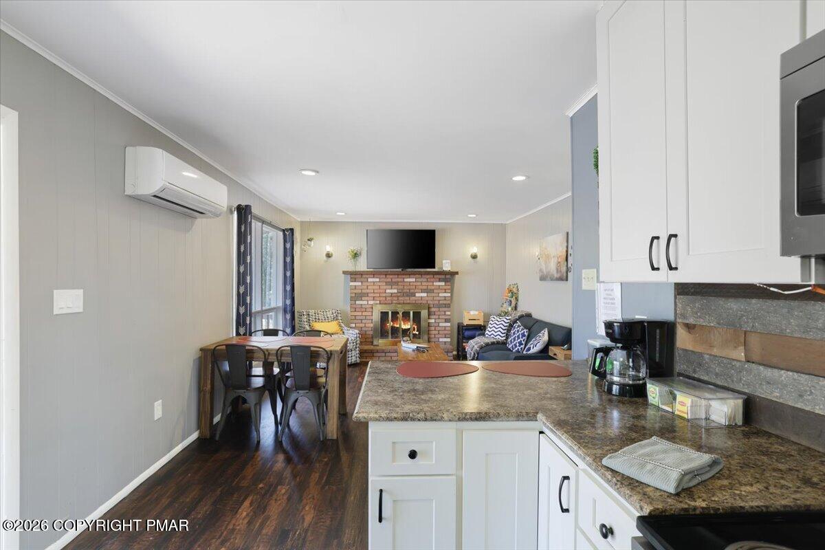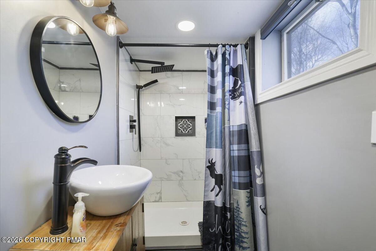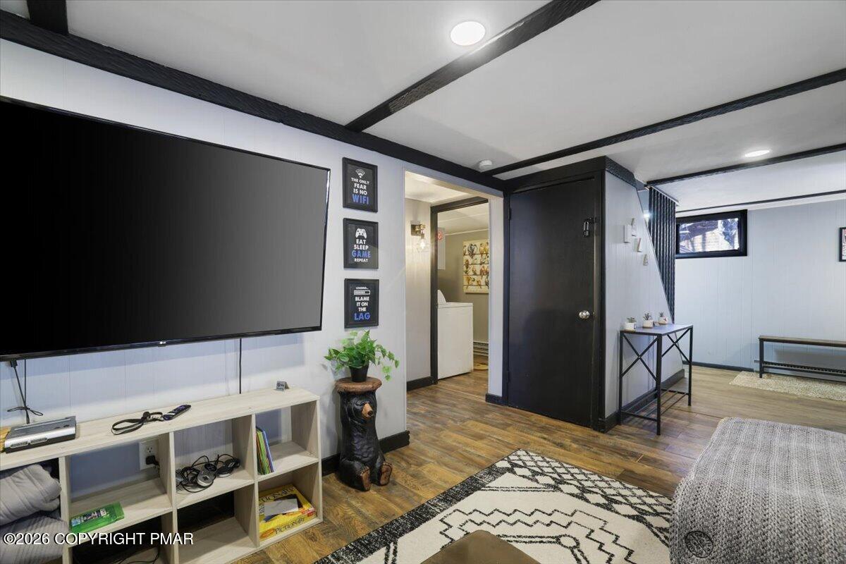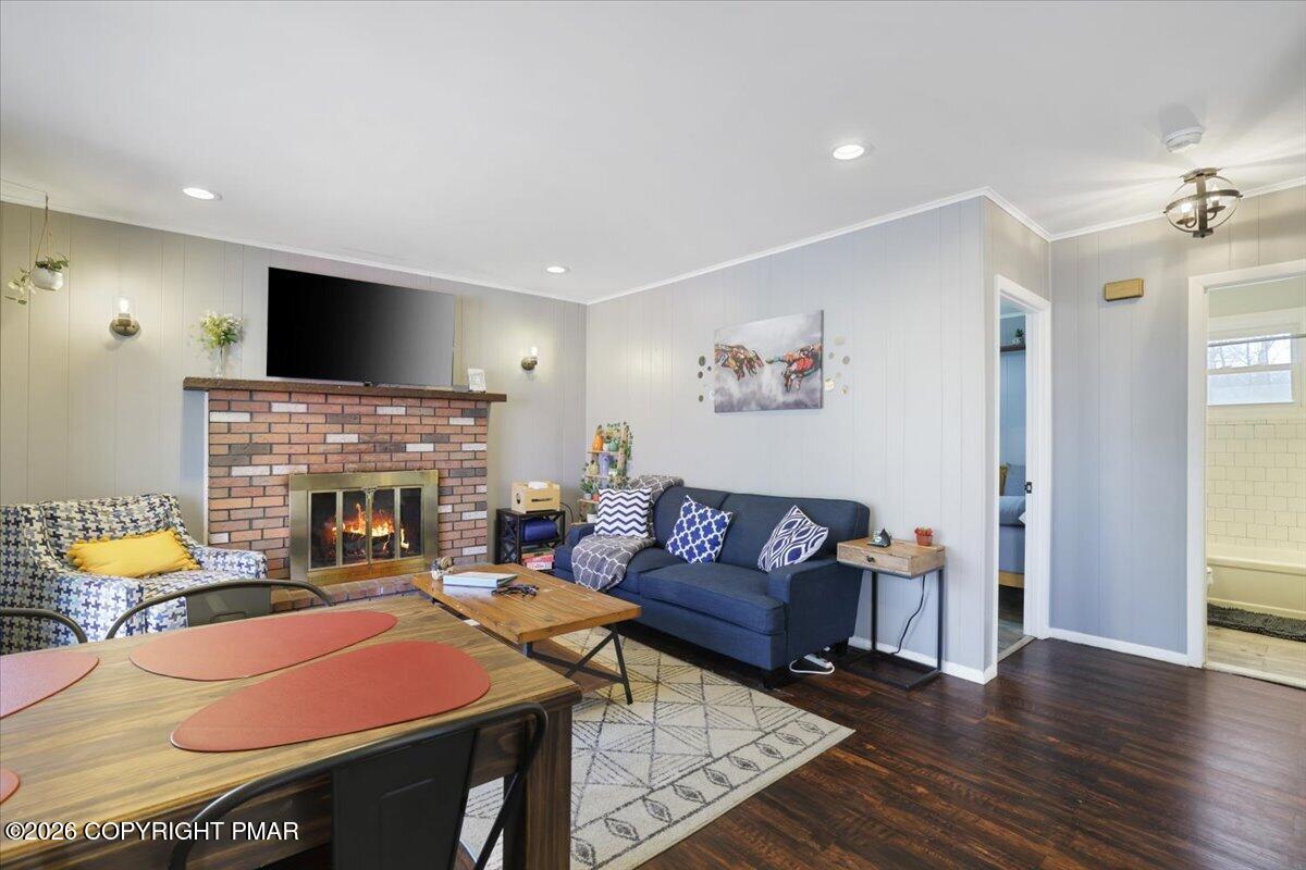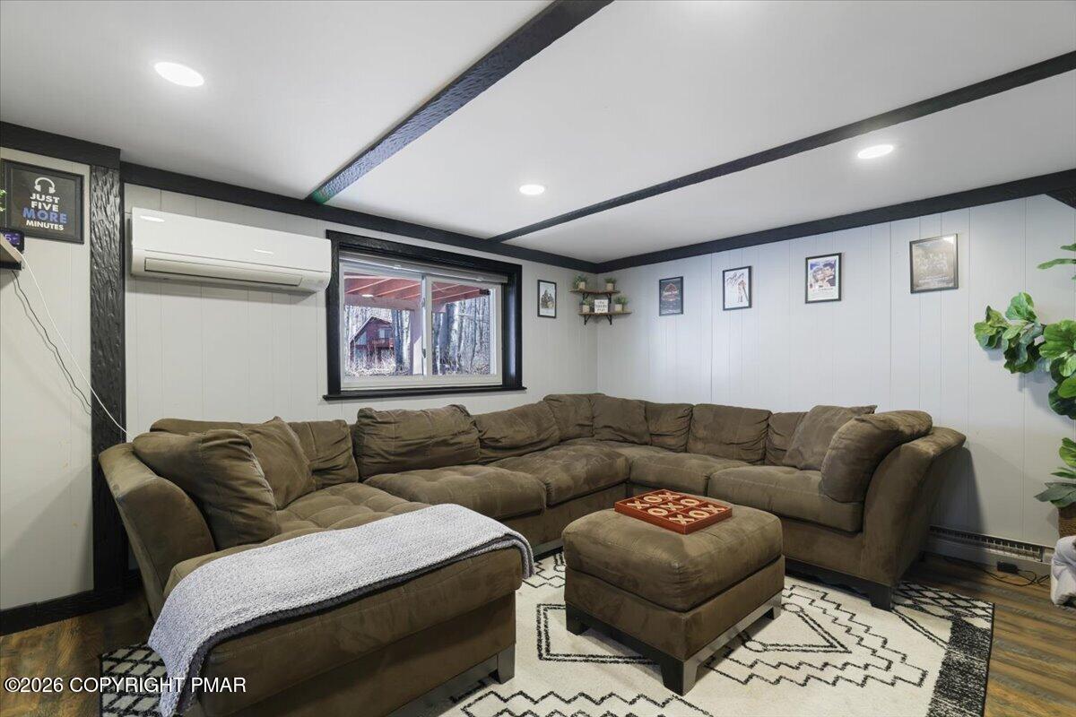 Available for rent, this beautifully maintained and fully furnished Pocono home offers comfortable mountain living with a flexible two level layout and a peaceful wooded setting. Move right in and enjoy a turnkey rental that combines charm, functionality, and inviting indoor and outdoor spaces. The main level features a bright and welcoming living room anchored by a classic brick fireplace, creating the perfect place to relax after a long day. The living area flows into a dining space and functional kitchen, while sliding doors lead directly to a large elevated deck overlooking the surrounding trees. Two comfortable bedrooms and a full bathroom are located on this level, along with a convenient laundry room and an additional half bathroom that adds everyday practicality. The lower level offers even more living space with a spacious family room ideal for movie nights or entertaining, along with a third bedroom and another full bathroom providing great flexibility for guests or additional living arrangements. Outside, enjoy the quiet Pocono setting from the oversized deck or gather around the fire pit area surrounded by mature trees. Ideally located just a short drive from Lake Harmony, Jack Frost and Big Boulder ski areas, golf courses, hiking trails, and many of the region's most popular attractions. A great opportunity to enjoy Pocono living in a peaceful natural setting. Schedule your tour today!