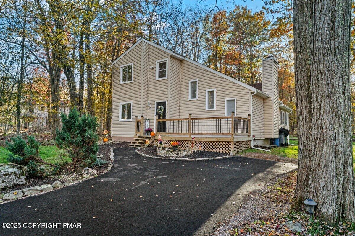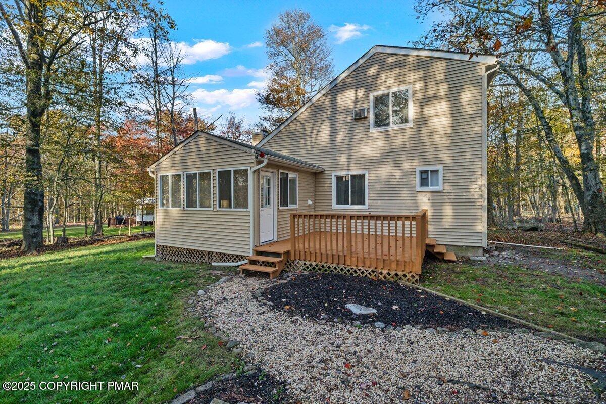 3BR/2BA Fully Renovated Gem in Short-Term Rental-Approved Pocono Community Backing State Game Lands! Move-in ready and meticulously upgraded, this stunning home offers the perfect blend of modern comfort and mountain charm. Whether you're seeking a full-time residence or a high-demand investment property, this home delivers on every front. Located in the beautiful Pocono Mountains, it sits quietly on a cul-de-sac and backs directly to state game lands--offering exceptional privacy and direct access to nature. With a large front and back yard, freshly paved driveway, newer front and back decks, and serene surroundings, it's a true retreat. Inside, the home impresses with luxury vinyl plank flooring, quartz countertops, custom cabinetry, stainless steel appliances, vaulted ceilings, and a cozy fireplace. The bright sunroom offers extra living space that can be used as a lounge, office, or game room. Recent updates include a newer roof, water heater, grinder pump, decks, and window replacements. The property has been landscaped, and a shed offers additional storage for tools or outdoor gear. Just a short drive from major metropolitan areas including New York City, Philadelphia, and New Jersey, this home attracts short-term rental guests and full-time residents alike. The Pocono Mountains await with year-round activities such as hiking, skiing, lakes, waterparks, casinos, and outlet shopping. Whether you're looking to relax in a peaceful setting, enjoy all the Poconos have to offer, or invest in a fully updated and income-ready home, this one is not to be missed!
