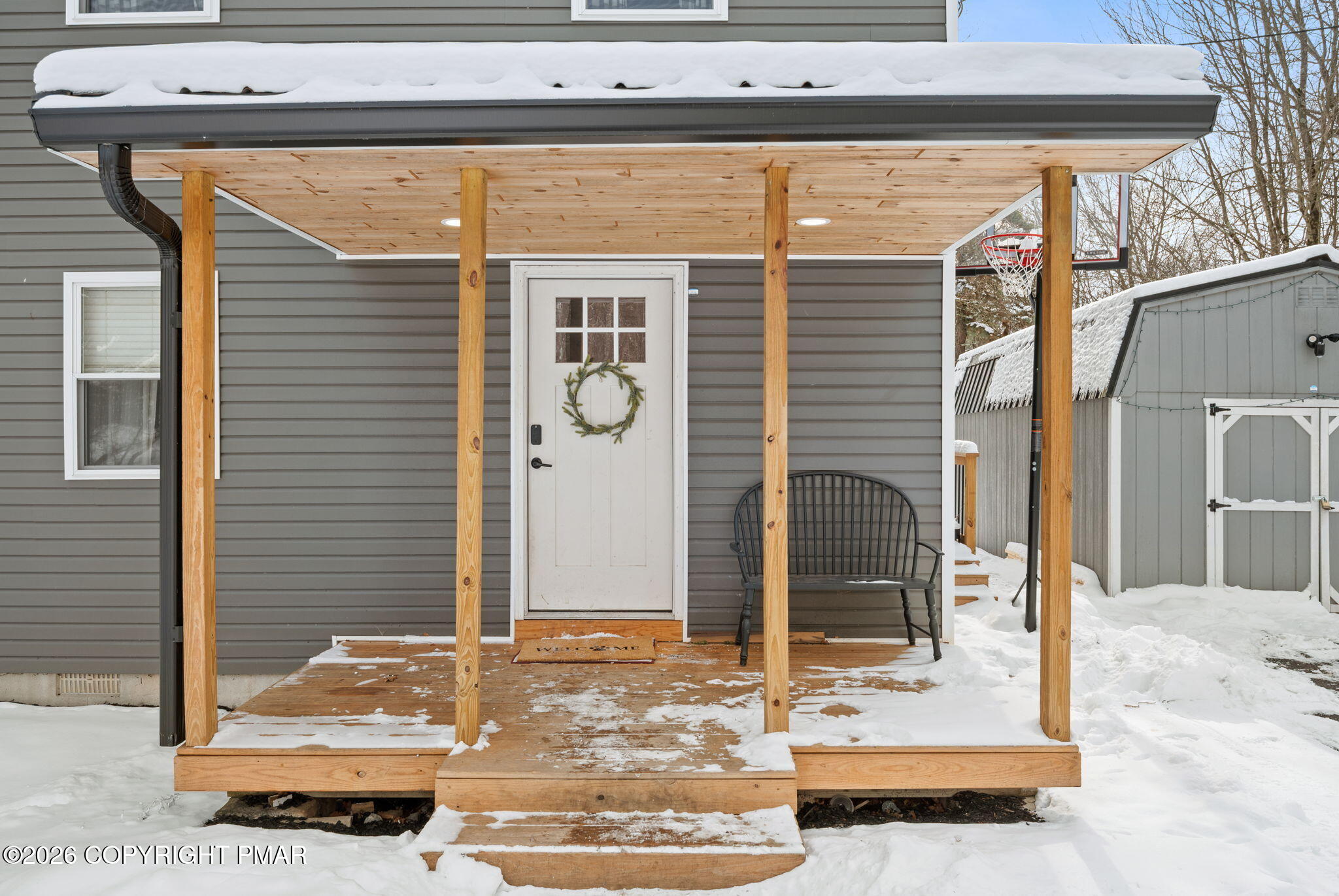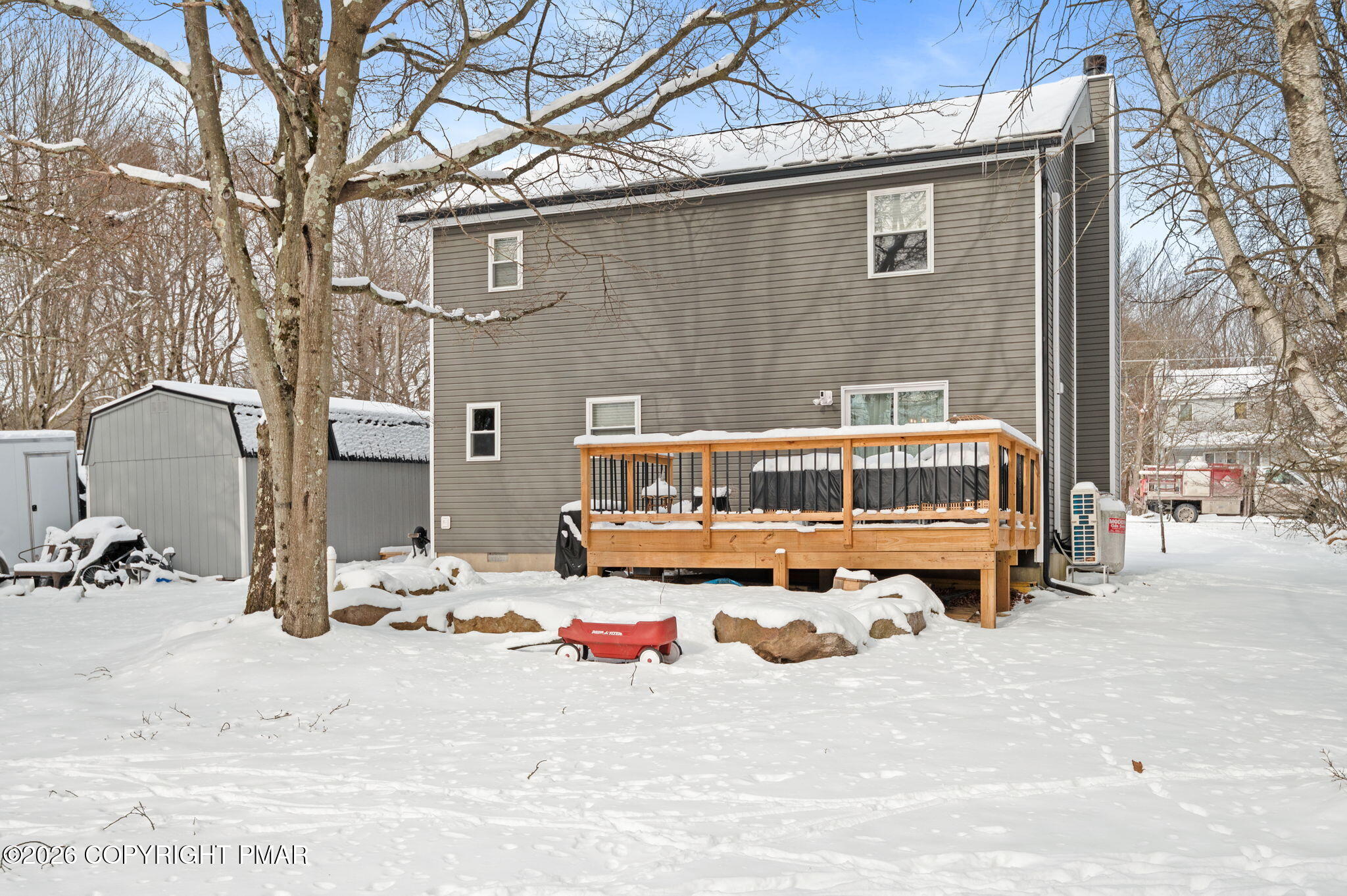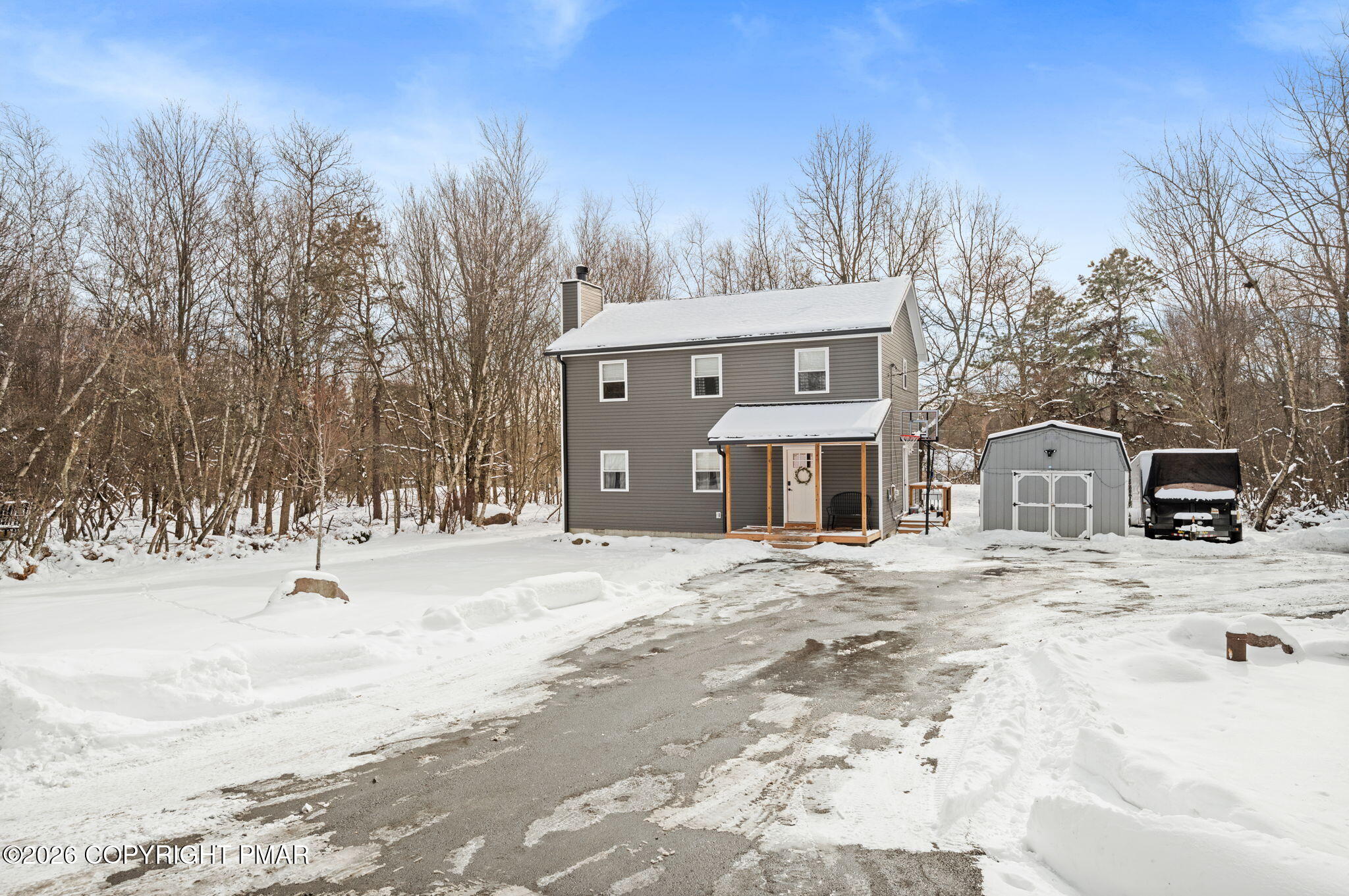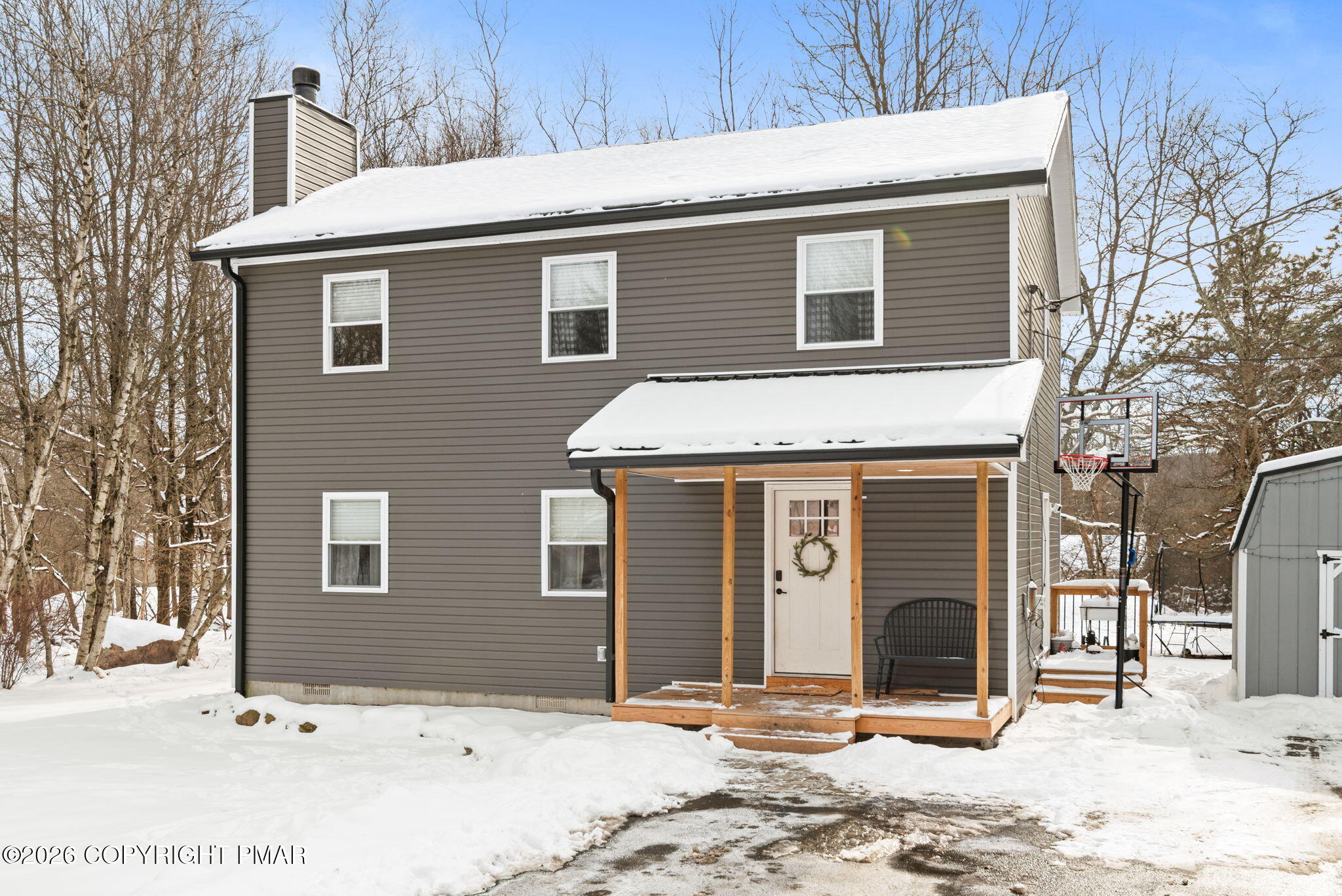 Gorgeous Colonial home with modern flair, ductless heating & cooling, & gourmet kitchen for sale in Towamensing Trails! This beauty showcases a spacious living room w/ a stunning brick faced propane fireplace as an attractive focal point - perfect for those chilly Pocono nights! The open concept kitchen & dining area features a kitchen island with breakfast bar seating, granite countertops, tile backsplash, & farmhouse sink! Convenient 1st fl powder room with laundry service! Tasteful luxury vinyl plank flooring throughout the entire 1st fl provides a sleek finish with easy maintenance & durability. The 2nd fl includes a primary suite with abundant walk through closet space, 2 additional bedrooms, & striking full bath with tile surround. Rest easy with economical ductless heating & cooling split units throughout the home to provide comfortable temps year round. Be sure to relax on the rear deck, easily accessed by sliders in the dining area. The utility shed provides excellent storage space. Perfect as a primary home, vacation home, or savvy short term or long term investment! Look forward to enjoying all of Towamensing Trails amenities, including 190 acre lake, beach, clubhouse, tennis courts, pickleball courts, & more! Minutes to hiking, biking, rafting, Hickory Run State Park, downtown Jim Thorpe, & more! Set up your showing today!