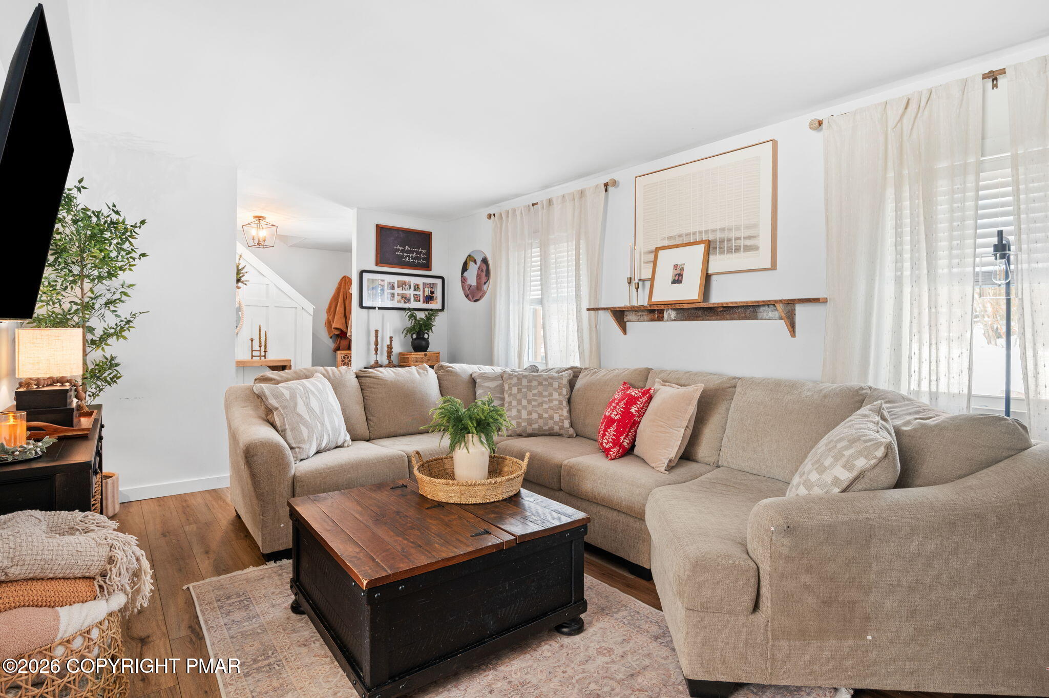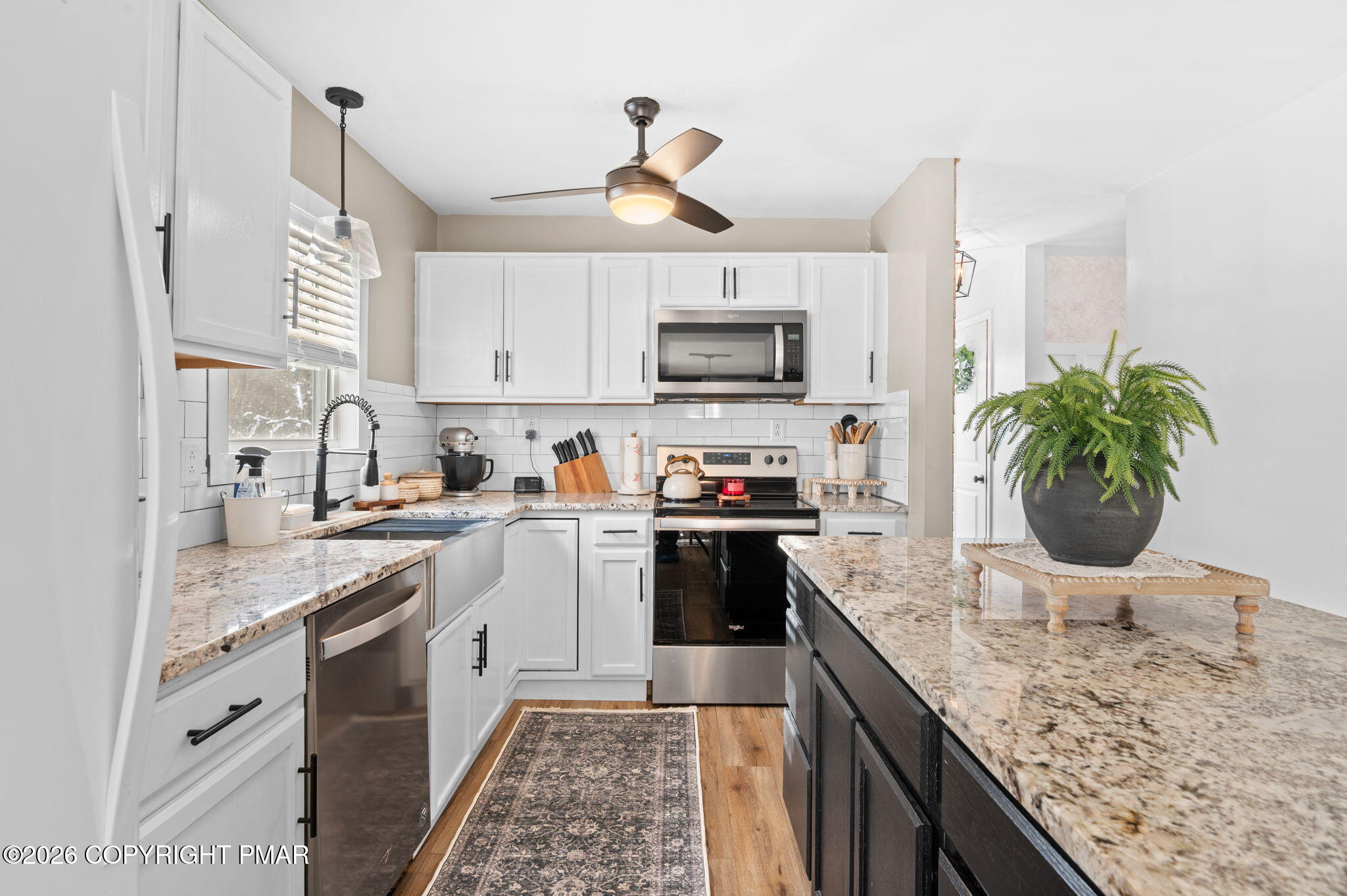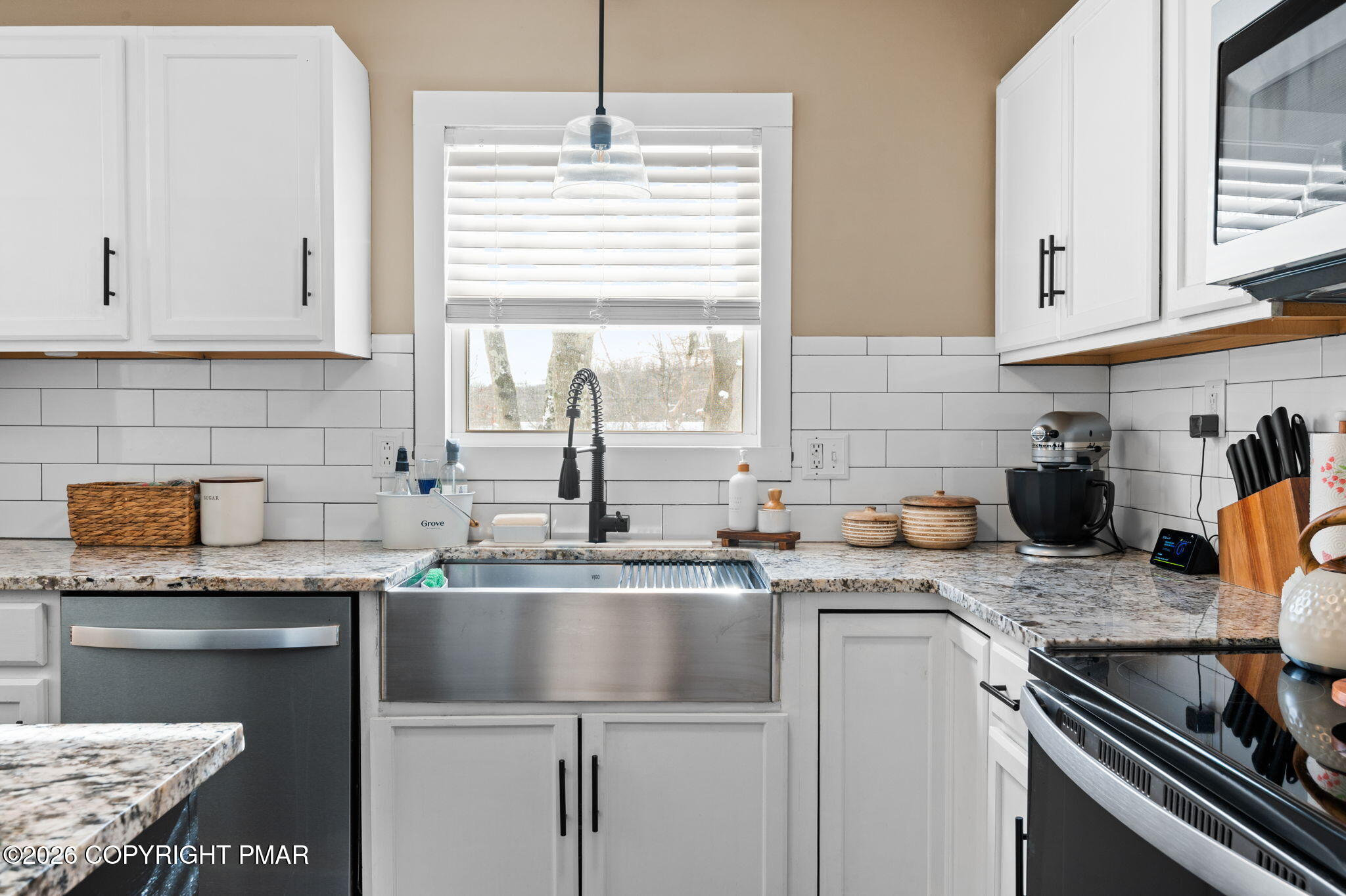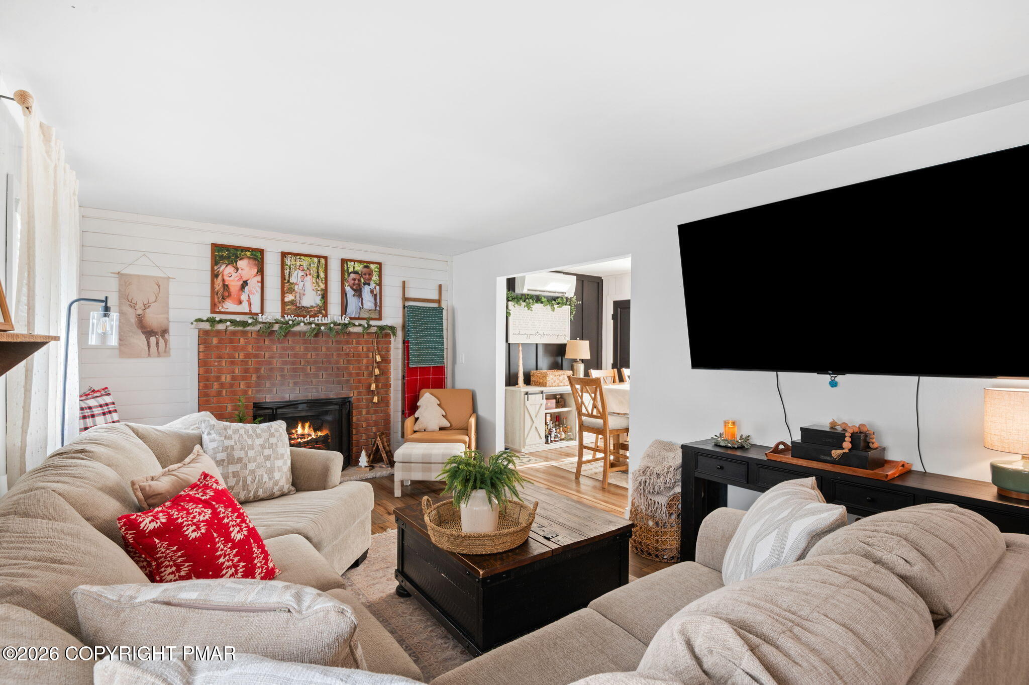 Gorgeous Colonial home with modern flair, ductless heating & cooling, & gourmet kitchen for sale in Towamensing Trails! This beauty showcases a spacious living room w/ a stunning brick faced propane fireplace as an attractive focal point - perfect for those chilly Pocono nights! The open concept kitchen & dining area features a kitchen island with breakfast bar seating, granite countertops, tile backsplash, & farmhouse sink! Convenient 1st fl powder room with laundry service! Tasteful luxury vinyl plank flooring throughout the entire 1st fl provides a sleek finish with easy maintenance & durability. The 2nd fl includes a primary suite with abundant walk through closet space, 2 additional bedrooms, & striking full bath with tile surround. Rest easy with economical ductless heating & cooling split units throughout the home to provide comfortable temps year round. Be sure to relax on the rear deck, easily accessed by sliders in the dining area. The utility shed provides excellent storage space. Perfect as a primary home, vacation home, or savvy short term or long term investment! Look forward to enjoying all of Towamensing Trails amenities, including 190 acre lake, beach, clubhouse, tennis courts, pickleball courts, & more! Minutes to hiking, biking, rafting, Hickory Run State Park, downtown Jim Thorpe, & more! Set up your showing today!