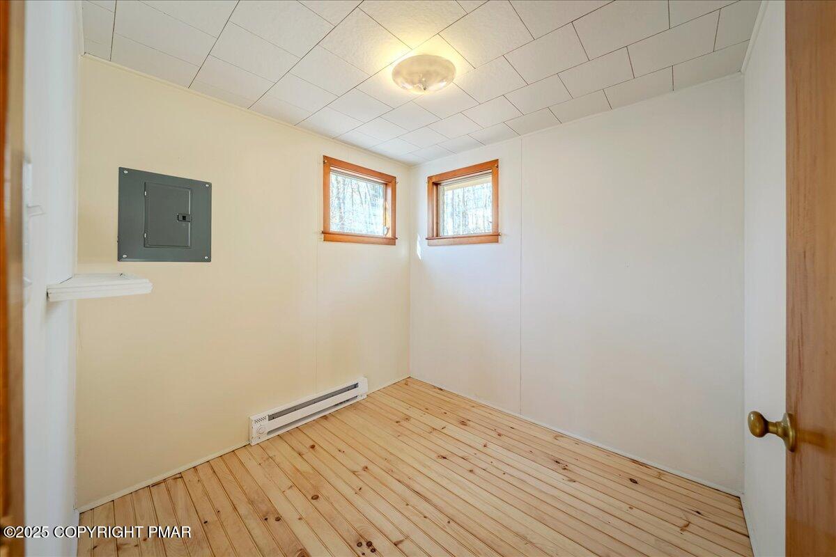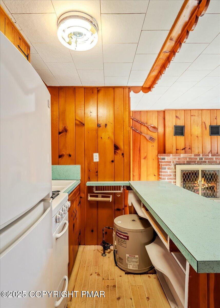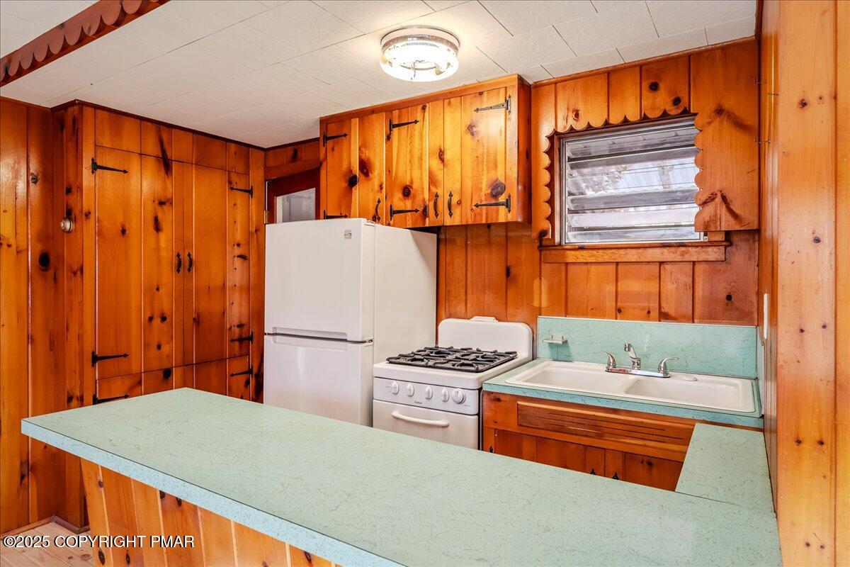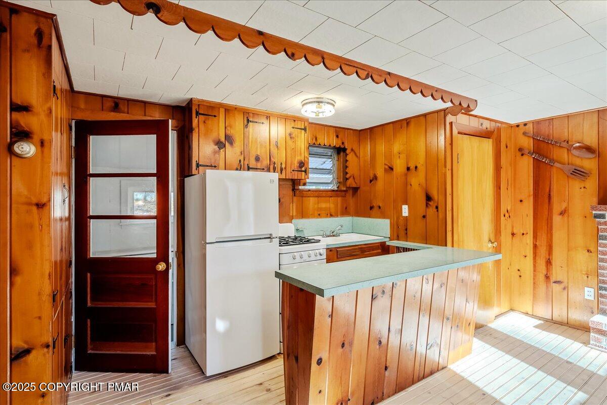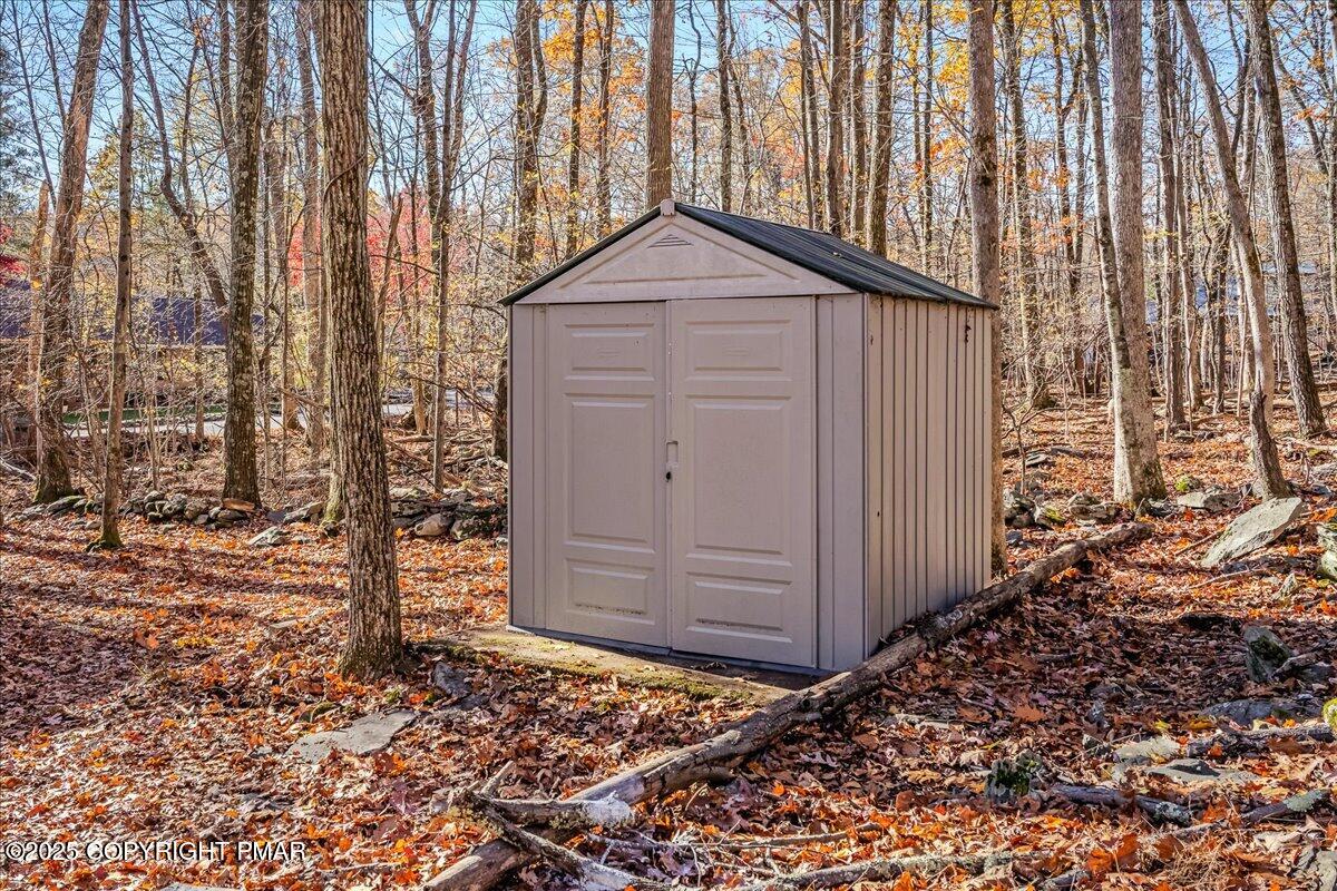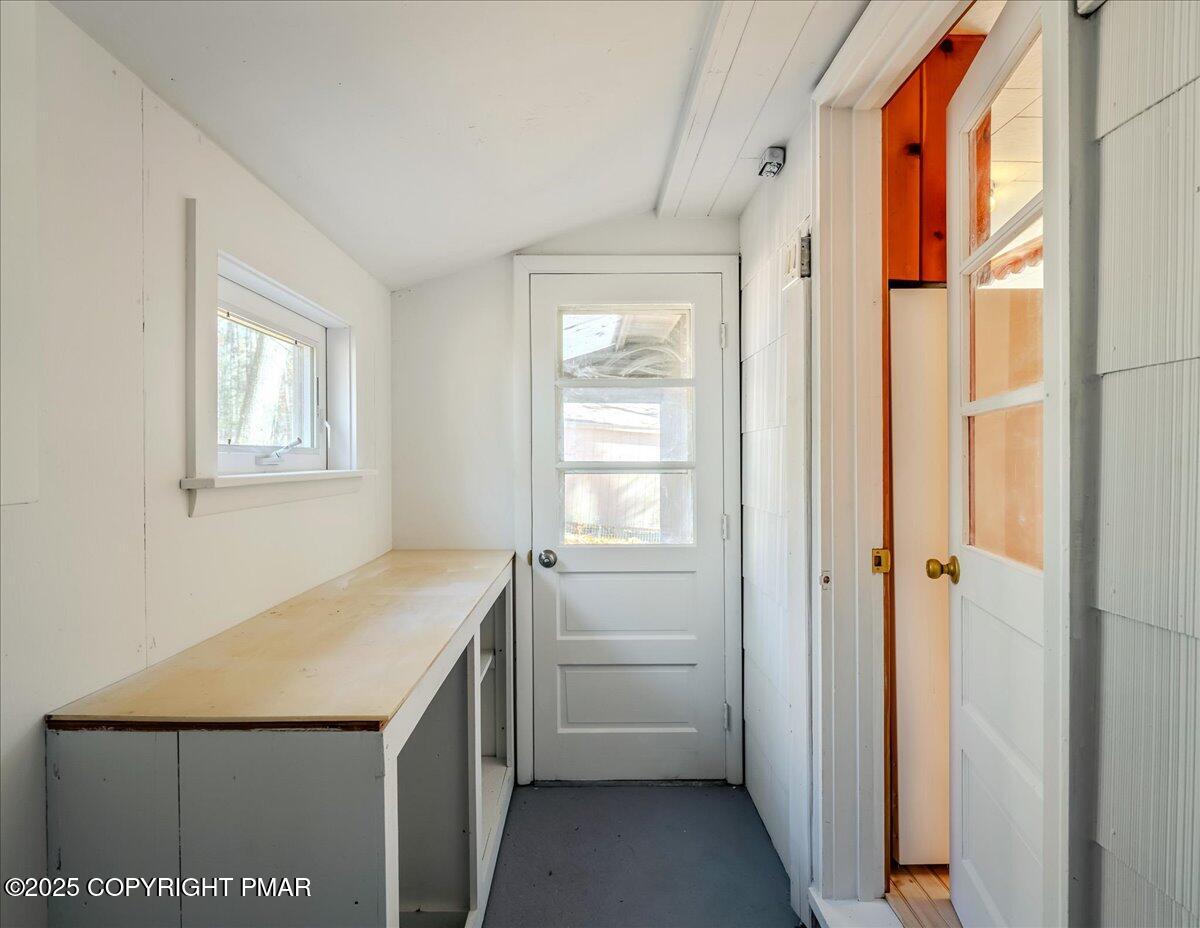 Do not wait to see this charming lakeview escape in the Monroe Lakes community of East Stroudsburg, where classic Pocono character meets peaceful woodland surroundings. This cozy two-bedroom, one-bath cabin has been lovingly maintained and captures the essence of a true mountain retreat. Step inside to find original craftsmanship throughout, from the warm knotty pine walls to the detailed wood trim that reflects timeless quality. The inviting living area centers around a brick fireplace, perfect for cozy evenings after a day by the lake. The kitchen features a working vintage Caloric gas stove, mint-green countertops, wood cabinetry with scalloped accents, blending nostalgic charm with everyday function. Both bedrooms make clever use of space with built-in storage and cozy sleeping nooks, while the screened porch and wooded lot invite outdoor relaxation. With partial lake views and access to beautiful Lake Monroe for fishing, kayaking, and swimming, this home offers a serene backdrop for weekend escapes or full-time simple living. Recent updates include a sharply painted exterior and brand new pine floors. Conveniently located near Route 80, downtown East Stroudsburg, and area attractions, this affordable cabin offers a rare opportunity to enjoy the best of Pocono living. Sale includes additional lot next door for added privacy and space! Priced below $90,000, this hidden gem won't last long - schedule your tour today!