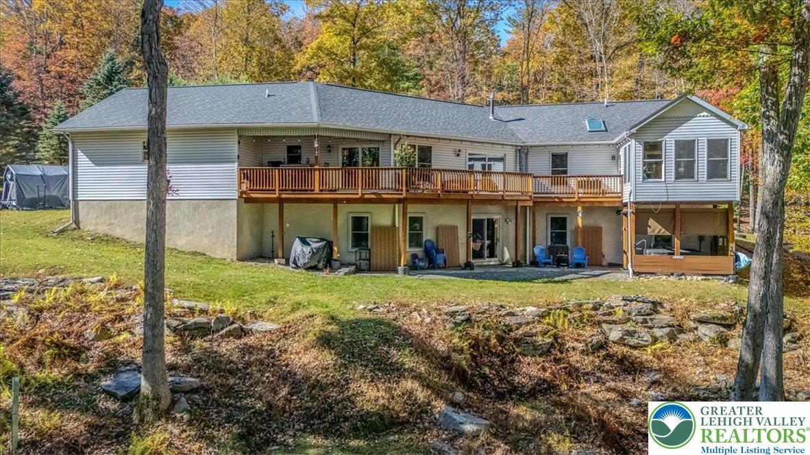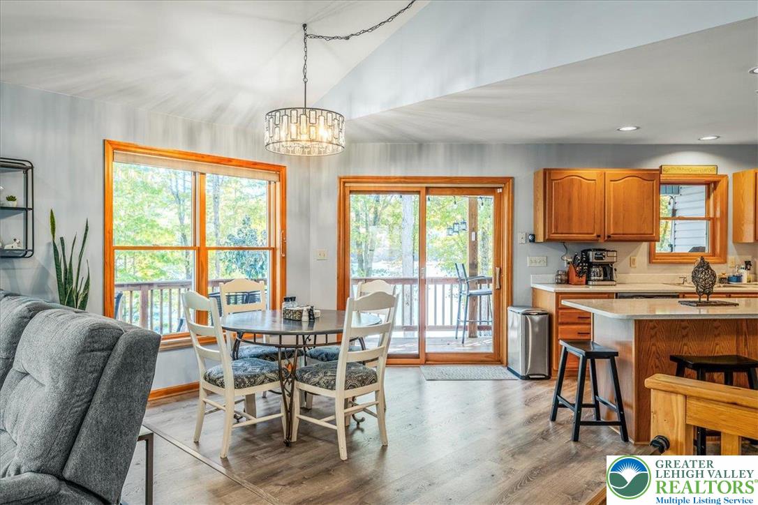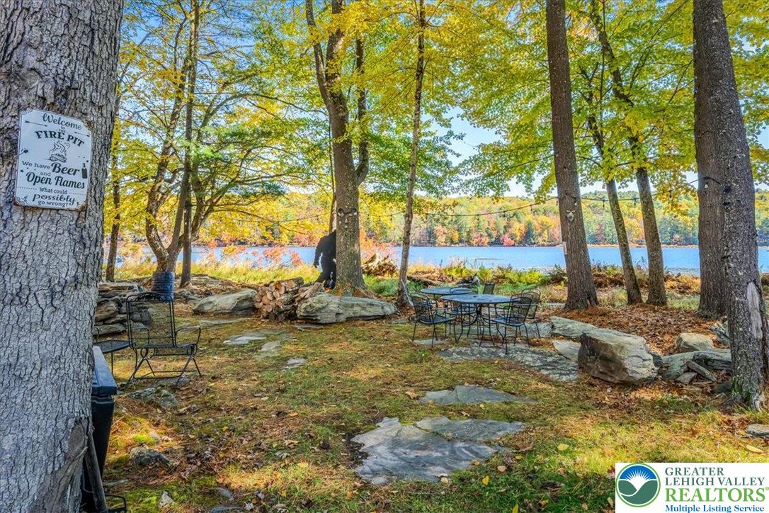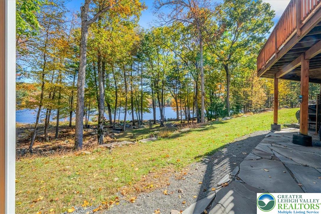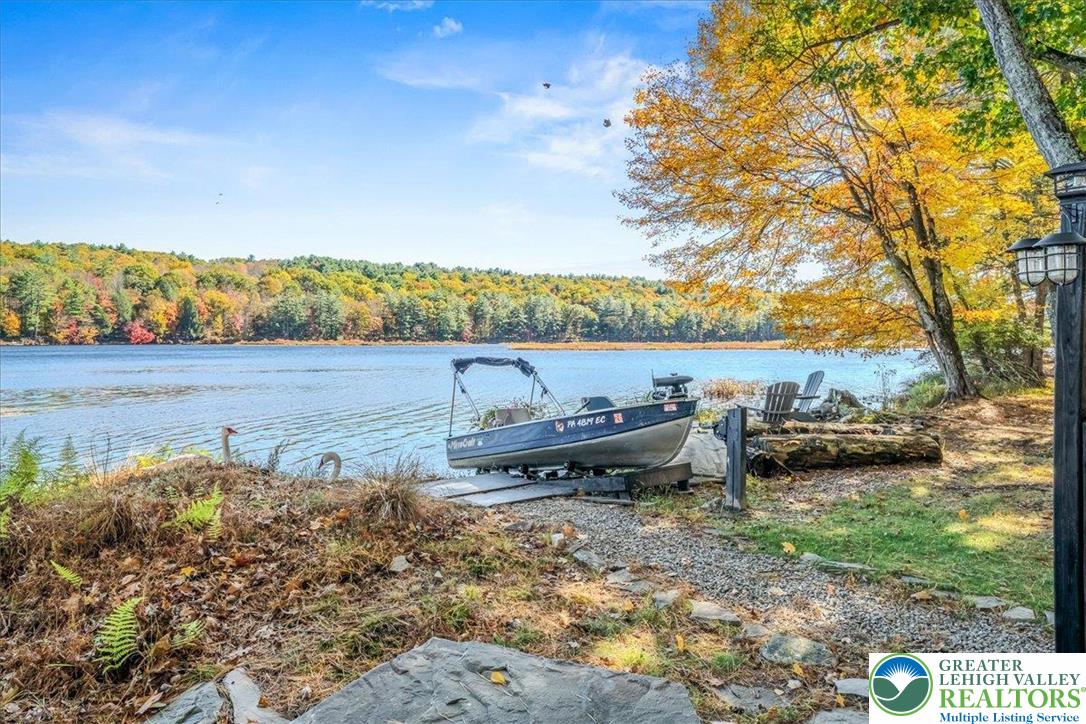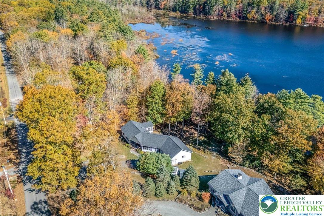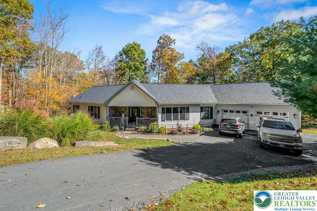 Welcome to 320 Tinkwig Drive, a beautifully maintained lakefront ranch offering four bedrooms and three baths in a peaceful wooded setting. This property blends comfort and style with direct lake access and serene water views throughout. The main level features an open-concept design with vaulted ceilings, abundant natural light, and a striking floor-to-ceiling stone fireplace as the centerpiece of the living area. The kitchen includes generous cabinetry, stainless steel appliances, a center island with seating, and an adjoining dining area that opens to a spacious rear deck overlooking the lake. The private primary suite offers an ensuite bath and direct access to a charming sunroom, a warm and inviting space to relax and take in the wooded and lake views. The fully finished walkout lower level provides a large family room with built-in shelving, a kegerator, full-sized refrigerator, and direct access to the covered patio and backyard. Additional upgrades include an on-demand water heater, soothing hot tub, and a whole house generator for peace of mind. The gently sloped lot leads to your own private lakefront with a small launch area, perfect for kayaking, fishing, or simply enjoying the tranquil setting. Located just minutes from Lake Wallenpaupack, this home is ideal as a full-time residence, vacation getaway, or investment property. Short-term rentals are permitted--schedule your private tour today!