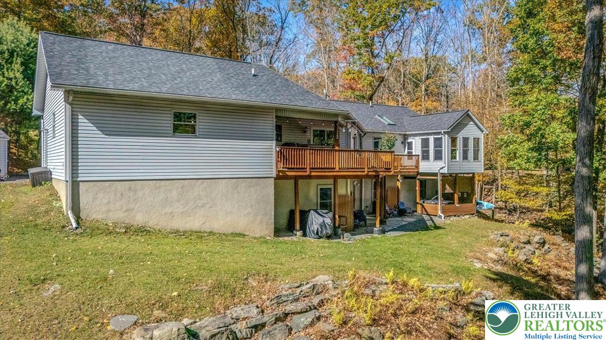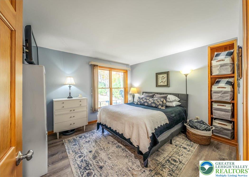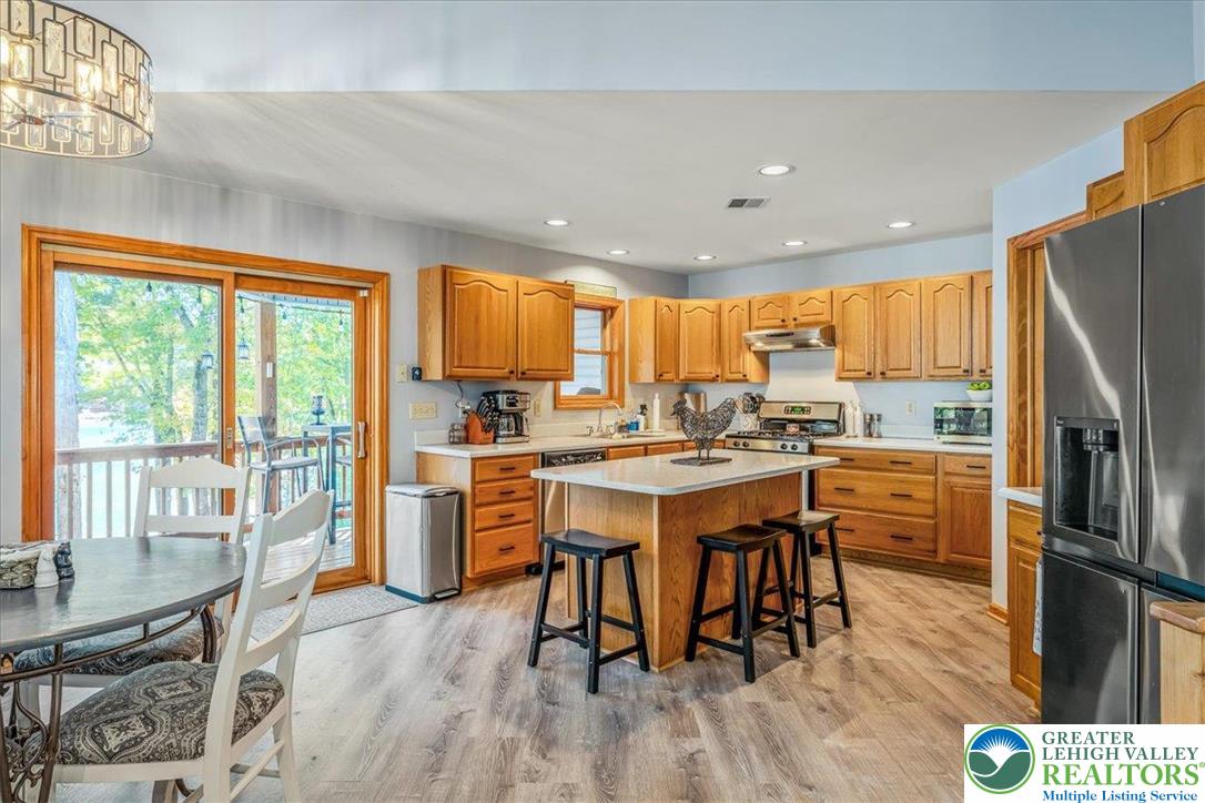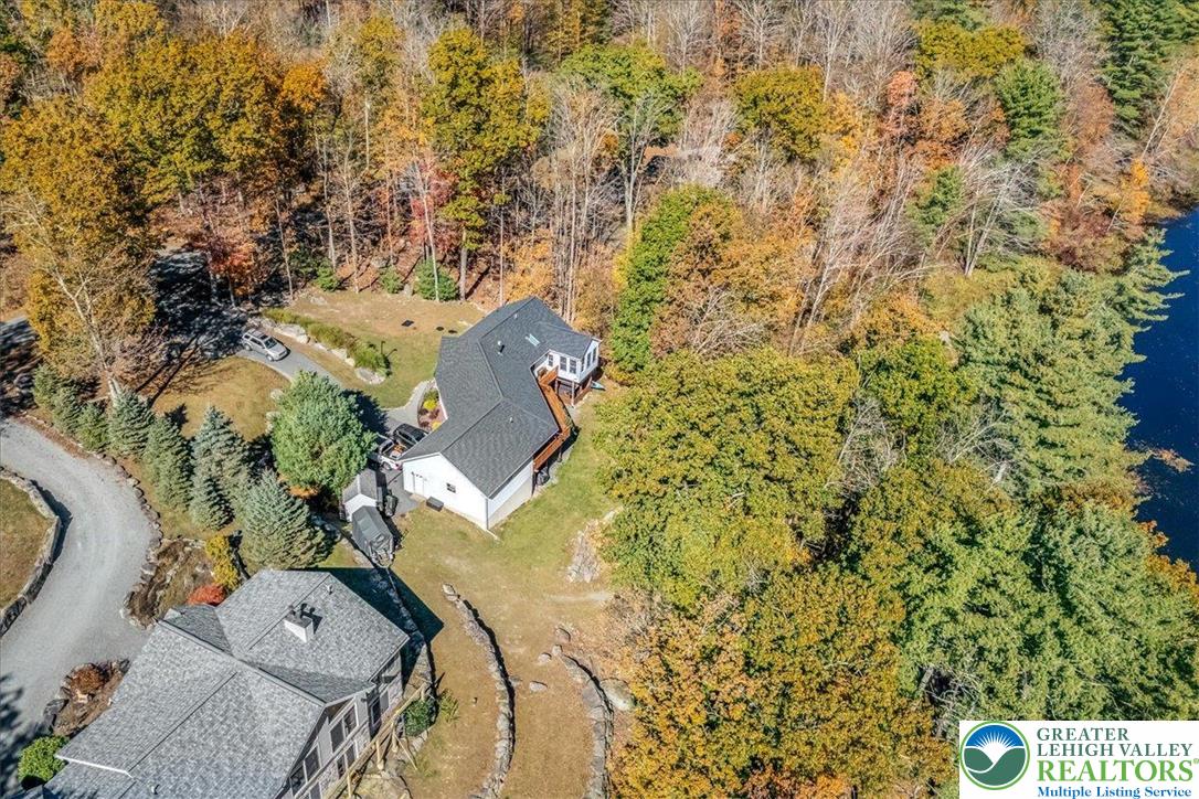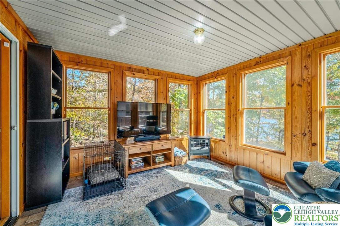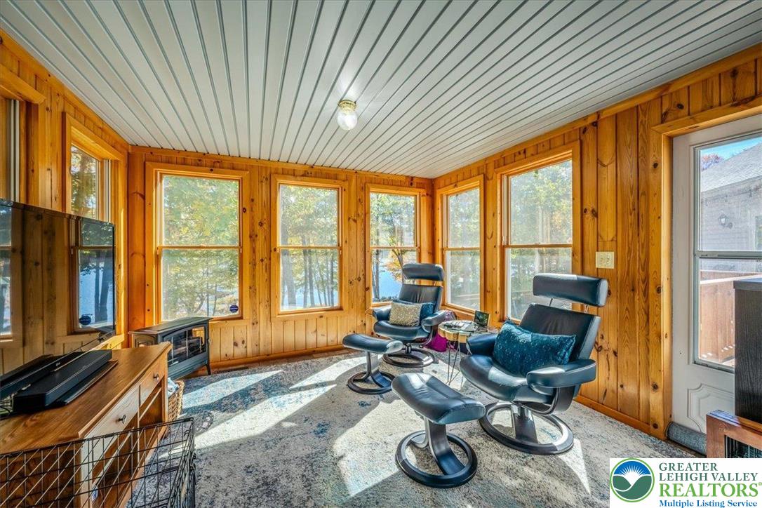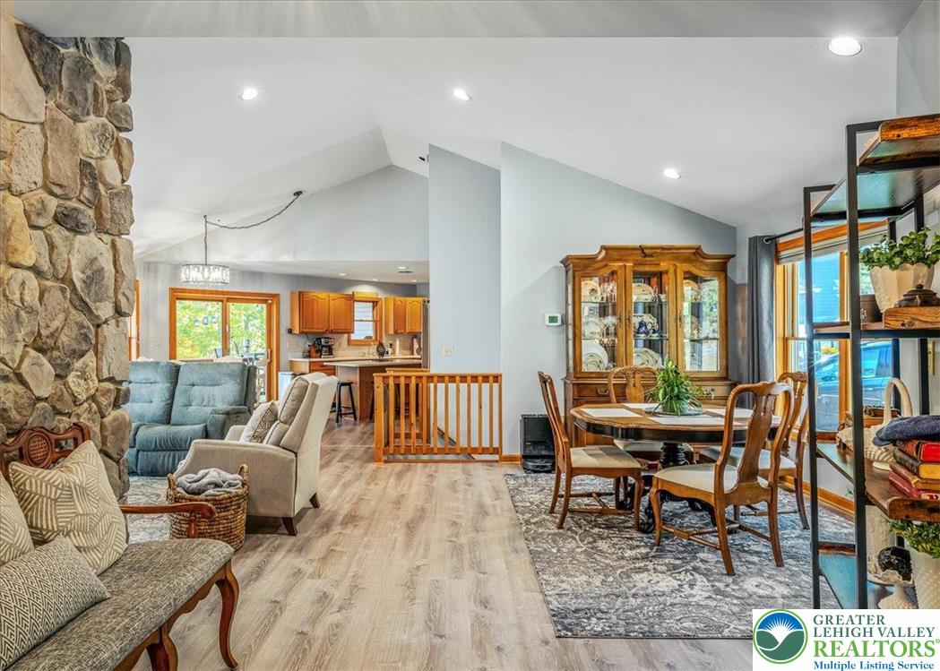 Welcome to 320 Tinkwig Drive, a beautifully maintained lakefront ranch offering four bedrooms and three baths in a peaceful wooded setting. This property blends comfort and style with direct lake access and serene water views throughout. The main level features an open-concept design with vaulted ceilings, abundant natural light, and a striking floor-to-ceiling stone fireplace as the centerpiece of the living area. The kitchen includes generous cabinetry, stainless steel appliances, a center island with seating, and an adjoining dining area that opens to a spacious rear deck overlooking the lake. The private primary suite offers an ensuite bath and direct access to a charming sunroom, a warm and inviting space to relax and take in the wooded and lake views. The fully finished walkout lower level provides a large family room with built-in shelving, a kegerator, full-sized refrigerator, and direct access to the covered patio and backyard. Additional upgrades include an on-demand water heater, soothing hot tub, and a whole house generator for peace of mind. The gently sloped lot leads to your own private lakefront with a small launch area, perfect for kayaking, fishing, or simply enjoying the tranquil setting. Located just minutes from Lake Wallenpaupack, this home is ideal as a full-time residence, vacation getaway, or investment property. Short-term rentals are permitted--schedule your private tour today!