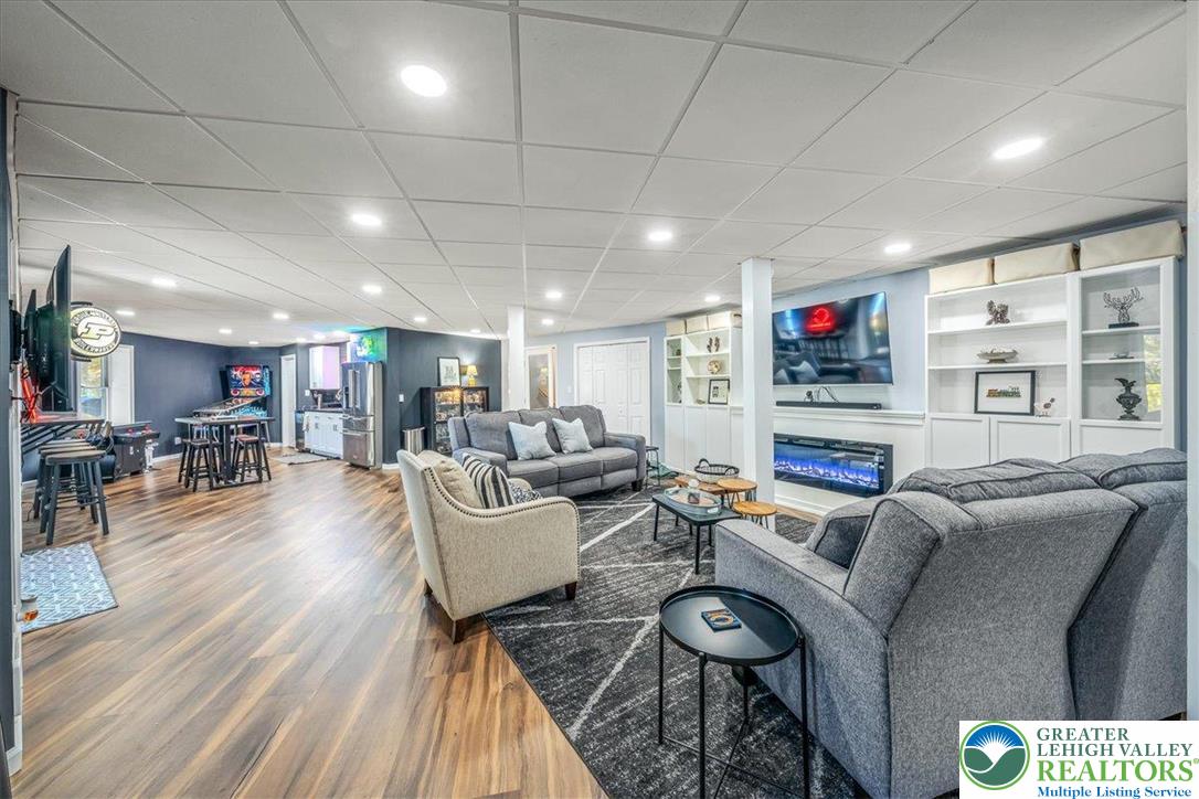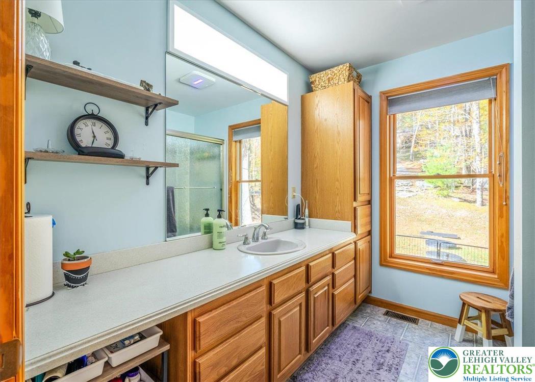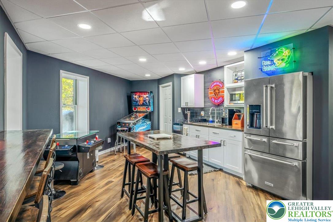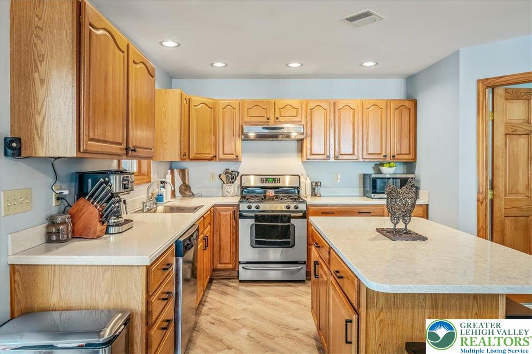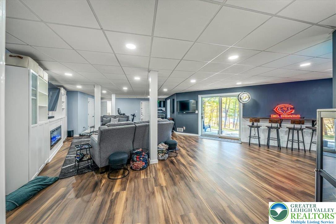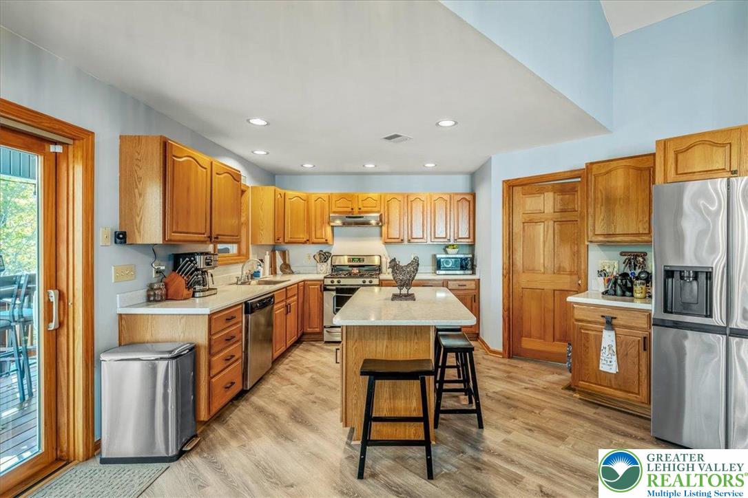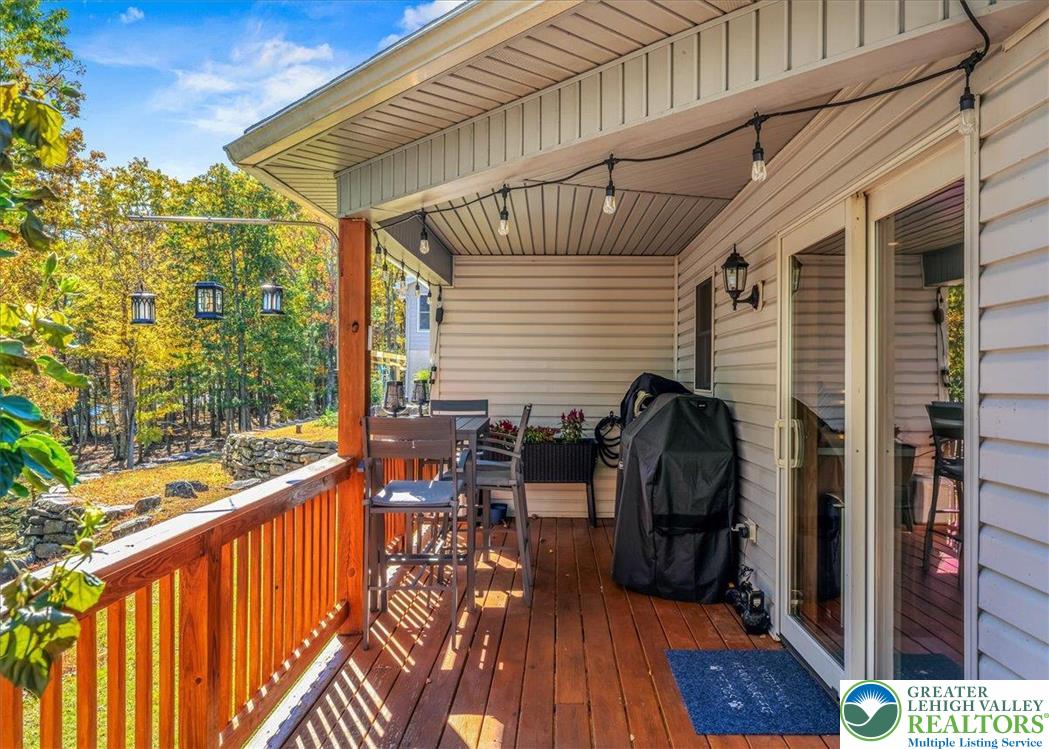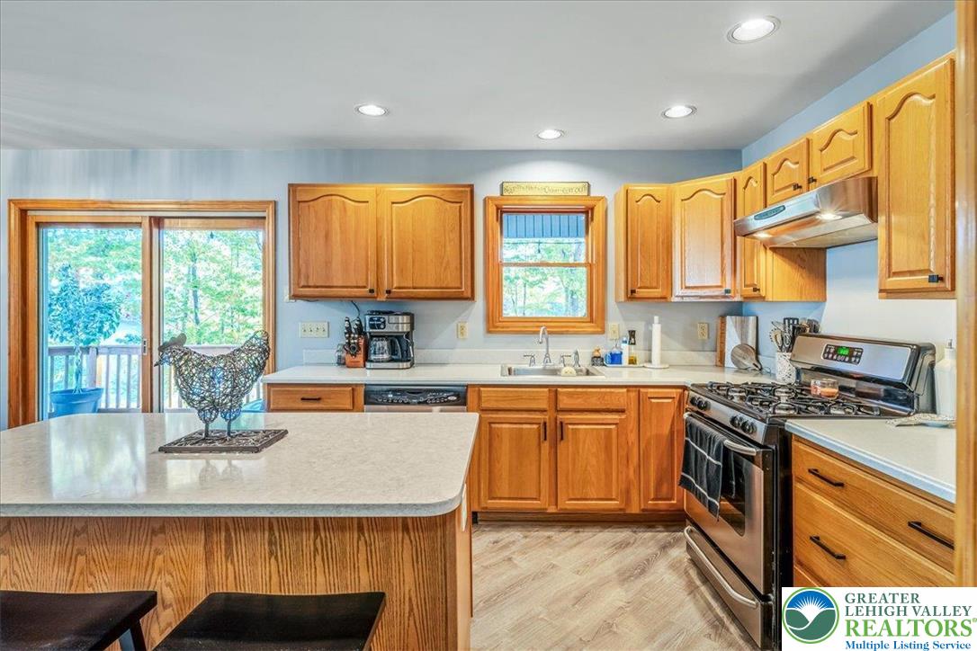 Welcome to 320 Tinkwig Drive, a beautifully maintained lakefront ranch offering four bedrooms and three baths in a peaceful wooded setting. This property blends comfort and style with direct lake access and serene water views throughout. The main level features an open-concept design with vaulted ceilings, abundant natural light, and a striking floor-to-ceiling stone fireplace as the centerpiece of the living area. The kitchen includes generous cabinetry, stainless steel appliances, a center island with seating, and an adjoining dining area that opens to a spacious rear deck overlooking the lake. The private primary suite offers an ensuite bath and direct access to a charming sunroom, a warm and inviting space to relax and take in the wooded and lake views. The fully finished walkout lower level provides a large family room with built-in shelving, a kegerator, full-sized refrigerator, and direct access to the covered patio and backyard. Additional upgrades include an on-demand water heater, soothing hot tub, and a whole house generator for peace of mind. The gently sloped lot leads to your own private lakefront with a small launch area, perfect for kayaking, fishing, or simply enjoying the tranquil setting. Located just minutes from Lake Wallenpaupack, this home is ideal as a full-time residence, vacation getaway, or investment property. Short-term rentals are permitted--schedule your private tour today!