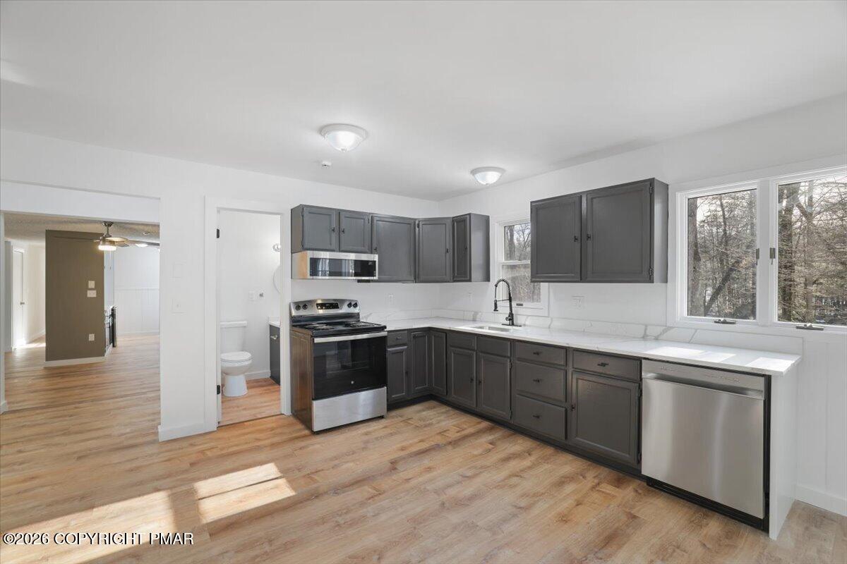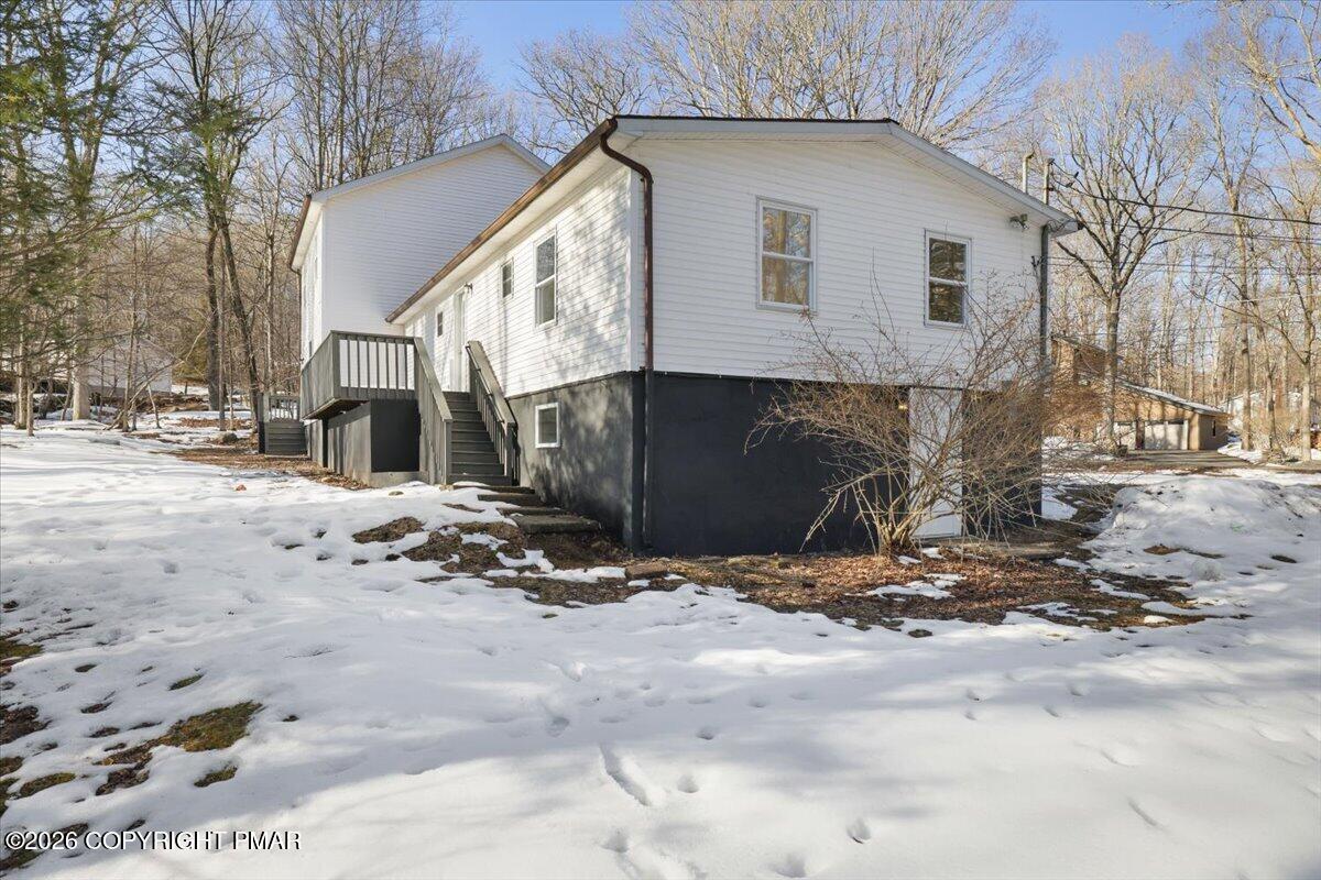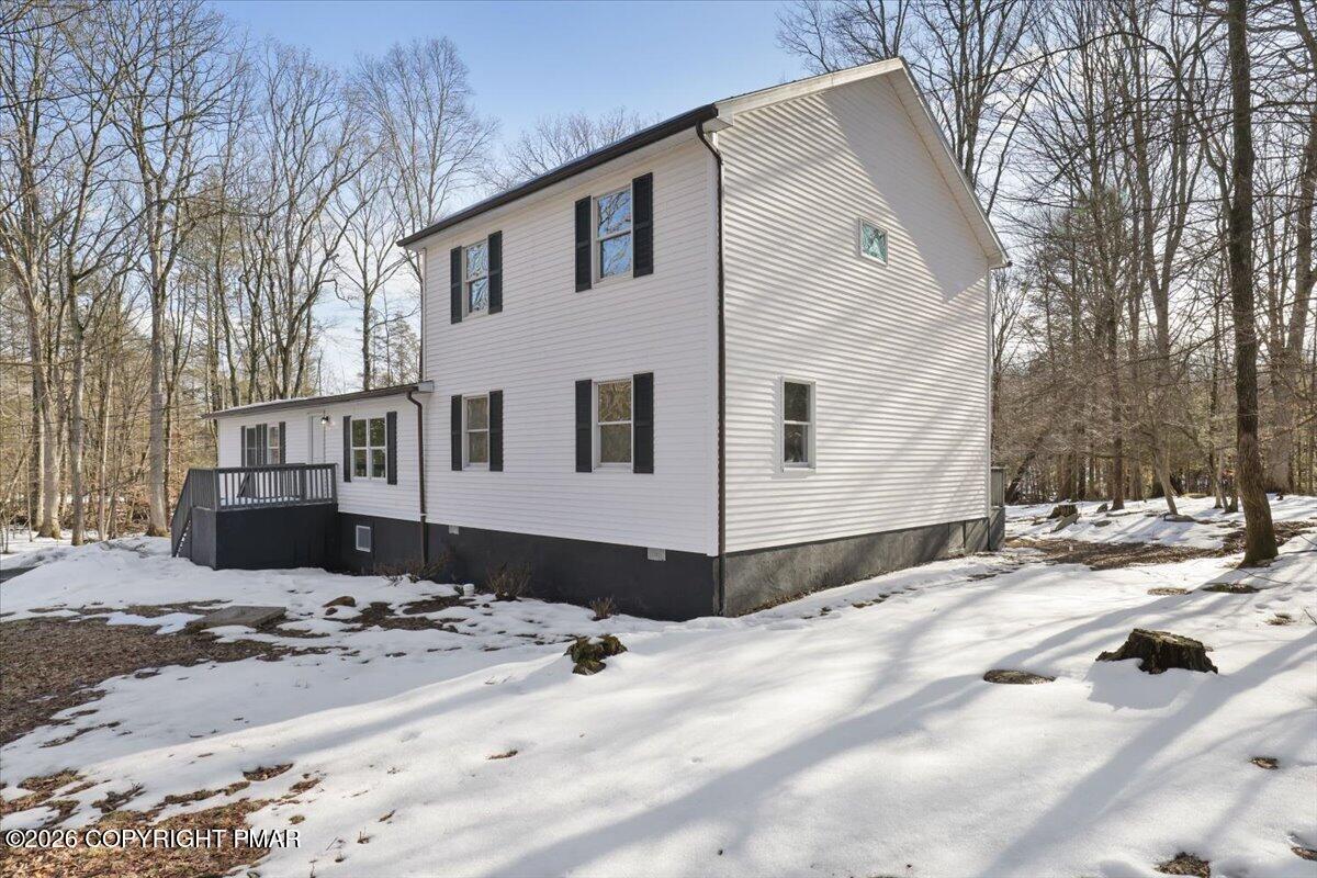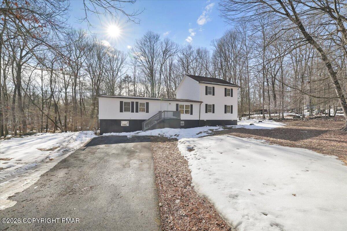 Discover exceptional space in this beautifully updated multigenerational home set on a peaceful wooded lot backing to community greenbelt with direct access to McMichaels Creek. Thoughtfully designed with multiple levels of living space, the home offers comfortable separation while still maintaining a natural flow throughout. The main level features a bright and inviting layout with a spacious living room, dining area, and an additional family room that flows from the updated kitchen with modern finishes. A convenient wet bar makes entertaining easy while three bedrooms and two full bathrooms are located on this level. Upstairs you will find three additional bedrooms and another full bathroom, expanding the home's already generous layout with even more comfortable living space. The finished lower level adds tremendous value with its own kitchen, bedroom, full bathroom, and living area, creating a private living space that can function as separate quarters within the home. The property sits on a beautiful 1+ acre lot surrounded by mature trees and the peaceful sounds of McMichaels Creek. Located just minutes from downtown Stroudsburg, the Delaware Water Gap National Recreation Area, Route 209, shopping, restaurants, and everyday conveniences. Opportunities to own a home with this much space, multiple living areas, and a serene creekside setting rarely come available! Schedule your tour today.