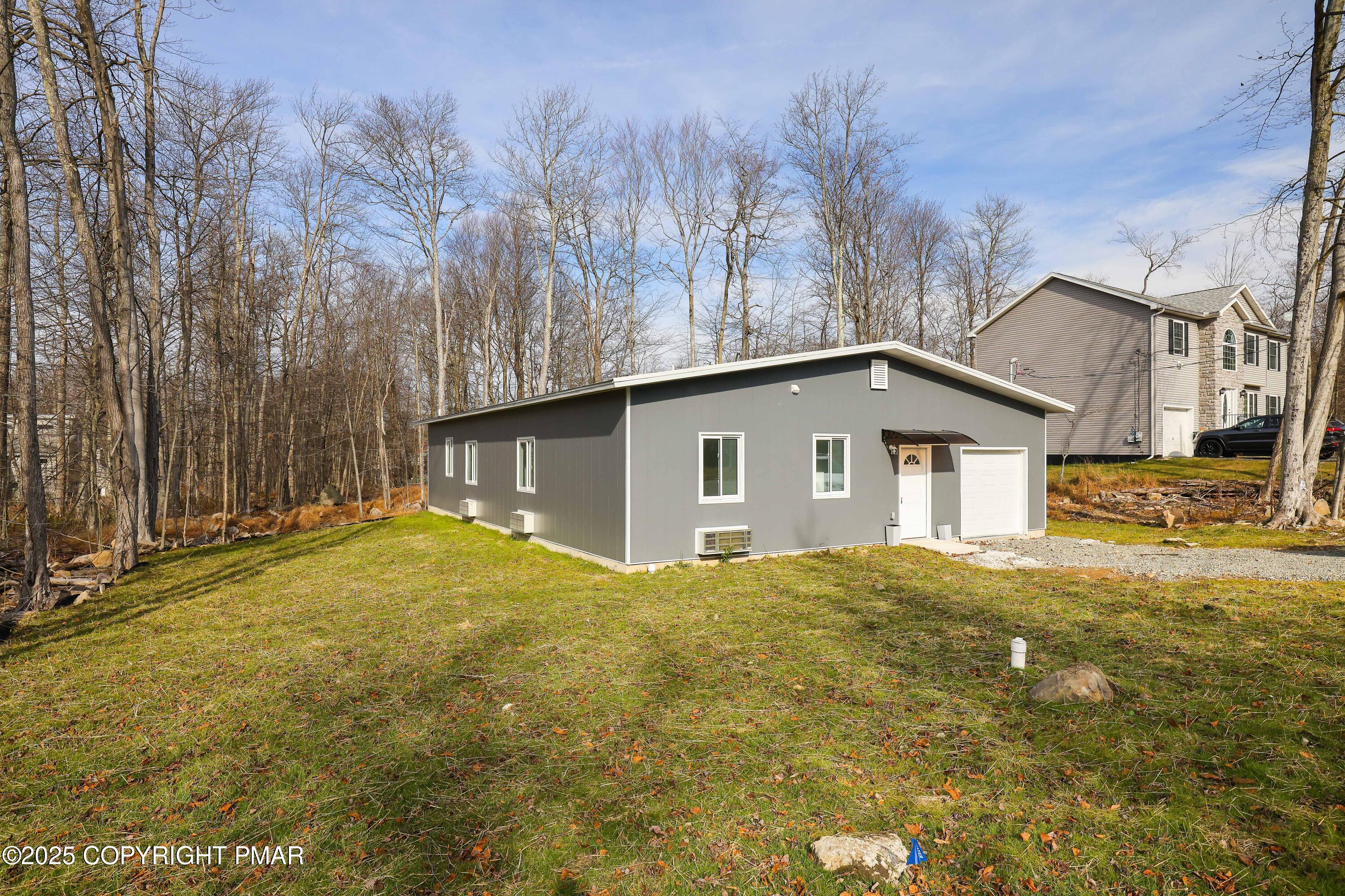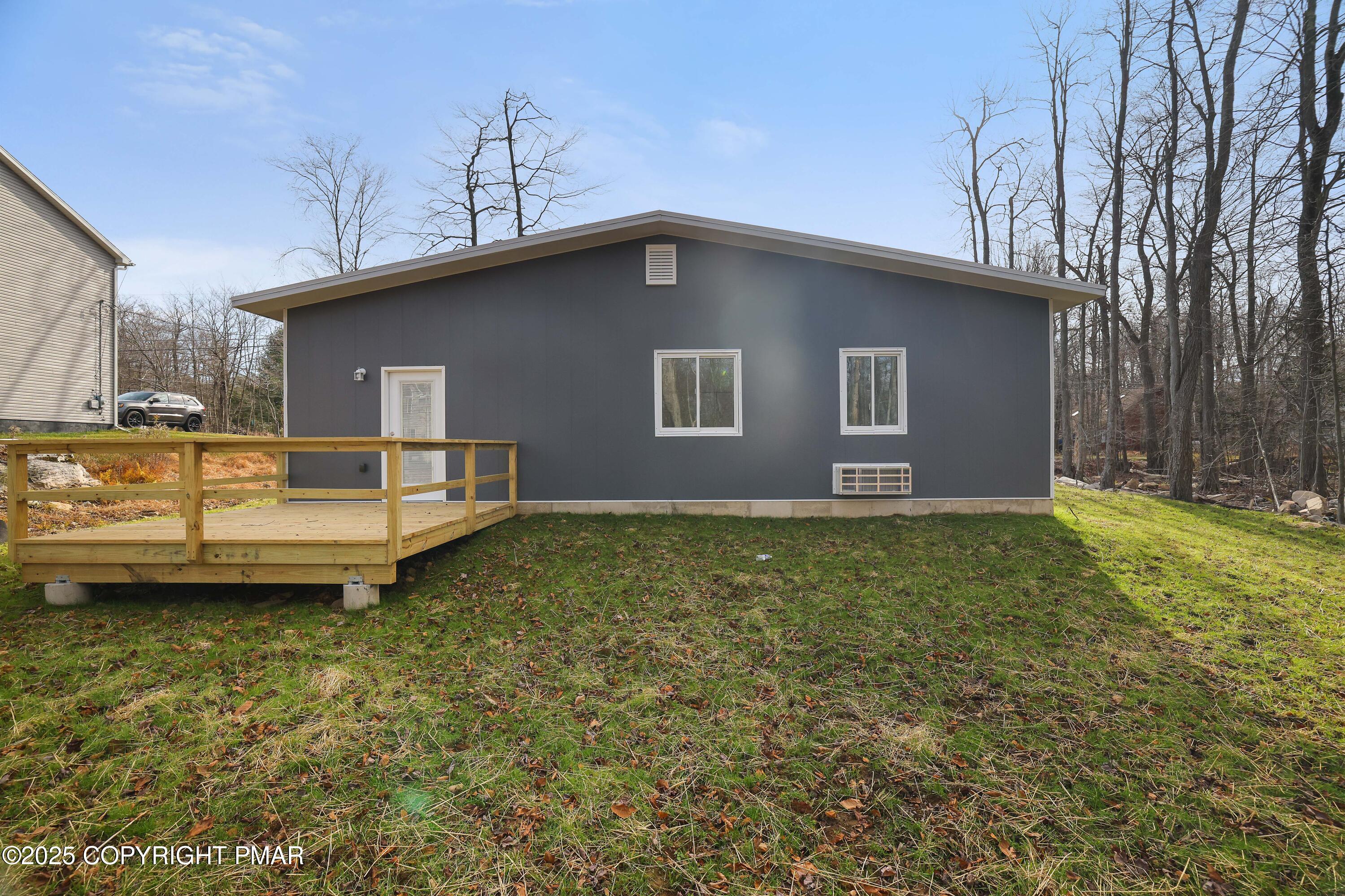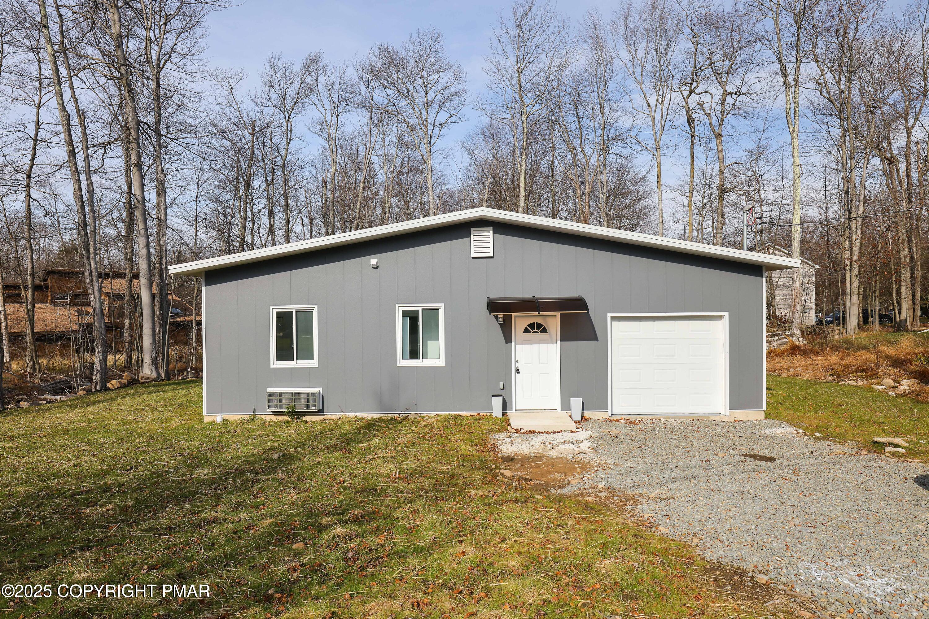 Be the first to live in this brand-new construction home, offering modern, single-level living in a gated amenity-filled community. This home features low-maintenance flooring throughout and a massive open-concept great room perfect for flexible living and entertaining. The brand-new kitchen includes white shaker cabinets, stainless steel appliances, a center island, and plenty of storage. With 4 bedrooms, 2 full baths, and a dedicated laundry room, the layout is both spacious and highly functional. The primary bedroom enjoys its own private bathroom, while the additional bedrooms are bright and generously sized. Enjoy outdoor living on the newly built deck overlooking a peaceful, wooded yard. Additional conveniences include electric heating/cooling units in every room, a one-car garage, and a clean, low-maintenance exterior. Located in A Pocono Country Place, residents enjoy amenities like lakes, pools, beaches, playgrounds, sports courts, and 24/7 gated security. Plus, you're only moments from shopping, dining, and major commuter corridors. Don't miss your opportunity to be the first to live in this brand new home - Schedule your tour today!