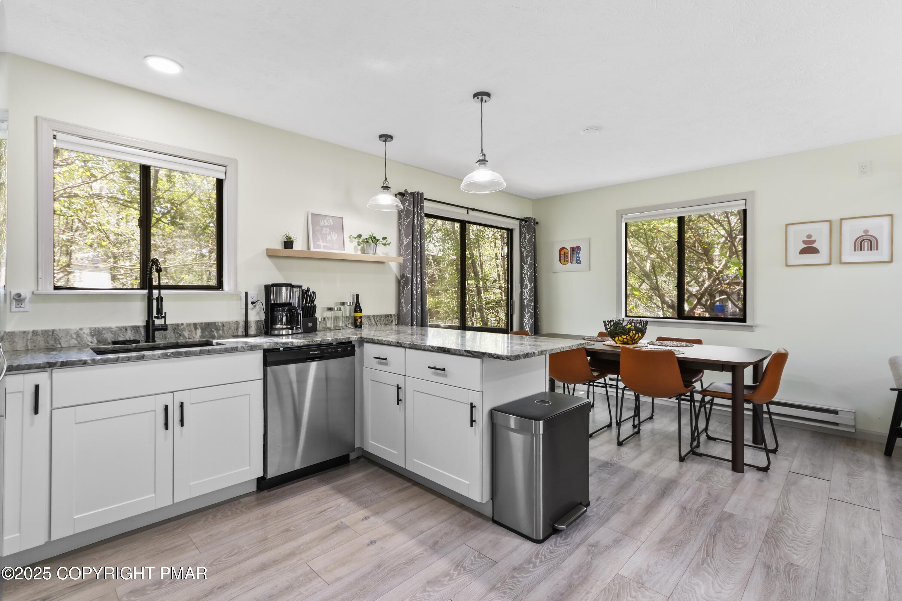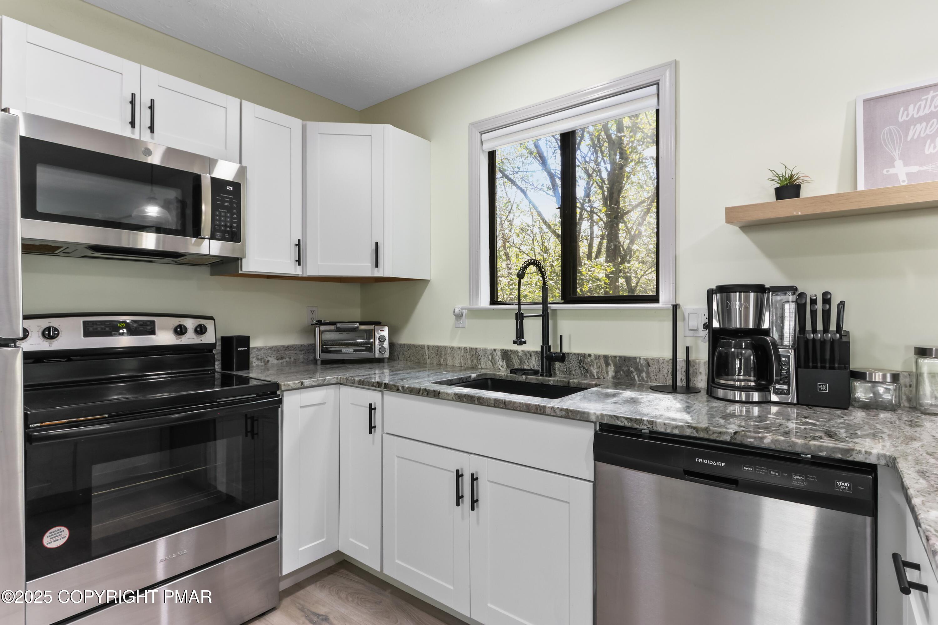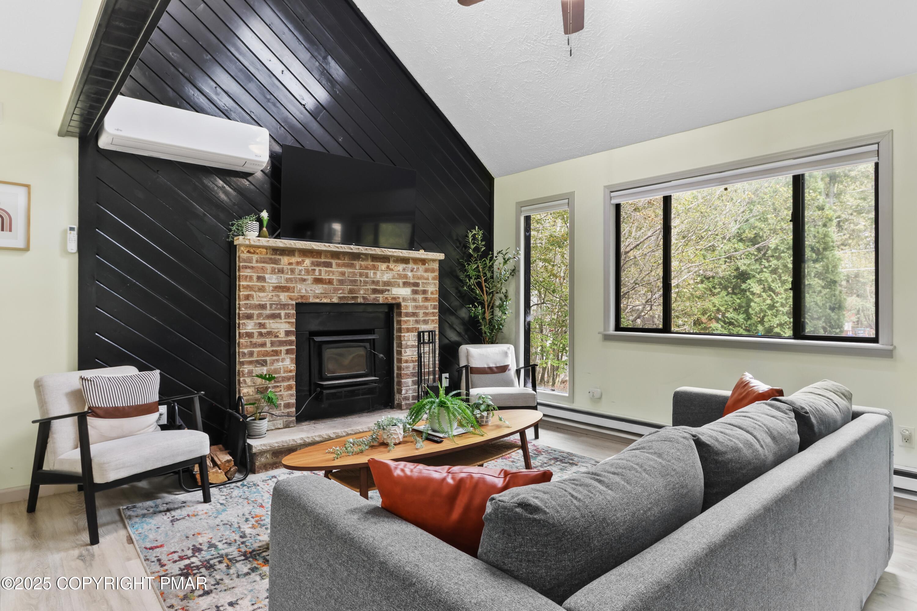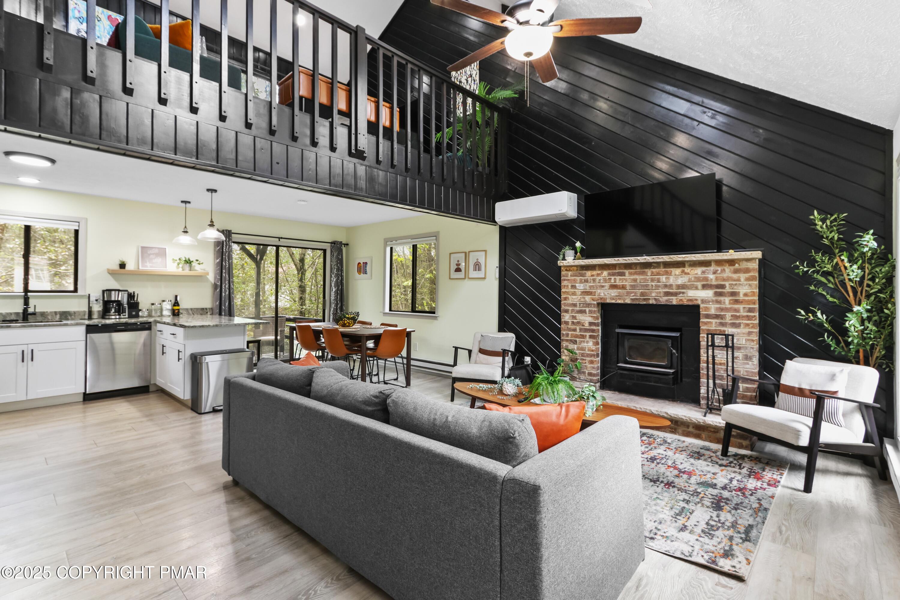 Beautifully updated contemporary home in A Pocono Country Place. Step inside and you'll be greeted by a spacious open-concept living room and kitchen, highlighted by vaulted ceilings, granite countertops, and a stone fireplace with a wood-burning stove. The loft above adds to the spacious feel, while two fully updated bathrooms offer complete the look. Downstairs, the expansive walk-out basement has been transformed into a recreation room,perfect for entertaining or relaxing after a day in the Poconos. Throughout the home, new split-unit AC/heaters keep every season comfortable. Sliding glass doors lead to not one, but two decks--ideal unwinding outdoors. To top it off, this home can be sold with furnishings! Ask how to receive a $2,000 lender credit towards closing costs or lowering your interest rate!