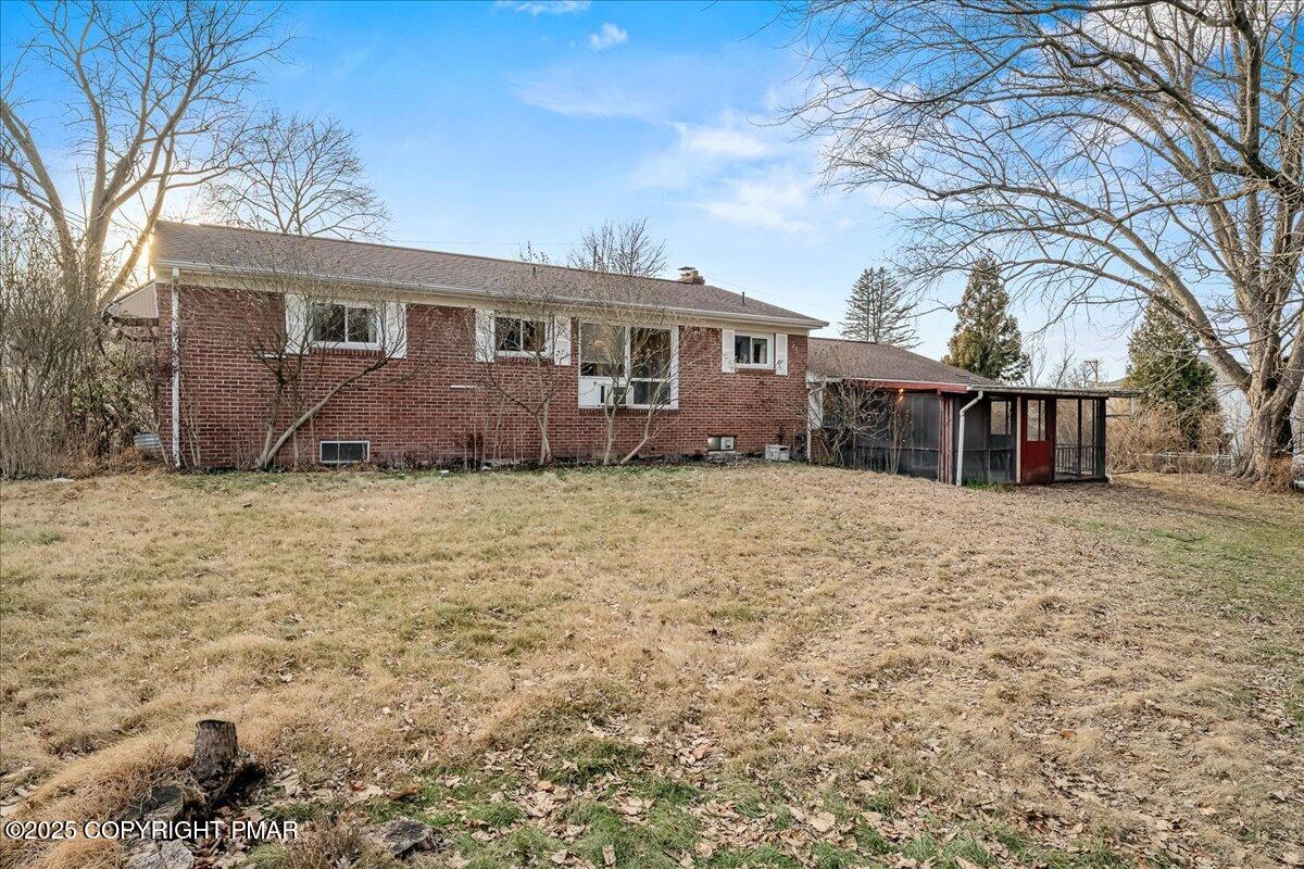 Do not miss this solid brick ranch , set on a quiet residential street in Conyngham and offers classic mid-century character with a functional, flexible layout. The home features multiple living areas, three bedrooms, and a full basement, making it well suited for homeowners or investors seeking long-term value and potential. The main level includes a bright living room with low maintenance floors and a wood-burning brick fireplace, flowing into a dedicated dining area and kitchen with ample cabinet space. Three bedrooms and a full bath complete the primary living area, providing comfortable single-level living. A large screened porch off the family room extends the living space and overlooks the backyard, creating an ideal spot for relaxing or entertaining. The full basement spans the footprint of the home and offers excellent ceiling height, providing plenty of room for storage, a workshop, or future finishing. Outside, the property offers a generous yard with mature trees, three storage sheds, and convenient off-street parking. Located just minutes from Penn State Hazleton, Interstate 80, and nearby shopping and dining, this home blends small-town living with easy access to major routes and regional employers. A great opportunity for an owner-occupant or investor looking to update and add value in a desirable Luzerne County location. Schedule your tour today!