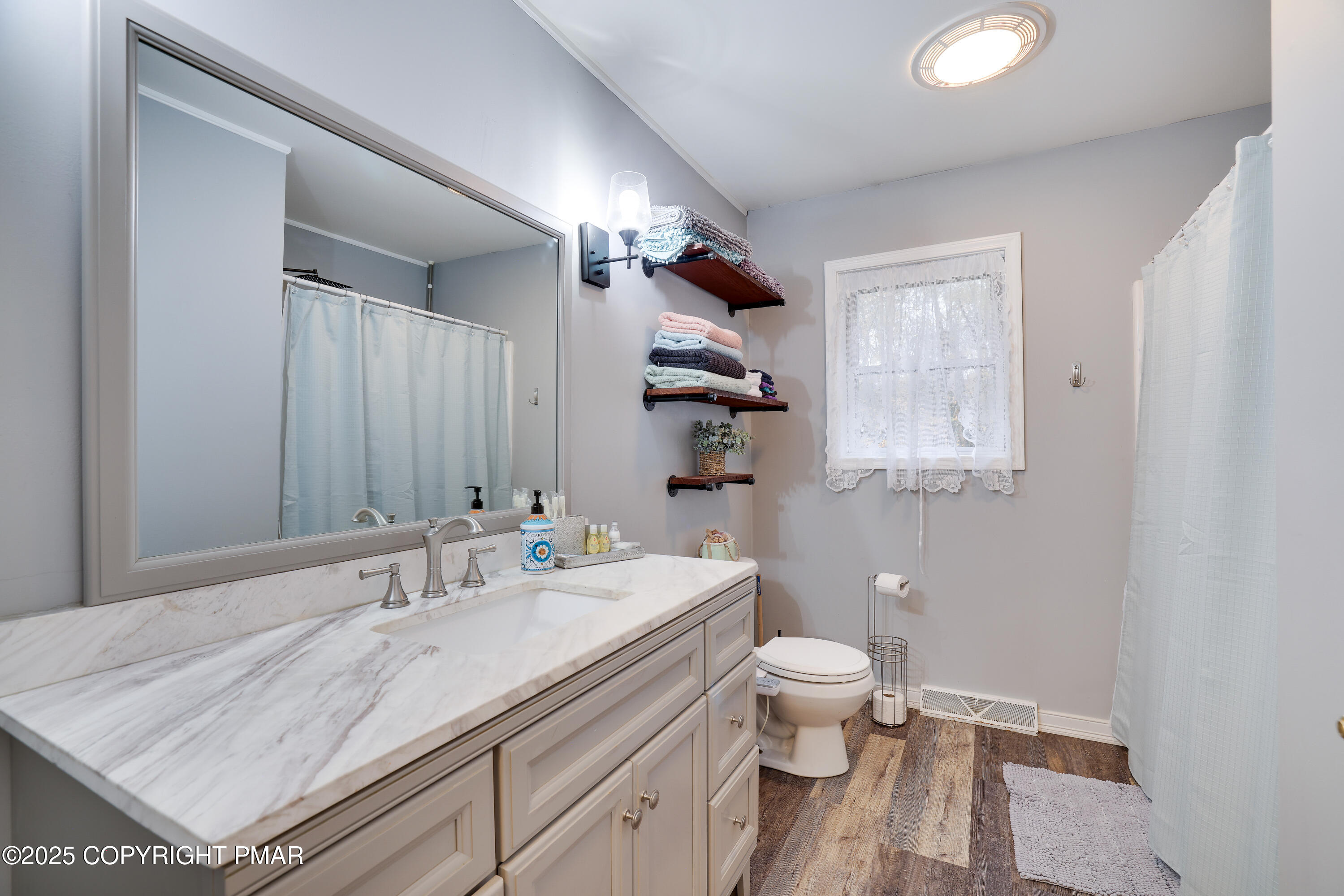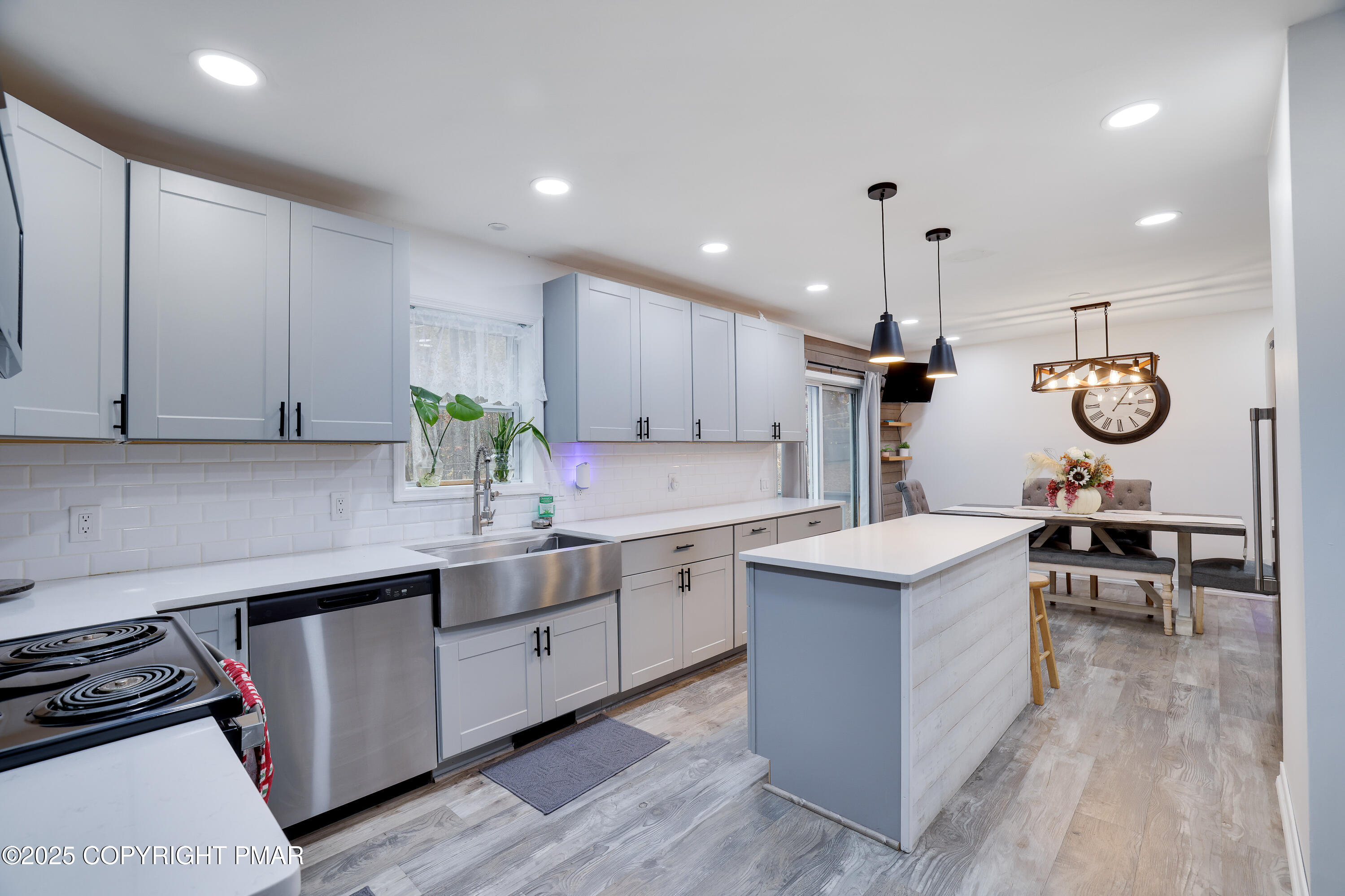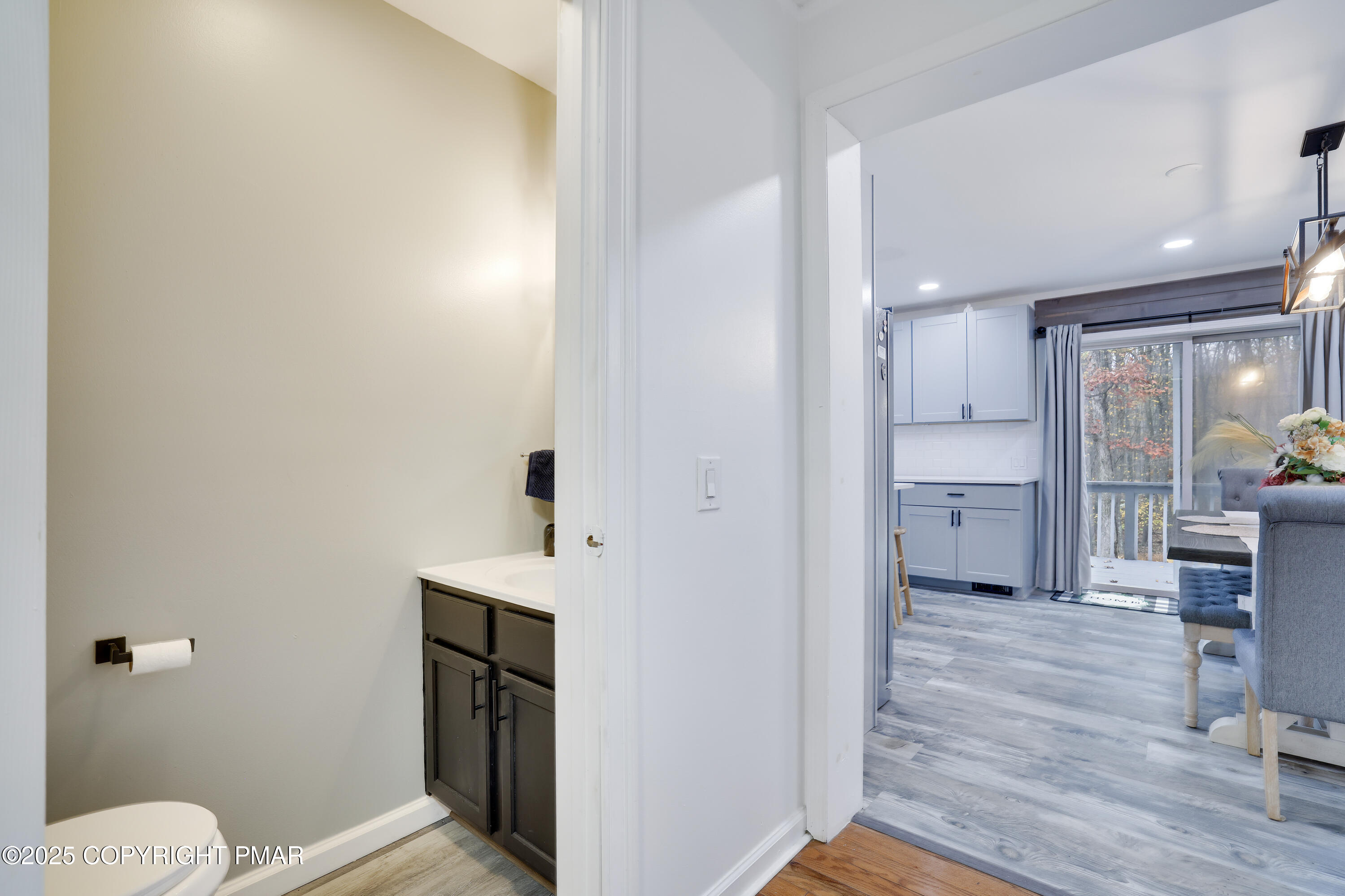 Do not wait to see this beautifully updated 3-bed, 2.5-bath home offering the perfect blend of space, function, and privacy all set on over an acre of wooded land. Situated in a quiet cul-de sac in a no dues neighborhood just minutes to Route 80 and conveniences in the downtown 'Burgs, this updated and stylish home is the one you've been seeking! Step inside to a bright open layout featuring a fully renovated kitchen with sleek cabinetry, center island, stainless steel appliances, and stylish coffee bar. The spacious living room and dining area make entertaining easy, while the first-floor office provides flexibility for remote work or a guest space. Upstairs, the primary suite stands out with a massive walk-in closet and private bath. Two additional bedrooms, a laundry area, and a full hall bath complete the second floor. The full walk-out basement provides plenty of storage or potential to finish for extra living space. Enjoy the outdoors from the expansive rear deck overlooking the wooded backyard, perfect for grilling, relaxing, or gathering around a fire pit. Other highlights include no carpet throughout, a paved driveway, and attached garage. Conveniently located near town amenities yet tucked away for peace and quiet, this is a rare opportunity to own a move-in-ready home under $350K in East Stroudsburg! Homes In This Condition at This Price Do Not Last - Schedule Your Private Tour Today!