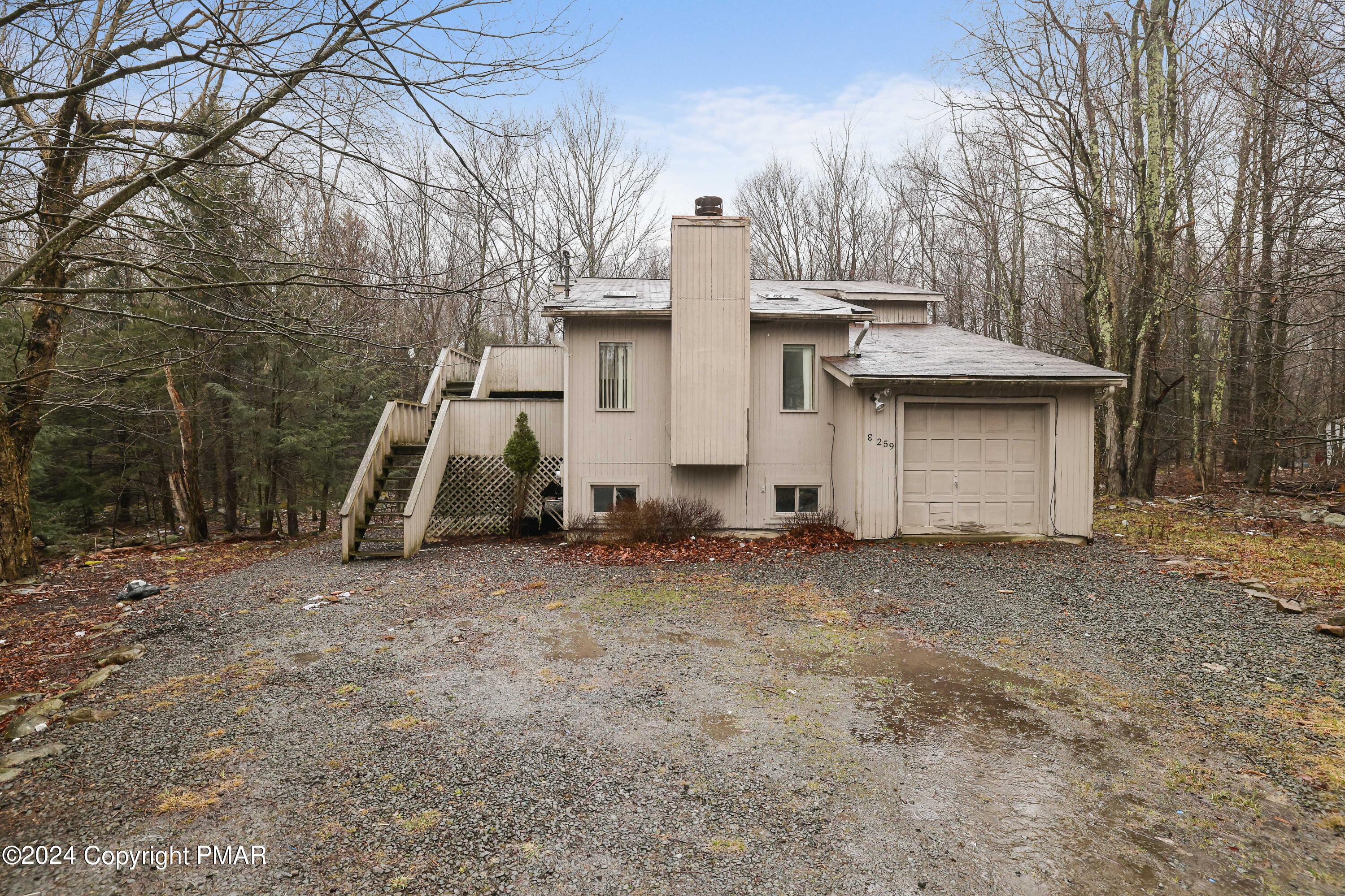 Do Not Wait to See This Fantastic Investment Opportunity in Short-Term-Rental-Friendly Coolbaugh Township Location! Set on a quiet cul de sac and bordering community-owned land and a large private tract, this property offers rare privacy in this amenity-filled neighborhood just moments to Kalahari Indoor Water Park & Convention Center, Gouldsboro & Tobyhanna State Parks and with easy access to Route 380. Pull into driveway and step up into tri-level home featuring open concept main space with separate living, dining and kitchen areas. Multiple decks offer the chance to relax and unwind overlooking nature. Spacious attached garage and HUGE unfinished walk-down crawl w 10+ ft ceilings provide expansion opportunities for living space, game rooms or additional bedrooms. The home needs substantial renovation and is being offered to Cash or Private/Hard Money financed buyers only at this time. This is a wonderful and rare chance to get a property with this type of size, potential and privacy at this sub-$200K price. Public Water/Sewer. Do Not Delay - Call Today to Schedule Your Private Tour!