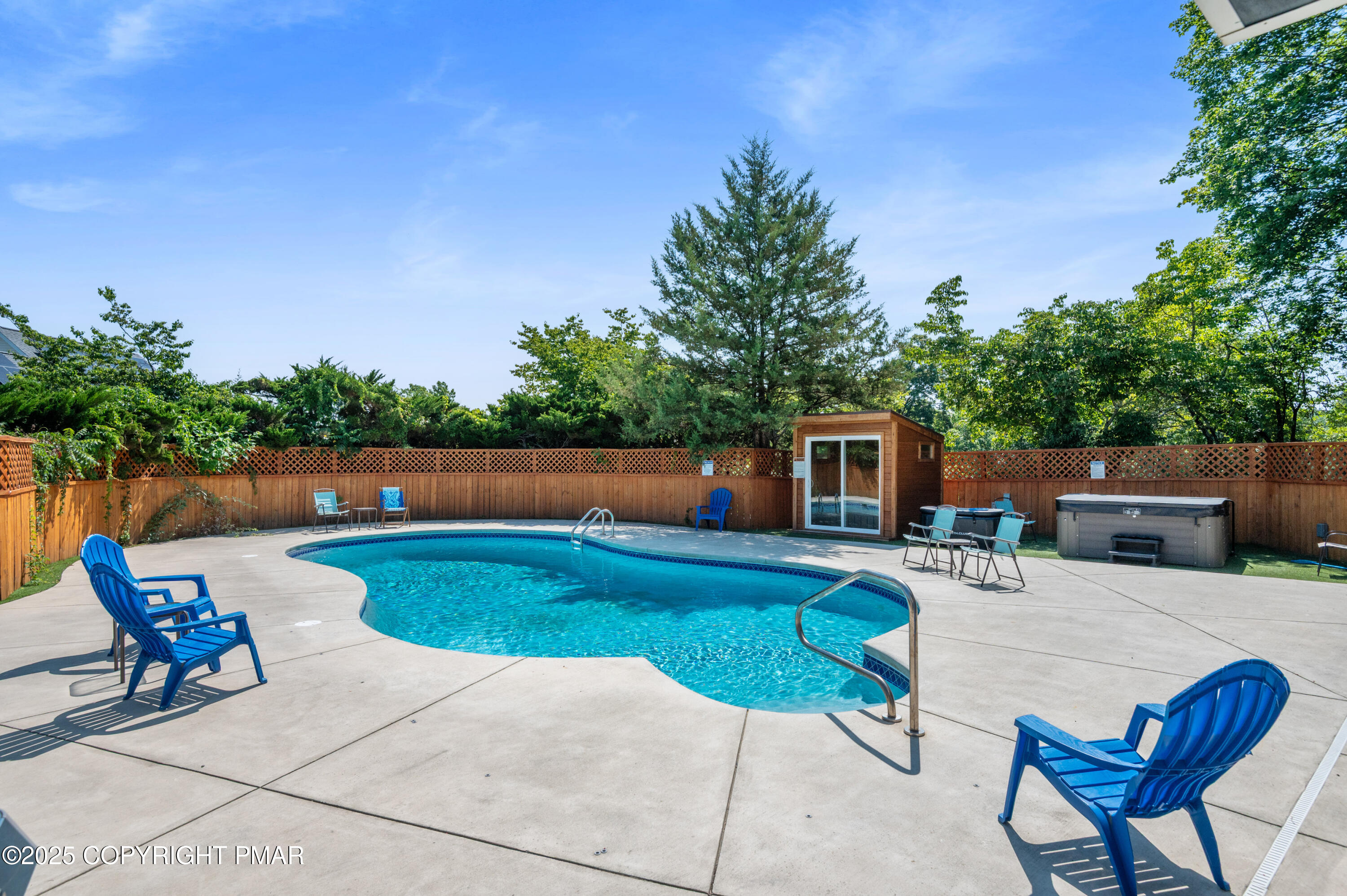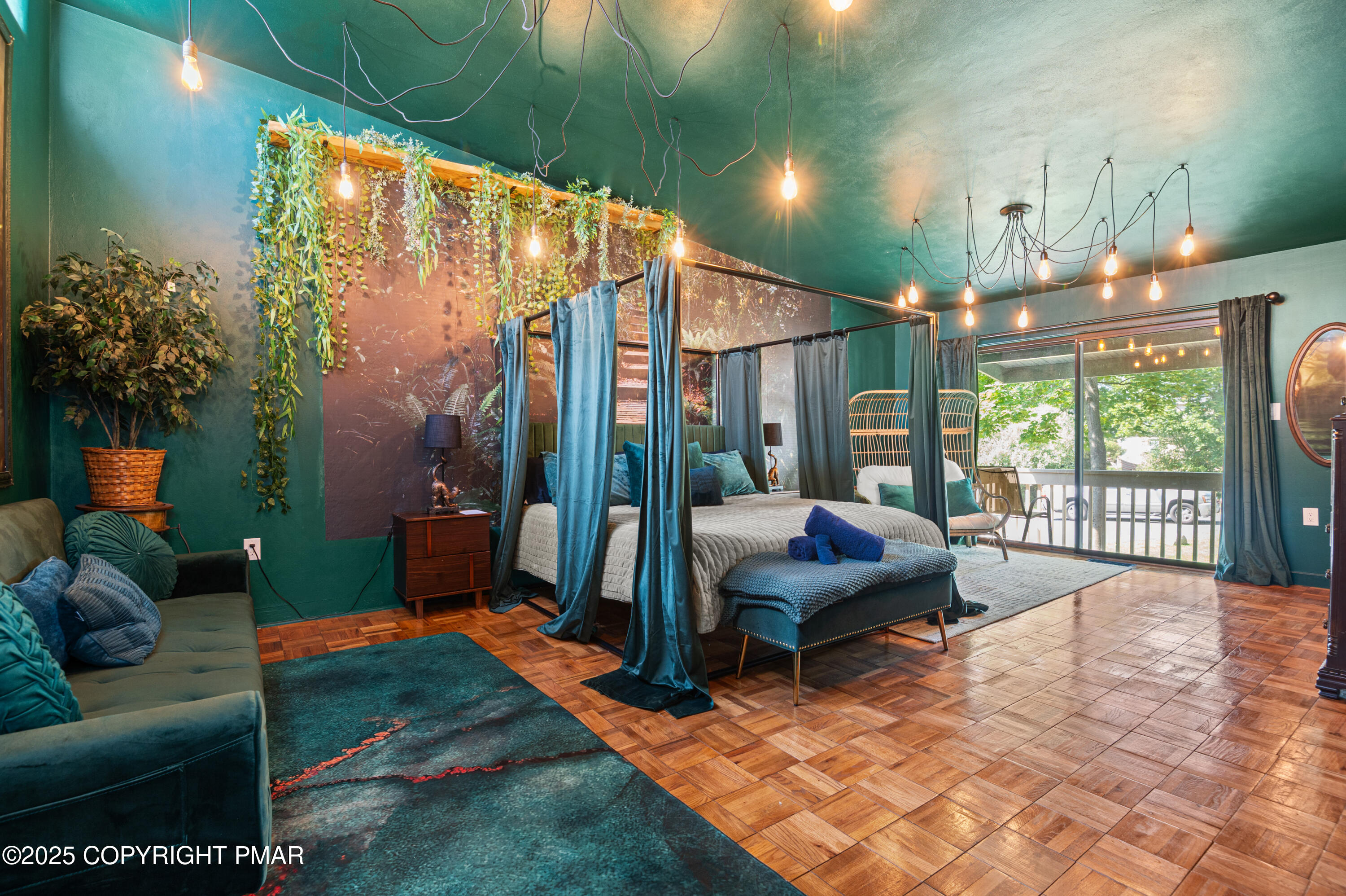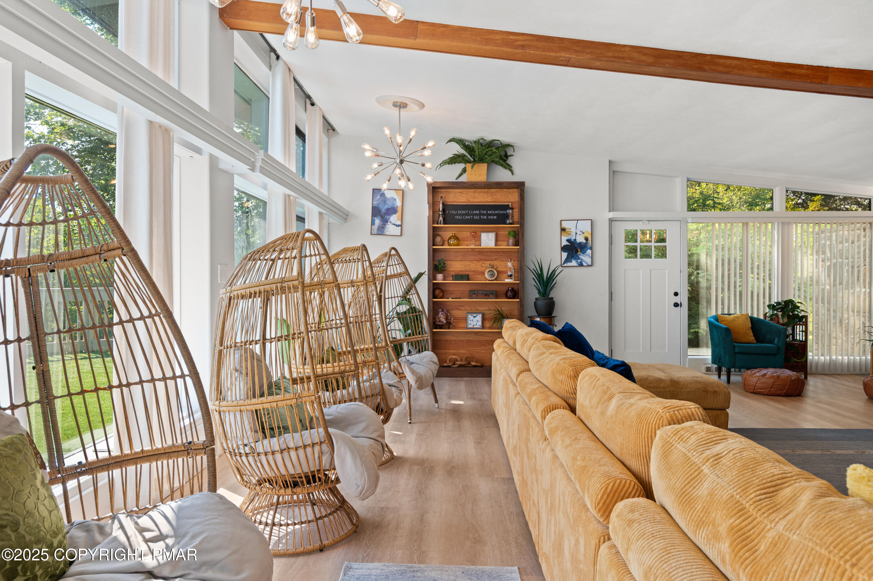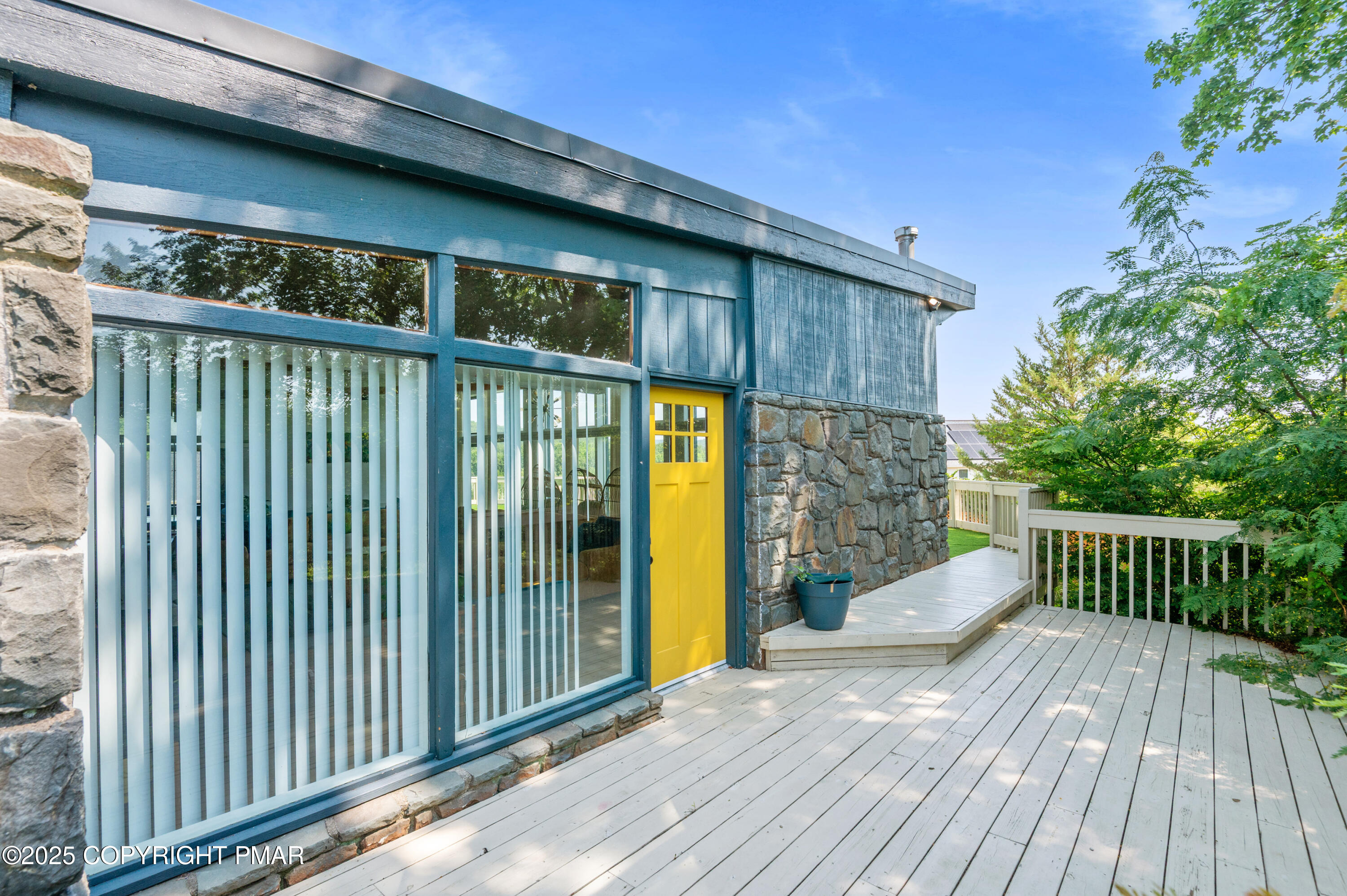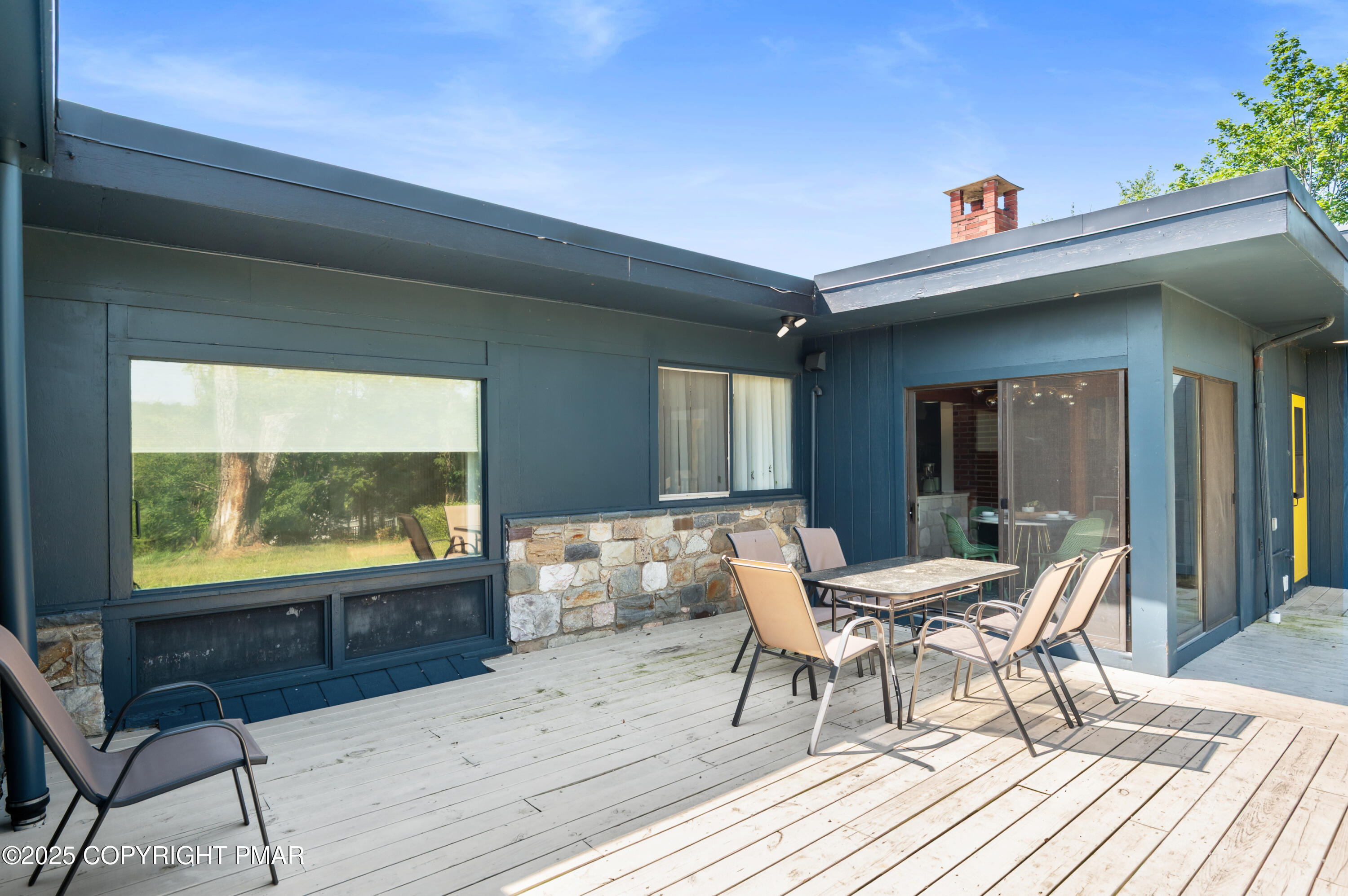 Welcome to paradise! Discover a premier Poconos destination with this extraordinary home, boasting nearly 10,000 square feet of luxurious living space on a sprawling 3.7-acre lot. This magnificent property features its own private pond and ample space to create your dream landscape while enjoying the privacy that it has to offer. This home is an architectural masterpiece with lofty ceilings, expansive walls of windows showcasing the views, and a chic mid-century modern design enhanced with unique touches by the current owners. As an active vacation rental, it generates significant income and holds immense potential for the right operator. Or, make this spectacular home your own private retreat. Need a pool? How about two of them!--an outdoor pool for seasonal enjoyment and an indoor pool for year-round relaxation. Additionally, the home includes a sauna, hot tub, and cold plunge for the ultimate spa experience. Upon entering the spacious foyer, you'll be greeted by a lush wall of jungle-themed greenery, a design element that flows throughout the home. The main living area features floor-to-ceiling windows overlooking the outdoor deck and pool area, a cozy fireplace, ample seating, and a unique epoxy table. The main floor also includes two game rooms and a charming breakfast area, which is next to the contemporary kitchen which is fully equipped to meet all your culinary needs. The main level hosts five uniquely themed bedrooms, each with its own in-room seating area and rich design themes including the ''Tiger Room'' and ''Peacock Room,''the reasons for these names being evident as you tour the home. Three of these bedrooms also feature private balconies. A separate guest suite, accessible via a delightful walkway, offers a more traditional design with its own full kitchen, lofted living space, two spacious bedrooms, and a full bath, functioning as a complete home within the home. The lower level adds to the home's appeal with a large custom bunkroom, laundry facilities with three sets of washers and dryers, a second spacious living area with a fireplace, a full bath adjacent to the indoor pool area, and a unique mystery room. Utility rooms, abundant storage, and garage space complete this level. Situated just 1.5 hours from NYC and a short drive from many premier Poconos destinations including Kalahari Waterpark, Camelback & Shawnee Ski areas, Bushkill Falls, and many more, this home offers endless entertainment options. Shopping, dining, and golf are also within minutes. With so much to do, you might never want to leave this paradise! Don't miss the chance to own this piece of Poconos paradisecome takethe tour and experience it for yourself!