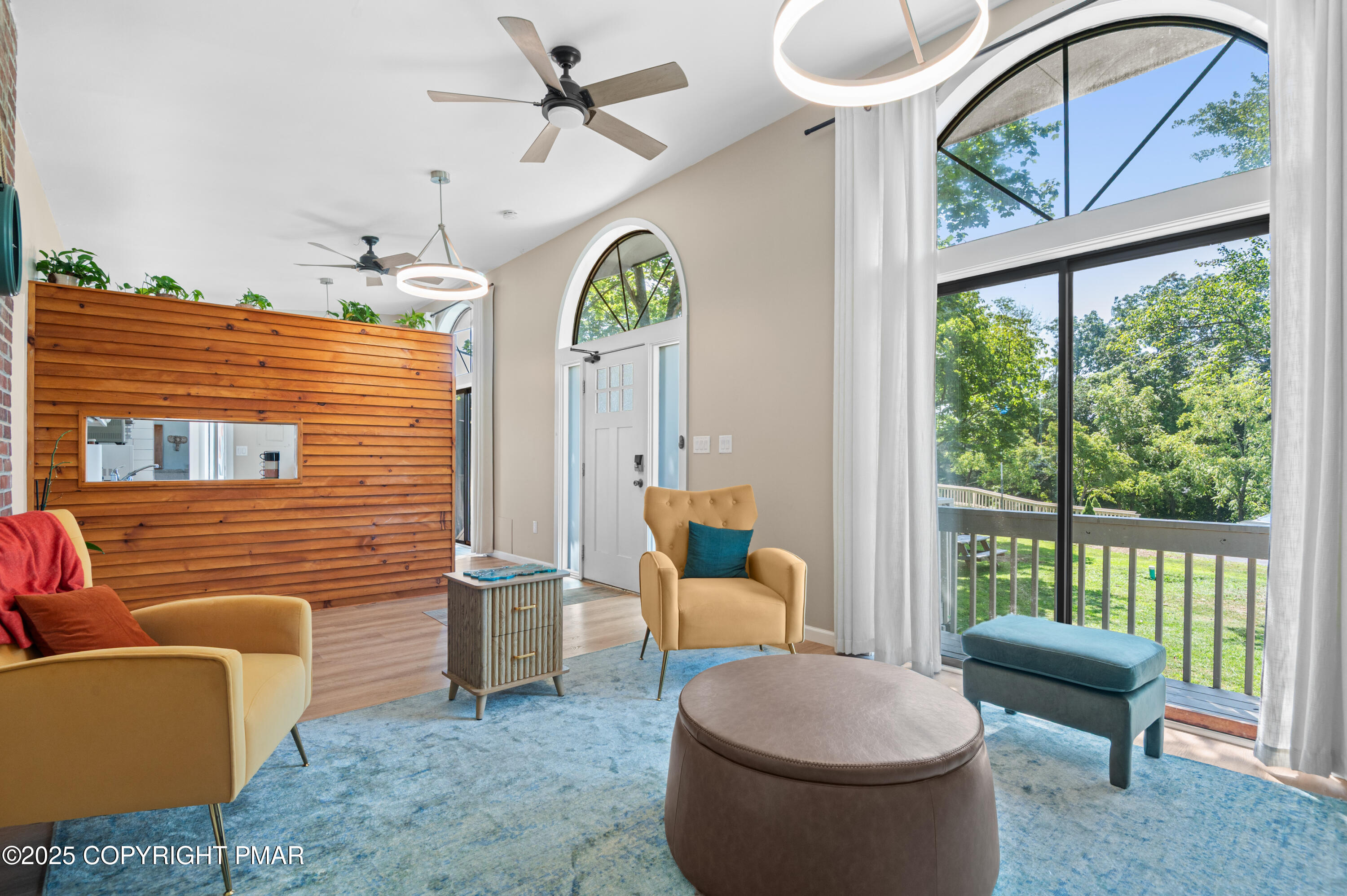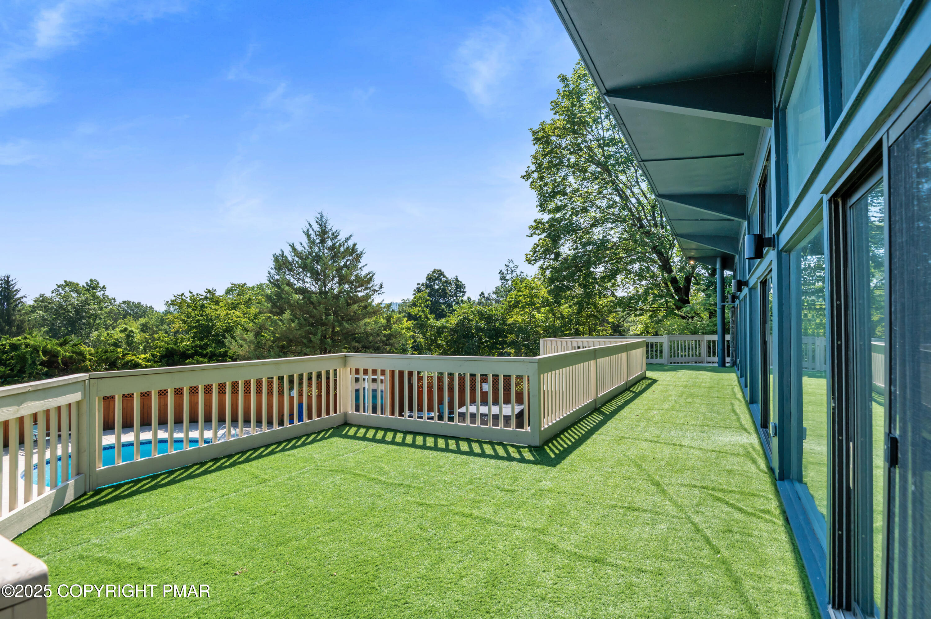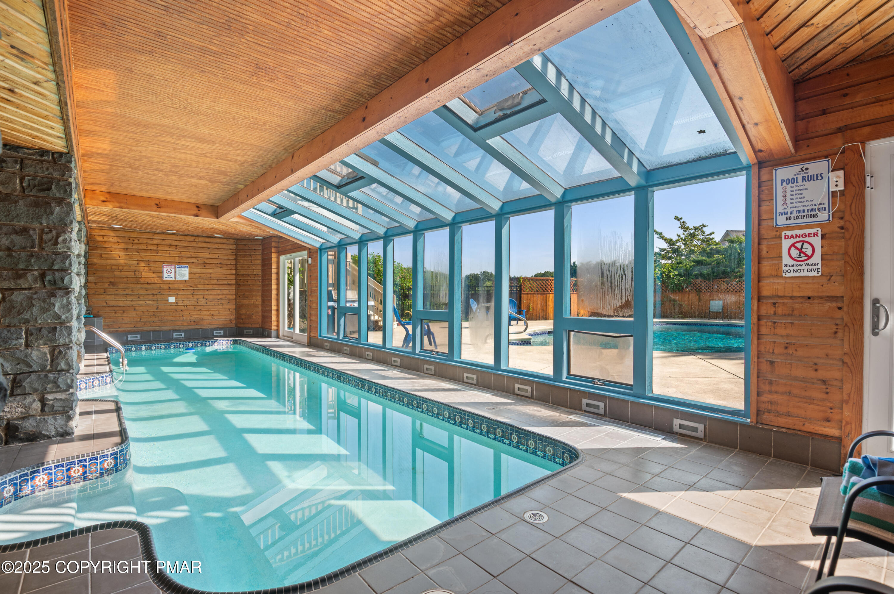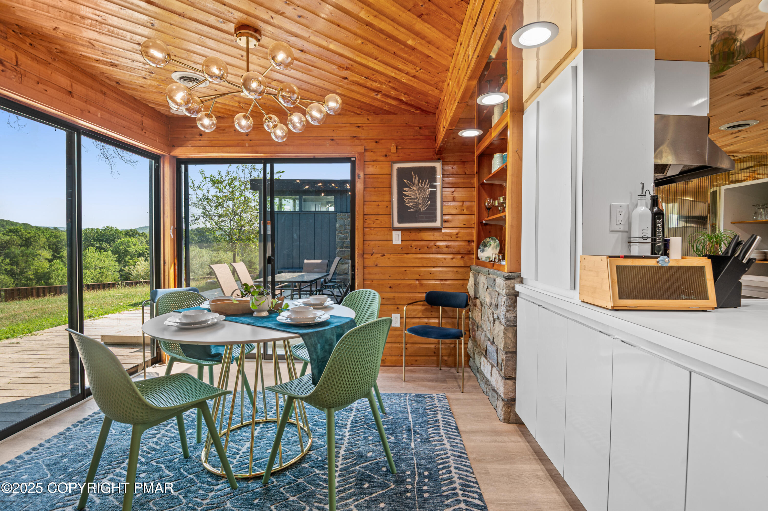 Welcome to paradise! Discover a premier Poconos destination with this extraordinary home, boasting nearly 10,000 square feet of luxurious living space on a sprawling 3.7-acre lot. This magnificent property features its own private pond and ample space to create your dream landscape while enjoying the privacy that it has to offer. This home is an architectural masterpiece with lofty ceilings, expansive walls of windows showcasing the views, and a chic mid-century modern design enhanced with unique touches by the current owners. As an active vacation rental, it generates significant income and holds immense potential for the right operator. Or, make this spectacular home your own private retreat. Need a pool? How about two of them!--an outdoor pool for seasonal enjoyment and an indoor pool for year-round relaxation. Additionally, the home includes a sauna, hot tub, and cold plunge for the ultimate spa experience. Upon entering the spacious foyer, you'll be greeted by a lush wall of jungle-themed greenery, a design element that flows throughout the home. The main living area features floor-to-ceiling windows overlooking the outdoor deck and pool area, a cozy fireplace, ample seating, and a unique epoxy table. The main floor also includes two game rooms and a charming breakfast area, which is next to the contemporary kitchen which is fully equipped to meet all your culinary needs. The main level hosts five uniquely themed bedrooms, each with its own in-room seating area and rich design themes including the ''Tiger Room'' and ''Peacock Room,''the reasons for these names being evident as you tour the home. Three of these bedrooms also feature private balconies. A separate guest suite, accessible via a delightful walkway, offers a more traditional design with its own full kitchen, lofted living space, two spacious bedrooms, and a full bath, functioning as a complete home within the home. The lower level adds to the home's appeal with a large custom bunkroom, laundry facilities with three sets of washers and dryers, a second spacious living area with a fireplace, a full bath adjacent to the indoor pool area, and a unique mystery room. Utility rooms, abundant storage, and garage space complete this level. Situated just 1.5 hours from NYC and a short drive from many premier Poconos destinations including Kalahari Waterpark, Camelback & Shawnee Ski areas, Bushkill Falls, and many more, this home offers endless entertainment options. Shopping, dining, and golf are also within minutes. With so much to do, you might never want to leave this paradise! Don't miss the chance to own this piece of Poconos paradisecome takethe tour and experience it for yourself!