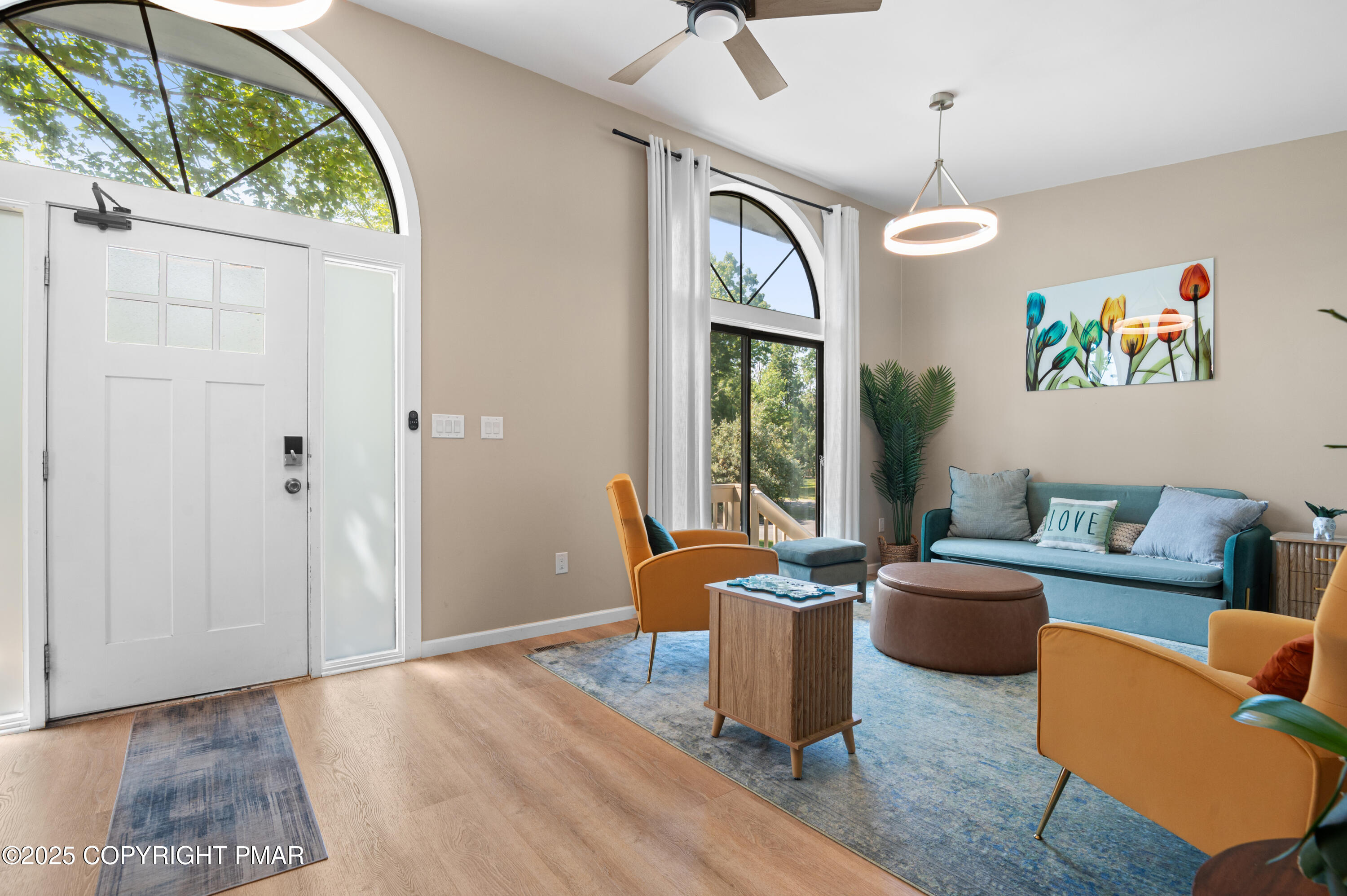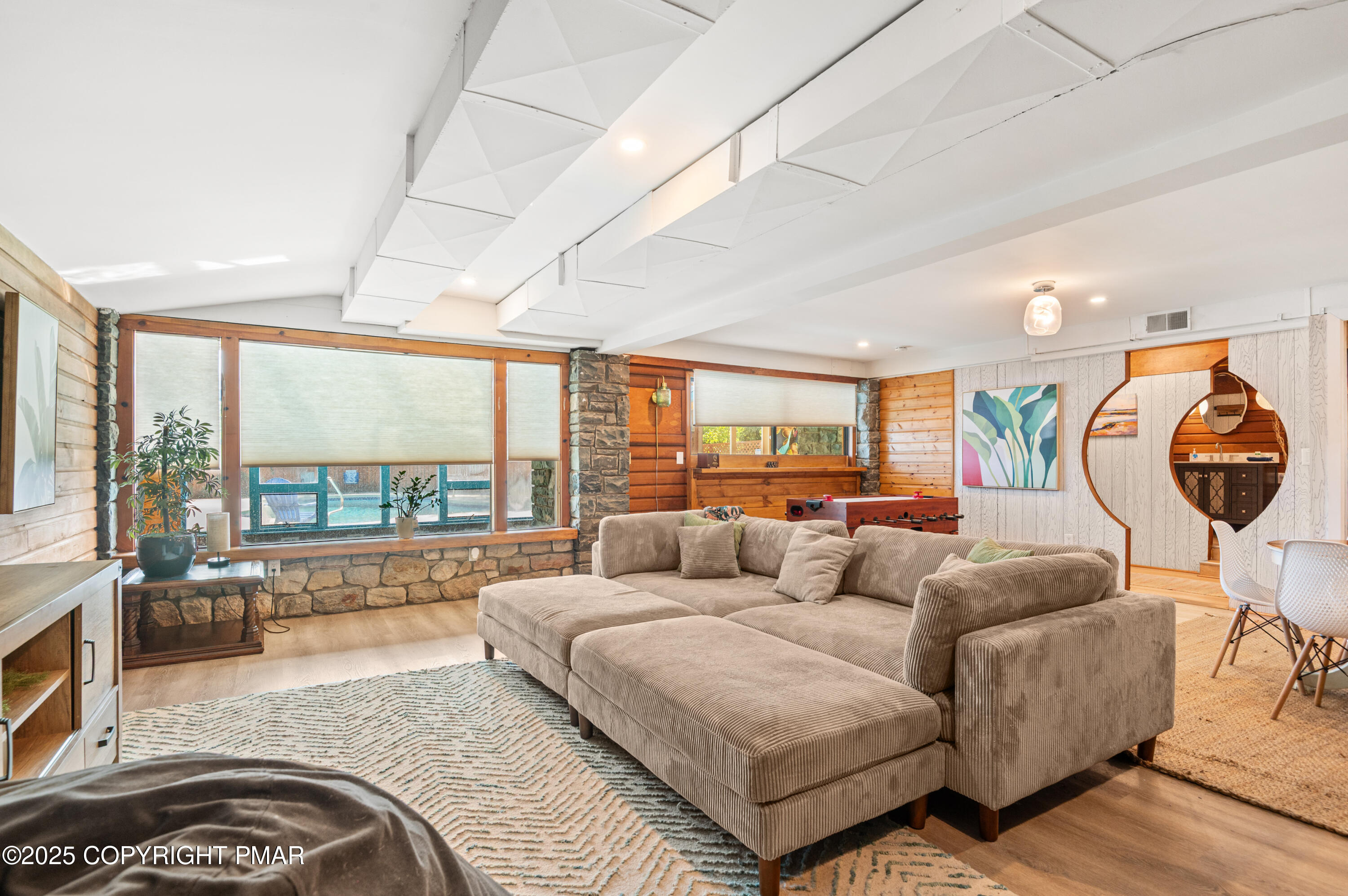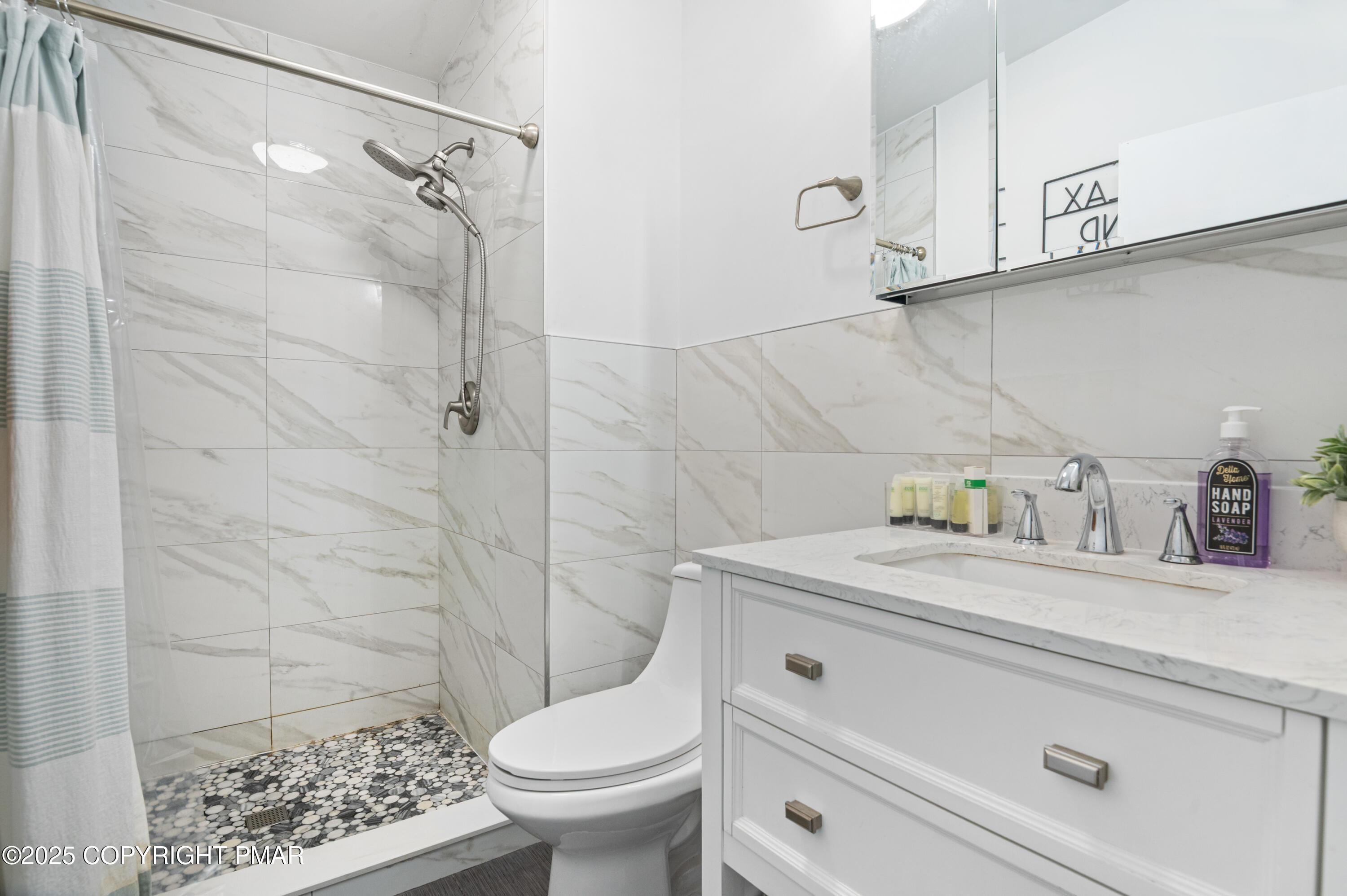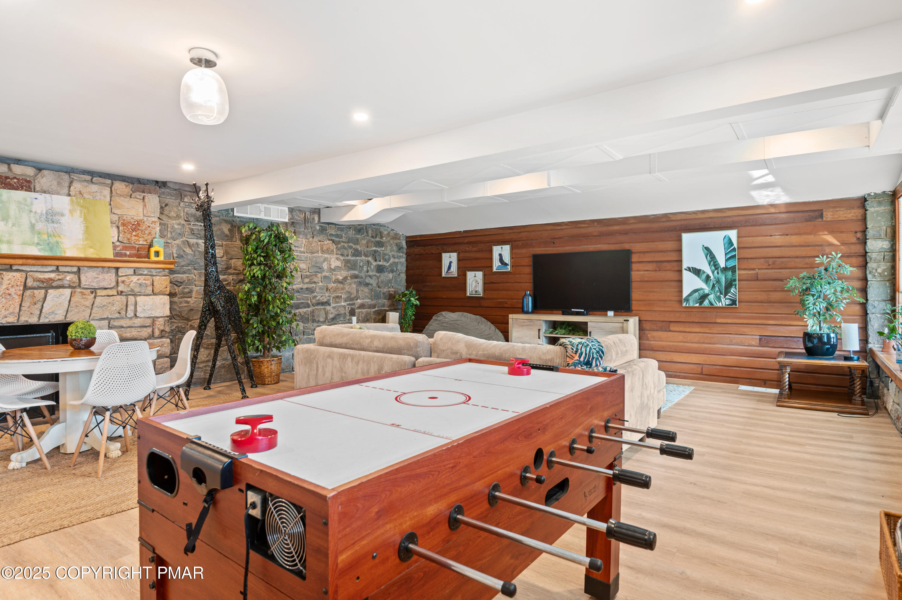 Welcome to paradise! Discover a premier Poconos destination with this extraordinary home, boasting nearly 10,000 square feet of luxurious living space on a sprawling 3.7-acre lot. This magnificent property features its own private pond and ample space to create your dream landscape while enjoying the privacy that it has to offer. This home is an architectural masterpiece with lofty ceilings, expansive walls of windows showcasing the views, and a chic mid-century modern design enhanced with unique touches by the current owners. As an active vacation rental, it generates significant income and holds immense potential for the right operator. Or, make this spectacular home your own private retreat. Need a pool? How about two of them!--an outdoor pool for seasonal enjoyment and an indoor pool for year-round relaxation. Additionally, the home includes a sauna, hot tub, and cold plunge for the ultimate spa experience. Upon entering the spacious foyer, you'll be greeted by a lush wall of jungle-themed greenery, a design element that flows throughout the home. The main living area features floor-to-ceiling windows overlooking the outdoor deck and pool area, a cozy fireplace, ample seating, and a unique epoxy table. The main floor also includes two game rooms and a charming breakfast area, which is next to the contemporary kitchen which is fully equipped to meet all your culinary needs. The main level hosts five uniquely themed bedrooms, each with its own in-room seating area and rich design themes including the ''Tiger Room'' and ''Peacock Room,''the reasons for these names being evident as you tour the home. Three of these bedrooms also feature private balconies. A separate guest suite, accessible via a delightful walkway, offers a more traditional design with its own full kitchen, lofted living space, two spacious bedrooms, and a full bath, functioning as a complete home within the home. The lower level adds to the home's appeal with a large custom bunkroom, laundry facilities with three sets of washers and dryers, a second spacious living area with a fireplace, a full bath adjacent to the indoor pool area, and a unique mystery room. Utility rooms, abundant storage, and garage space complete this level. Situated just 1.5 hours from NYC and a short drive from many premier Poconos destinations including Kalahari Waterpark, Camelback & Shawnee Ski areas, Bushkill Falls, and many more, this home offers endless entertainment options. Shopping, dining, and golf are also within minutes. With so much to do, you might never want to leave this paradise! Don't miss the chance to own this piece of Poconos paradisecome takethe tour and experience it for yourself!