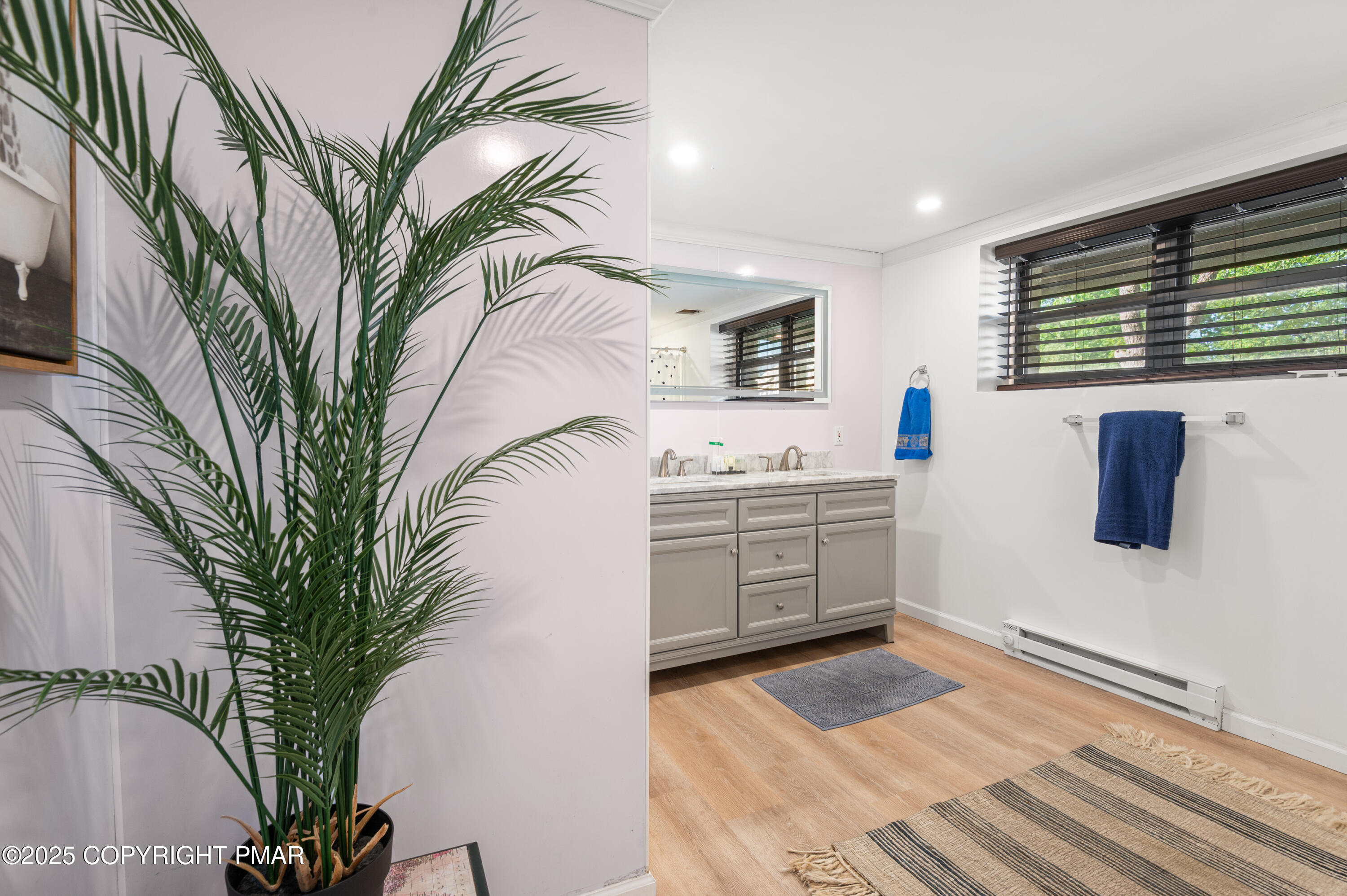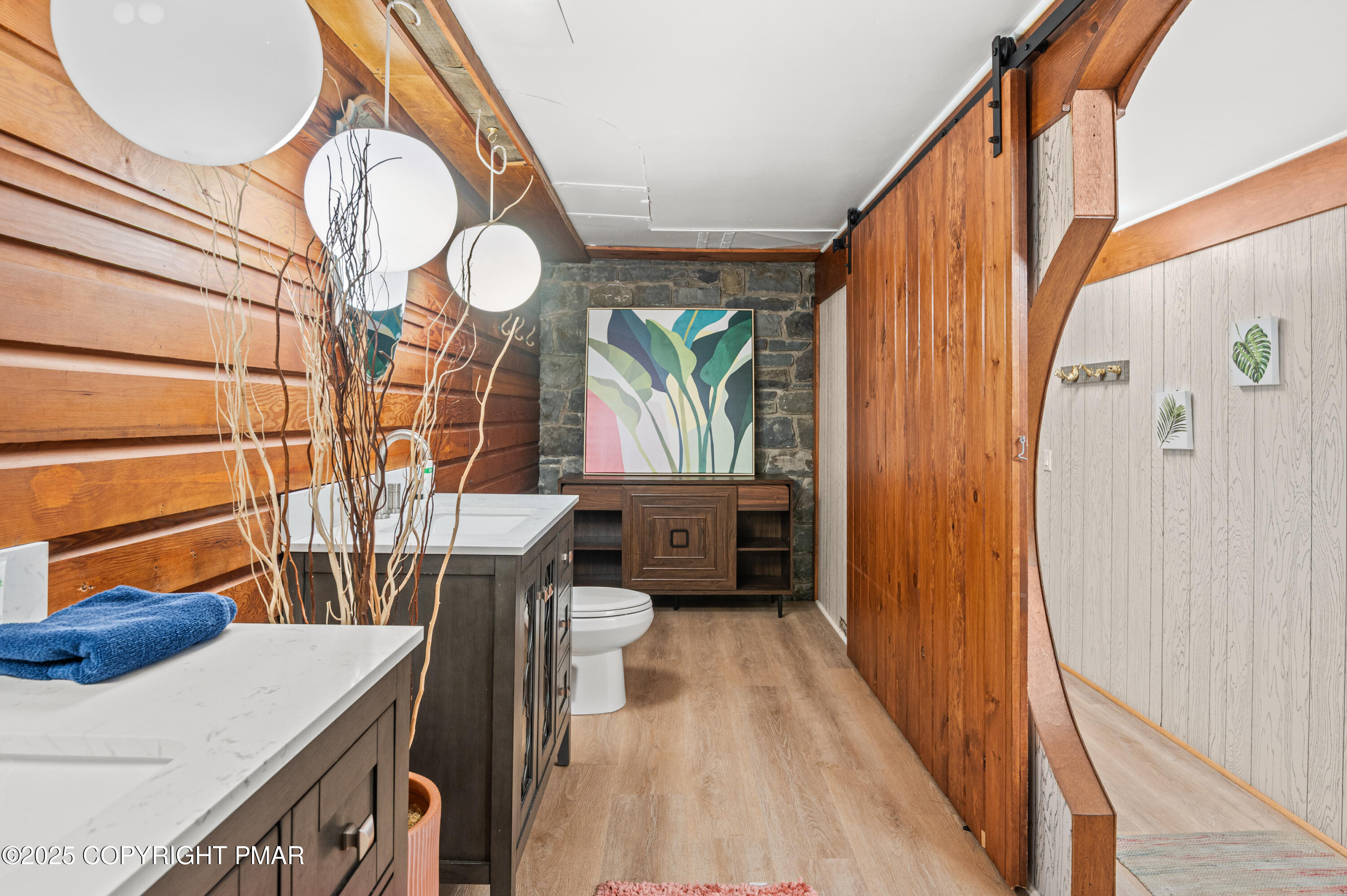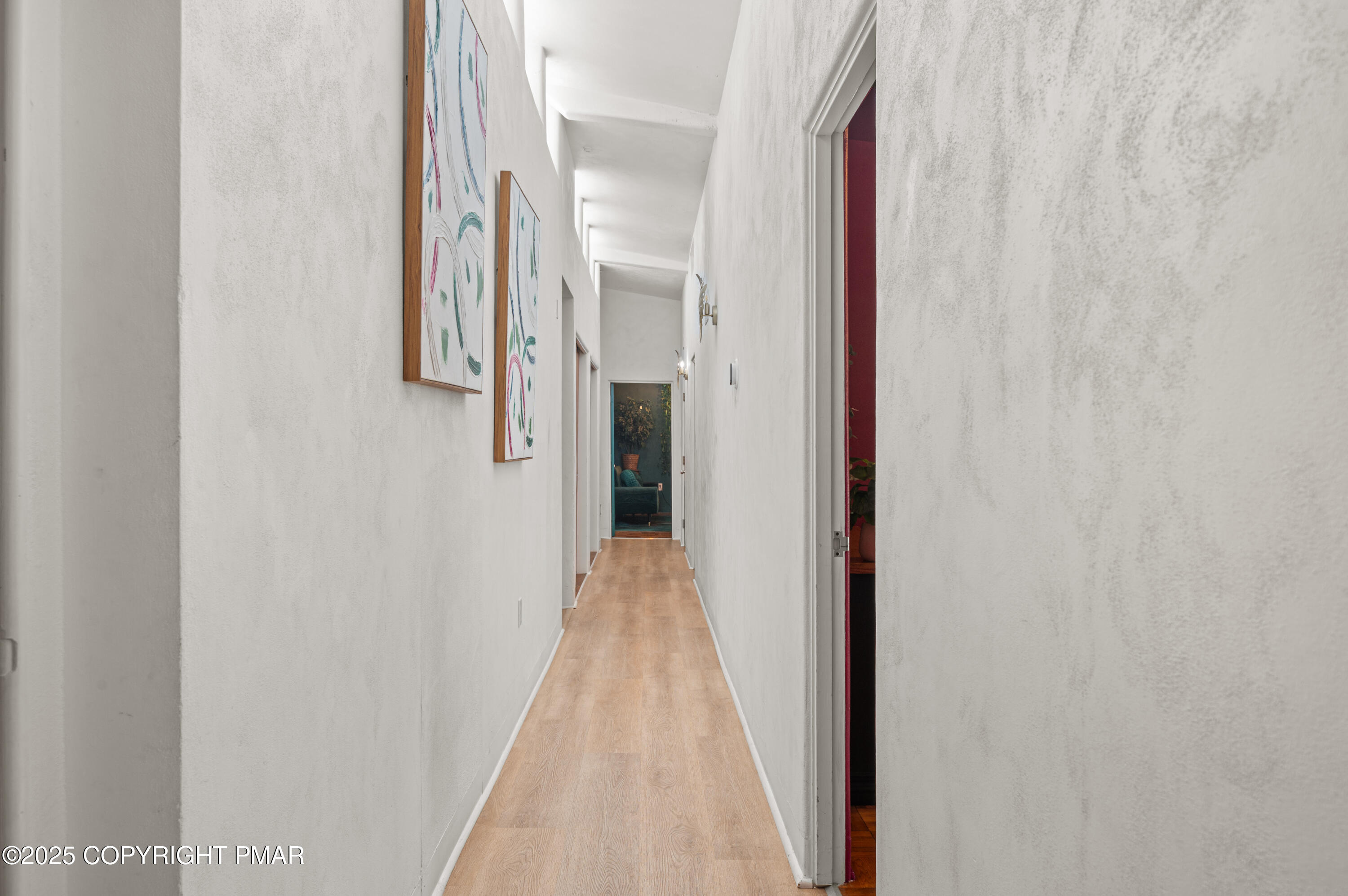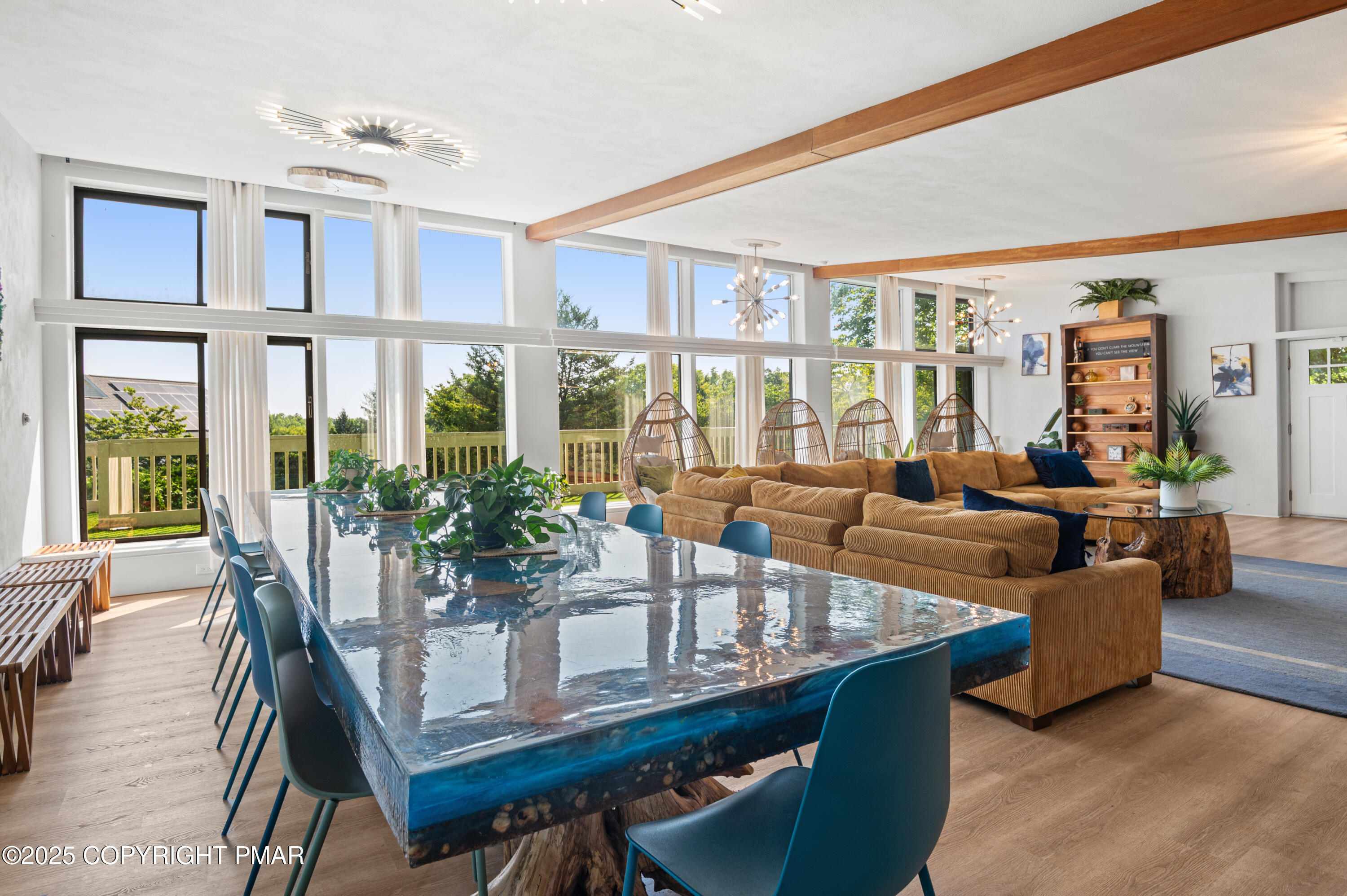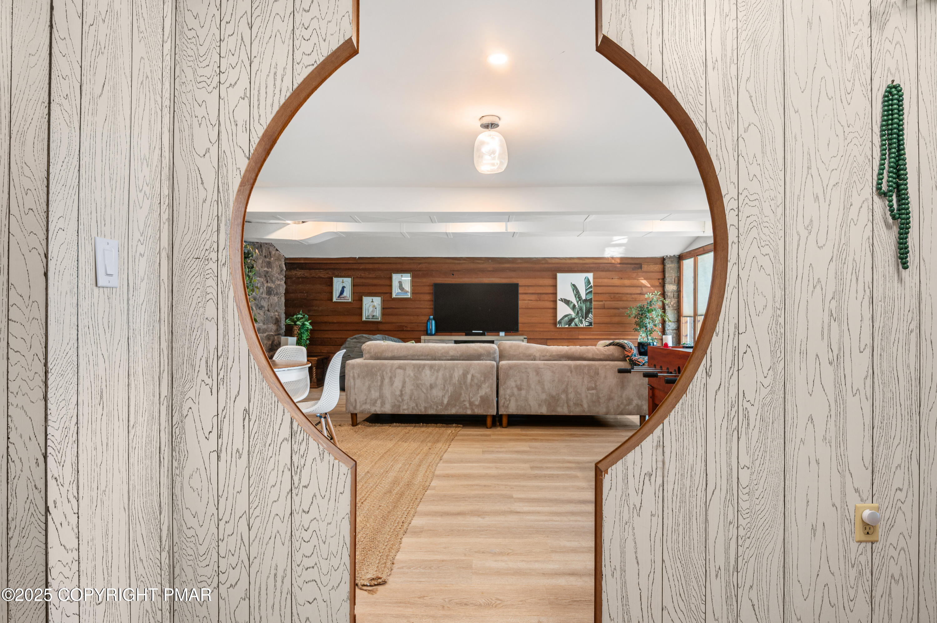 Welcome to paradise! Discover a premier Poconos destination with this extraordinary home, boasting nearly 10,000 square feet of luxurious living space on a sprawling 3.7-acre lot. This magnificent property features its own private pond and ample space to create your dream landscape while enjoying the privacy that it has to offer. This home is an architectural masterpiece with lofty ceilings, expansive walls of windows showcasing the views, and a chic mid-century modern design enhanced with unique touches by the current owners. As an active vacation rental, it generates significant income and holds immense potential for the right operator. Or, make this spectacular home your own private retreat. Need a pool? How about two of them!--an outdoor pool for seasonal enjoyment and an indoor pool for year-round relaxation. Additionally, the home includes a sauna, hot tub, and cold plunge for the ultimate spa experience. Upon entering the spacious foyer, you'll be greeted by a lush wall of jungle-themed greenery, a design element that flows throughout the home. The main living area features floor-to-ceiling windows overlooking the outdoor deck and pool area, a cozy fireplace, ample seating, and a unique epoxy table. The main floor also includes two game rooms and a charming breakfast area, which is next to the contemporary kitchen which is fully equipped to meet all your culinary needs. The main level hosts five uniquely themed bedrooms, each with its own in-room seating area and rich design themes including the ''Tiger Room'' and ''Peacock Room,''the reasons for these names being evident as you tour the home. Three of these bedrooms also feature private balconies. A separate guest suite, accessible via a delightful walkway, offers a more traditional design with its own full kitchen, lofted living space, two spacious bedrooms, and a full bath, functioning as a complete home within the home. The lower level adds to the home's appeal with a large custom bunkroom, laundry facilities with three sets of washers and dryers, a second spacious living area with a fireplace, a full bath adjacent to the indoor pool area, and a unique mystery room. Utility rooms, abundant storage, and garage space complete this level. Situated just 1.5 hours from NYC and a short drive from many premier Poconos destinations including Kalahari Waterpark, Camelback & Shawnee Ski areas, Bushkill Falls, and many more, this home offers endless entertainment options. Shopping, dining, and golf are also within minutes. With so much to do, you might never want to leave this paradise! Don't miss the chance to own this piece of Poconos paradisecome takethe tour and experience it for yourself!