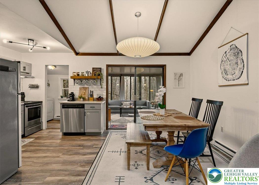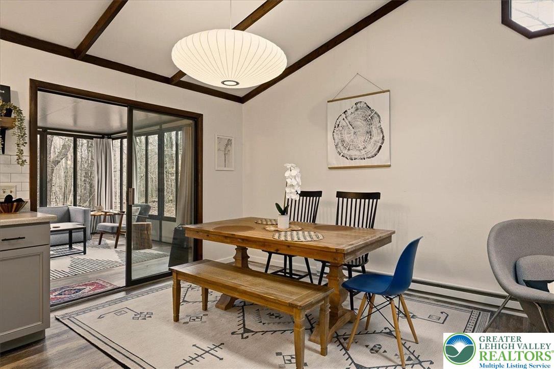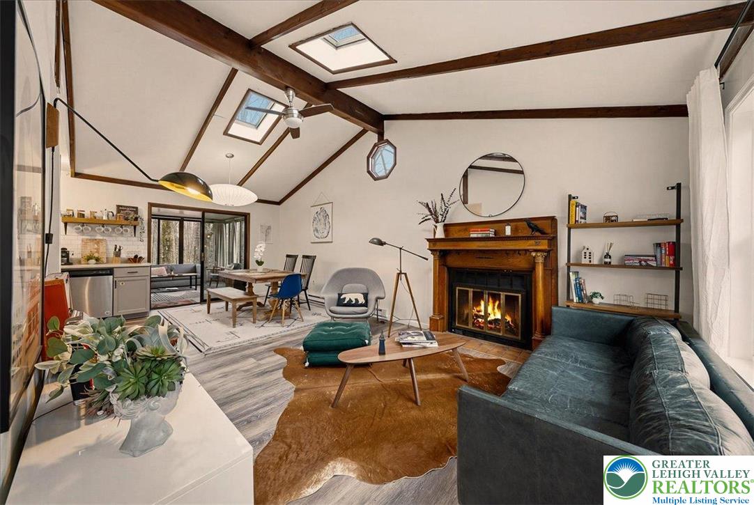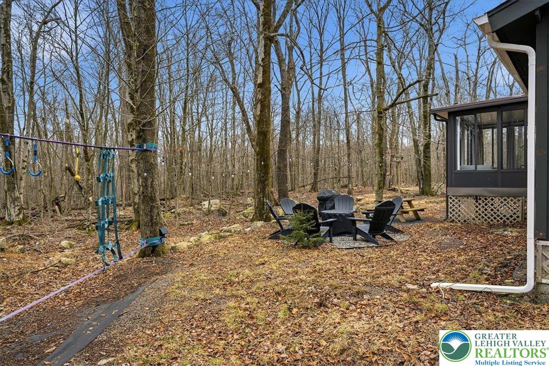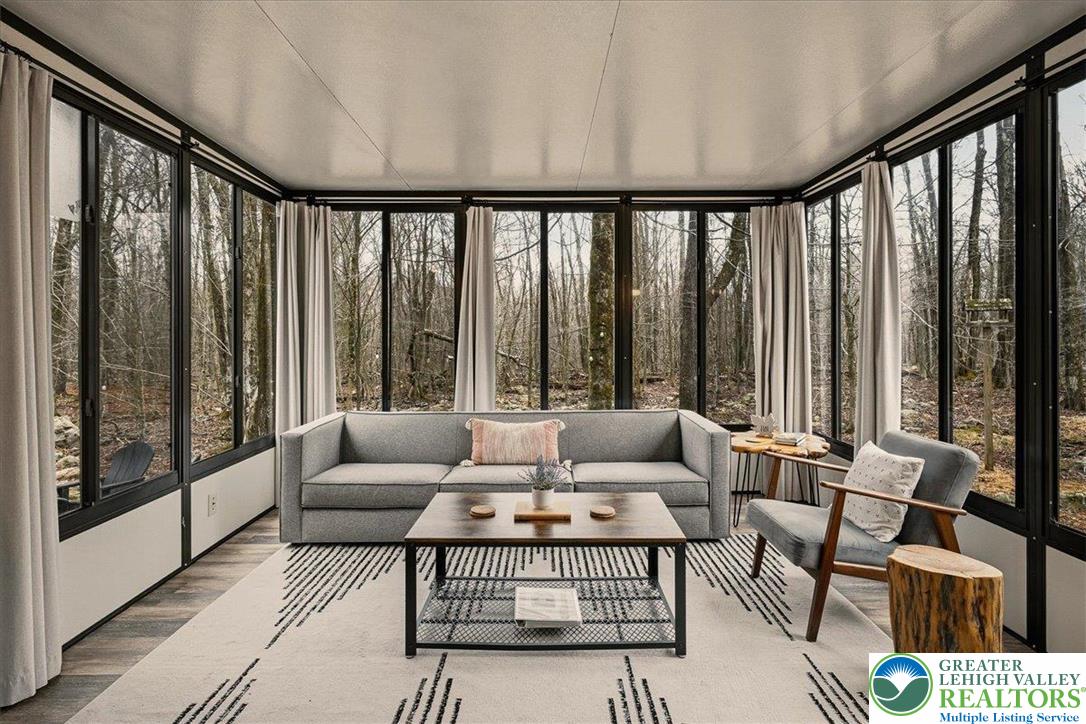 Do Not Wait To See This Fully Turnkey Pocono Retreat Backing Directly To State Land In STR Friendly Pocono Country Place! Set on a rare, ultra-private lot with no rear neighbors, this property delivers the peaceful mountain setting buyers are searching for while still offering strong short term rental potential. Sold fully furnished, this is a true plug-and-play opportunity ready for immediate use or income. Step inside to a bright and inviting layout featuring a stunning vaulted ceiling living space with exposed beams and a cozy fireplace that anchors the home. The open flow into the dining area and kitchen creates an ideal setup for entertaining or hosting guests. Just beyond, a beautiful enclosed porch brings the outdoors in and offers a perfect space to relax year-round. The home offers three comfortable bedrooms including a primary suite with its own bath and walk-in closet, plus an additional full bath and convenient laundry area. Outdoor living shines with an expansive front deck and a private backyard fire pit area surrounded by nature. Located in amenity-filled Pocono Country Place with pools, lakes, clubhouse, and more, and just minutes to Kalahari, Camelback, Mount Airy Casino, and major highways. A rare combination of privacy, condition, and STR upside. Do Not Delay Call Today.