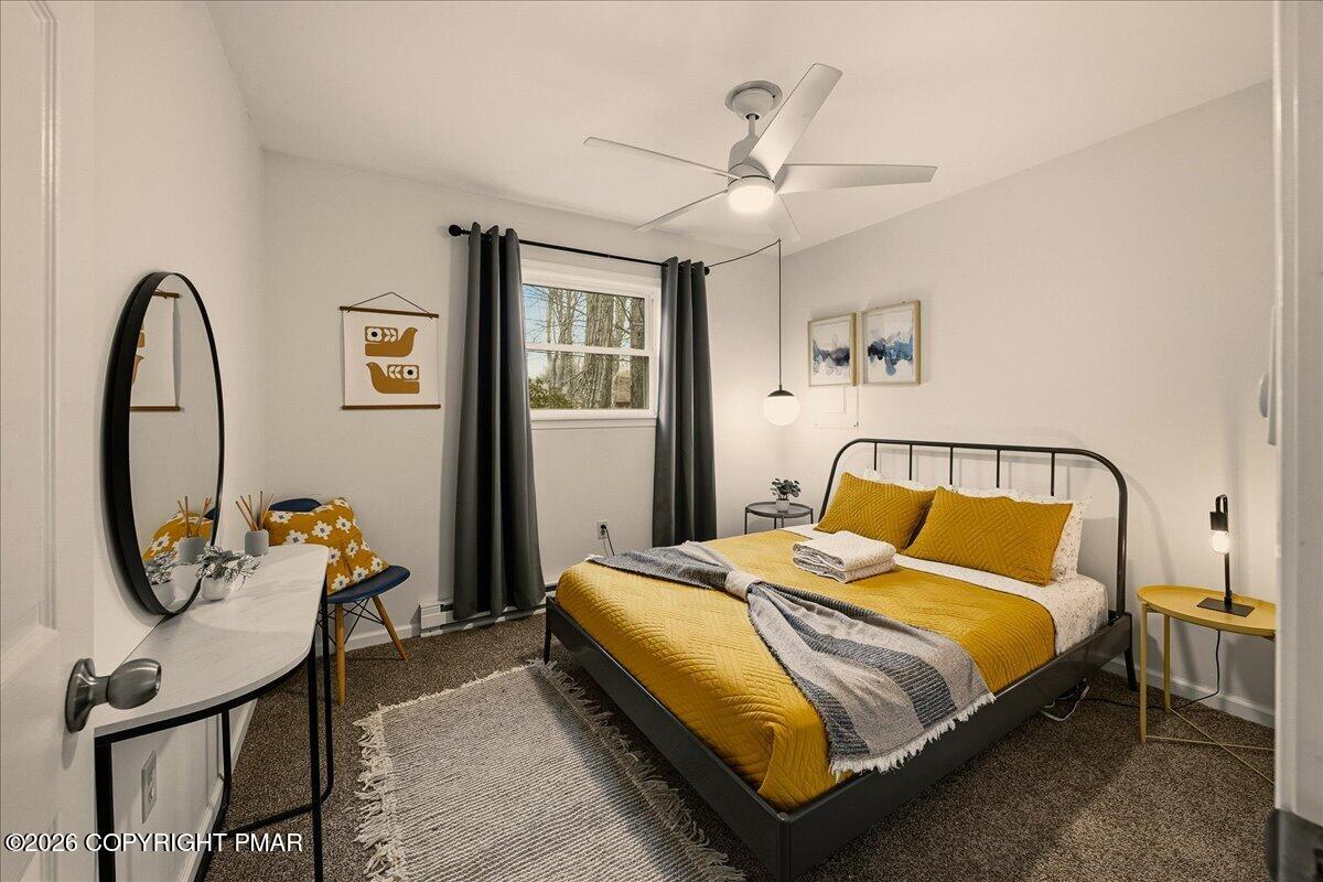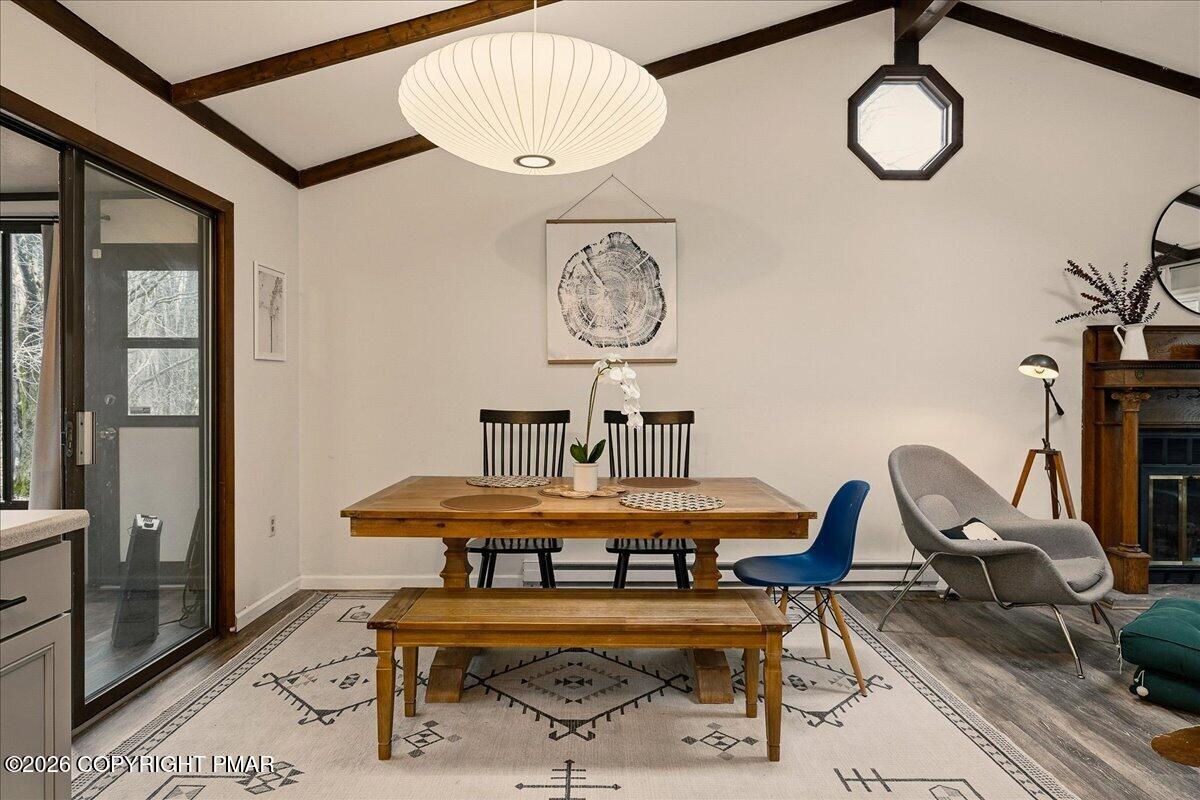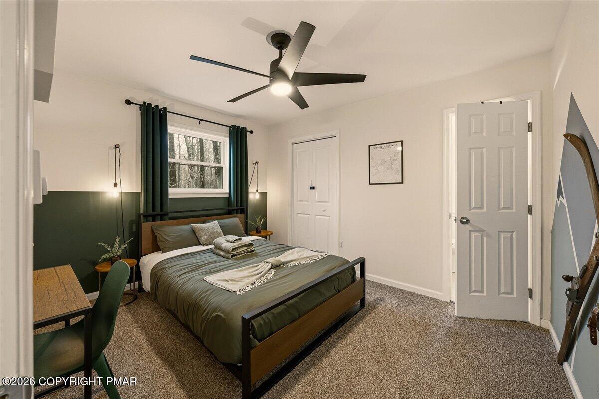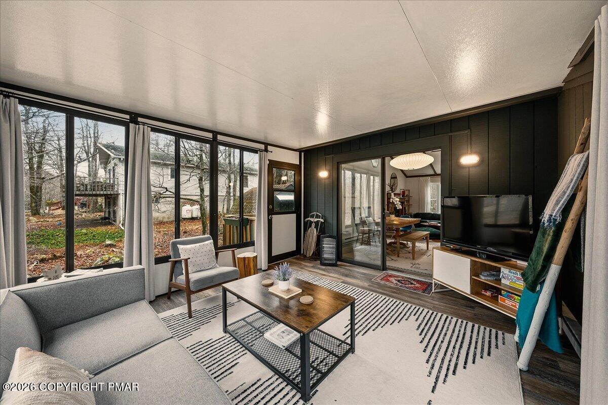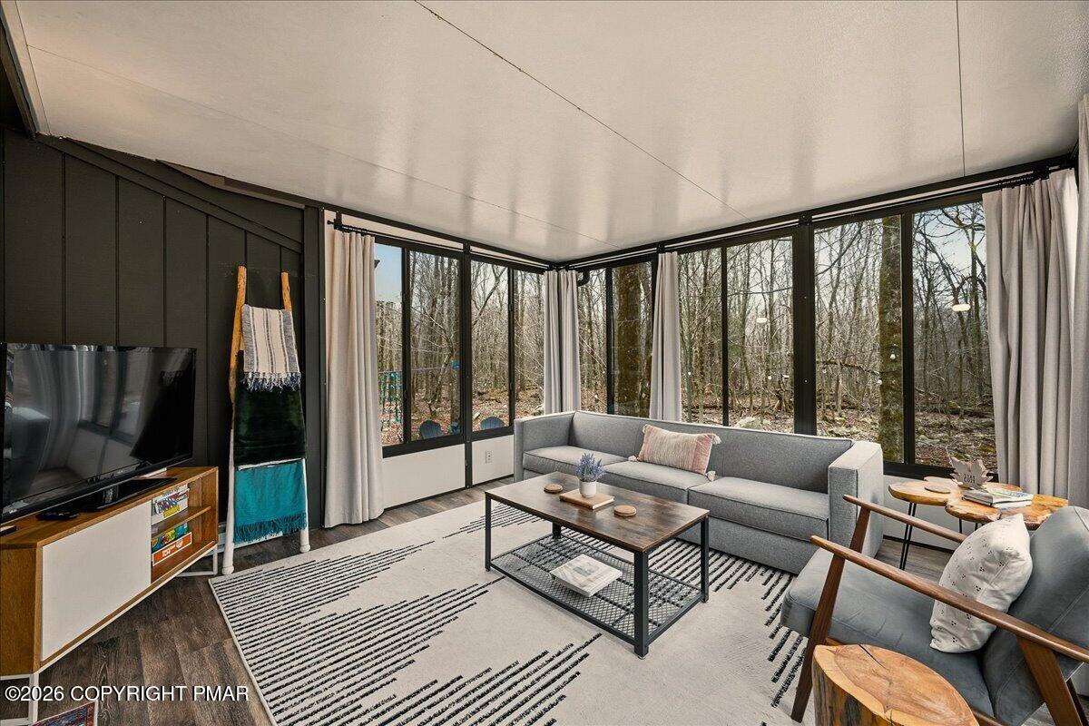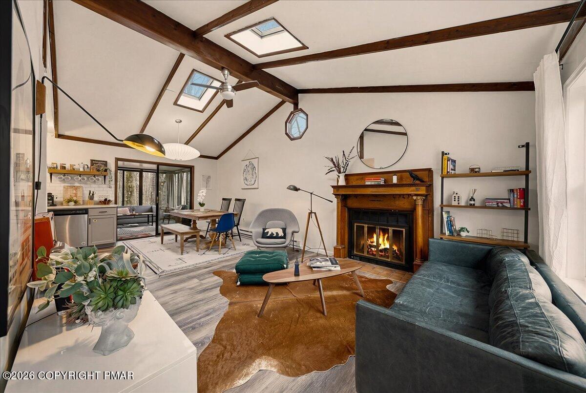 Do Not Wait To See This Fully Turnkey Pocono Retreat Backing Directly To State Land In STR Friendly Pocono Country Place! Set on a rare, ultra-private lot with no rear neighbors, this property delivers the peaceful mountain setting buyers are searching for while still offering strong short term rental potential. Sold fully furnished, this is a true plug-and-play opportunity ready for immediate use or income. Step inside to a bright and inviting layout featuring a stunning vaulted ceiling living space with exposed beams and a cozy fireplace that anchors the home. The open flow into the dining area and kitchen creates an ideal setup for entertaining or hosting guests. Just beyond, a beautiful enclosed porch brings the outdoors in and offers a perfect space to relax year-round. The home offers three comfortable bedrooms including a primary suite with its own bath and walk-in closet, plus an additional full bath and convenient laundry area. Outdoor living shines with an expansive front deck and a private backyard fire pit area surrounded by nature. Located in amenity-filled Pocono Country Place with pools, lakes, clubhouse, and more, and just minutes to Kalahari, Camelback, Mount Airy Casino, and major highways. A rare combination of privacy, condition, and STR upside. Do Not Delay Call Today.