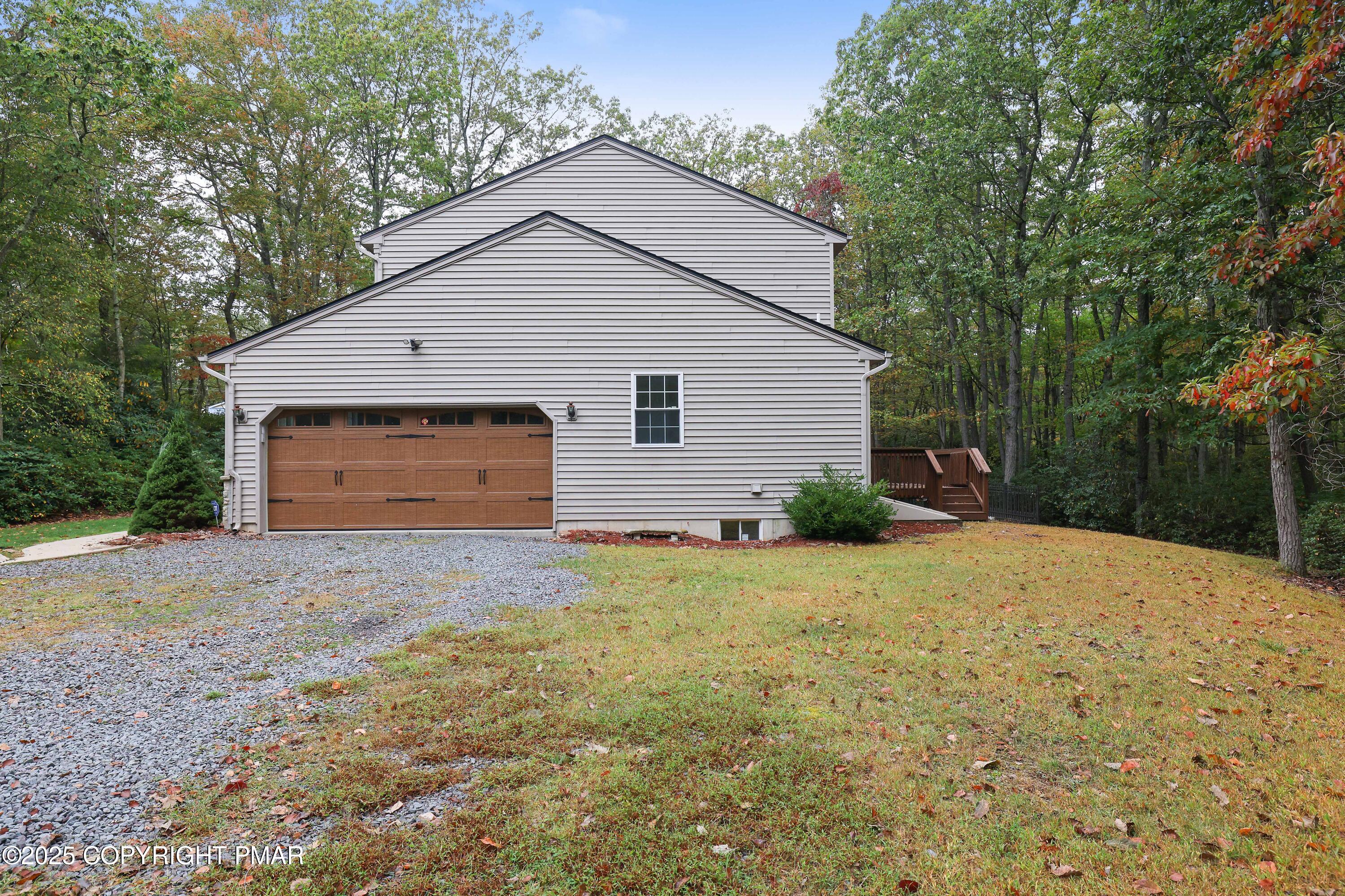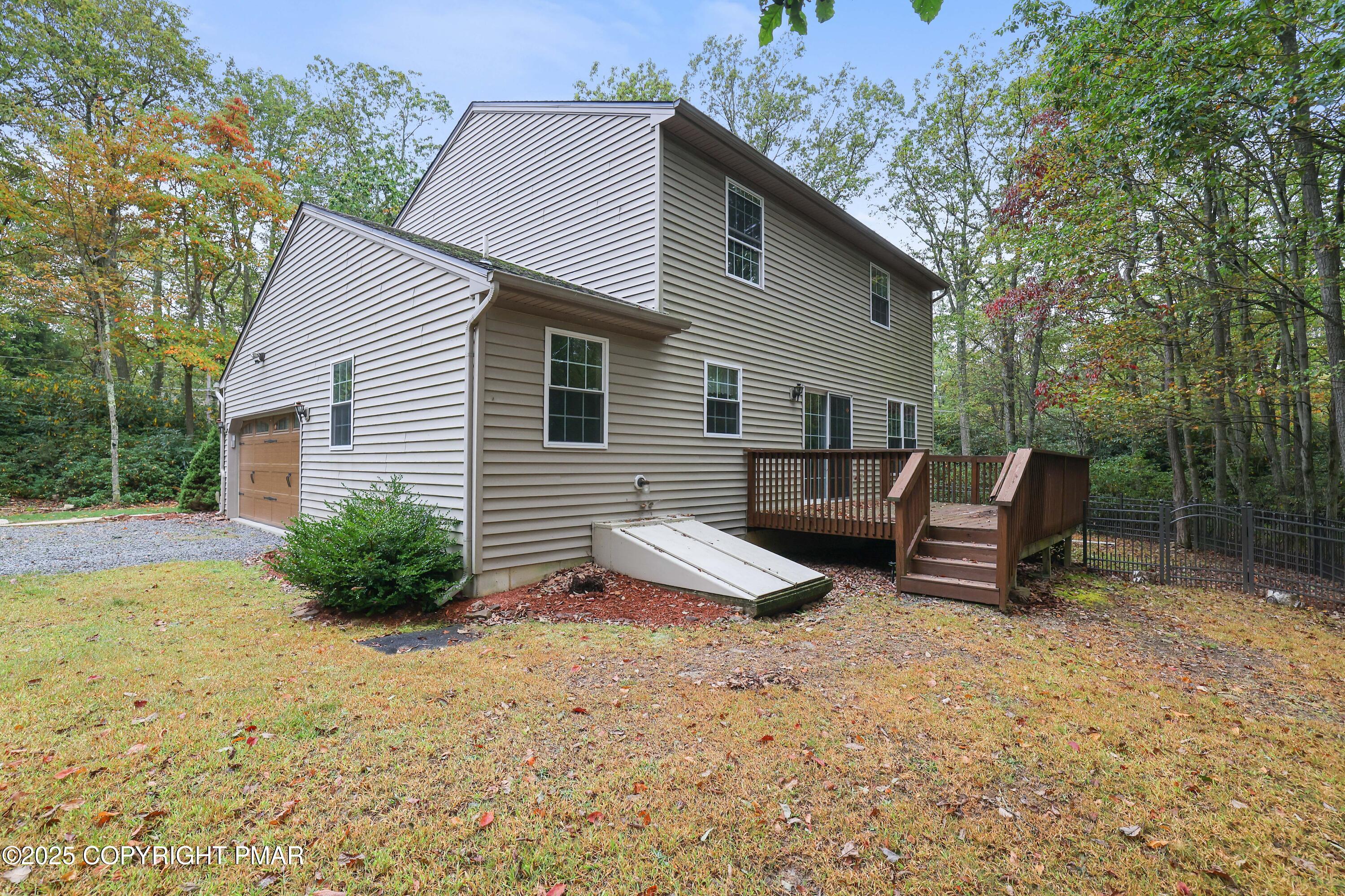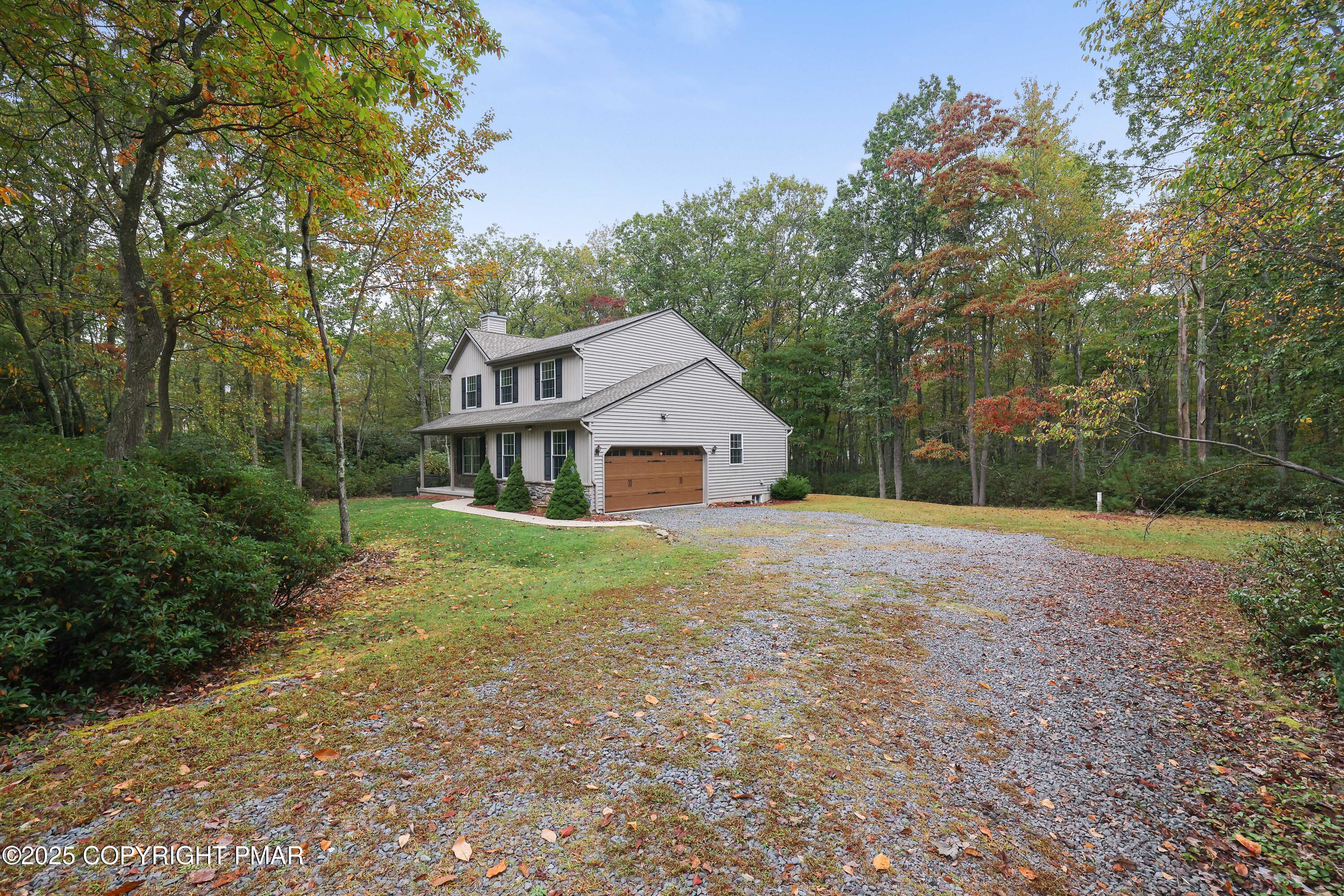 Style, space, and a classic Pocono setting! This 2008-built colonial in Pleasant Valley West delivers the mountain-home vibe with modern comfort just minutes to downtown Jim Thorpe, Hickory Run State Park, Lake Harmony, and Jack Frost/Big Boulder, with quick Turnpike access for easy weekend or daily commutes. Set back on a wooded corner lot wrapped in rhododendron and mountain laurel, the home greets you with a classic covered front porch, rear deck for grilling, a true two-car garage, and a full unfinished basement ready for storage or future finishing.