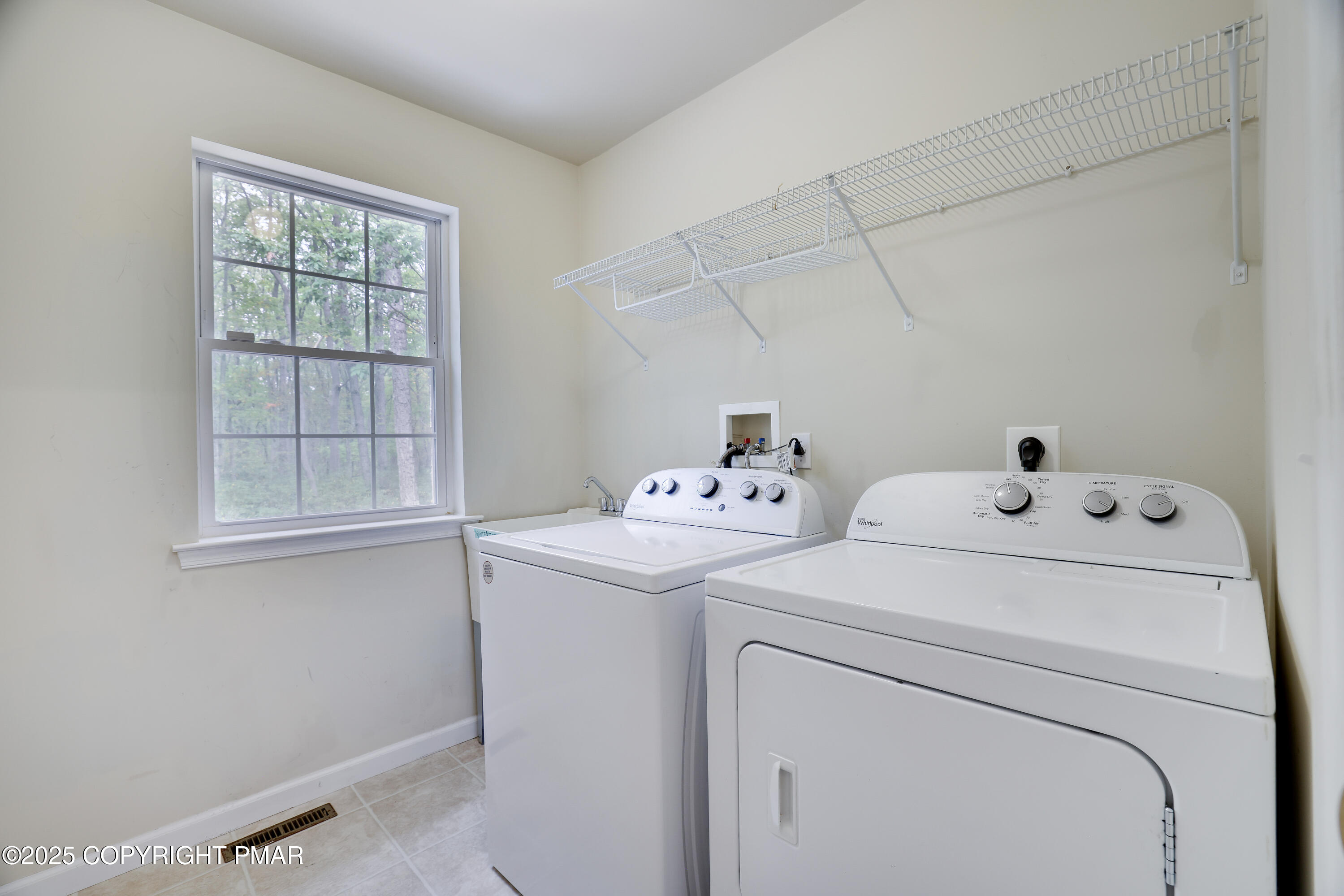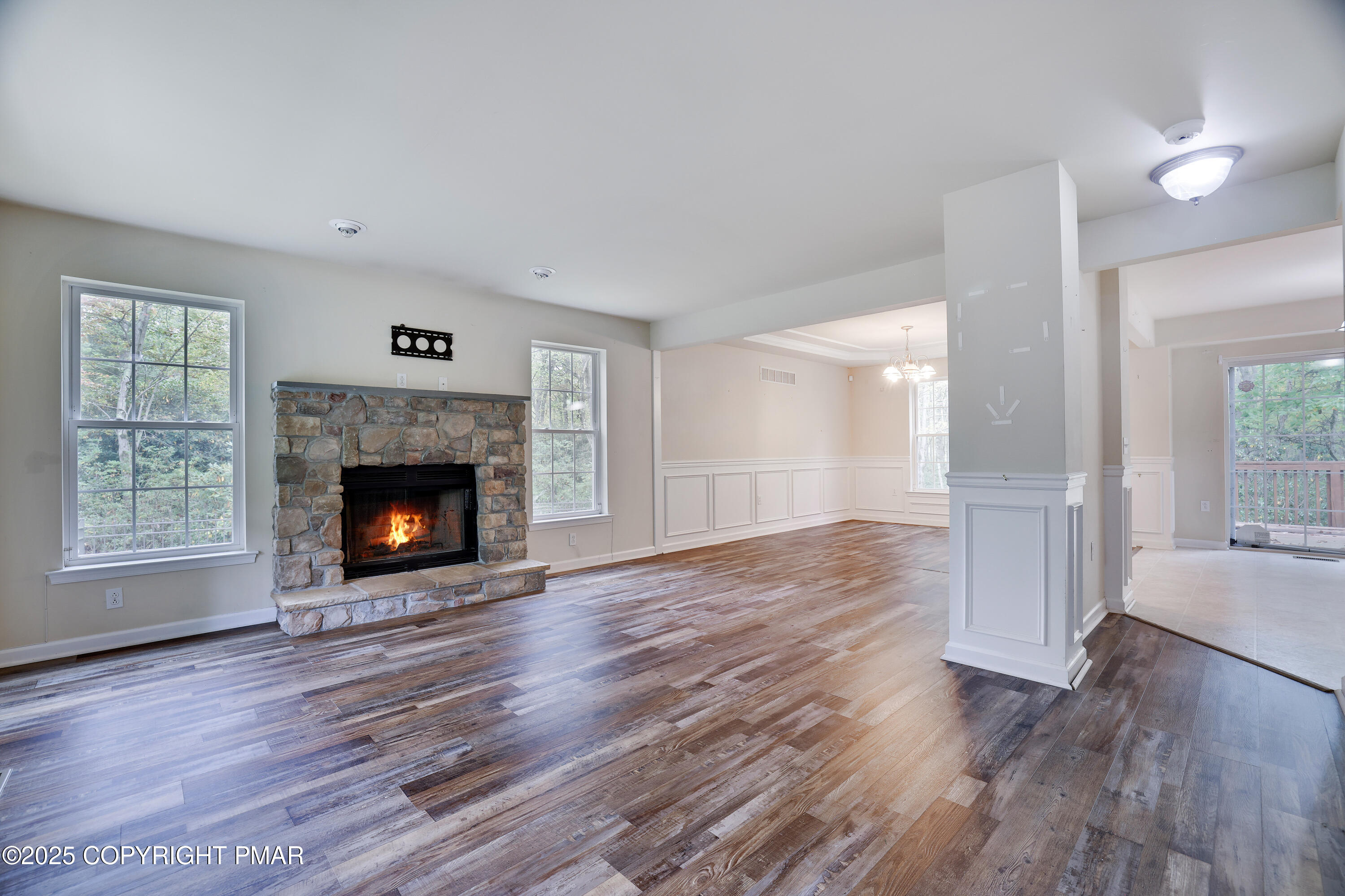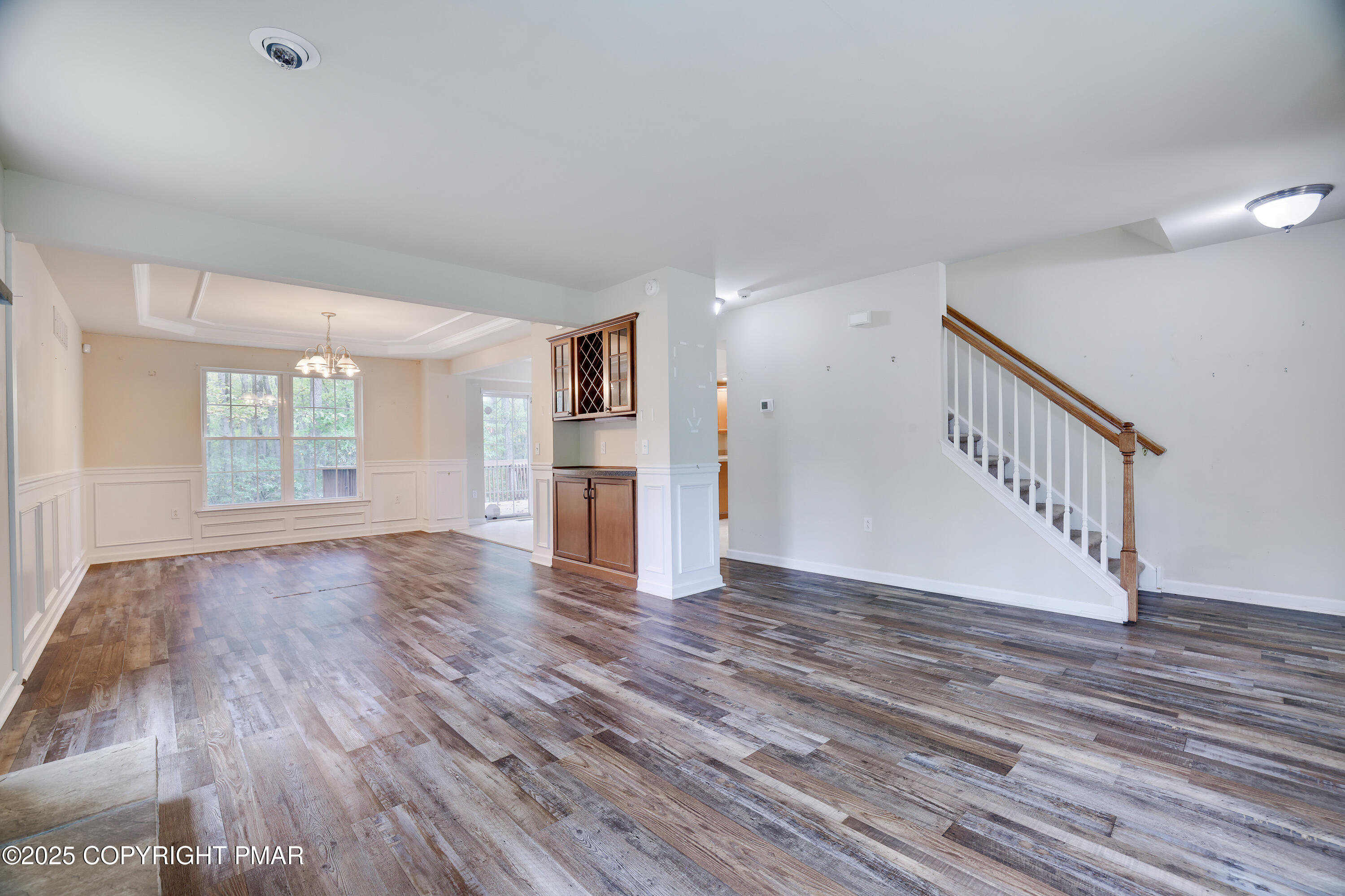 Style, space, and a classic Pocono setting! This 2008-built colonial in Pleasant Valley West delivers the mountain-home vibe with modern comfort just minutes to downtown Jim Thorpe, Hickory Run State Park, Lake Harmony, and Jack Frost/Big Boulder, with quick Turnpike access for easy weekend or daily commutes. Set back on a wooded corner lot wrapped in rhododendron and mountain laurel, the home greets you with a classic covered front porch, rear deck for grilling, a true two-car garage, and a full unfinished basement ready for storage or future finishing.