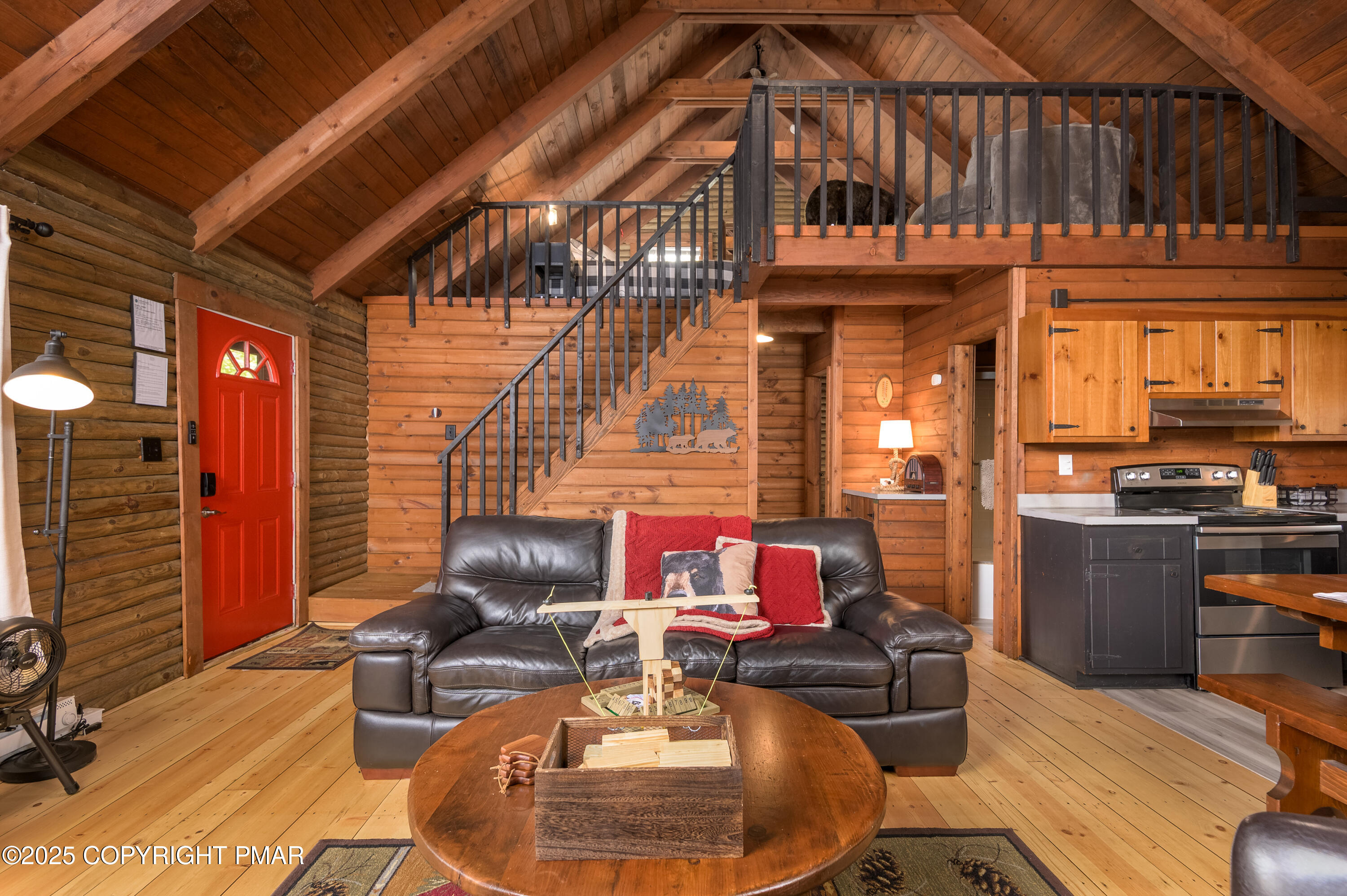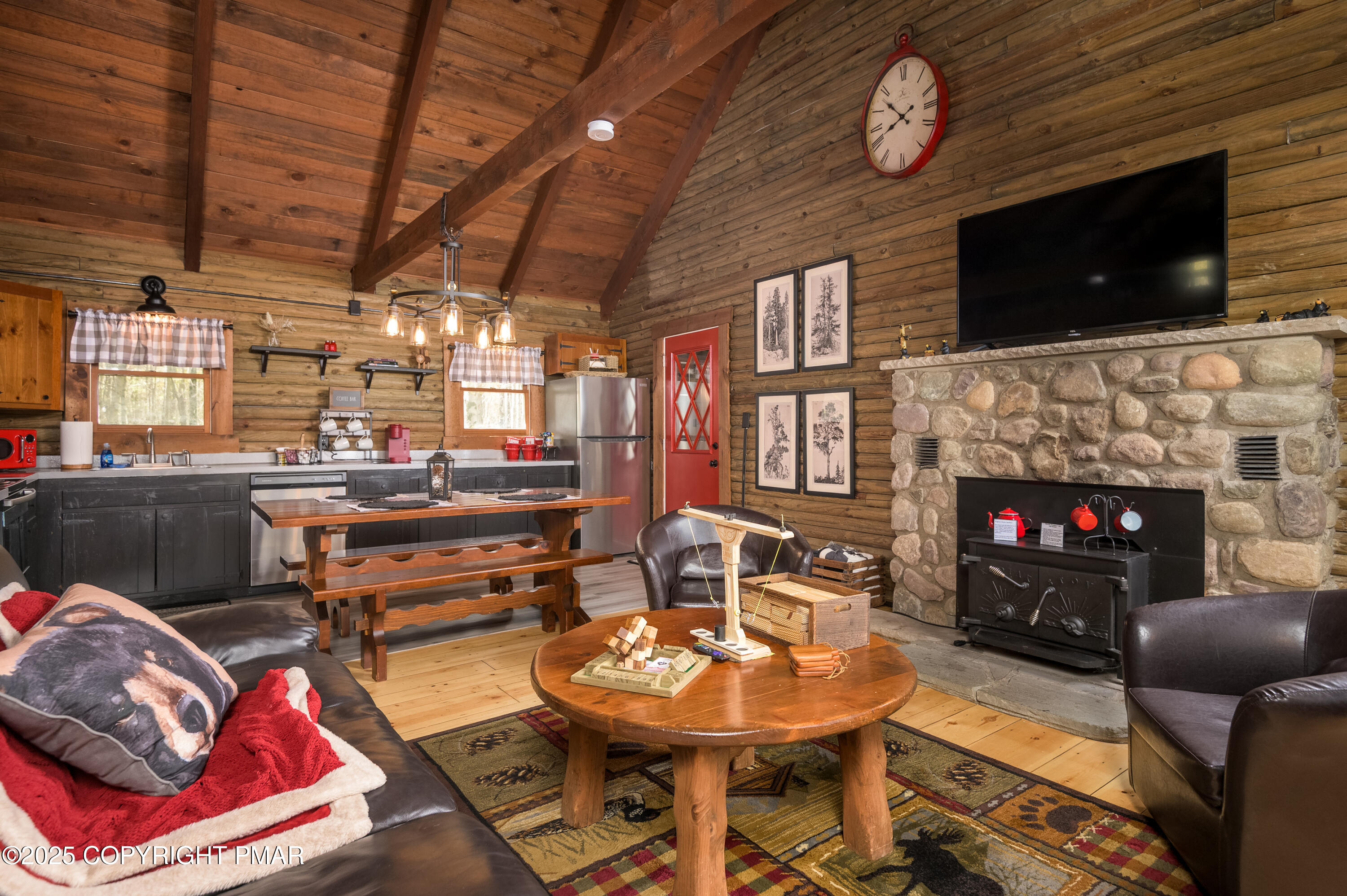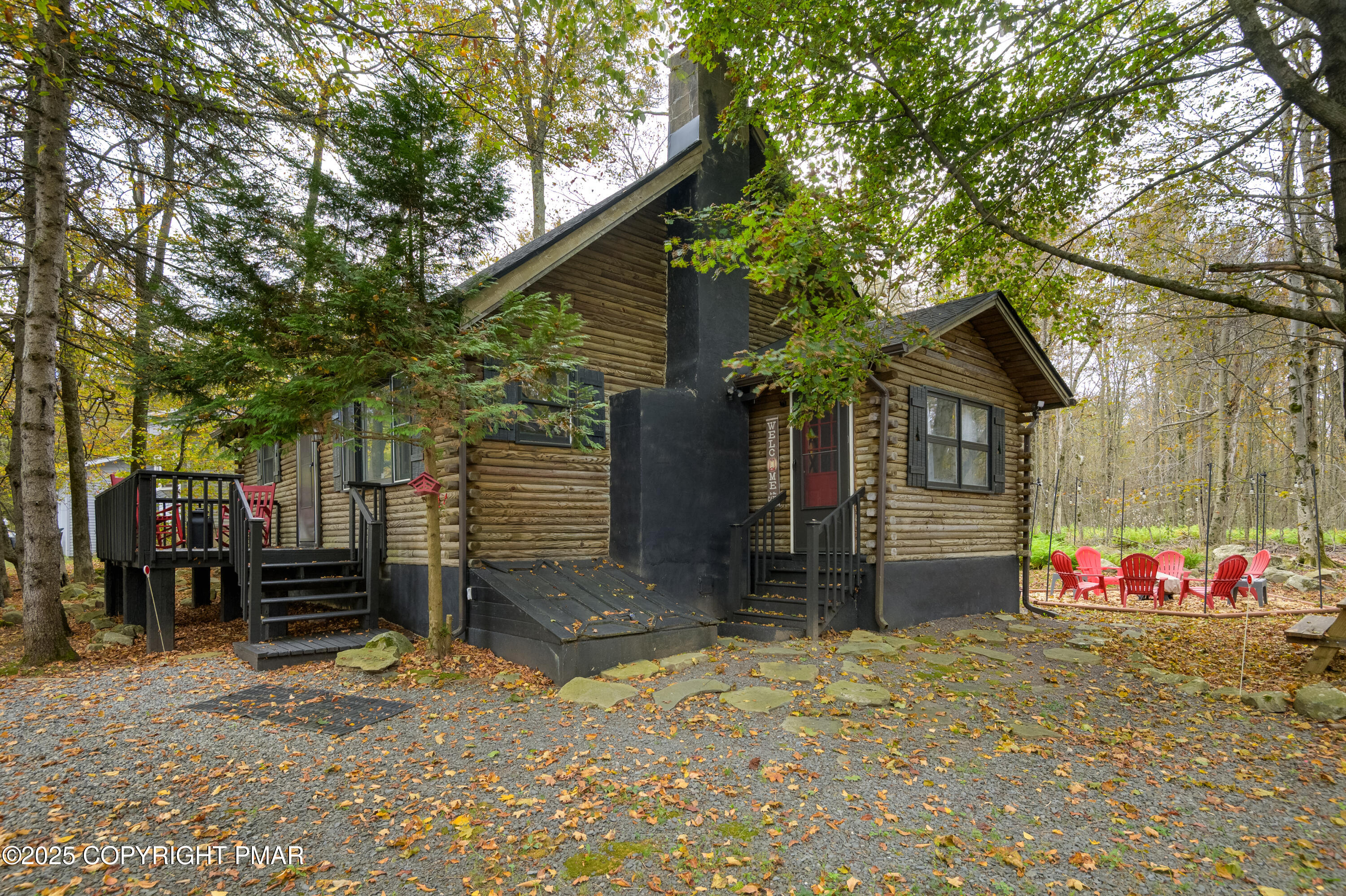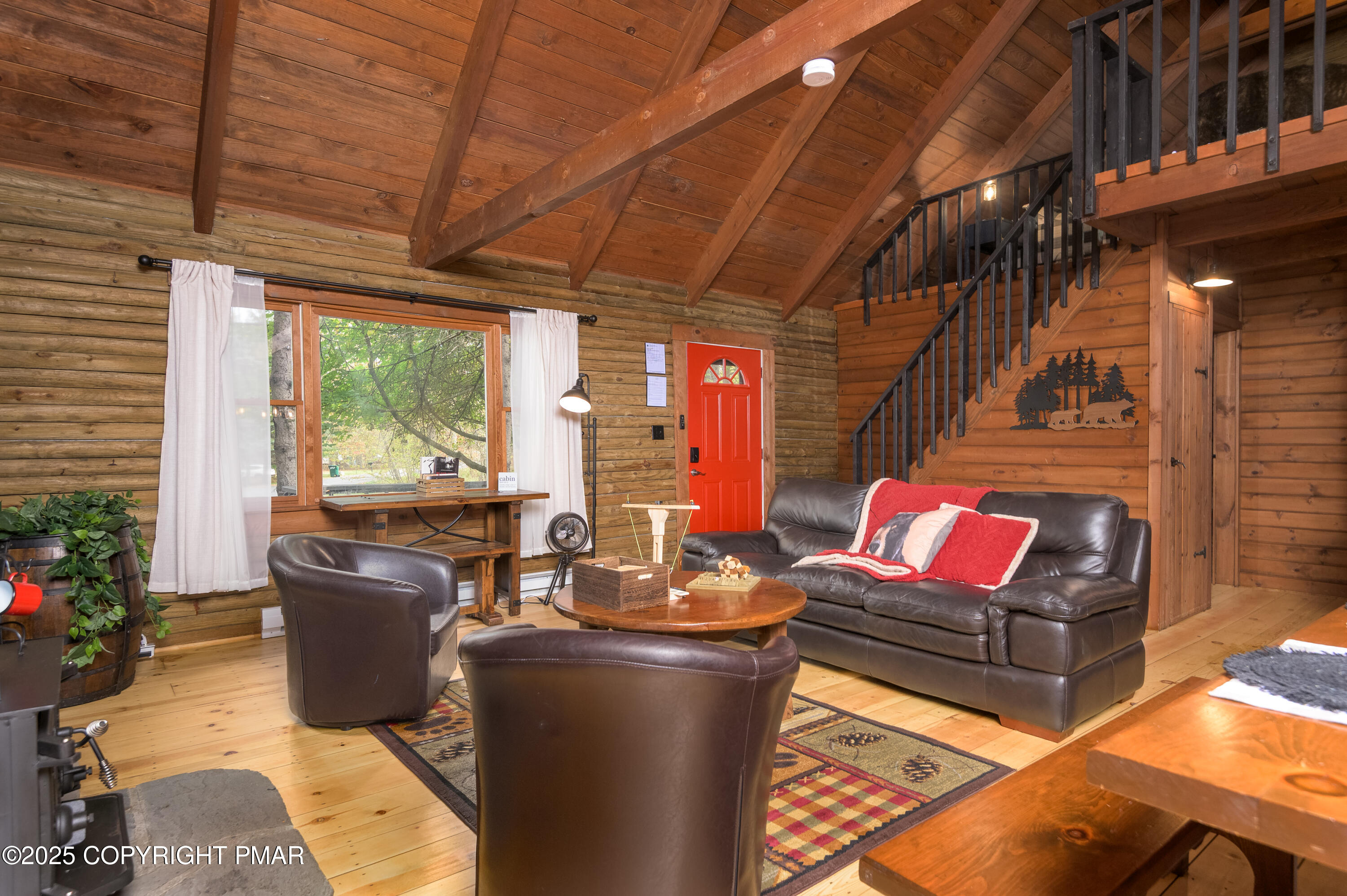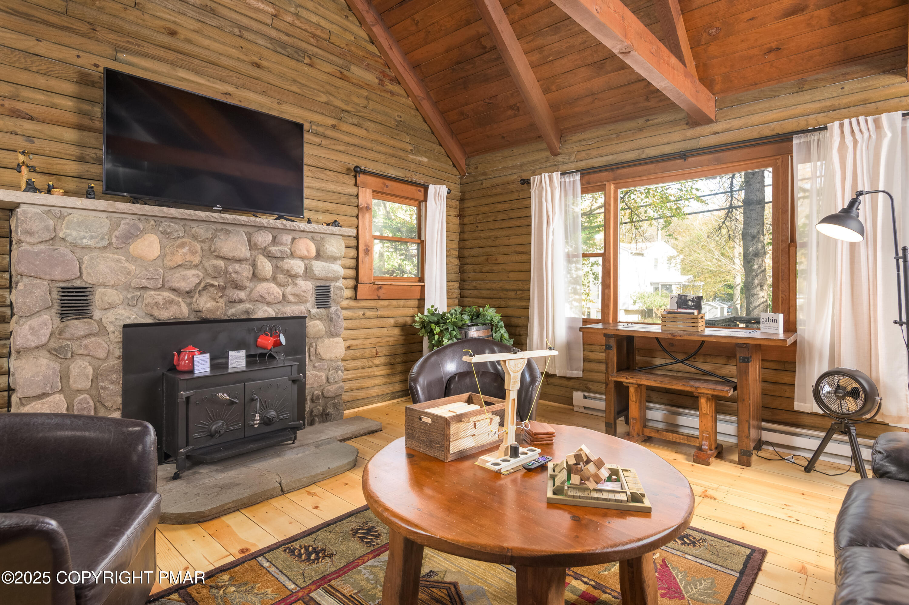 This charming 2-bedroom, 1-bath log cabin with a loft backs directly onto State Game Lands, offering ultimate privacy and natural views. Fully furnished and short-term rental ready, this cabin has been thoughtfully updated with a new roof, new electrical panel & wiring, new grinder pump, and new crawlspace heater -- making it as functional as it is cozy. Inside, vaulted ceilings, warm wood interiors, and a rustic stone fireplace create the perfect year-round retreat.