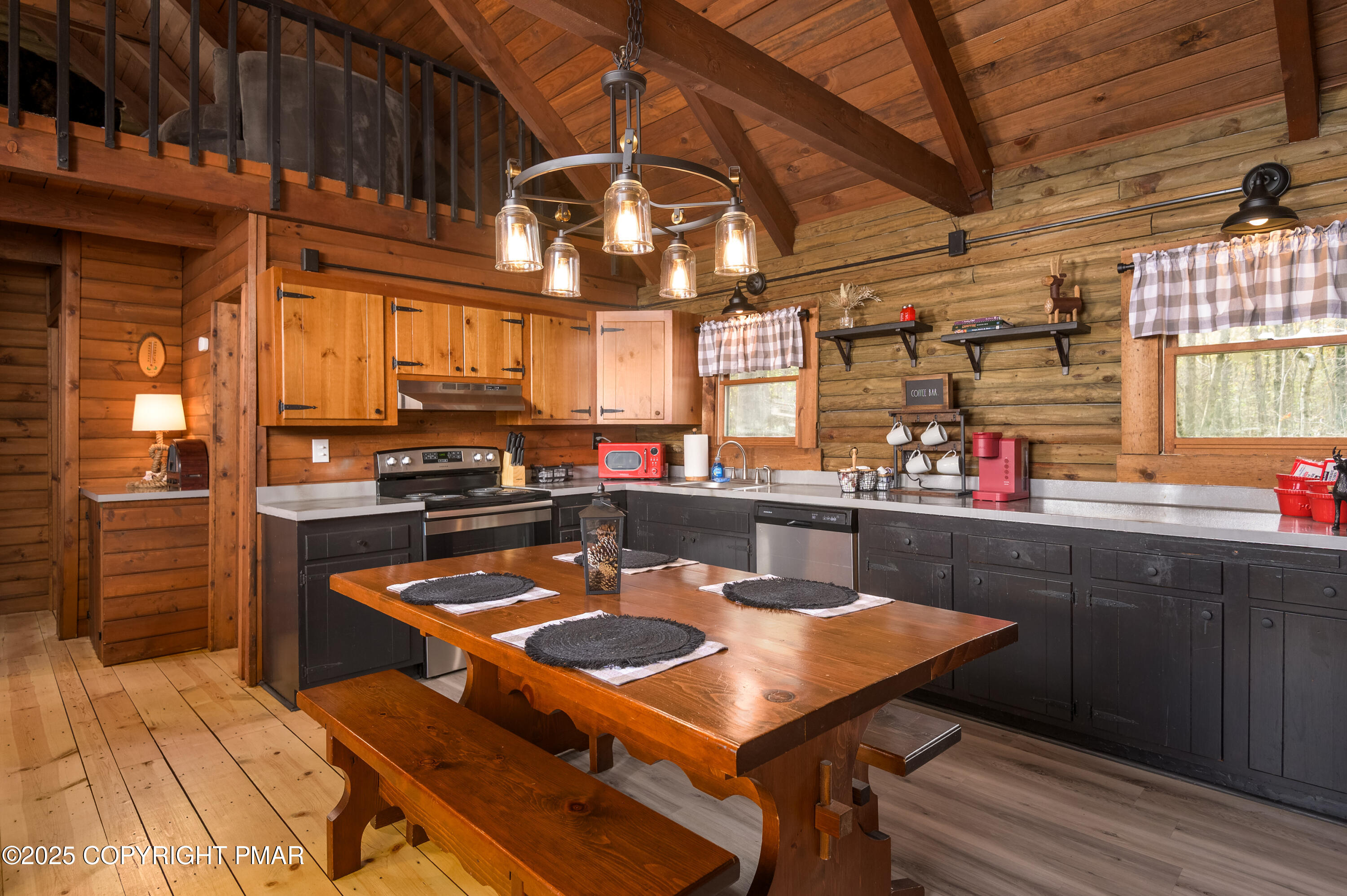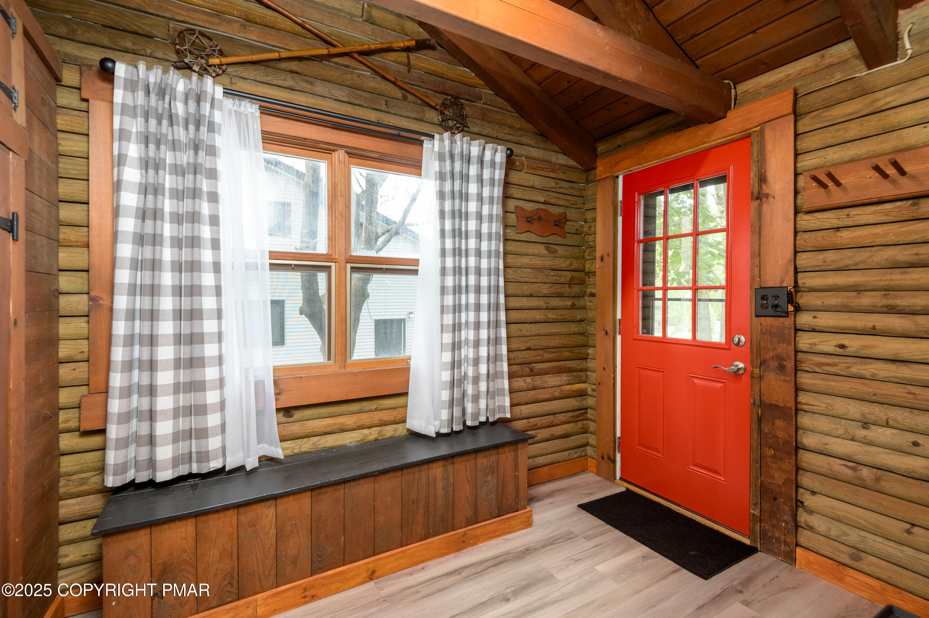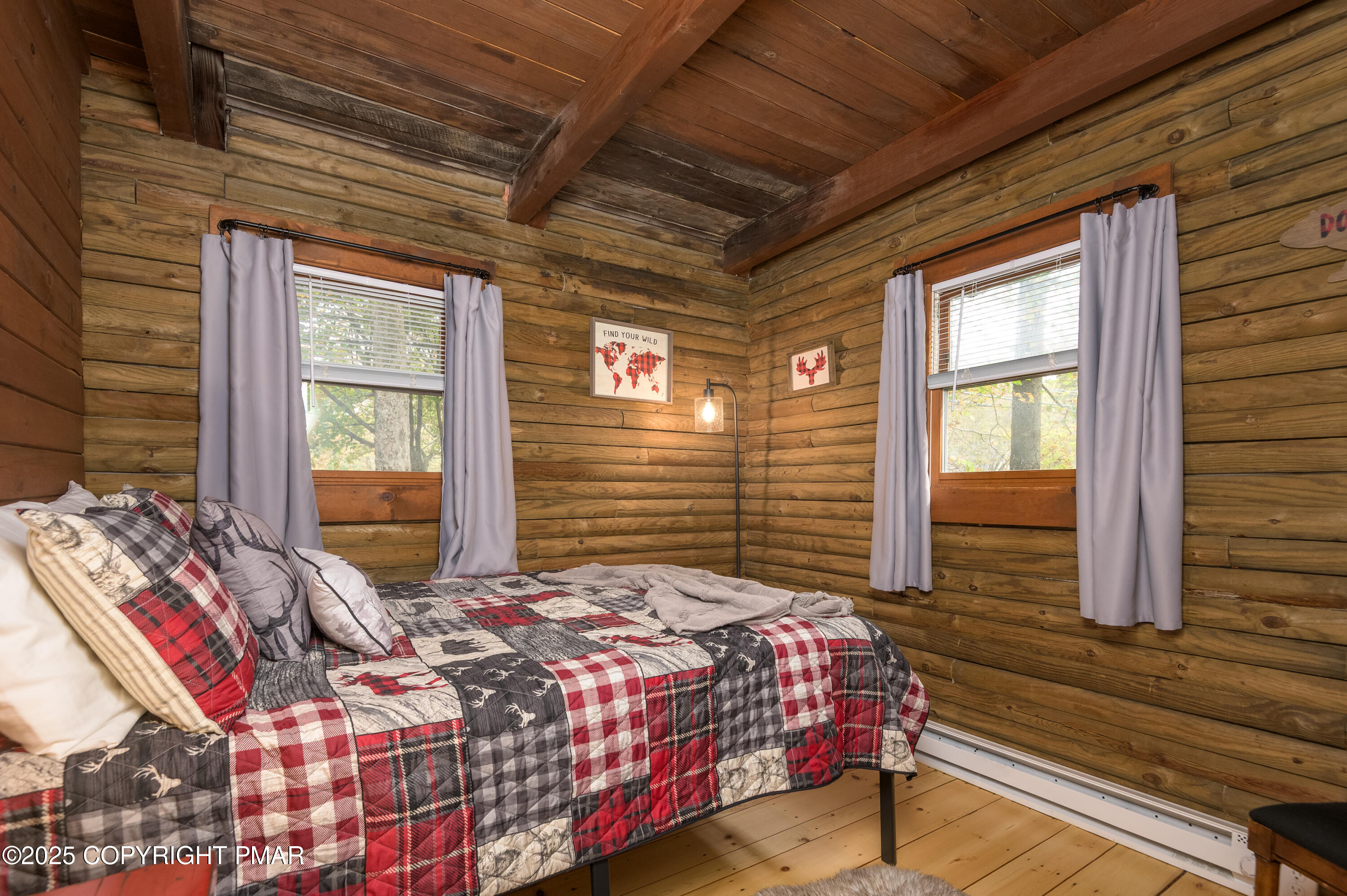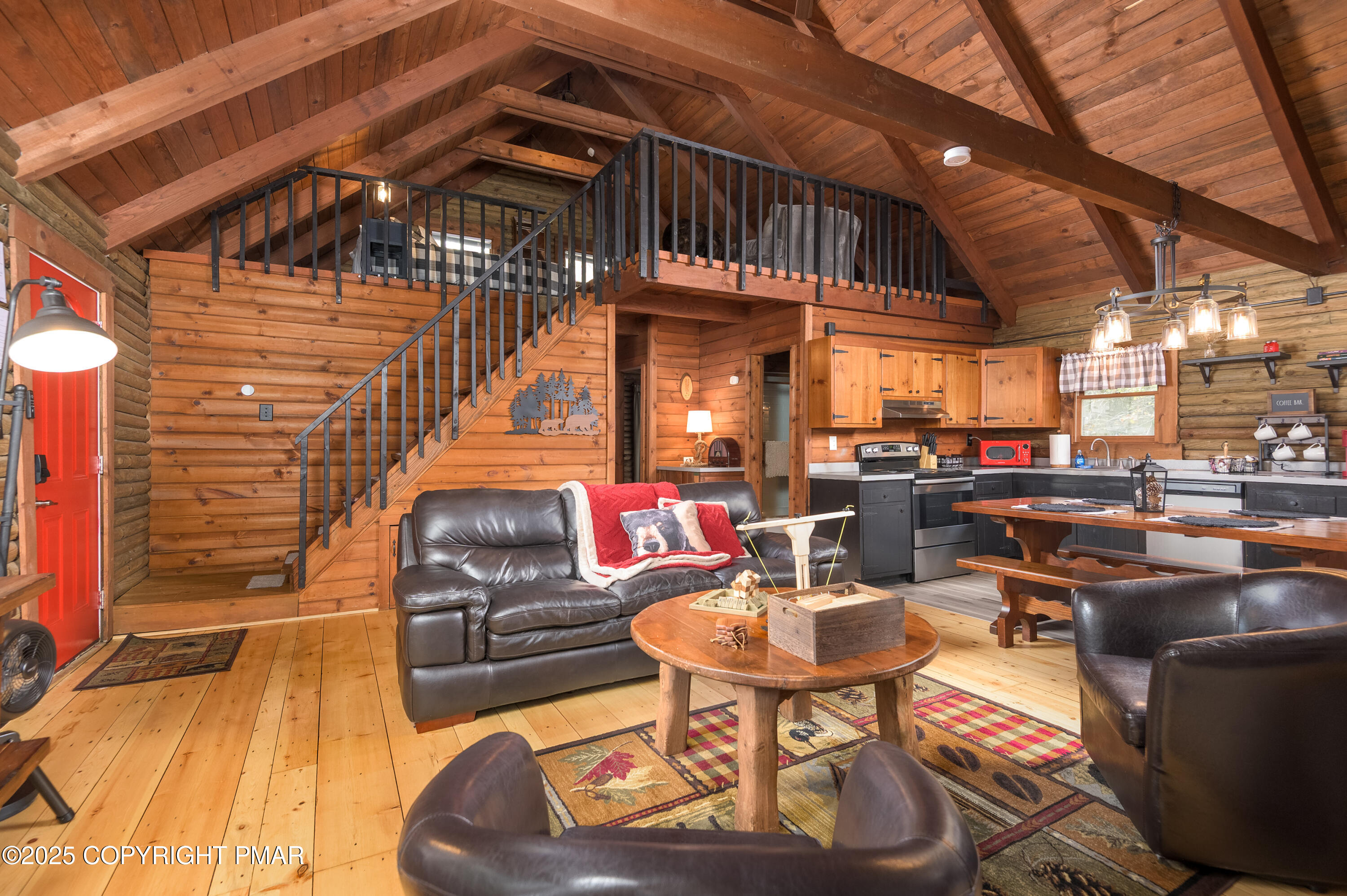This charming 2-bedroom, 1-bath log cabin with a loft backs directly onto State Game Lands, offering ultimate privacy and natural views. Fully furnished and short-term rental ready, this cabin has been thoughtfully updated with a new roof, new electrical panel & wiring, new grinder pump, and new crawlspace heater -- making it as functional as it is cozy. Inside, vaulted ceilings, warm wood interiors, and a rustic stone fireplace create the perfect year-round retreat.
