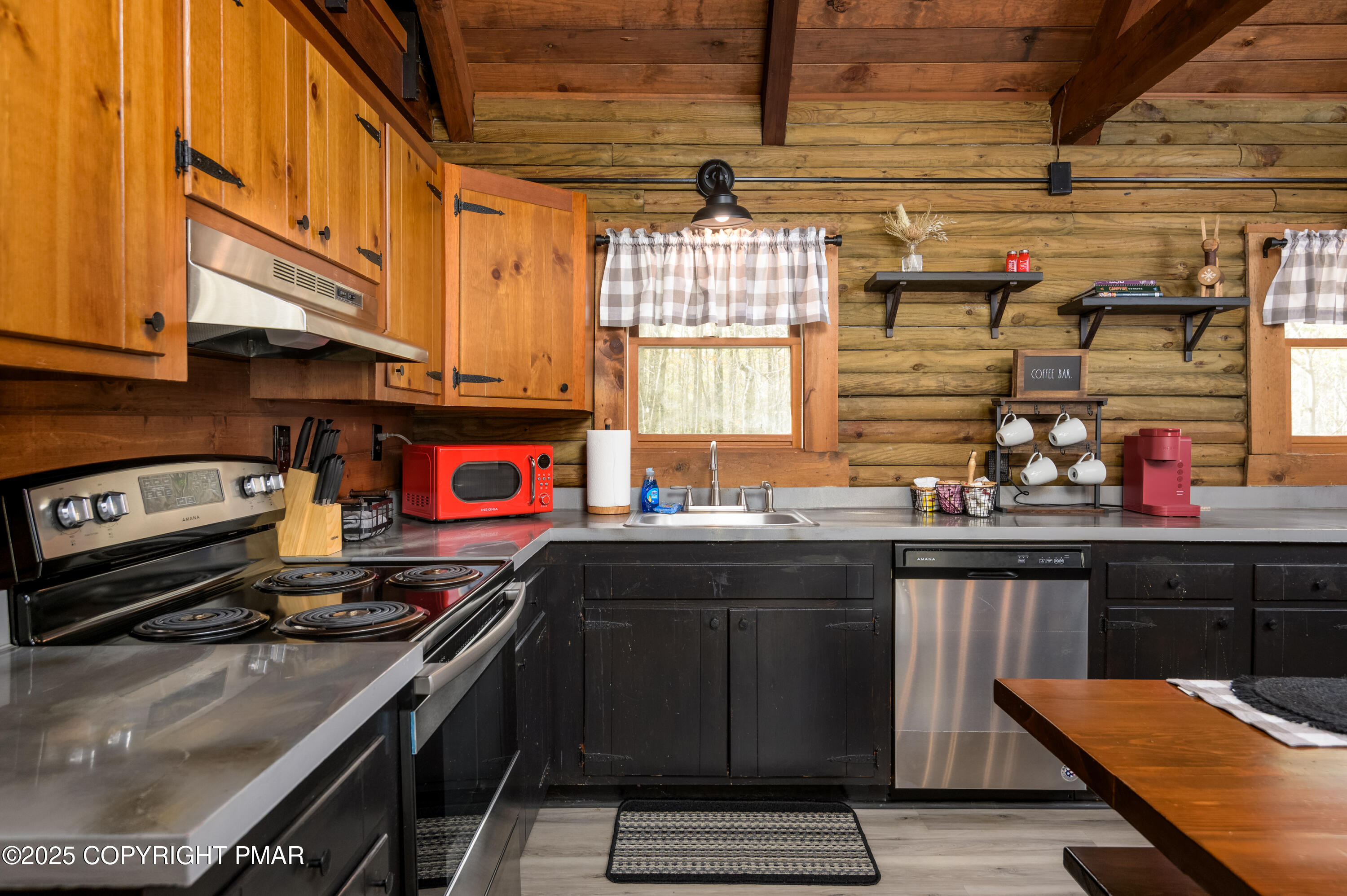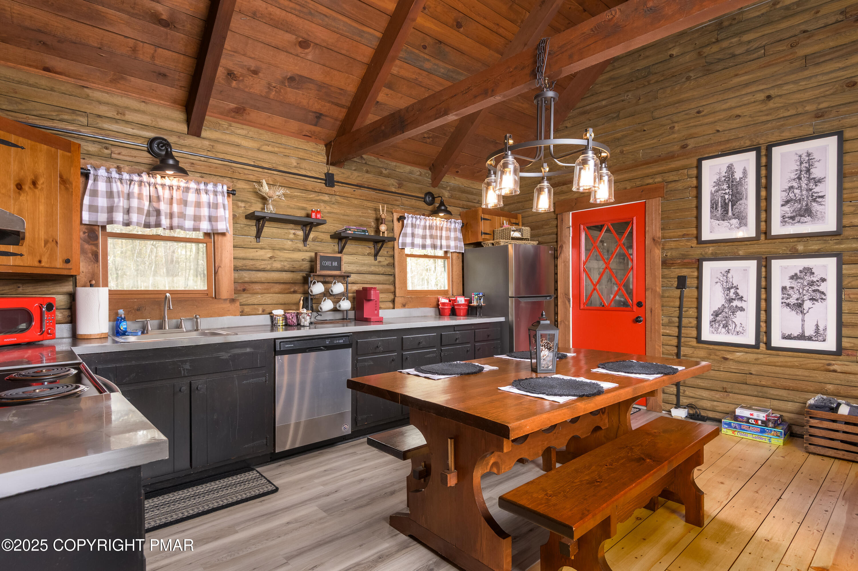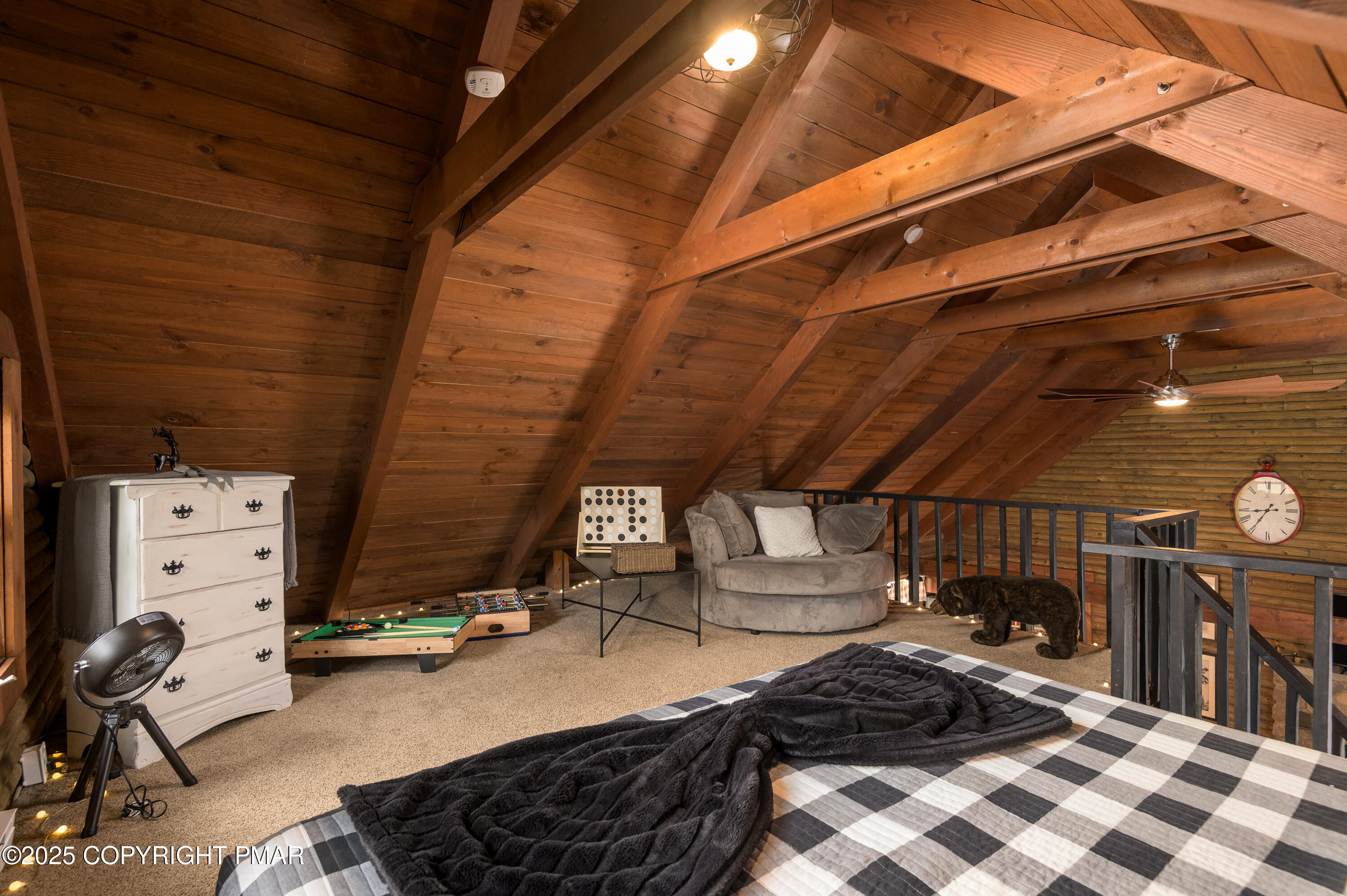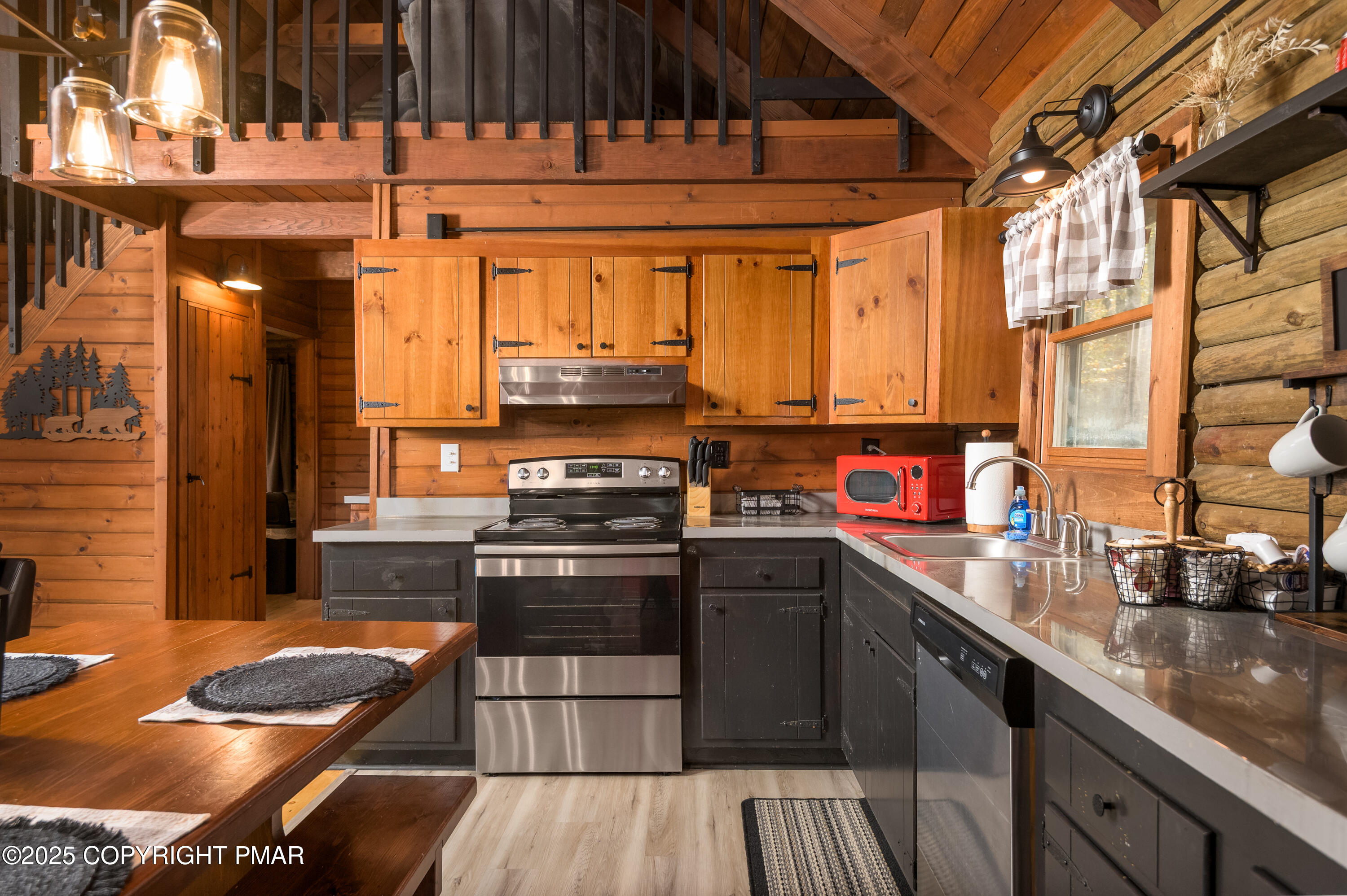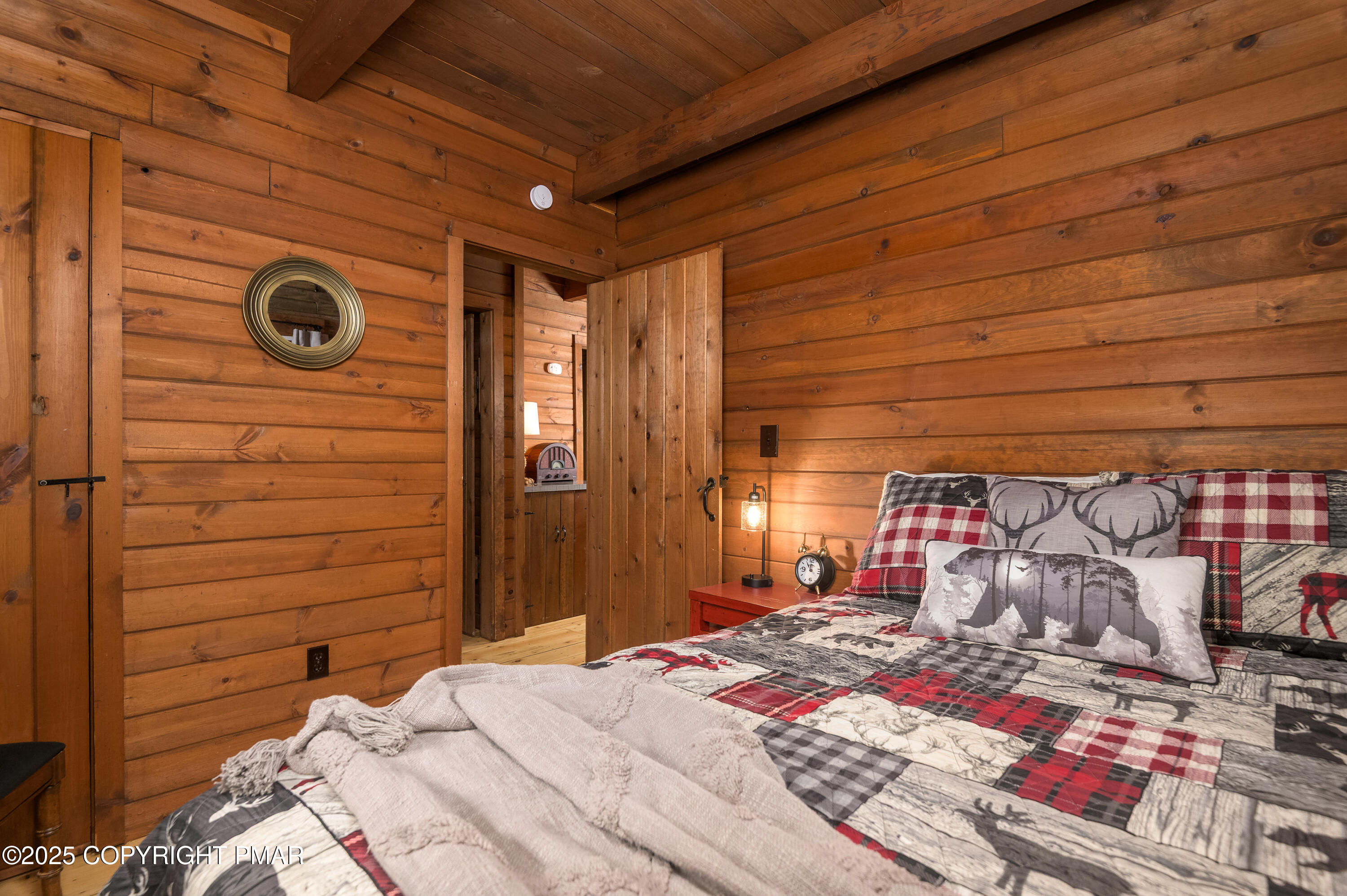 This charming 2-bedroom, 1-bath log cabin with a loft backs directly onto State Game Lands, offering ultimate privacy and natural views. Fully furnished and short-term rental ready, this cabin has been thoughtfully updated with a new roof, new electrical panel & wiring, new grinder pump, and new crawlspace heater -- making it as functional as it is cozy. Inside, vaulted ceilings, warm wood interiors, and a rustic stone fireplace create the perfect year-round retreat.